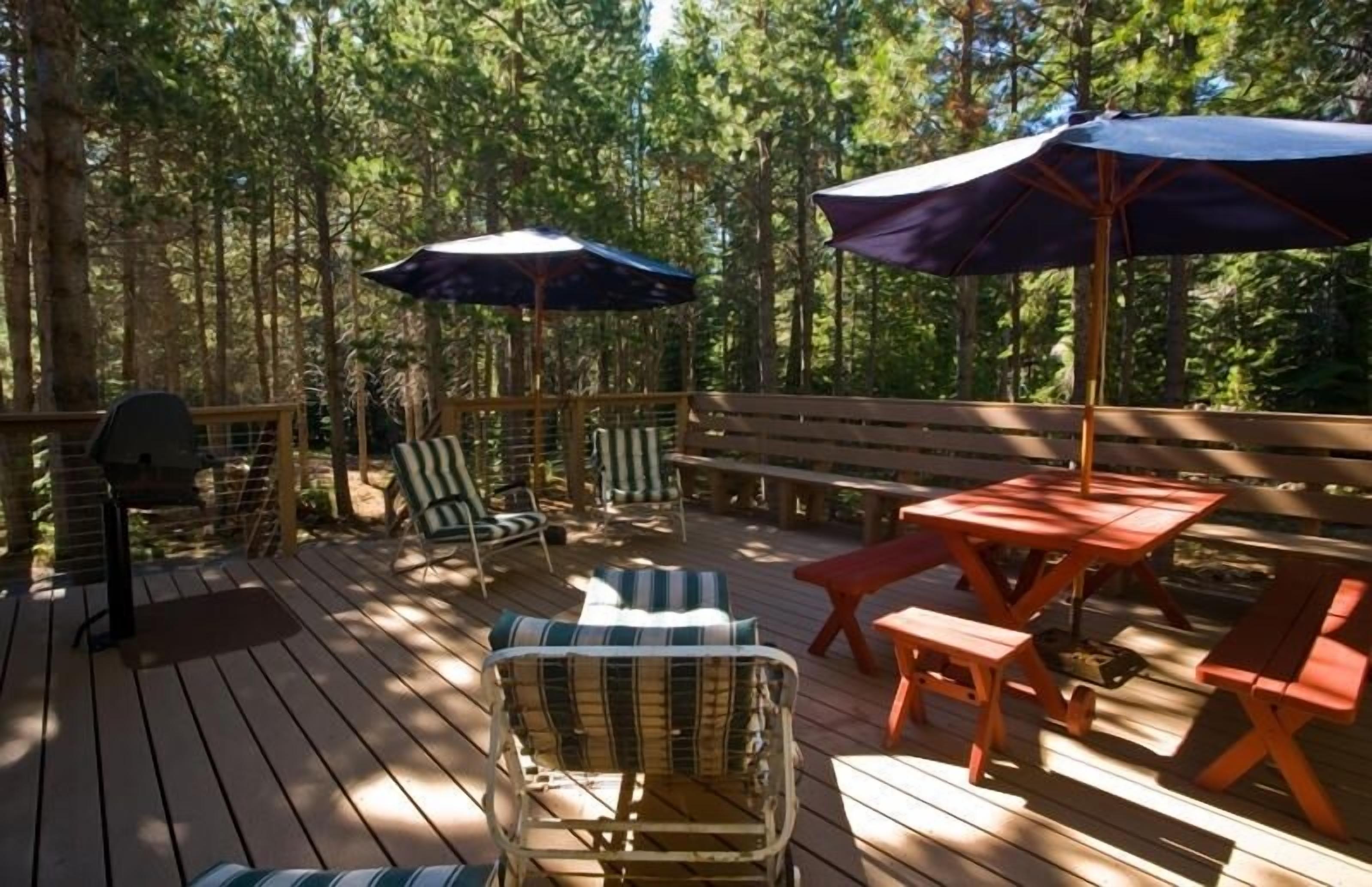 Lake Tahoe - Chambers Private Beach, Pool & Tennis Membership Cozy Chalet, Perfect for Families on a large, level lot in Chamberlands with easy walking access to the Membership Only Beach, Pool and Tennis facilities in the Summer and plowed driveway access and abundant parking in the Winter and Summer. Chambers is an all-season area and there is easy walking or biking access to the West Shore Bike Trail, Homewood, Obexer’s Marina and Market/Deli, the Homewood Mountain Resort for skiing in the Winter and home of the Tahoe Music Festival in mid-summer. Squaw Valley and Alpine Meadows Ski Areas are within a 30 minute drive and Northstar is about 40 minutes away.The cabin has an open floor plan with a wood burning fireplace, 1 bedroom and bath downstairs, and 3 bedrooms and 1 bath upstairs. Three of the bedrooms have queen size beds and the forth bedroom has a single and bunk beds. The kitchen is fully equipped, has an eating/serving bar with barstools, in addition to the dining table and there are 2 TVs, an Amazon Fire Stick to access apps like Netflix, and 2 DVD players, in the house. Equipped with Wifi. In the Summer, guests can enjoy the large, new sunny deck with propane barbeque. You will find comfortable outdoor chairs, lounges, and tables and umbrellas ready for relaxing, reading, napping or bar-b-queing while overlooking the private, quiet, forested backyard. There is an area for children to play along side and behind the house away from the street.Our Chamberlands amenities include your full access to the Members Only beach, pool, tennis courts and the peace of mind that comes with knowing the beach and pool are fully secure and staffed by life guards. The Chambers historic Bar and Restaurant is open all summer for your enjoyment. The house is within easy walking distance to the beach area or you can use the Private Shuttle which will pick you up or deliver you back home on an hourly schedule.Keywords: Lake Tahoe's West Shore, Chamberlands, Homewood