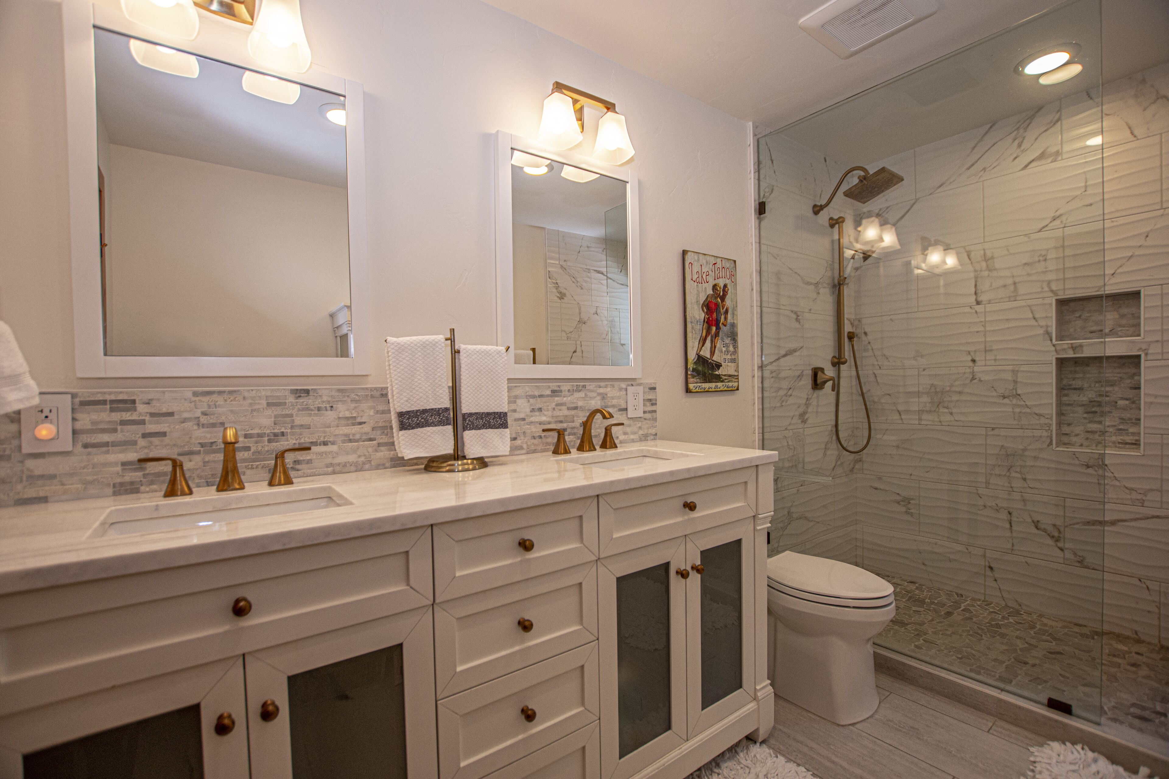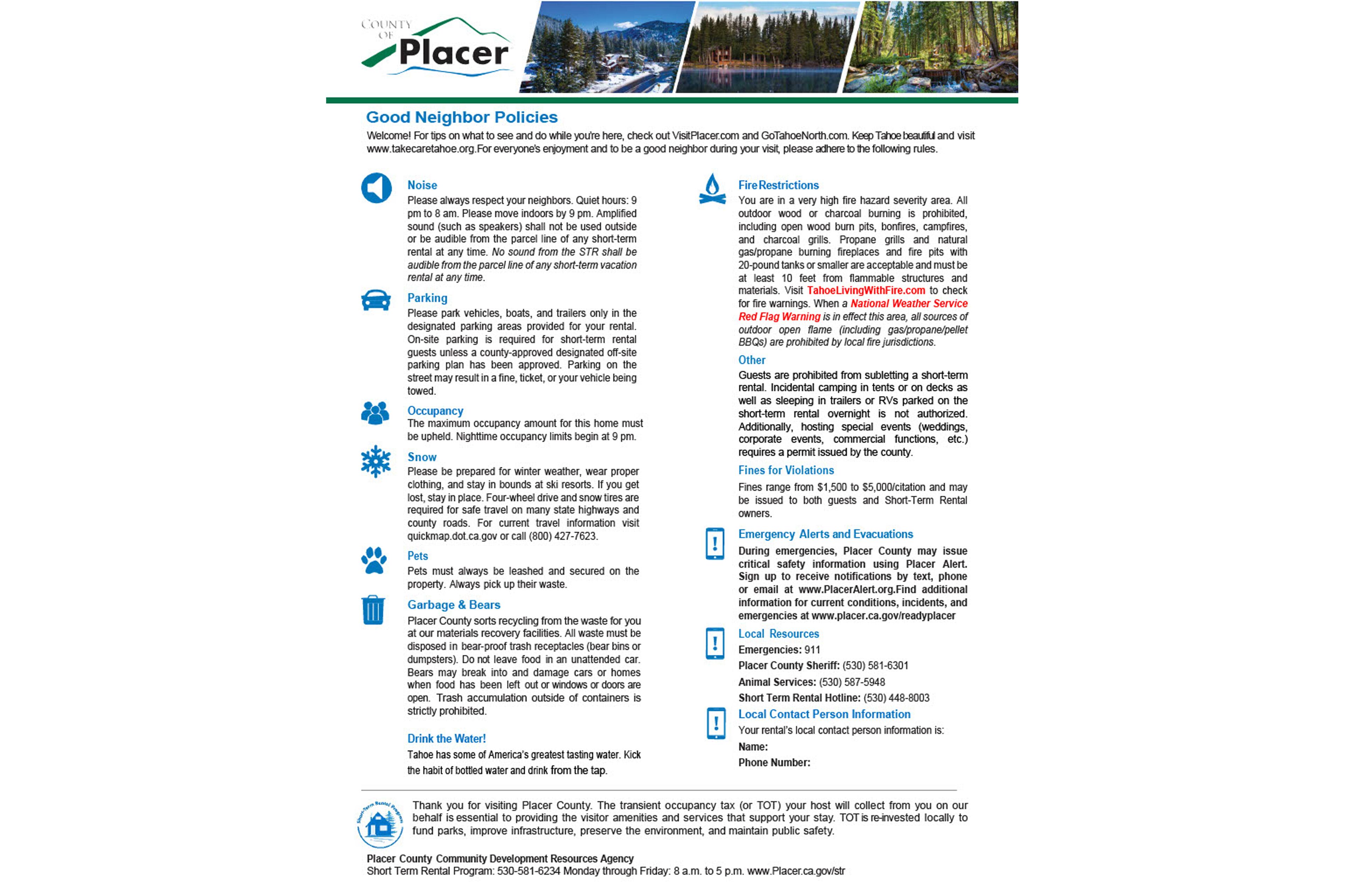 Thunder Lodge: 3 BR / 2.5 BA cabin on West Shore, Sleeps 6. Hot tub & sauna! **PETS PROHIBITED**Welcome to Thunder Lodge, a luxe mountain retreat on the West Shore of Lake Tahoe. Centrally located for easy access to all your Tahoe adventures, this beautiful 3 bedroom, 2.5 bathroom home is a perfect getaway for up to 6 guests. All 3 bedrooms are on the lower level; one with a King, one with a Queen and one with 2 Twin beds. Between the King and Queen bedrooms there’s a gorgeous, spa-like bathroom with dual vanities, heated floor and a heated towel rack. Across the hall, next to the Twin bedroom, is another full bathroom. Each bathroom has a shower but no bathtub. Also on this level, a spacious steam sauna and a large hot tub are at the ready to refresh and relax you after a day on the slopes or the lake.Upstairs, the living room features a leather sofa and easy chairs with lots of cozy throw blankets, giant flat screen TV, and convenient gas fireplace. The fully equipped kitchen offers new GE stainless steel appliances, wine fridge, center butcher block island and plenty of shelf space for all your goodies. The adjacent dining area has a large table with seating for 6 and a buffet nearby for serving. A reading nook, half bathroom and deck with gas grill (available in summer) complete the upstairs layout.Thunder Lodge sits on a level lot with plenty of parking in the heated one-car garage or on the paved driveway.Located in a quiet neighborhood just 3.5 miles south of Tahoe City and a mile south of Sunnyside, the property feels remote but provides easy access to all kinds of activities. You’re minutes away from skiing at Squaw Valley, Alpine Meadows or Homewood Mountain Resort; walking distance to the dazzling blue Tahoe water at Hurricane Bay; literally steps from amazing hiking and biking trailheads at Ward Creek State Park; and a short drive to Sugar Pine Point, DL Bliss and Emerald Bay State Parks.Once you’ve experienced Thunder Lodge, you’ll be “thunderstruck” and won’t want to stay anywhere else!Bedrooms:Bedroom 1 - Downstairs, King BedBedroom 2 - Downstairs, Queen BedBedroom 3 - Downstairs, 2 Twin BedsMust be at least 25 years old to rent.Our properties do not have air conditioning.BBQs are not provided during winter months (November to Memorial Day) CHAINS OR SNOW TIRES ARE OFTEN REQUIRED IN WINTER. PLEASE BE SURE TO READ OUR WINTER DISCLOSURE, PROVIDED WITH A RENTAL CONTRACT ONCE A RESERVATION IS MADE.ON MARCH 11TH 2022, THE COUNTY OF PLACER IMPLEMENTED A NEW SHORT TERM RENTAL ORDINANCE WHICH IS VERY IMPORTANT FOR GUESTS TO ABIDE BY. FINES RANGE FROM $1,500- 5,000 AND CAN BE ISSUED TO GUESTS WHO ARE NOT IN COMPLIANCE. A FULL LIST OF RULES IS ATTACHED AS A PHOTO IN THIS LISTING. •QUIET HOURS ARE FROM 9PM TO 8AM. NO NOISE SHALL BE HEARD ACROSS PROPERTY LINES. NO OUTDOOR SPEAKERS OR AMPLIFIED SOUND ARE TO BE USED AT ANY TIME. •PARKING IS LIMITED TO THE FOLLOWING NUMBER OF SPACES: 4 - STREET PARKING IS PROHIBITED YEAR-ROUND.STR22-6483