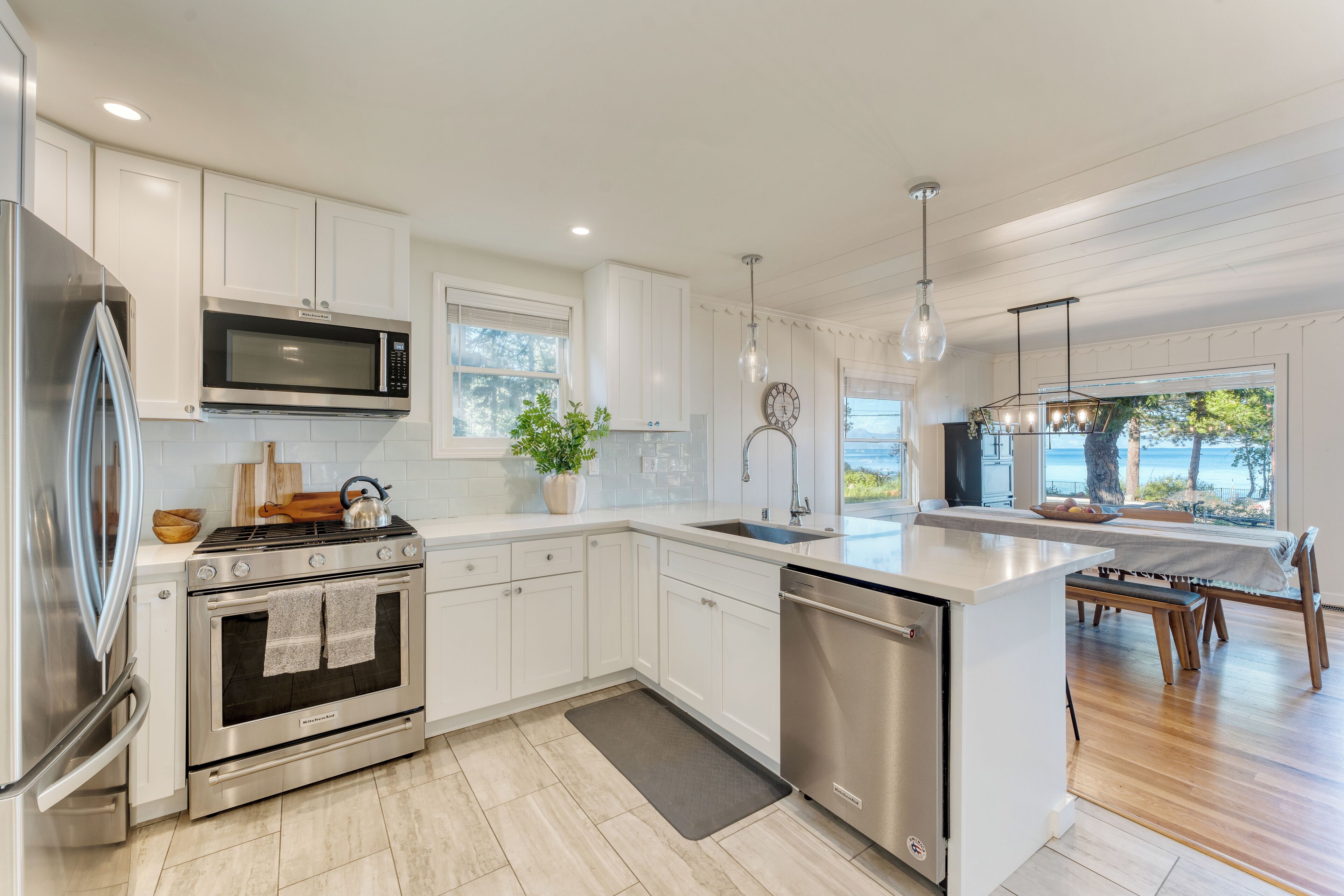 West Shore Lake House by AvantStay | Lakefront + Beach Access! Welcome to West Shore Lake House, your ultimate retreat right across the street from Lake Tahoe! This charming property, consisting of a main house and a guest house, offers a perfect blend of rustic charm and modern comforts, making it ideal for a memorable mountain getaway.Inside, the main house features an inviting atmosphere. Large windows span the front of the house, complementing the space with natural light and views of the lake. Get cozy and unwind by the stone fireplace, or gather around for the ultimate group game night. The sleek, fully-equipped kitchen is a delight for home cooks, featuring stainless steel appliances and ample counter space. Whether you're grabbing a quick snack at the barstool counter or enjoying a family meal at the dining table, this space is designed for both convenience and togetherness.Upstairs in the main house, three bedrooms await for a restful night of sleep. The primary bedroom features a queen bed and an ensuite bathroom, and Bedroom 2 also offers a queen bed. The third bedroom features two bunk beds and two twin trundles, perfect for the kids. The guest house offers additional space and privacy, with a main floor featuring a cozy living area, dining nook, and a convenient kitchenette. Upstairs, you'll find a fourth bedroom with 2 full beds, 2 twin beds, and 2 twin trundles, providing plenty of space for larger groups or families traveling together.Step outside to the spacious front patio, where the lakefront views will take your breath away. Gather around the comfortable seating area for an evening cocktail, dine alfresco at the outdoor dining table under the large umbrella, and soak in the stunning views of the lake.West Shore Lake House is perfectly located to explore all that Lake Tahoe has to offer. Enjoy the serene beauty of the lake, just steps from your door, or venture out to nearby attractions. Whether you're here for summer lake days or winter skiing, this home provides the perfect base for your adventures. Book your stay at West Shore Lake House and experience the best of Lake Tahoe living with comfort, style, and unbeatable views!AvantStay provides an upscale experience with services that elevate your stay and save time so you can enjoy every moment. Guests have access to a 24/7 support team and a tech-enabled concierge to book services, such as fridge stocking, mid-stay cleanings, and private chefs. For anything you need (or never knew you needed), we’re at your service!Situated in the snowy Sierra Nevada Mountain range straddling the border between California and Nevada, Lake Tahoe offers stunning panoramic scenery and year-round adventure. Visitors flock here especially to ski and snowboard on dramatic slopes that seem to fall into the abyss of the lake's cobalt blue water. Whether you're looking for a day in the mountains or a cruise on the lake, you can have it all in Tahoe.Local Attractions: Homewood Ski Resort, Palisades Tahoe, Eagle Falls Trail (hiking), Eagle Rock (hiking and lookout point), Emerald Bay, Sugar Pine Point State Park (Nordic events of 1960 Winter Olympics), Inspiration Point Vista, Chambers Landing Bar & Grill (American), Meeks Bay Marina and Beach, Tahoma Market, and the Rubicon (world-famous 4x4 trail).Home Truths:- Unfortunately, pets are not allowed in this home. If undisclosed pets are brought into the home without AvantStay's approval, there is a fine of $500 per pet.- There are two bear mats by the side and back doors.- Due to extreme wildfire risk, any type of outdoor wood-burning fireplaces, fire pits, or charcoal grills are strictly prohibited. Violations will result in fines starting at $5,000 per Lake Tahoe short-term rental regulations.- Please note this home does not have AC. Fans are provided in every closet to help you stay cool.- The beach across the street is semi-private. Guests have access to it, but it is not exclusive and neighbors often use the small frontage.- There is a private buoy available for guests to rent.Parking Details:- Long tandem four-car driveway.- No street parking allowed.- Violations result in fines of $1,000 and up, and revocation of the permit after three or more violations.This home comes with a pack n' play travel crib and high chair available.---The room configuration is as follows:Primary Bedroom / Queen bedBedroom 2 / Queen bedBedroom 3 / 2 twin over twin bunk beds, 2 trundle bedsBedroom 4 (Guest House) / 4 twin beds, 2 trundles---Accidental Damage Protection: A non-refundable accidental damage protection plan has been included in the price of your reservation. Under this plan, you will not be held responsible to pay for accidental damage or loss to the rental property resulting from you or others in your party up to $2000. This plan does not cover intentional acts of a guest, gross negligence, or willful and wanton conduct, and/or damages caused by pets. This plan is not available for reservations 28 days or longer or reservations that require a security deposit.This is a smoke-free property. Violation of the no-smoking policy will result in forfeiture of the security deposit, a $300 smoking fee, and liability for any fire or property damage costs.As part of our commitment to being good neighbors, occupancy limits and quiet hours (9pm-8am) are strictly enforced. No speakers or sound systems will be provided for use in our properties. Violation of any noise ordinances will be subject to fines that can reach up to $10,000 per violation. Events or parties are not allowed without prior written approval and an additional fee. Any unauthorized parties or events will be shut down and a fine will be assessed. Please inquire for more information about our event policies and fees. There is nothing more important to us at AvantStay than the health, safety, and experience of our guests & staff. We've enhanced our cleaning and sanitation protocols and are taking extra care to disinfect all surfaces between reserv
