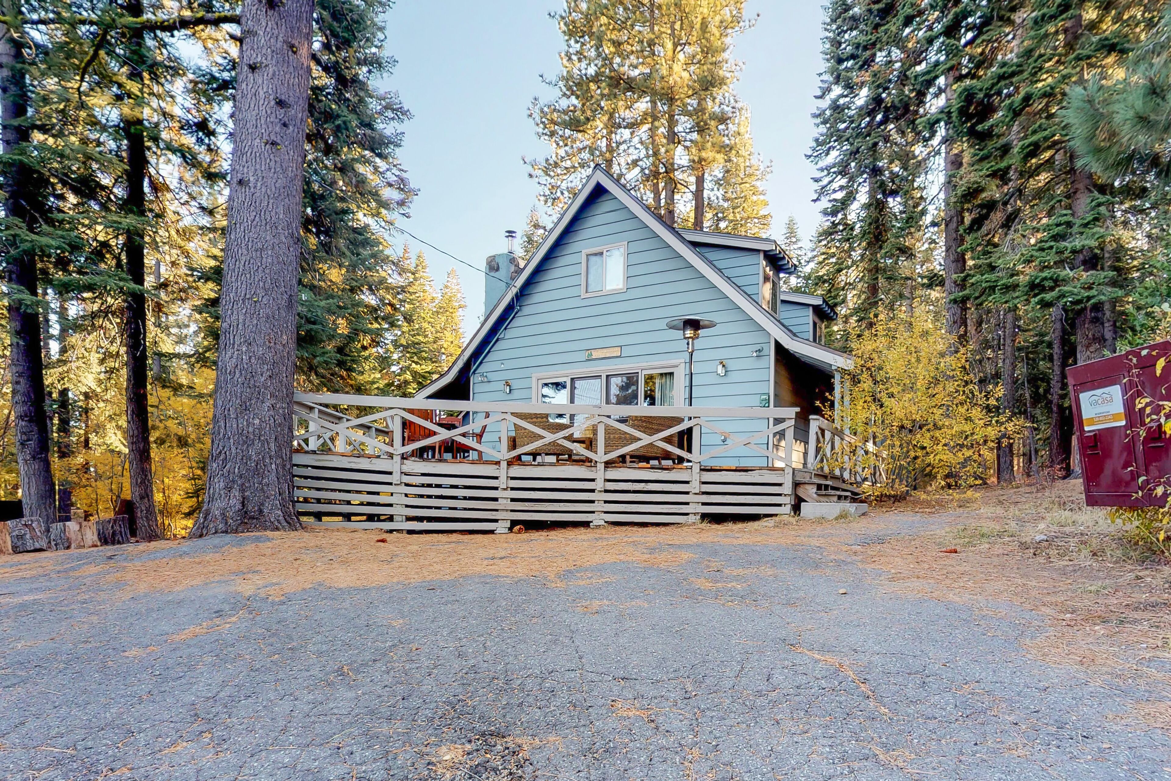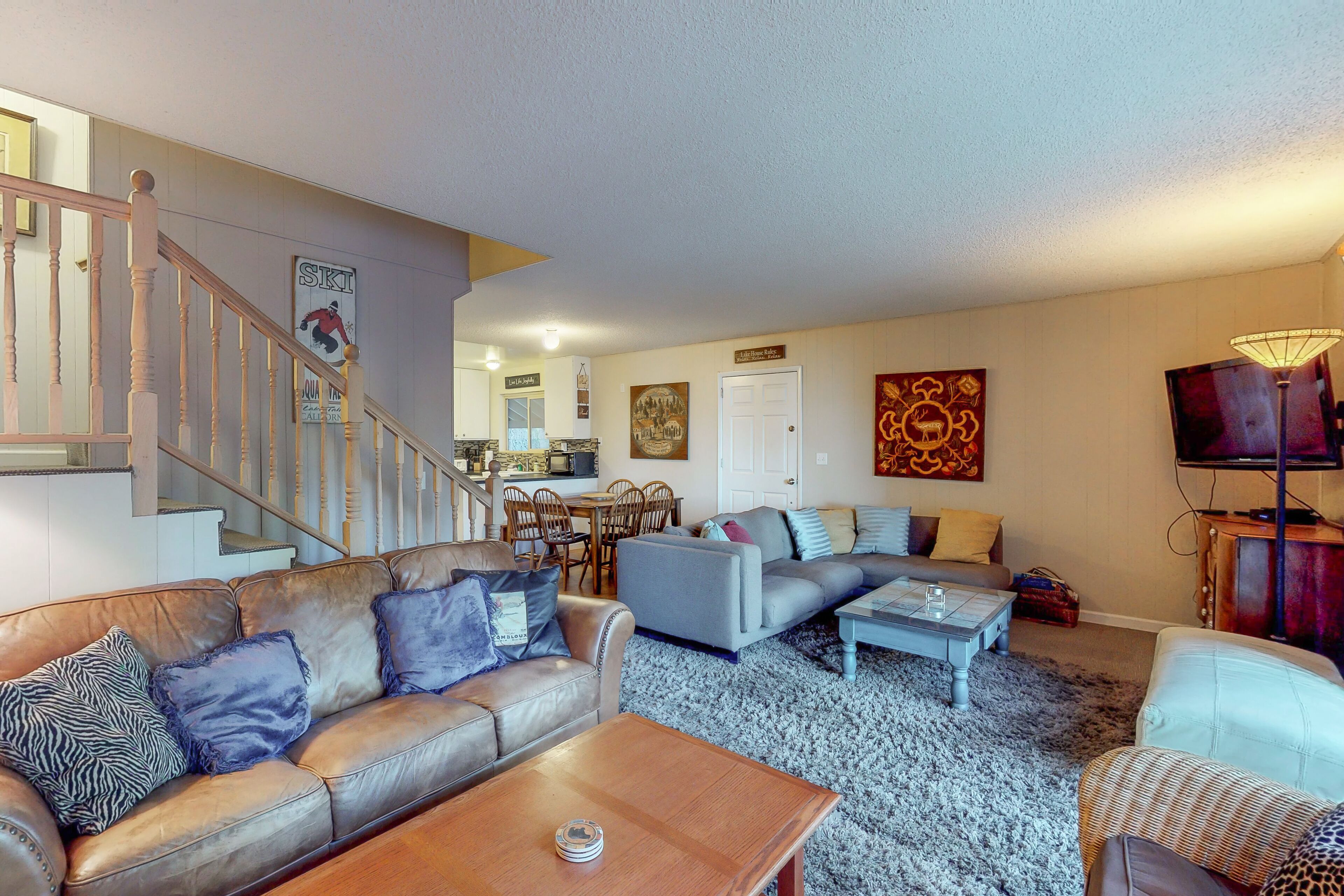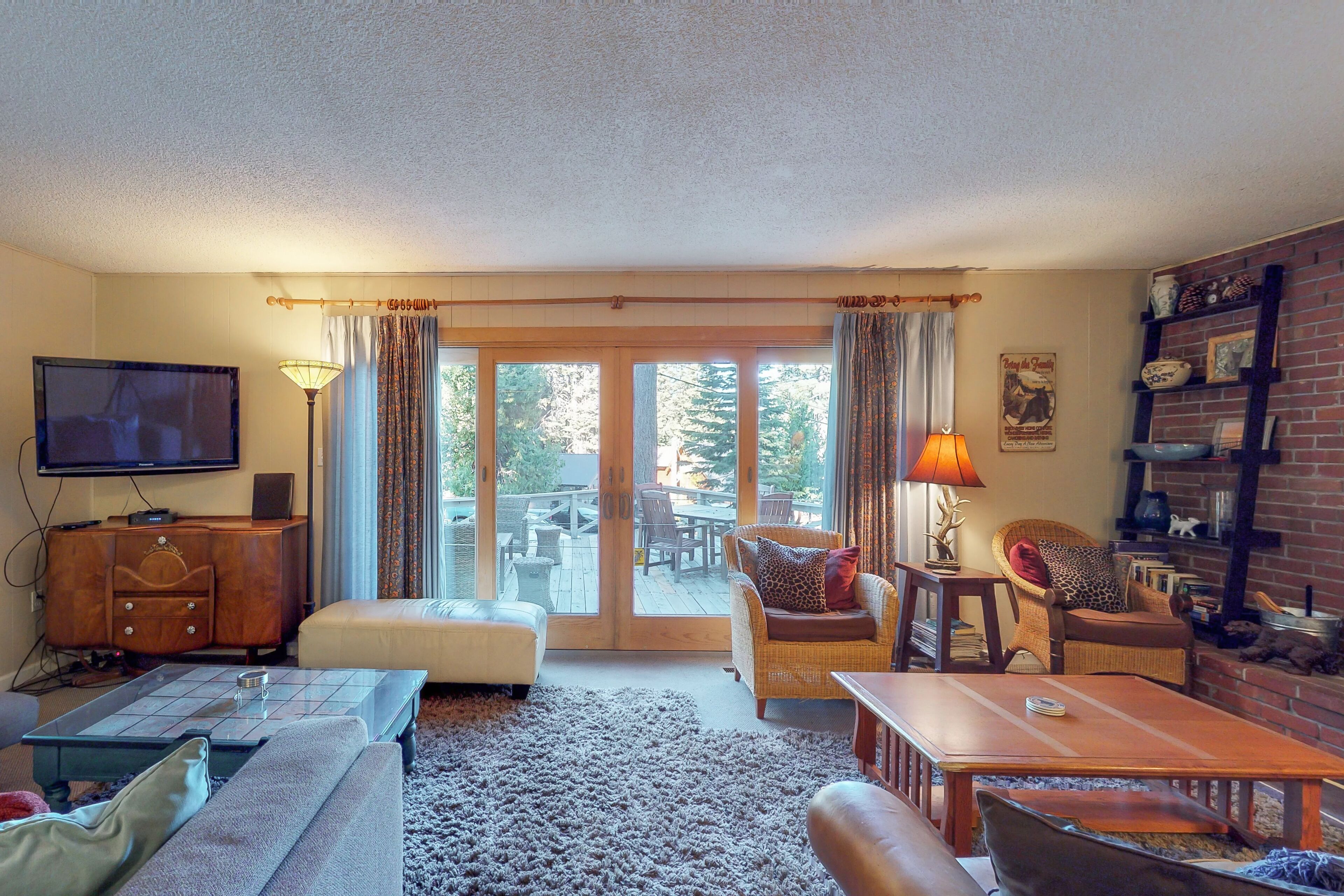 Lakeview Home with Spacious Deck, WiFi, Washer/Dryer & Private Hot Tub West Shore Lakeview BeautyOur calendar is updated in real-time & our nightly rates are accurately displayed. Simply enter your desired dates and click 'Book Now!'*The hot tub is temporarily closed due to county rental guidelines for renting as noted by local regulations, OSHA and the CDC.Situated comfortably next to the Kaspian Recreation Area, this spacious Homewood vacation rental is ideally located to just about everything! From the shores of Lake Tahoe to the ski runs at Homewood, outdoor activities abound - although you may find that curling up in this peaceful getaway, soaking in the private hot tub, and reconnecting with your loved ones is all the recreation you need. From the wood fireplace with brick facade and cozy couches, to the country decor and wood accents, this living room invites you are your guests to put your feet up. Featuring a large sectional couch surrounding a television and another sitting area with a plush leather couch in front of the fire, there is plenty of space to spread out and relax. You will love being able to escape to the big deck for a breath of fresh air and a moment of solitude among the beauty of the pines that surround this property. There's also a private hot tub for warming up and gazing at the stars.Segue from country to cosmopolitan when you step into this fully equipped kitchen. Brightly lit, with lots of cabinetry and counter space, your chef will have everything at his/her fingertips, including a a big stainless steel fridge and built-in oven with stove top ready to cook delicious meals. There's a microwave for quick snacks on the run or late-night popcorn and a dishwasher, so you have more time to enjoy your vacation! Be sure to pack your favorite bottle of red - wine glasses provided - and a bag or two of coffee beans for the coffee grinder and brewer.With three bedrooms and a loft, this charming and spacious Homewood vacation rental will accommodate eight comfortably. Downstairs is a nice, private bedroom with a roomy king bed. Upstairs, the second bedroom has two twin beds, a twin-over-full bunk, and a TV for late-night movies, making it perfect for younger guests or some laid-back friends to share. The third bedroom has a queen-size bed and a twin, and the open loft area has a fifth twin. Two bathrooms, one with a bathtub and one with a walk-in shower, ensure plenty of hot showers or baths. You and your ten guests will love gathering in the living room in the evening while having plenty of space to retreat at night. And no need to pack too much; there's a washer and dryer for your convenience.Slide a CD into the player and enjoy some music while enjoying the fire. After a day out on beautiful Lake Tahoe, bring out your laptop to check the headlines with the free WiFi, or watch your favorite cable news show on the television. After dinner, watch a flick on the DVD player. Or, how about some old-fashioned family fun with a board game? You will not have to go far to find a bike path, and a great recreation area for running, biking, rollerblading, cross-country skiing, and snowmobiling. Homewood Resort, renowned for its 'peak to shore' skiing - is just four minutes south. You will be happy to know that Squaw Valley, Alpine, and Northstar Ski Resorts are all within 25 miles of Homewood. Don't forget to bring your Sea Ray, there are five boat launches, two of which are right in Homewood. Golf addicts can tee up at nearby Tahoe City Golf Course or Squaw Creek, both less than 10 miles away. Or, for a night out with Lady Luck, make the half-hour drive north over the Nevada border and visit Crystal City's casinos.Don't wait too long to book this West Shore Lakeview Beauty. You are a phone call or click away from soaking up the endless views of Lake Tahoe's sparkling blue water!* Please note that the hot tub is temporarily closed due to county rental guidelines as noted by local regulations, OSHA, and the CDC.If you are bringing a dog on your trip, the pet fee is already included in your quote when selecting ‘Yes’ to pets. No more dogs are allowed.Parking notes: There is free parking available for 4 vehicles.This rental is located on floor 2.Ski shuttle details: Damage waiver: The total cost of your reservation for this Property includes a nightly damage waiver fee, plus tax if applicable (the “Damage Waiver”). (A discount may be applied for stays of 28 nights or longer, if permitted.) The Damage Waiver covers you for up to $3,000 of accidental damage to the Property or its contents (such as furniture, fixtures, and appliances) as long as you report the incident to the host prior to checking out. The Damage Waiver fee eliminates the need for a traditional security deposit.More information can be downloaded from the "Rental Agreement" on the checkout page.Due to local laws or HOA requirements, guests must be at least 25 years of age to book. Guests under 25 must be accompanied by a parent or legal guardian for the duration of the reservation.