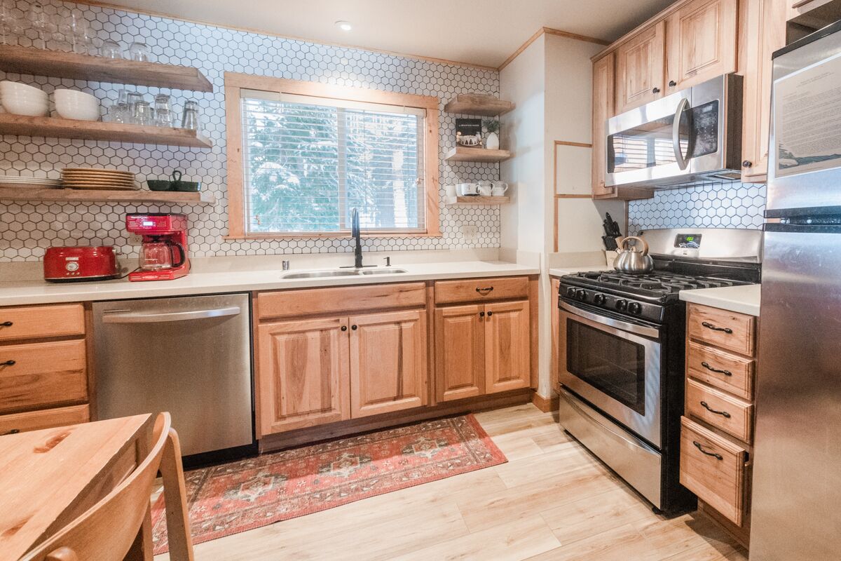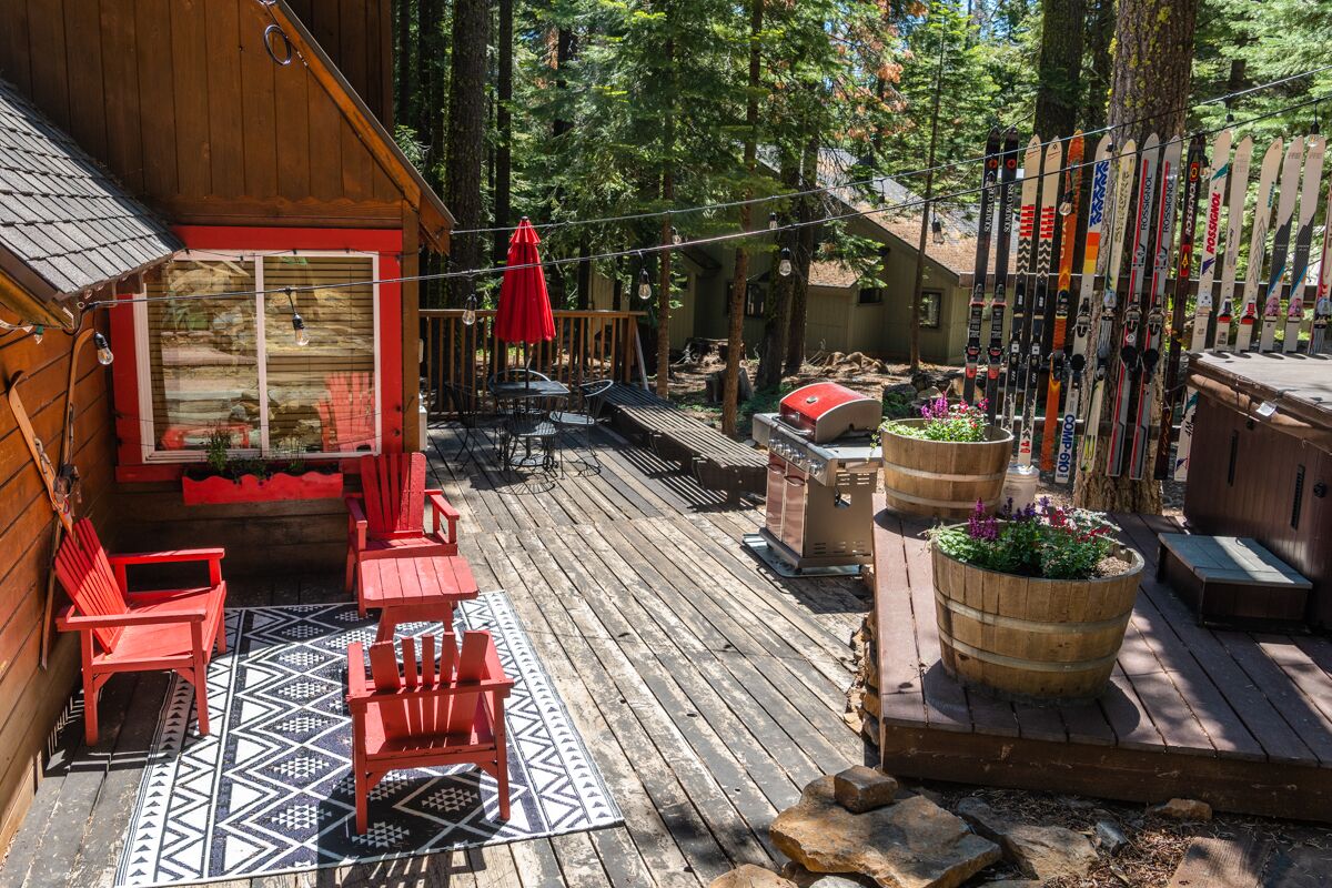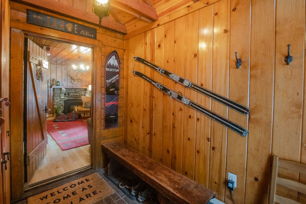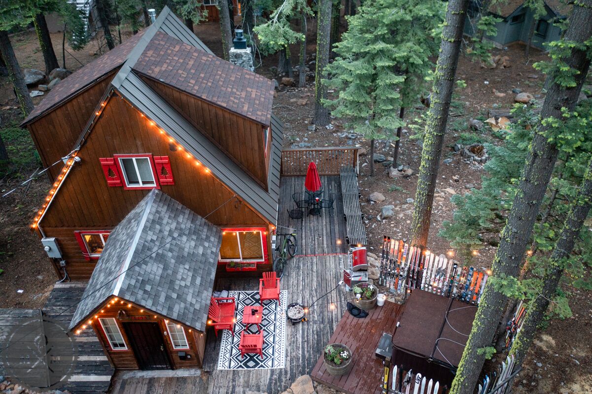 Walk to Beach, Dogs Ok, Hot Tub -Salty Bear Cabin Welcome to "Salty Bear Cabin." A perfect blend of the 1950’s meets Modern. This red trimmed charmer feels like CHRISTMAS ALL YEAR ROUND! 3 Blocks to beach, close to ski resorts and the coziest cabin ever. The perfect morning light and peaceful forest views out the large living room window. Evening white lights set the mood for your hot tub soaking, surrounded by vintage skis. Cozy up near the fire place and enjoy the quiet neighborhood. PERFECT Tahoe Location! Dog Friendly! Sleeps 4-6 Guests.Guests seeking a vacation in which style AND adventure intersect will be thrilled to find Tahoe Timbers Cabin. Tastefully remodeled, this traditional and historical Tahoe cabin exudes a cozy atmosphere sprinkled over with modern amenities. Set back in a quiet woodsy neighborhood on the outskirts of the Sugar Pine Point State Forest, this cabin is perfect for a small family or two couples traveling together. About 3 miles from downtown Tahoe City and about 10 miles from Palisades Tahoe.