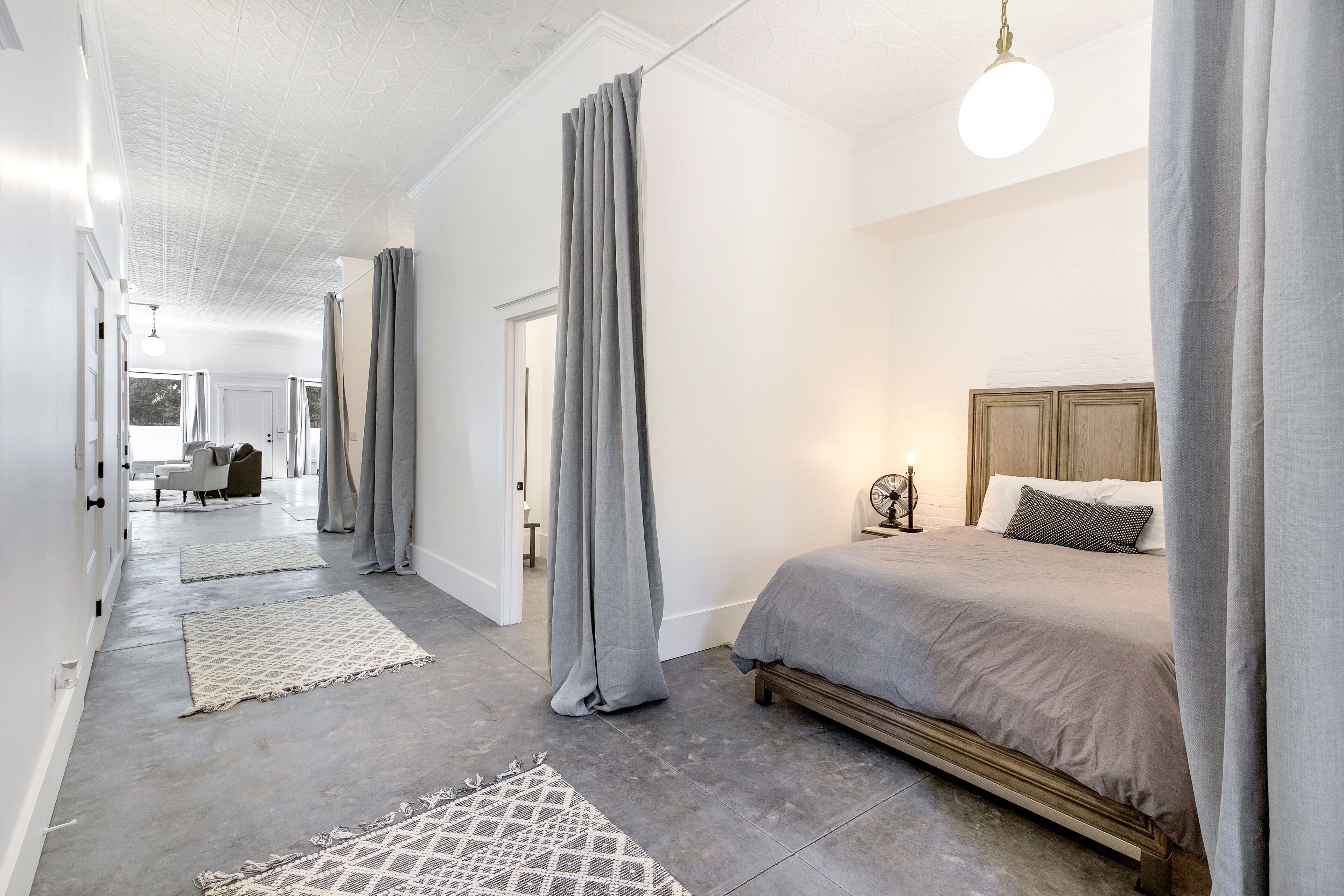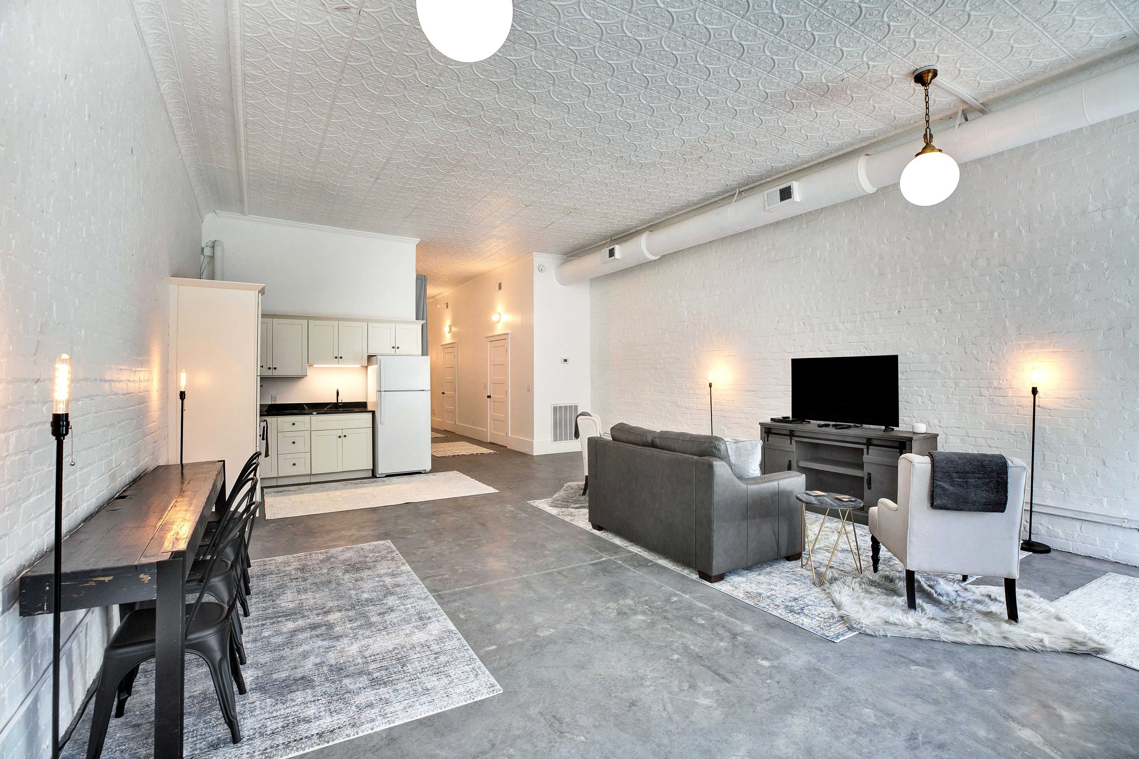 The Grocery - Cozy, Spacious Downtown Building "The Grocery" a 1926 built downtown building in New Market, AL transformed in to a modern and unique location to visit and stay in a piece of history. 2 private bedrooms, a large bathroom, with curbless shower, his and her's closet as well as a full kitchen, laundry, workspace, Wifi, and large tv