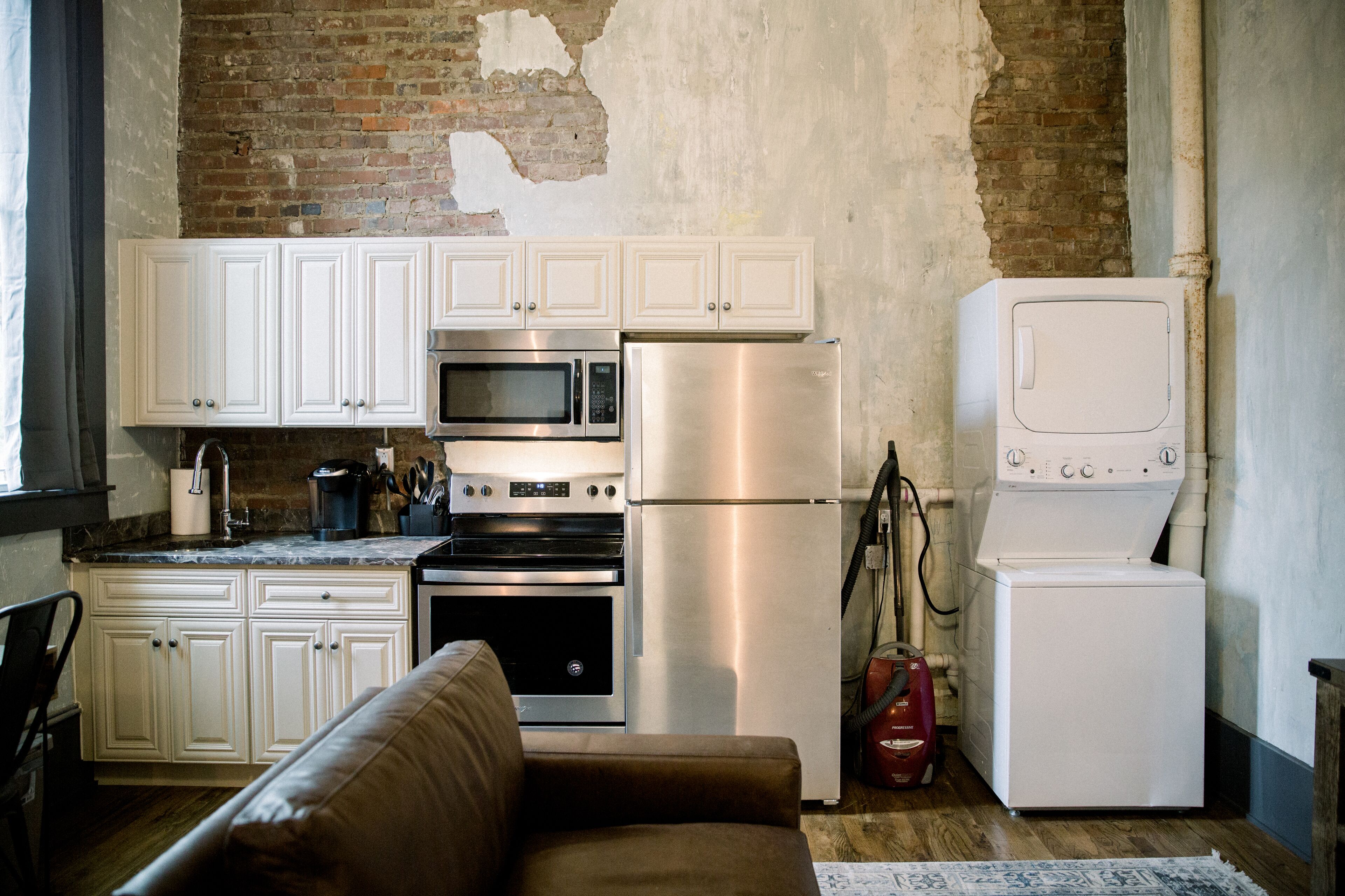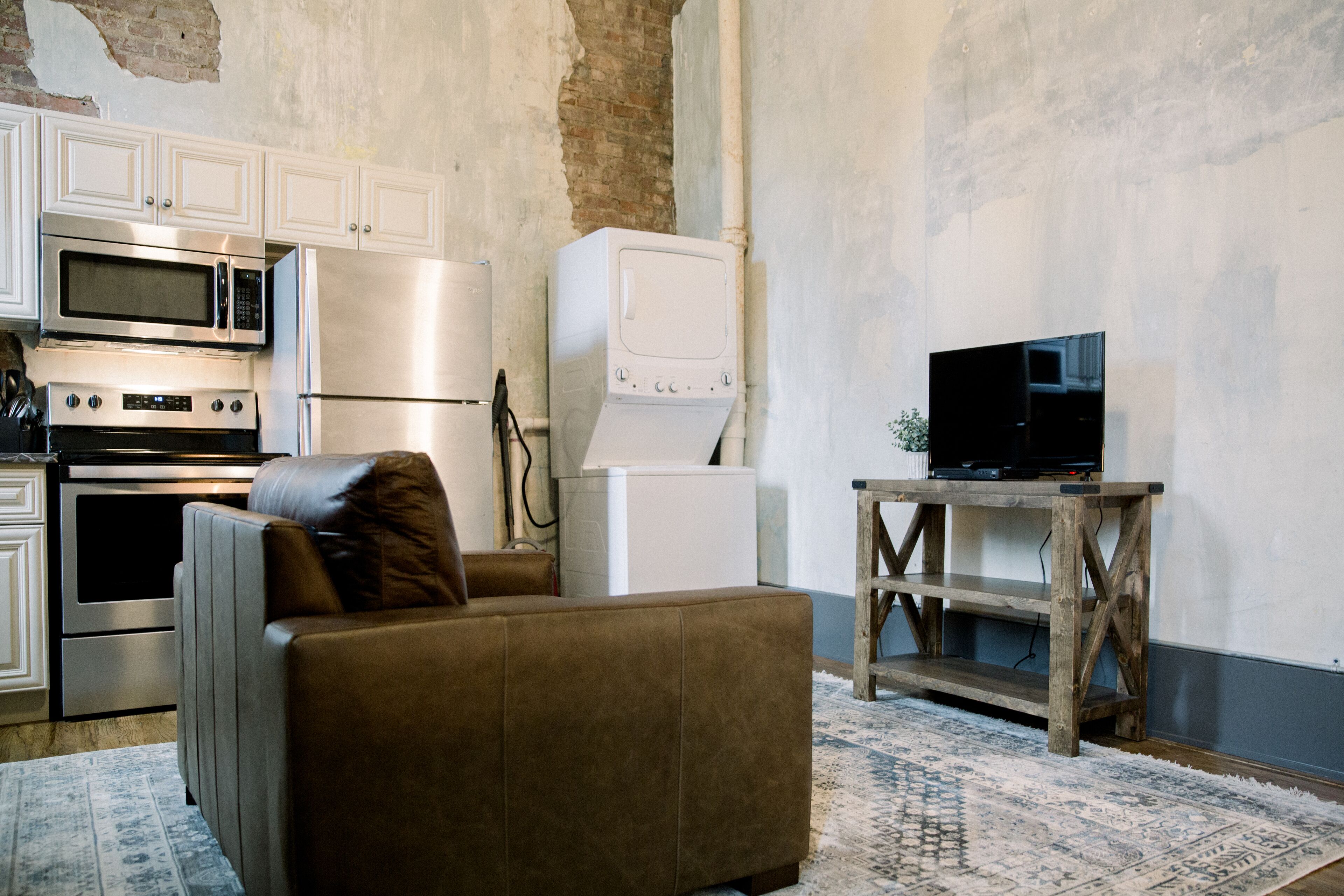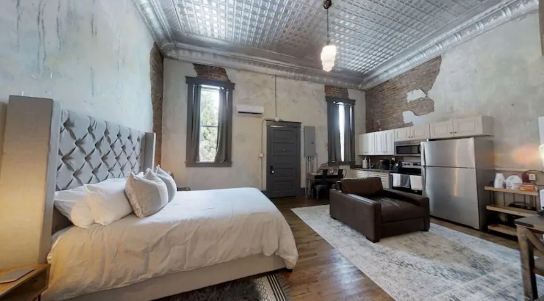 THE BANK - TELLERS QUARTERS (UNQUIE EXPERIENCE) A 1926 bank fully renovated and restored!! Stay in the Bank's back private teller's quarters where the old security guards would stay to protect the bank. This location has everything you need, from Wifi, TV, full Laundry, full kitchen, and large bathroom etc... A truly unique stay opportunity to live and relax behind the banks vault, under it's original silver tin ceilings with all the spoils of home.
