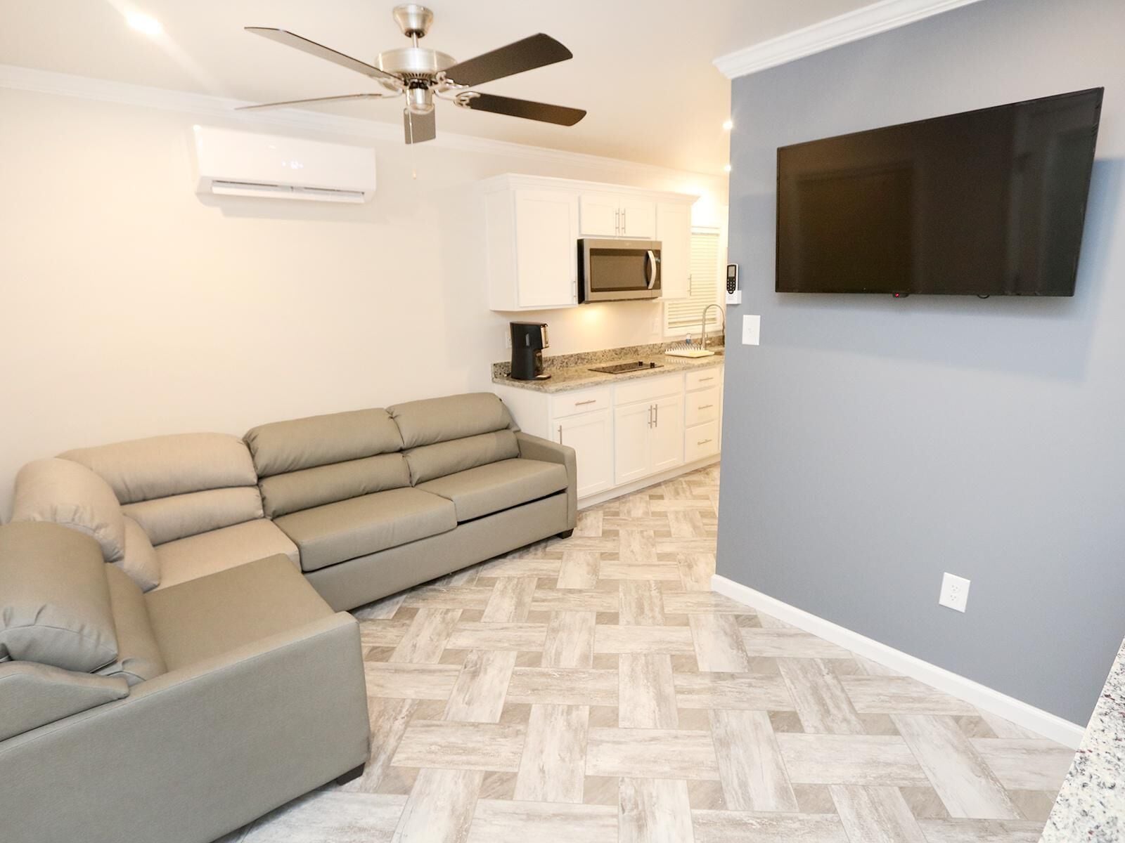 Pet-Friendly Deluxe Cabin at Endless Caverns - Escape to Endless Caverns Resort Camping with the comforts of home? Yes, please. Glamp in our brand-new cozy accommodations! Our Deluxe Cottages are equipped to sleep up to four adults and two kids, offering a private bathroom and a kitchen for your family's cooking needs. Relax on the patio while enjoying a meal in the great outdoors. Top off the night with smores around your private fire ring and picnic table.Note: Linens are not provided in this unit. Please bring linens, towels, and toiletries. All cabins are non-smoking.