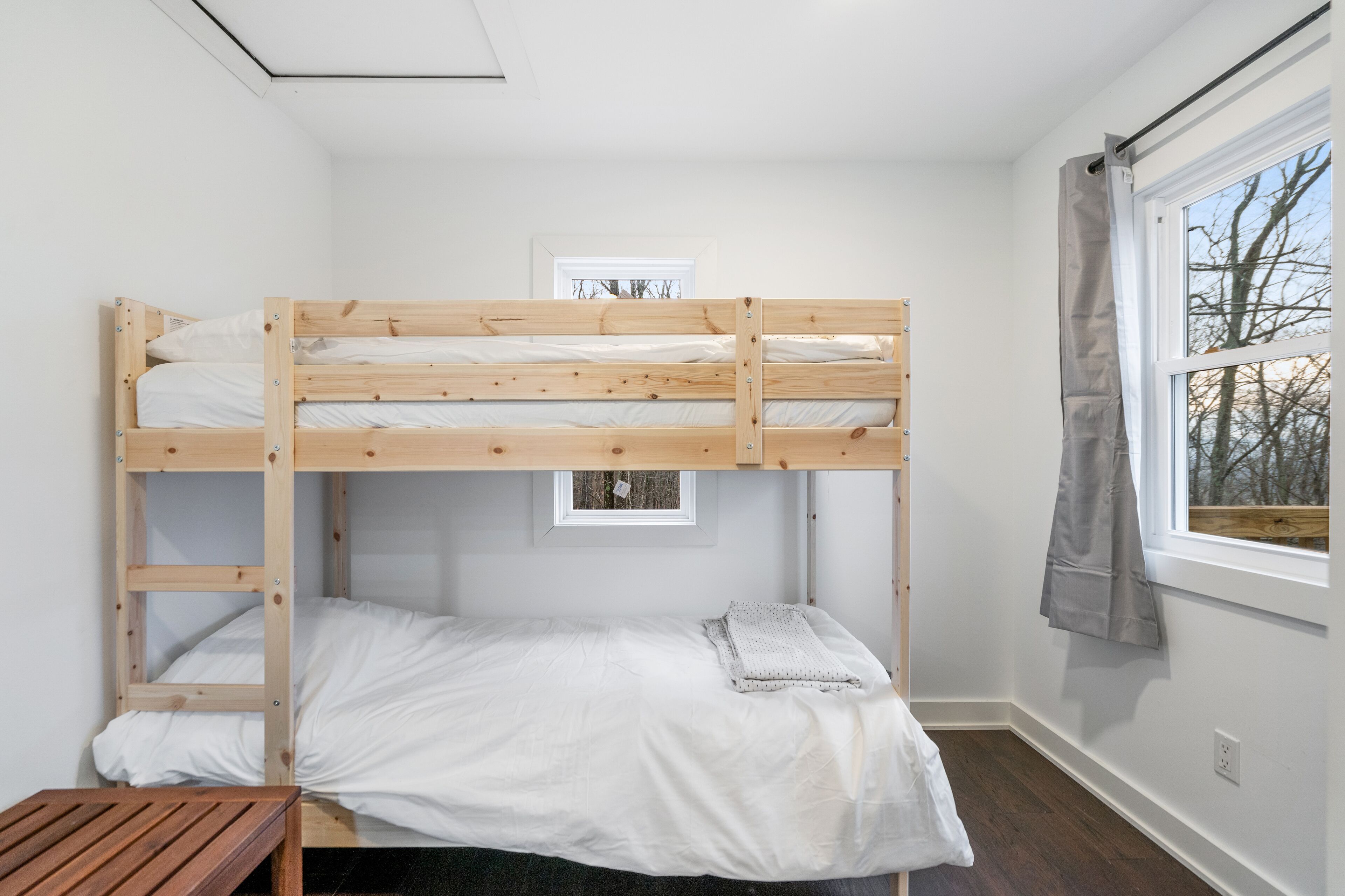 Rustic Chic Elegance - Deck with Grill ★☆ ABOUT THIS SPACE ☆★Indulge in the discovery of a hidden gem - a secluded cabin that exudes charm. This enchanting dwelling is nestled within a tranquil forest, offering a blissful retreat from the hustle and bustle of daily life. Step inside and be greeted by an inviting atmosphere, where the beauty of nature seamlessly melds with your everyday experience. The encompassing forest acts as not only a natural barrier, ensuring privacy, but also as a source of serenity. Picture waking up to the melodic symphony of birdsong and savoring your morning coffee on the porch, bathed in the gentle glow of sunlight filtering through the lush foliage. This unique haven provides a chance to reconnect with the natural world, whether it be embarking on nearby trails, observing wildlife, or simply embracing the tranquility of your surroundings.Experience A Perfect Staycation With Us; Learn More Below!★☆ NEARBY ATTRACTIONS & LANDMARK ☆★☀ 20 min - Luray Caverns☀ 40 min - Massanutten Ski Resort☀ 45 min - Shenandoah National Park★☆ KEY FEATURES ☆★☀ 2 Bedroom with 1 Bath☀ Open concept kitchen, stocked with the essentials☀ Open living area perfect for bonding with families & friends!☀ Outdoor space with deck and BBQ grill and free parking space☀ Adjacent dining room ☀ Washer + dryer★☆ BEDROOM ARRANGEMENT☆★BR1: 1 Queen BedBR2: 1 Bunk Bed★☆ LIVING ROOM ☆★Feel at ease into the inviting living room. The TV with cable/satellite invites you to unwind with your favorite shows and movies, providing entertainment for all. Engage in friendly competition with a selection of playing cards and board games, creating memories and laughter with loved ones. For those seeking quiet moments of relaxation, a collection of reading materials awaits, allowing you to lose yourself in captivating stories. As you soak in the peaceful ambiance, the surrounding forest serves as a tranquil sanctuary, offering a sense of calm and tranquility.★☆ KITCHEN & DINING ☆★The kitchen is wide open to the rest of the living space, creating the ideal spot to cook a full-course meal for the entire gathering, while still entertaining in the living space. With new modern appliances and tons of seating, and plenty of room for the entire gathering to enjoy.★☆ OUTDOOR SPACE ☆★Step onto the deck and immerse yourself in the delightful atmosphere, perfect for outdoor gatherings and leisurely moments. Fire up the grill and savor the aroma of delicious meals being prepared while enjoying the company of loved ones. As you unwind, take advantage of the convenient parking space in the gravel lot, providing ample room for your vehicles.★☆ HOUSE RULES/THINGS TO NOTE ☆★☀ No pets☀ No parties or events allowed☀ No smoking☀ The place has a fireplace but NOT usable☀ All guests will need a 4x4 car all year round to get to the property★☆ Book Now & Let Us Take Care Of You! ☆★