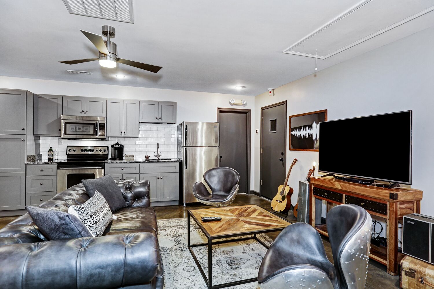 "The Recording Studio" - a real 1970's record studio Completely refinished!! a 1970's Recording Studio, completely redone and refurbished! Fully functioning studio and apartment with privacy, style, and a unique vibe.The apartment at the studio is a complete home in itself and private from the Studio's Recording rooms. You get the experience of being involved at a Recording Studio but all the privacy of your own home.Free Internet/Wifi, TV, Parking, and other fun amenitiesNOTE: You will not be able to access the recording space with this rental. However, you can book the recording area if you'd like. Just ask us here and we will be able to help with that