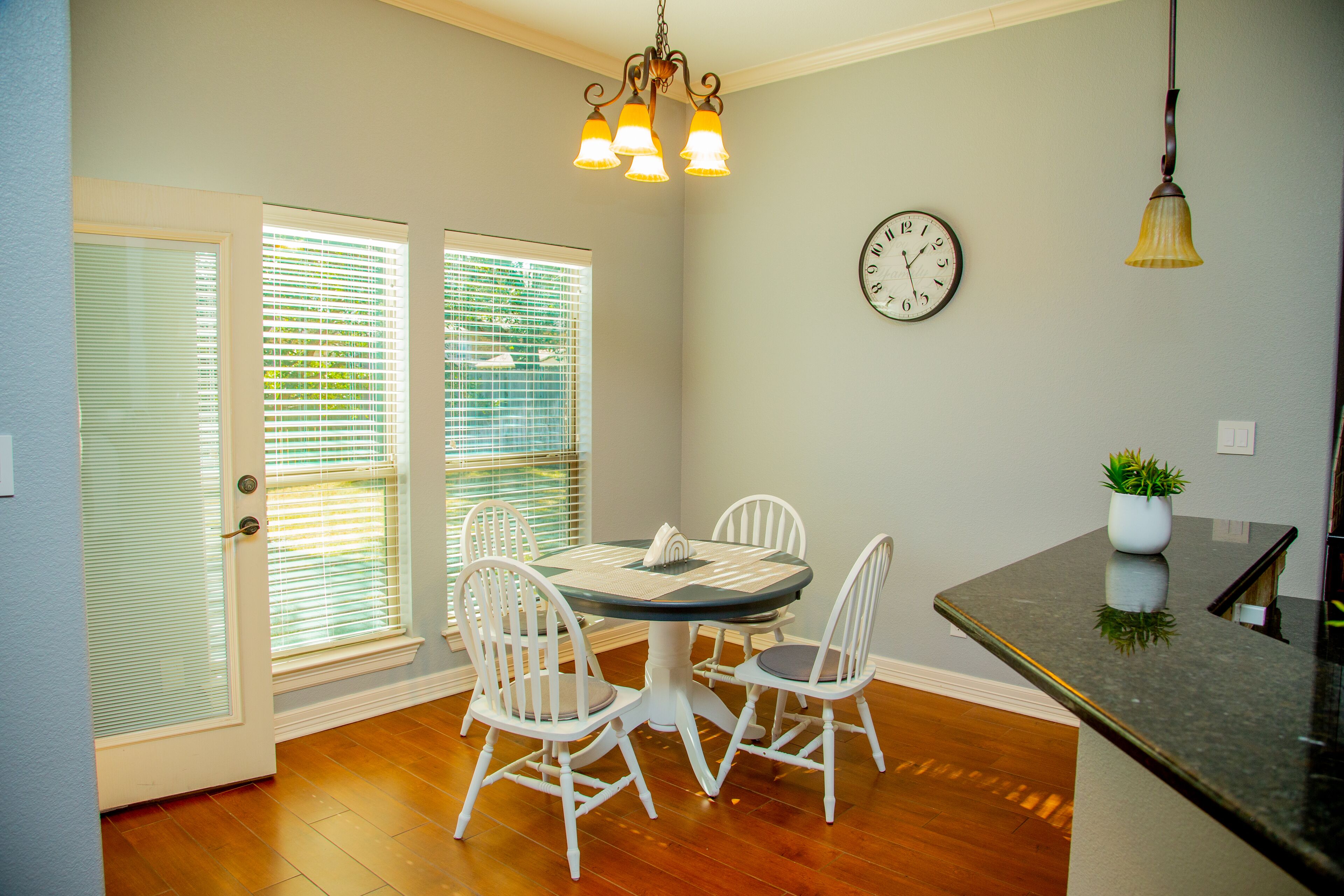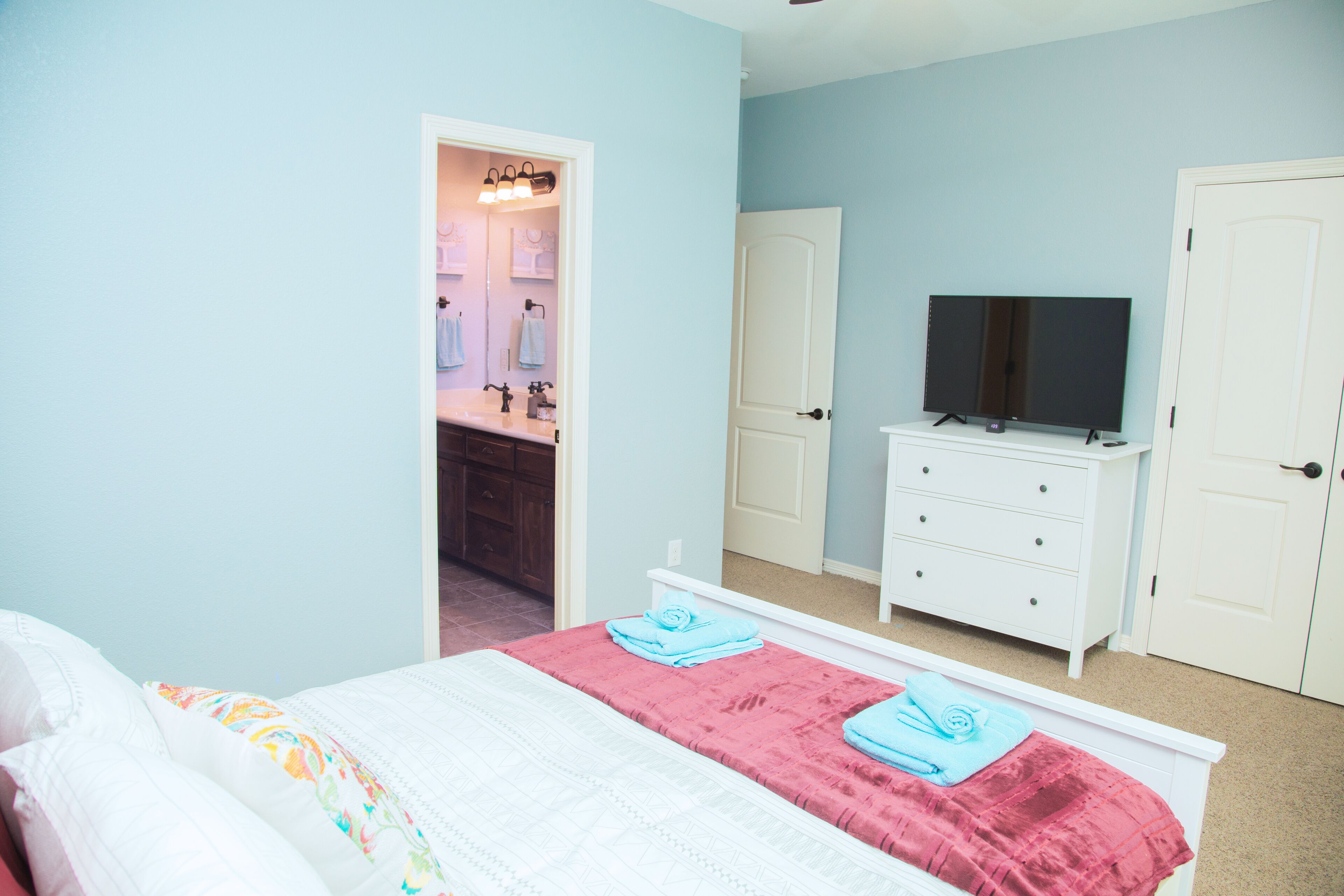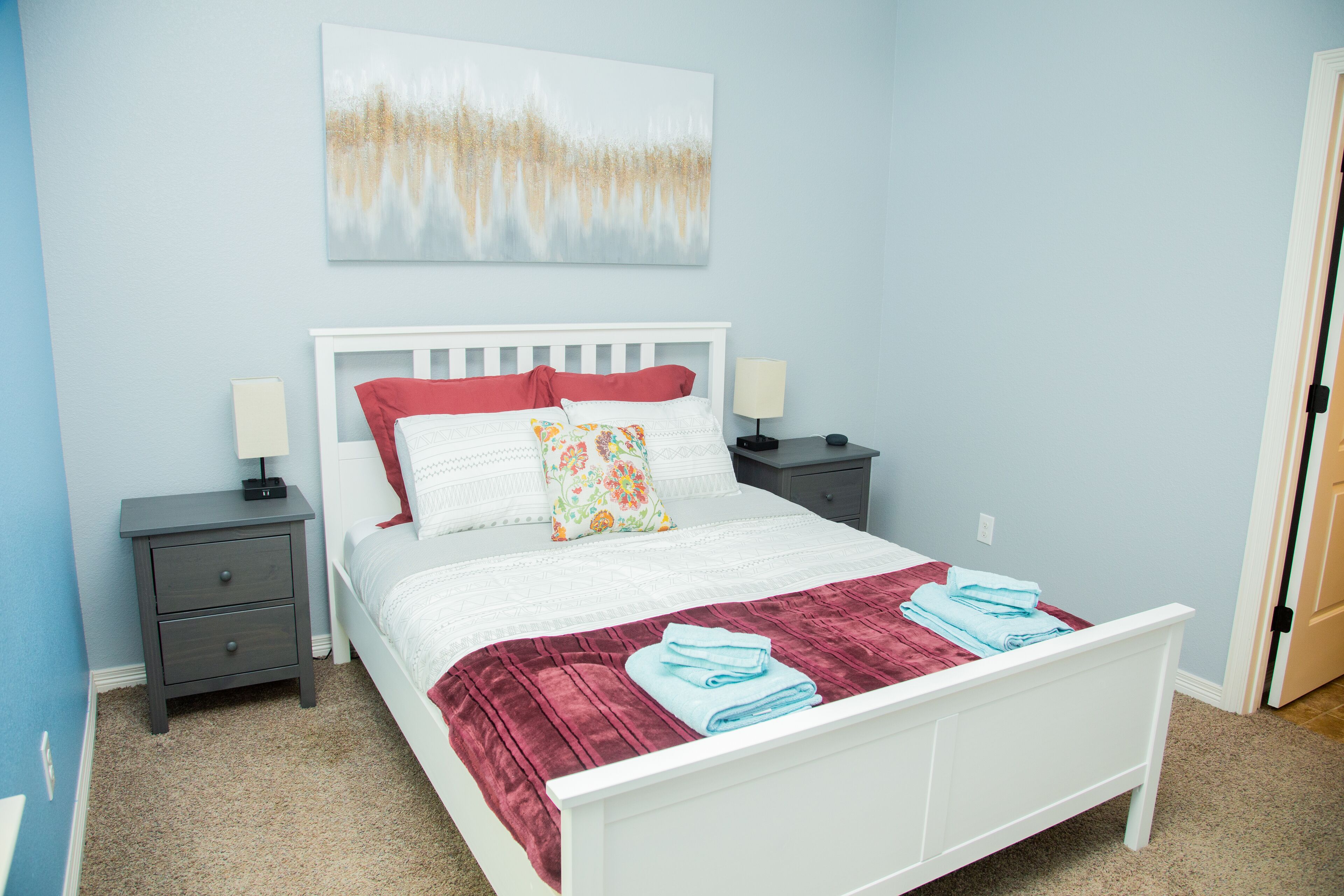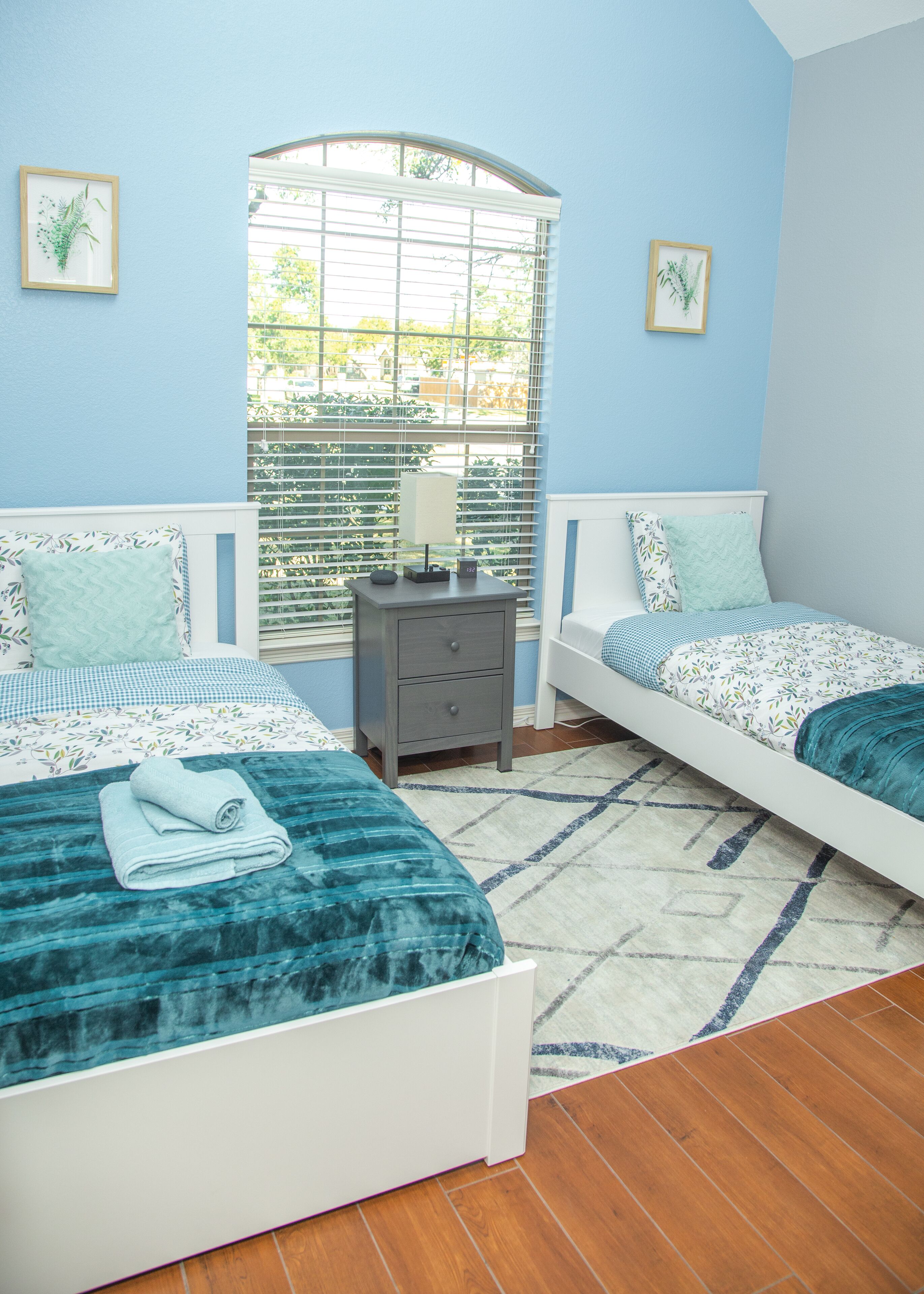 QUIET & SPACIOUS - Amiable Modern Home - Belton Oaks Located in a exclusive part of Belton, you will have access to approx. 2000 sqft of space that includes 3 bedrooms, 2 bathrooms (1 standalone, 1 "Jack and Jill"), living room with a comfortable sleeper sofa, TV, mood lighting, board games; kitchen with the basic pots, pans and utensils and a laundry with a washer, dryer and needed detergent.In the summer months, the yard has outdoor furniture for you to enjoy those warm Texas evenings.Main "Wine-Down" Guest Bedroom:Queen bed with all bed linens, pillows, blanket, towels, 43" TV, clock, lamps and a Mini speaker with a view onto the backyard. A closet with hangers and drawers are provided for your convince.Guest "Warm Yellow" Bedroom:Two twin beds with all bed linens, pillows, blanket, towels, mirror, clock, lamp and a Mini speaker. This room is joined via a "Jack and Jill" bathroom with the Main Guest Bedroom with a view onto the side yard. A closet with hangers and drawers are provided for your convince."Jack and Jill" Bathroom:Dual vanity sink and a separate bathtub/shower and toilet. Soap, shampoo and body wash provided.Guest "Cool Blue" Bedroom:Two twin beds with all bed linens, pillows, blanket, towels, mirror, clock, lamp and a Mini speaker with a view on the street. This room is on the opposite side of the house to the other bedrooms. The room has its own adjacent bathroom.* The colors of the bedrooms reflect the color of the accent pillows.Living Room:- 55" television, board games, sleeper sofa (with linen available in the adjacent closet and the bed made upon request), kids craft table and chair.Kitchen:Basic cooking and eating utensils including plates, cups, pots and pans, oil, herbs, spices, salt and pepper. A welcome serving of coffee, non-dairy creamer, brown cane sugar, tea and filters.Dining:A small breakfast area can seat 4 people around the table., he main dining table, under a gorgeous chandelier, can seat between 8 to 10 people.Storage:On your left there is a small utility closet to hang coats/jackets, along with a set of bed linen for the living room's sleeper sofa (sofa made upon request).Backyard:During the summer months we bring out the furniture, whilst the playhouse is available all year round.Location:Leave the noisy city world behind! Belton Oaks is located only:- 60 minutes from Austin- 35 minutes from Waco- 25 minutes from Killeen/Ft. Hood- 20 minutes from Salado- 15 minutes off the I35 corridor- 13 minutes from Cadence Bank Center (formally Bell County Expo Center)BEFORE MAKING A RESERVATION: please note that we don't allow for any parties or events at the property. The age of the main guest (reservation-holder) must be 25 or older. Unless pre-arranged before the reservation, the main guest must be available and present during the reservation (no third-party bookings).City of Belton Permit Number: 2023-10344