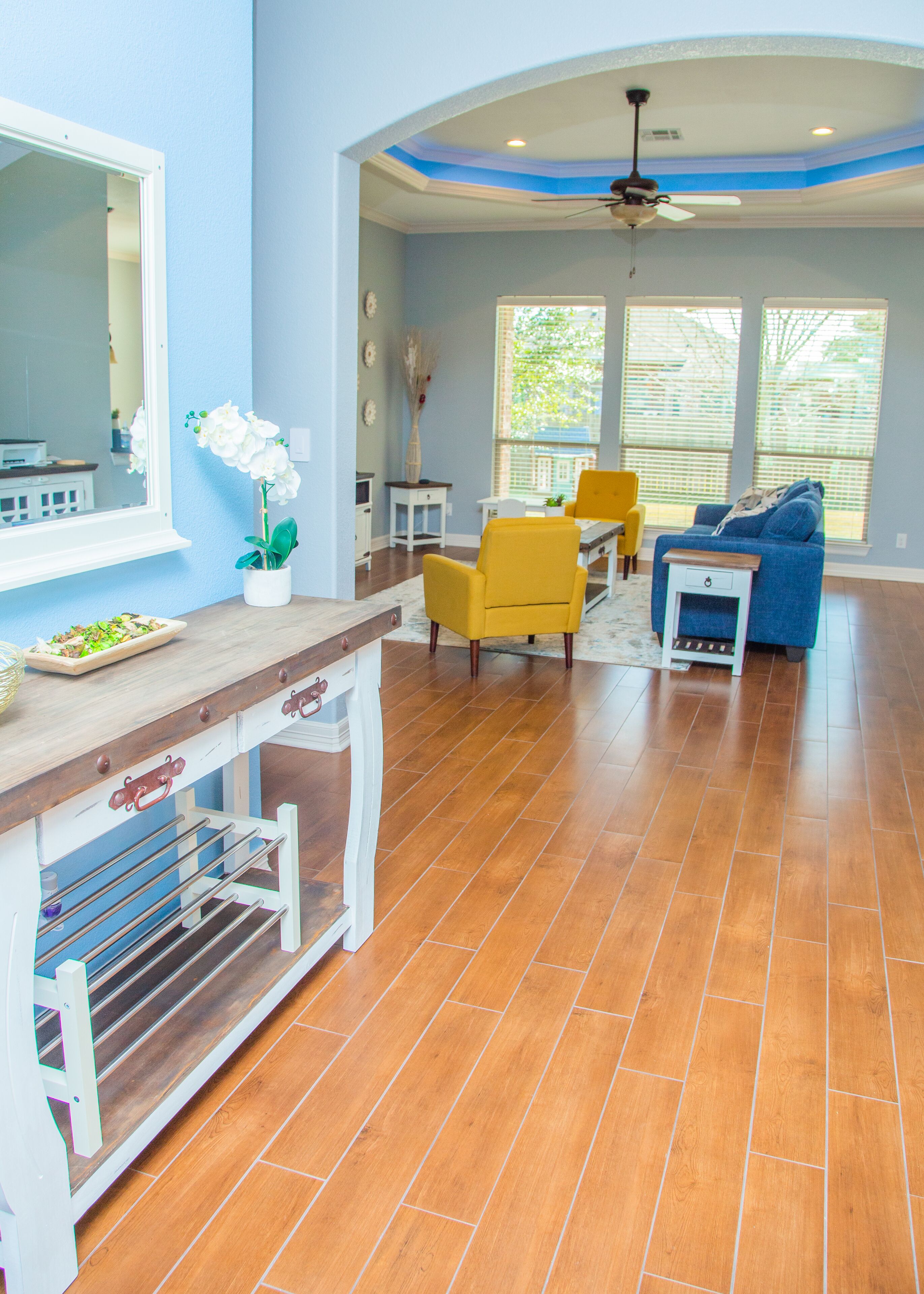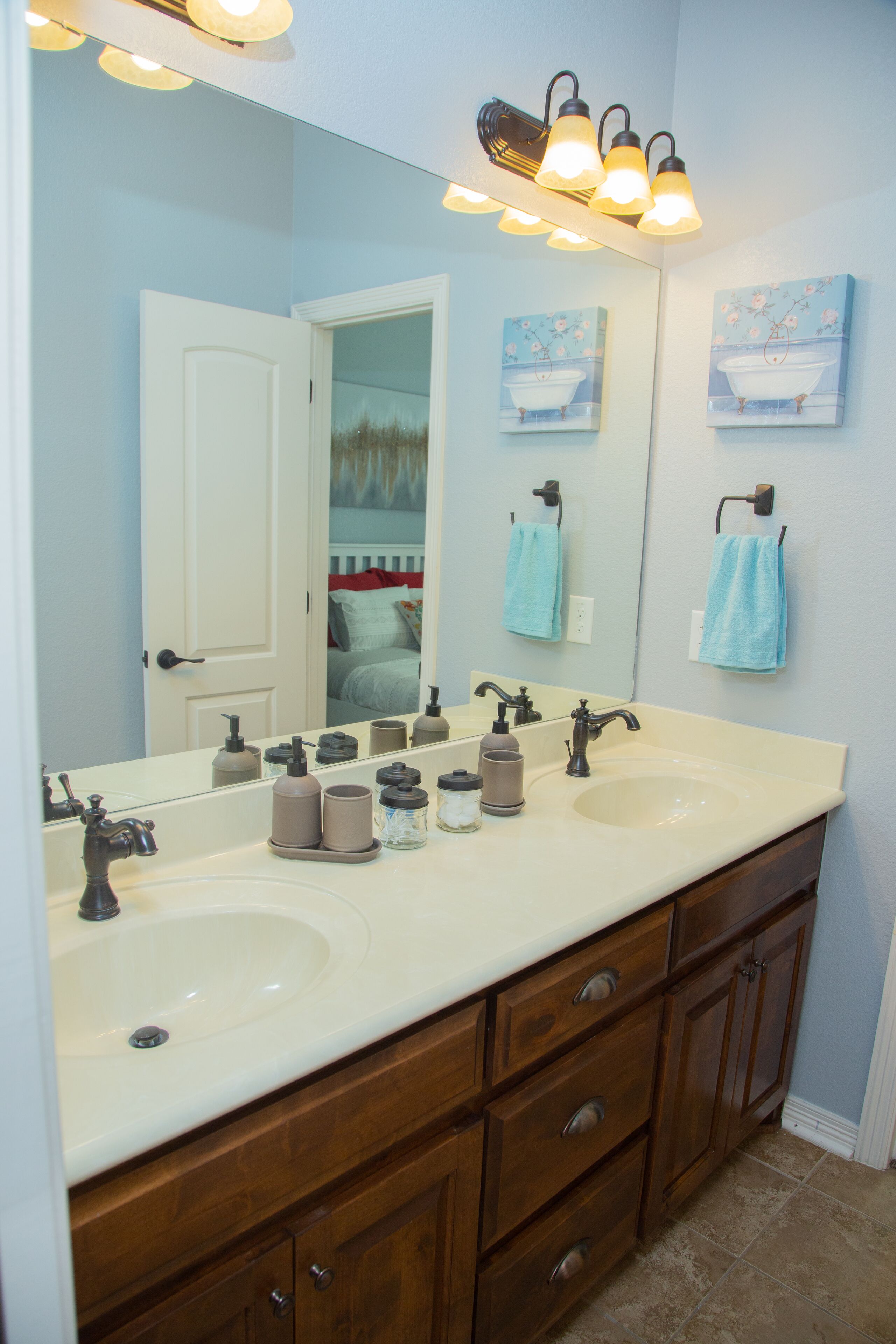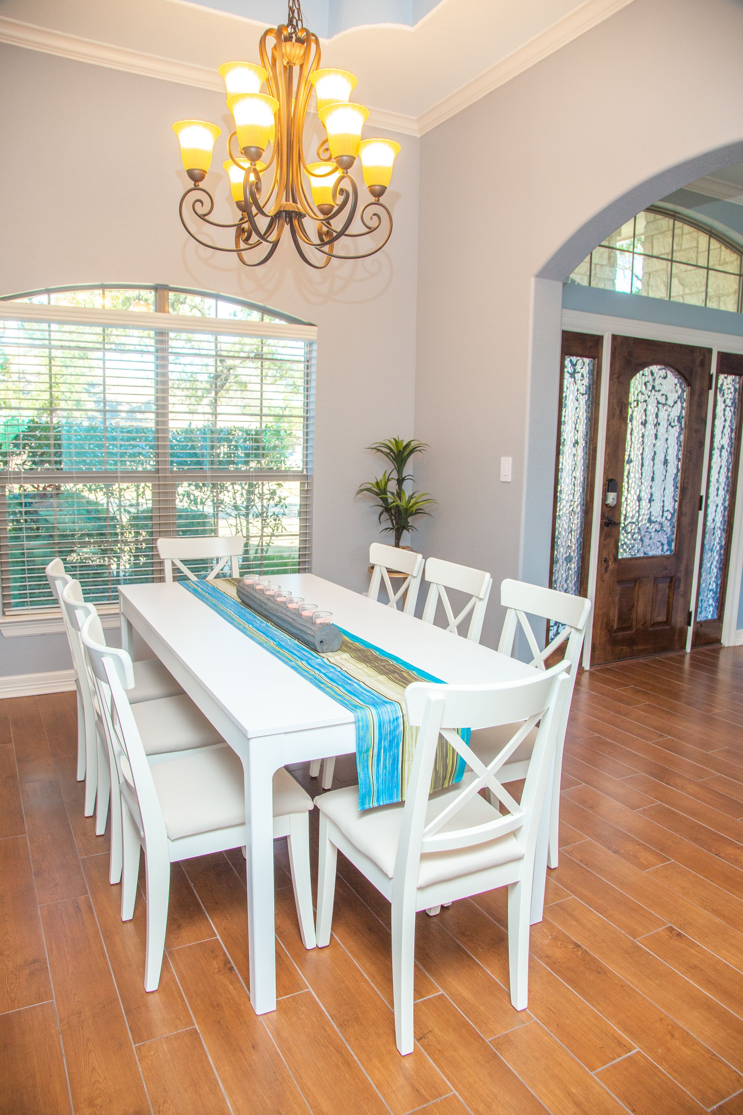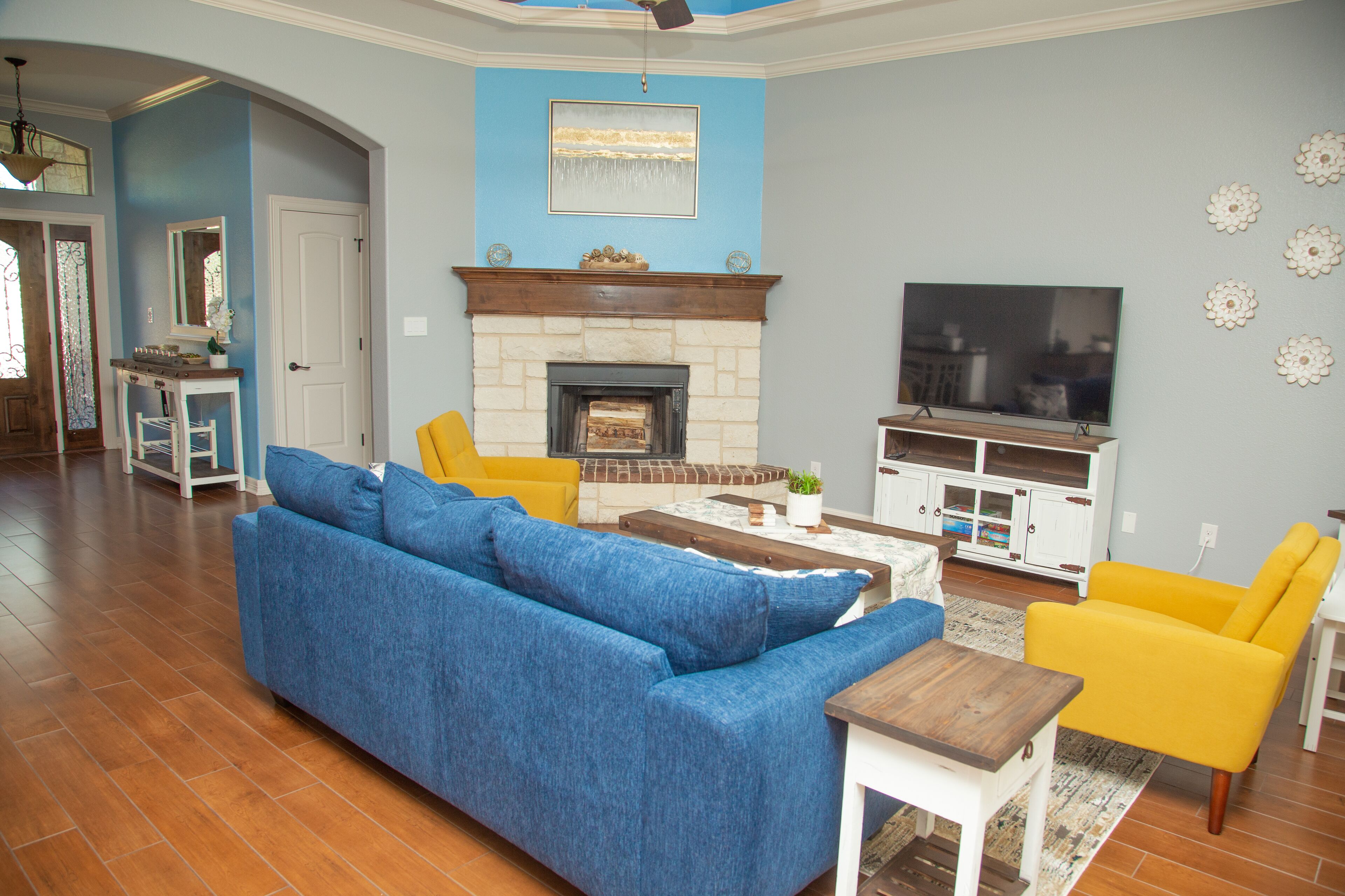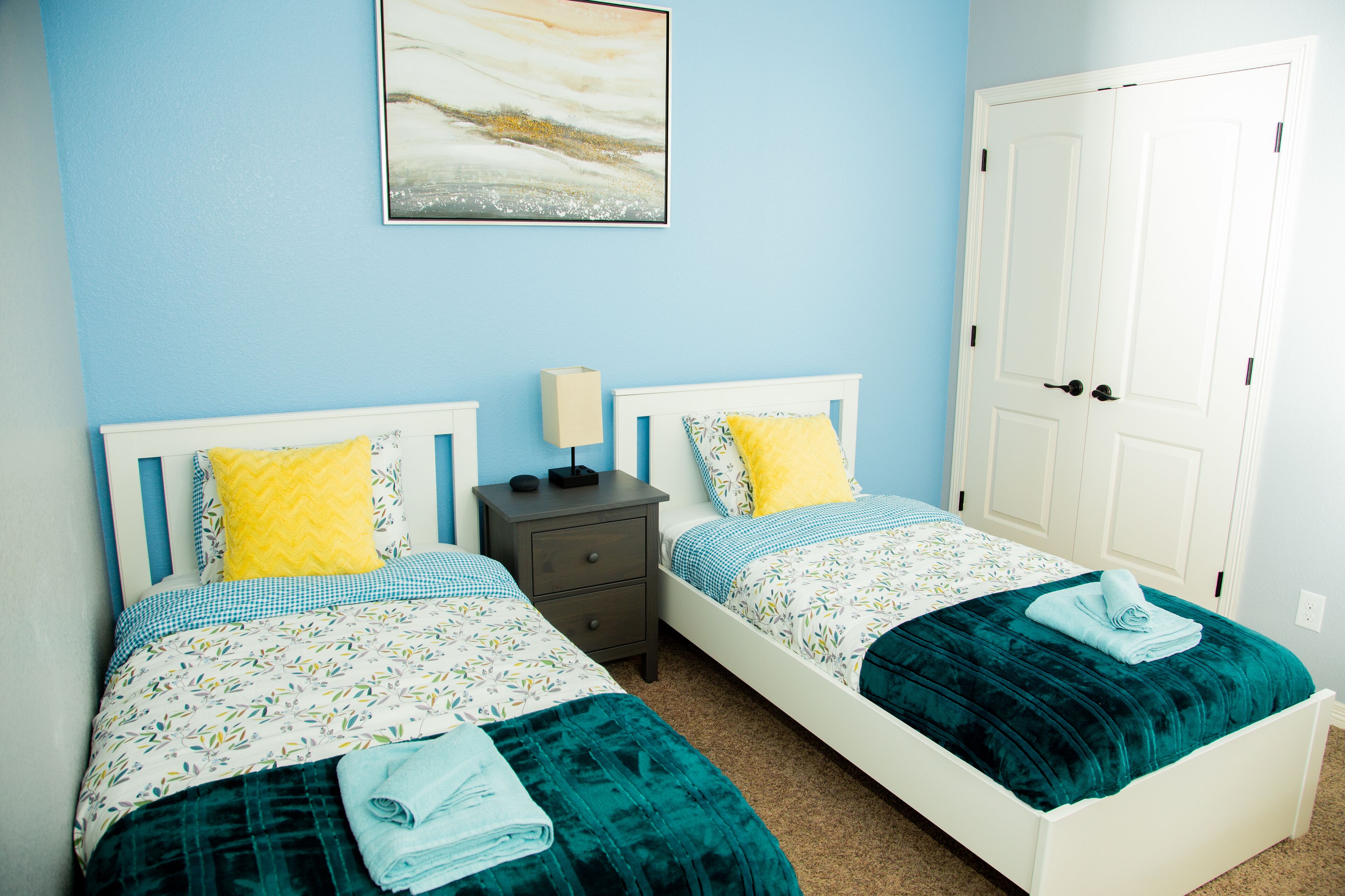 QUIET & SPACIOUS - Amiable Modern Home - Belton Oaks Located in a exclusive part of Belton, you will have access to approx. 2000 sqft of space that includes 3 bedrooms, 2 bathrooms (1 standalone, 1 "Jack and Jill"), living room with a comfortable sleeper sofa, TV, mood lighting, board games; kitchen with the basic pots, pans and utensils and a laundry with a washer, dryer and needed detergent.In the summer months, the yard has outdoor furniture for you to enjoy those warm Texas evenings.Main "Wine-Down" Guest Bedroom:Queen bed with all bed linens, pillows, blanket, towels, 43" TV, clock, lamps and a Mini speaker with a view onto the backyard. A closet with hangers and drawers are provided for your convince.Guest "Warm Yellow" Bedroom:Two twin beds with all bed linens, pillows, blanket, towels, mirror, clock, lamp and a Mini speaker. This room is joined via a "Jack and Jill" bathroom with the Main Guest Bedroom with a view onto the side yard. A closet with hangers and drawers are provided for your convince."Jack and Jill" Bathroom:Dual vanity sink and a separate bathtub/shower and toilet. Soap, shampoo and body wash provided.Guest "Cool Blue" Bedroom:Two twin beds with all bed linens, pillows, blanket, towels, mirror, clock, lamp and a Mini speaker with a view on the street. This room is on the opposite side of the house to the other bedrooms. The room has its own adjacent bathroom.* The colors of the bedrooms reflect the color of the accent pillows.Living Room:- 55" television, board games, sleeper sofa (with linen available in the adjacent closet and the bed made upon request), kids craft table and chair.Kitchen:Basic cooking and eating utensils including plates, cups, pots and pans, oil, herbs, spices, salt and pepper. A welcome serving of coffee, non-dairy creamer, brown cane sugar, tea and filters.Dining:A small breakfast area can seat 4 people around the table., he main dining table, under a gorgeous chandelier, can seat between 8 to 10 people.Storage:On your left there is a small utility closet to hang coats/jackets, along with a set of bed linen for the living room's sleeper sofa (sofa made upon request).Backyard:During the summer months we bring out the furniture, whilst the playhouse is available all year round.Location:Leave the noisy city world behind! Belton Oaks is located only:- 60 minutes from Austin- 35 minutes from Waco- 25 minutes from Killeen/Ft. Hood- 20 minutes from Salado- 15 minutes off the I35 corridor- 13 minutes from Cadence Bank Center (formally Bell County Expo Center)BEFORE MAKING A RESERVATION: please note that we don't allow for any parties or events at the property. The age of the main guest (reservation-holder) must be 25 or older. Unless pre-arranged before the reservation, the main guest must be available and present during the reservation (no third-party bookings).City of Belton Permit Number: 2023-10344