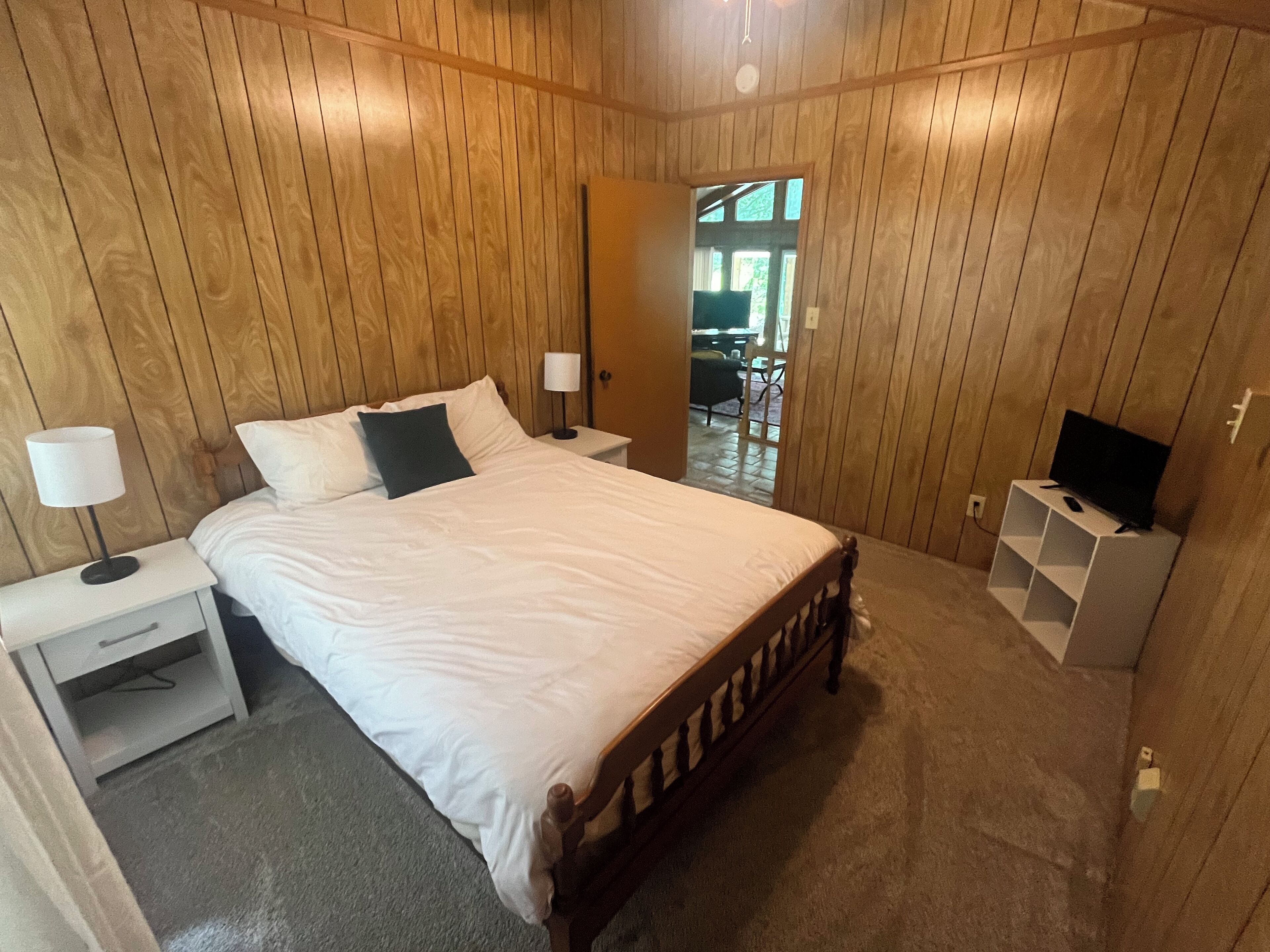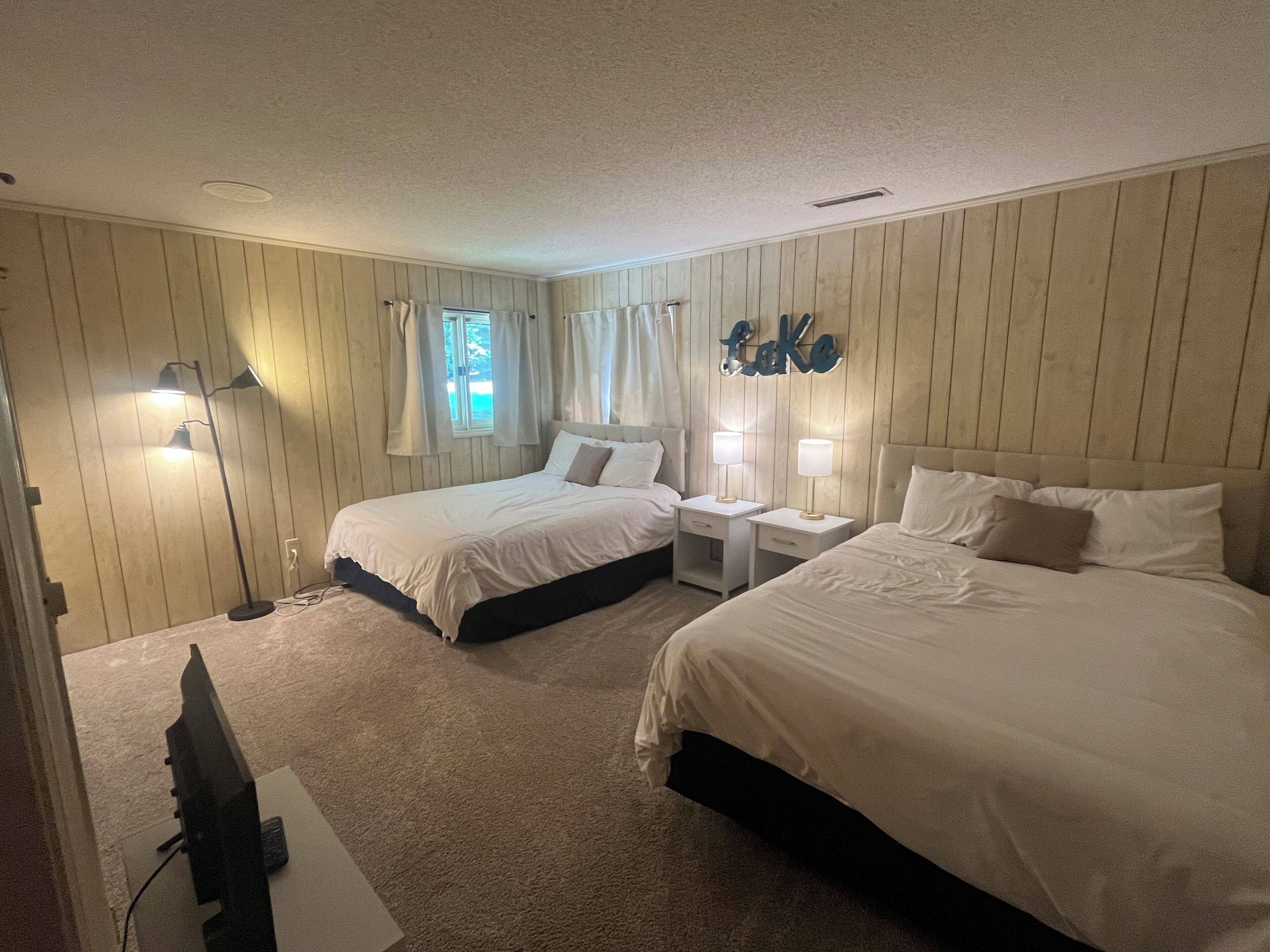 Cozy Lake House! Large Yard! Sleeps 8! Boating options available on site! Come enjoy the relaxing environment of this beautiful lake front property, we refer to as "The Little House." With a large back porch perfect for marveling over the sunset, an acre yard, and dock perfect for day time sunbathing, you will have nothing short of an amazing time at this cozy home. It is located on a private drive in a great location. The neighborhood is quiet and nice for walks or runs, while restaurants, bars, grocery stores, and convenience stores are all close in vicinity (less than 10 minutes away). 2 single kayaks and a paddle board are included, as well as a propane grill and fire pit. If you’re interested in our pontoon rental please ask! Full disclosure— We are dog friendly and this is a 1960s home. As you can see in the photos, there is wood paneling and older appliances. If you want a new, updated home that is not dog friendly, STAY ELSEWHERE. This house is not for you! People who want to enjoy the lake, bring their pets, and get a lake house feeling for a great price, stay here! This is a great VALUE stay!