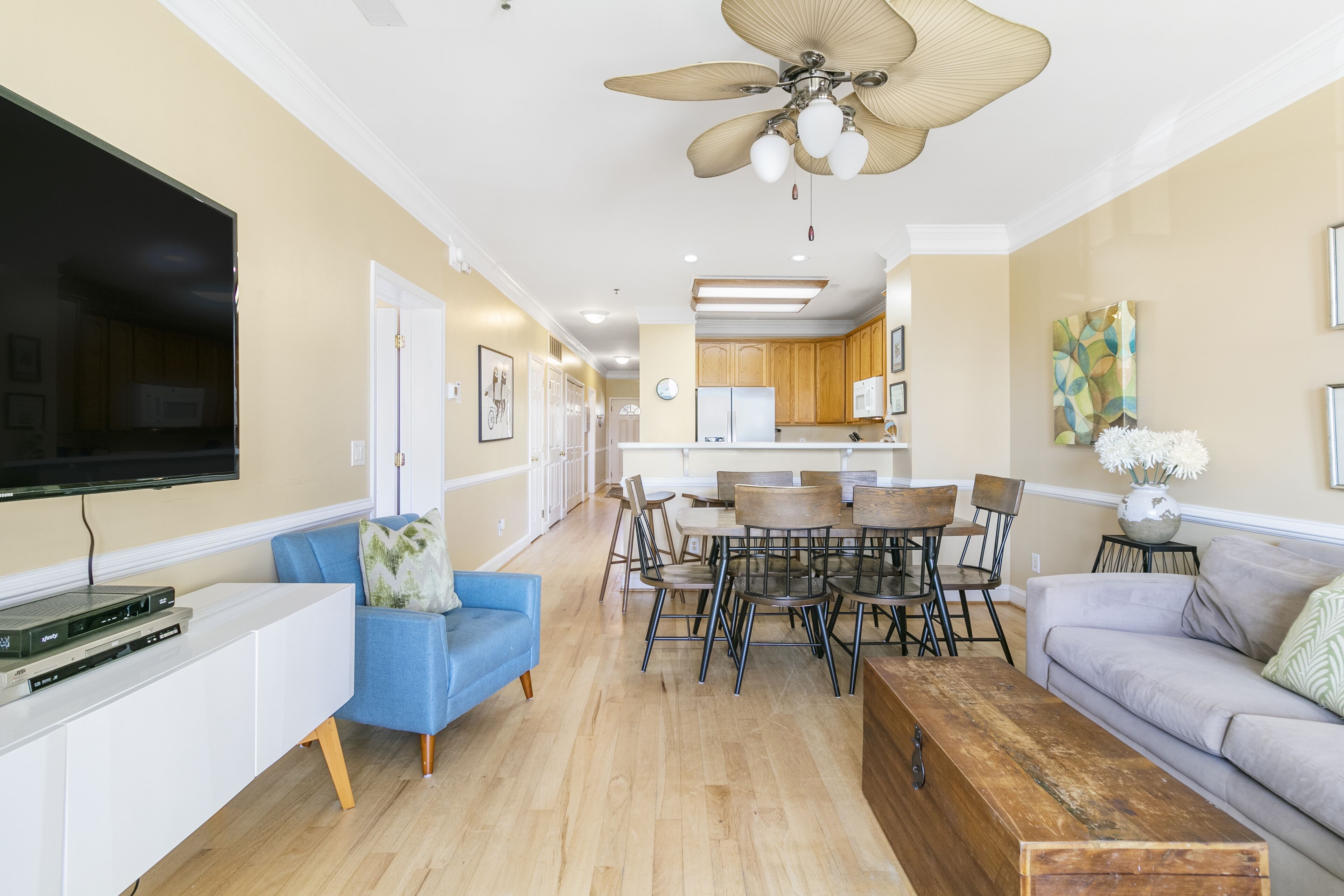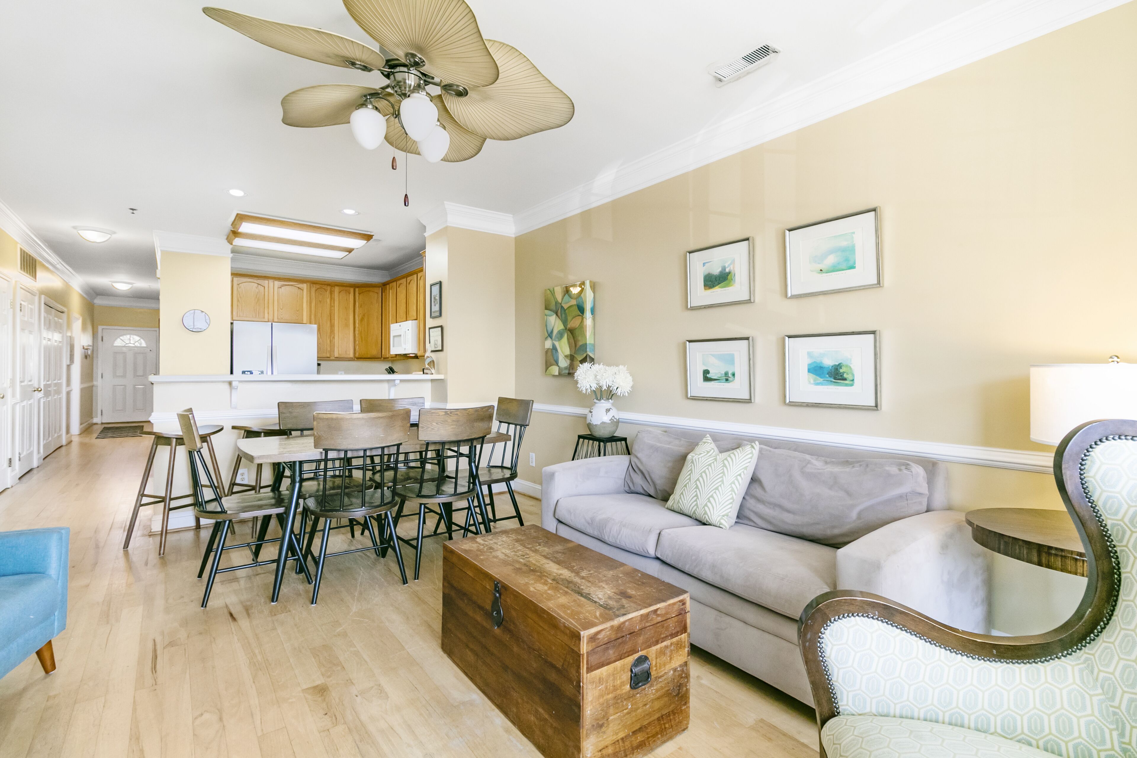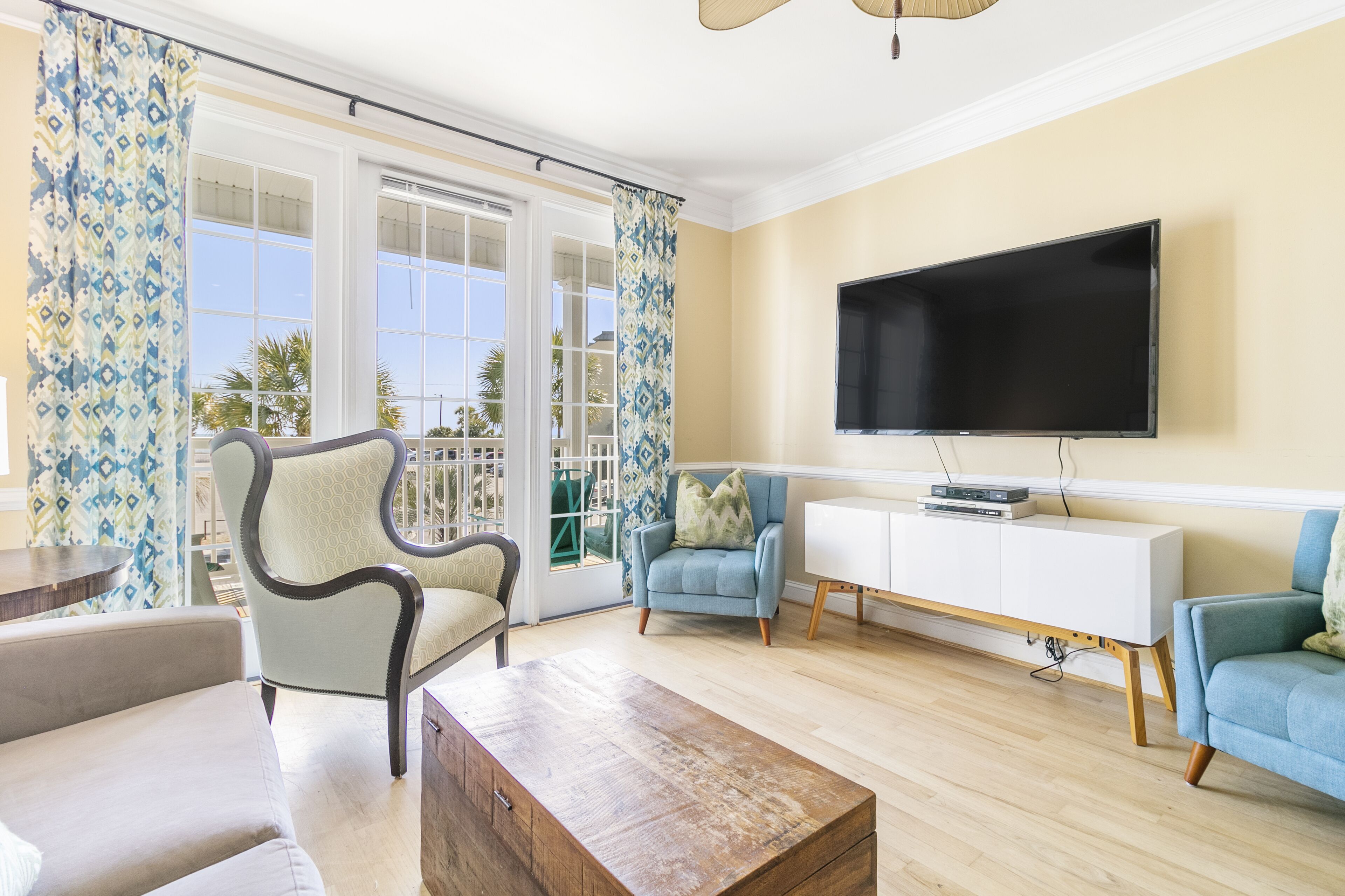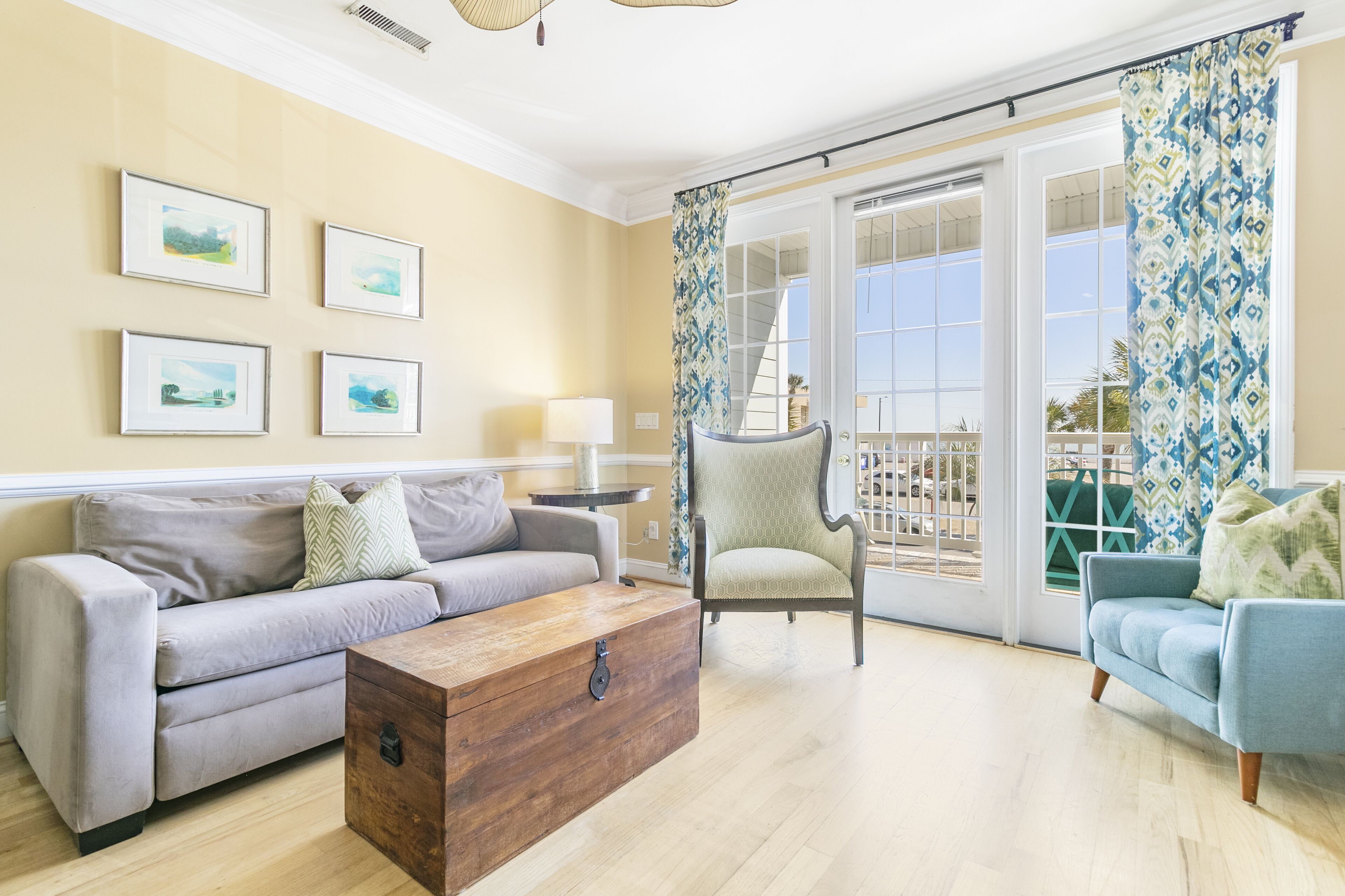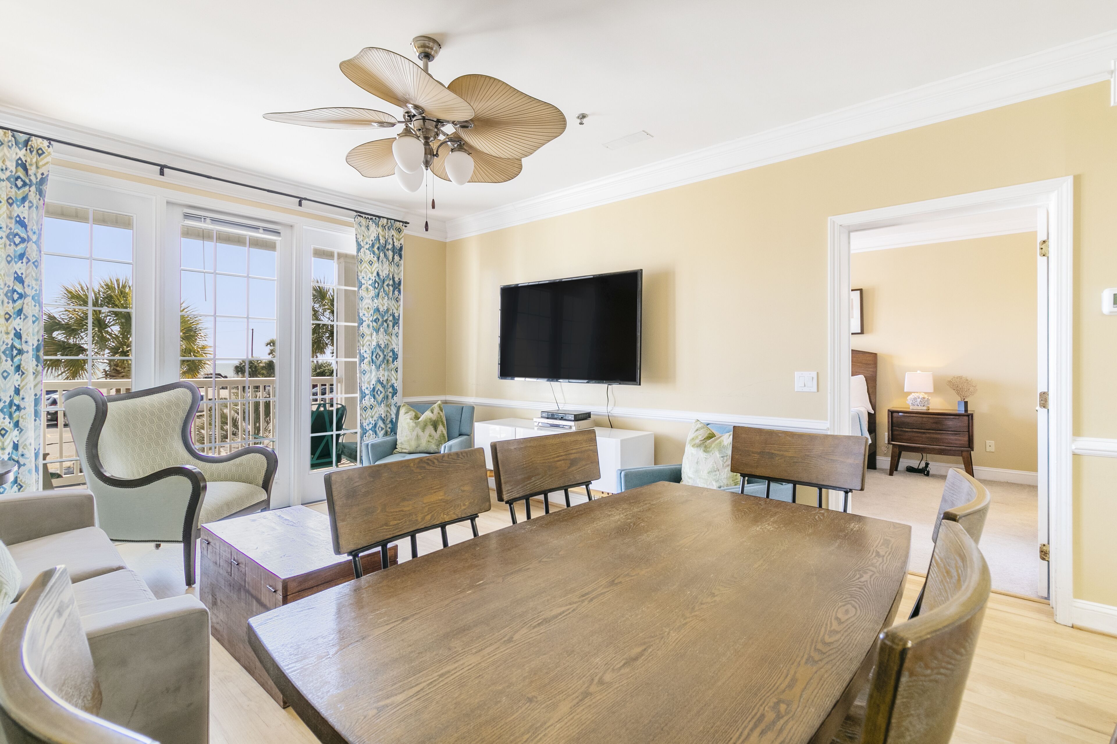 Pavilion Watch 2B - Oceanview Condo - Pool - Central Location - Elevator Please note: This property is located in a quiet residential community and Folly Beach has a strict noise ordinance violation rule of 1 strike. Simply respect your neighbors, keep the noise down and no parties.This 3 bedroom/3 bathroom unit (Sleeps 7) is on the situated on the 1st floor where you will enjoy watching shrimpers, dolphins and surfers from your ocean view with direct access!The open design of this property allows plenty of room for the family and friends to gather inside or on the covered balcony complete with furnishings for ultimate comfort and relaxation. Offering a fully equipped kitchen and all modern appliances, this unit is ready for entertaining friends and family. All will enjoy the unobstructed ocean views from the living room, master bedroom, and porch!Folly Beach, or as locals refer to it, The Edge of America, is a laid-back, golf-cart-friendly community with many great restaurants, a booming nightlife, plenty of shopping, water activities, and water tours. For more historic exploring, the famous Downtown Charleston is only a 25 - minute car ride, which offers endless fine dining, shopping, historical sites, and more. There is something for everyone here. We promise you will Folly in love with this beautiful island! The SpaceBedroom 1: (Ocean View) King with Private Bath (2 Sinks, Tub & Walk-in Shower), TV (Cable), Ceiling FanBedroom 2: Queen with Private Bath (Tub/Shower Combo), TV (Cable), Ceiling Fan Bedroom 3: 1 Queen, 1 Twin (Bunk bed) with Full Bath that is also accessible from hall (Walk-in Shower), TV (Cable), Ceiling FanAnnouncementsSand renourishment to the west side of the pier is finished! The beach is now wider and more expansive on the west side of the island. A pipe will be running down the beach until the entire project is complete. Sand ramps have been built at multiple points along the pipe for easy access. You can find the latest information about the project's progress on the City of Folly Beach's website.NotesYou must be at least 25 Years old to rent this home.Contactless Check-In: This home offers a keyless entry system, and we will provide the code before your arrival date. There are 2 parking spots available.We do not provide beach equipment, but anything available at the property is yours to use.Check-in time: 4 pm. Check-out time: 10 am.The Folly Beach noise ordinance is from 10 pm to 8 am.No pets allowed. Emotional support animals, comfort animals, and therapy dogs are not service animals under Title II and Title III of the ADA and are not allowed in properties unless specifically designated in writing as “pets considered” and approved by our office.No smoking is allowed in or outside of the house.House parties, weddings, functions, events, bands, DJs, etc., are prohibited.The occupancy can be at most 7 people at any time during your stay.We require 50% payment at the time of booking. The remaining 50% of your balance will be due 30 days before the check-in date, and we will run the card on file. Bookings within 30 days of your arrival date require full payment at the time of booking.12 miles to Downtown Charleston.22 miles to Charleston Airport.AmenitiesHigh-Speed Wi-Fi, Smart TVs throughout the houseHigh thread count linens & towels (minus beach towels)Fully equipped kitchenStarter kits for kitchen and bathrooms (including paper products)Washer and dryerShared Pool Elevator- Please note- While we manage this property, we do not manage the maintenance of this building which includes the elevator. The presence of an elevator does not indicate that the home is ADA compliant.MyOceanRental strives to ensure peace for all our guests, neighbors, and the community of Folly Beach. To comply with Folly Beach's new strict noise ordinance, we now use noise sensors in our properties. NoiseAware is a smart home device that measures decibel levels, is 100% privacy compliant, and does not listen or record. If the noise level exceeds the legal limit for FB, you will receive a friendly reminder text message to turn the noise down. This will help avoid any violations with the FB police that can result in fines and revoke the homeowner's business license.Suppose the occupancy is misrepresented or a disturbance is reported at the property. In that case, we reserve the right to terminate your rental agreement and will require that you vacate the property immediately without a refund. However, we are committed to your and our community's comfort, so please let us know if we can do anything during your stay to make it more enjoyable.This property is licensed by the City of Folly Beach to be used as a vacation rental property. Business License account number LIC004183 & rental registration STR24-A0095.