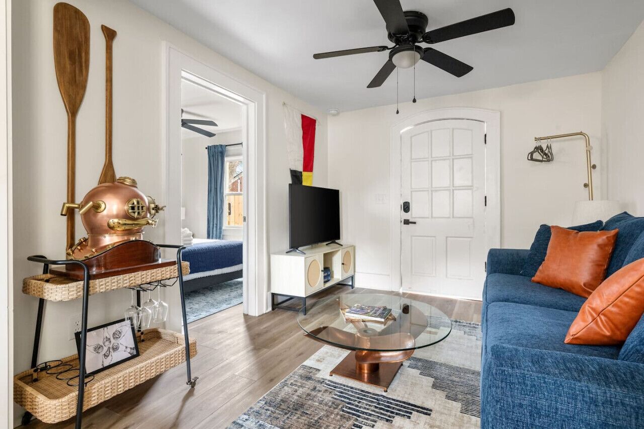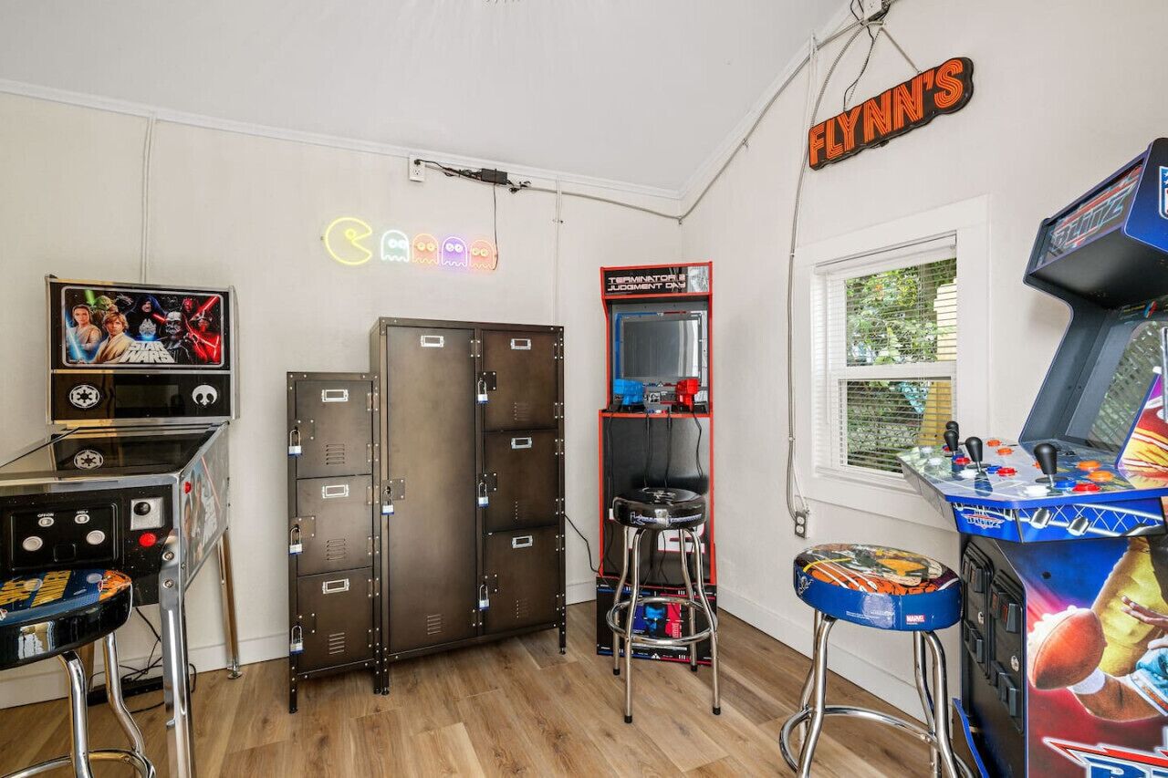 1910 Calvert - Unit B 1BR Welcome to our AirBnB in North Charleston located just 10 minutes from historic Downtown Charleston. It's also conveniently located next to Park Circle, Tanger Outlets, and the Charleston International Airport. This is the perfect rental for exploring all that Charleston has to offer! You’ll find out quickly why Charleston has been voted #1 City in the U.S. by Conde Nast and Travel + Leisure.Welcome to Calvert Street! This listing is for a 1 bedroom apartment behind the main house on the property. As you step inside you are in the living room, and around the corner you will find the kitchen. The bedroom is near the front of the apartment and has a queen bed and an ensuite bathroom. The fully equipped kitchen features all the amenities you'll need to cook up a delicious meal, including a refrigerator, stove, oven, and microwave. There's also plenty of counter and cabinet space for all your cooking needs.The bedroom is cozy and comfortable, with room for you to spread out. The apartment is tastefully decorated and features a comfortable bed and large windows that let in plenty of natural light.Outside you have the seating area to hang out, and the backyard with access to the arcade room. Features:Bedroom: Queen Bed with ensuite bathroom Living Room with sleeper sofa Kitchen Off Street Parking Outdoor area with seating Access to Shared Laundry RoomAccess to Arcade RoomWe look forward to hosting you in Charleston!Perks of Booking with The Boroughs.. Our team is dedicated to ensuring you have everything you need to make the most of your stay in our beloved city. When you make a reservation, you'll receive a wealth of resources, such as guidebooks and dining suggestions, as well as exclusive discounts at various local businesses. Additionally, we're excited to provide another enticing benefit – all guests of The Boroughs gain access to Paradiso at reduced rates.Paradiso is a private club in the Mixson neighborhood near Park Circle, offering exclusive discounted access for The Boroughs' guests, including the pool, gym, wellness classes, co-working, dining, poolside cabana reservations, social events, and live music. Day passes and cabanas have associated fees.Two weeks before your reservation date, all guests of The Boroughs will be provided with a one-pager that includes booking information to reserve access to Paradiso. Reservations need to be made 24 hours in advance with guest information. Please Note*: Paradiso is a private membership based club and access is not guaranteed.I will be available for whatever you may need as I live very close to the property. I will very likely be in the Charleston area as well, but it not, I can still provide guidance or recommendations for activities you may be interested in.The Charleston Heights neighborhood is conveniently located close to everything! It is less than 10 minutes to Downtown Charleston, 7 minutes to the heart of Park Circle, and roughly 20 minutes to Sullivans Island where you can access one of Charleston's best beaches. Very close by in Charleston Heights is Rebel Taqueria, a great dive bar serving up all your taco cravings. Also catch a show at Firefly Distillery or one of the cool events at Riverfront Park, both just 5 minutes away!7 minutes to Park Circle. 10 Minutes to Downtown. 15 Minutes to the Airport. 20 minutes to Sullivans Island. 40 Minutes to Isle of Palms.-Complimentary Free WiFi-Hotel Quality Bath Amenities (shampoo, conditioner, hand soap, body wash, lotion)-Dish/Laundry Detergents-Hair Dryer/Iron-Towels/Linens-Basic Cooking/Kitchenware-Washer/Dryer-Pets Allowed at No Charge!