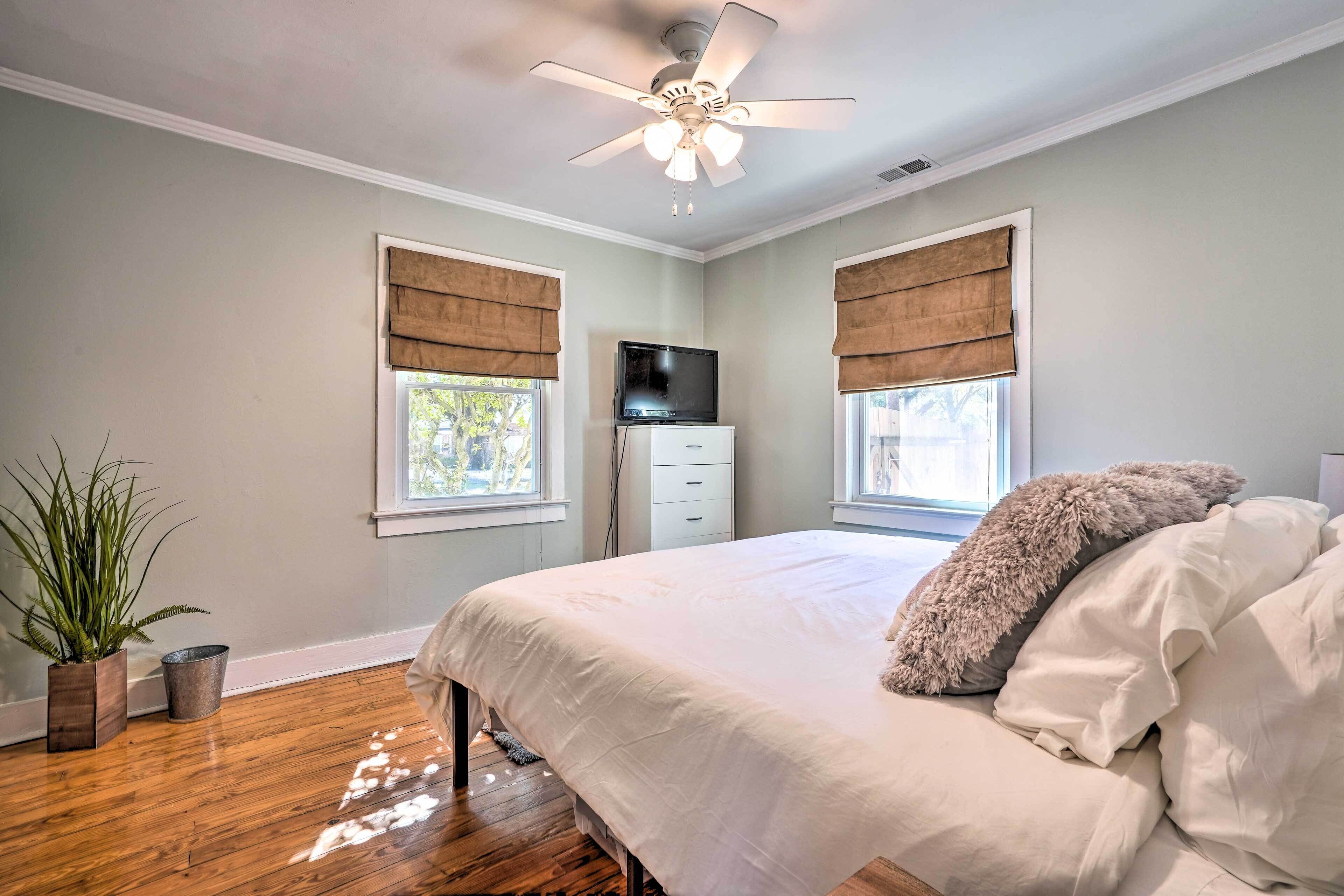 Cozy North Charleston Getaway w/ Fire Pit! Get a taste of North Charleston's brewery scene when you make this cozy vacation rental your home base! With its walkable location near Holy City Brewing, Ship's Wheel Hard Cider, and Firefly Distillery, this 2-bedroom, 1-bathroom house is a solid choice for amateur brewers, couples, and solo travelers. The spacious yard, screened-in porch, tastefully decorated interior, and fully equipped kitchen that this home provides ensure you'll have everything you need for a relaxing stay. Book today!-- THE PROPERTY --Walk to Park Circle | Fire Pit | Gas Grill | 2 Smart TVsNestled between museums, restaurants, parks, and a variety of Charleston attractions, this home lets history buffs, foodies, and couples explore the city at their own pace.Bedroom 1: King Bed | Bedroom 2: Queen BedOUTDOOR LIVING: Private yard, screened-in porch, deck, lounge seating & rocking chairs, hammock hooksINDOOR LIVING: Board games, books, modern decor, natural lightKITCHEN: Fully equipped, drip coffee maker, blender, cooking utensils, pots & pans, ice maker, microwave, toaster, spices dishware & flatwareGENERAL: Free WiFi, ceiling fans, central A/C, complimentary toiletries, towels/linens, washer/dryer, hair dryerFAQ: 4 steps to enter, single-story interiorPARKING: Driveway (2 vehicles), free street parking (first-come, first-served)-- THE LOCATION --THINGS TO SEE + DO: North Charleston Coliseum & Performing Arts Center (3.4 miles), South Carolina Aquarium (7.4 miles), Charleston City Market (7.8 miles), Joseph P. Riley, Jr. Park (8.3 miles)FOR HISTORY BUFFS: The Charleston Museum (7.2 miles), Fort Sumter National Monument (10.3 miles), Patriots Point Naval and Maritime Museum (10.5 miles), Magnolia Plantation and Gardens (12.7 miles), Middleton Place (16.2 miles)OPT OUTSIDE: Park Circle Disc Golf Course (0.8 miles), Riverfront Park (2.2 miles), Hampton Park (6.3 miles), Brittlebank Park (7.6 miles), Joe Riley Waterfront Park (8.0 miles), White Point Garden (8.6 miles), Isle of Palms Beach (17.9 miles), Francis Marion National Forest (28.1 miles)DINE + DRINK: The Junction Kitchen & Provisions (0.2 miles), Holy City Brewing (0.4 miles), Firefly Distillery (0.5 miles), Sesame Burgers & Beer (0.5 miles), Azul Mexicano (0.7 miles), Evo Pizzeria (0.7 miles), Ship's Wheel Hard Cider (0.8 miles), DIG In The Park (0.9 miles), Commonhouse Aleworks (1.0 miles), LoLA (1.1 miles)AIRPORT: Charleston International Airport (4.8 miles)-- REST EASY WITH US --Evolve makes it easy to find and book properties you’ll never want to leave. You can relax knowing that our properties will always be ready for you and that we’ll answer the phone 24/7. Even better, if anything is off about your stay, we’ll make it right. You can count on our homes and our people to make you feel welcome--because we know what vacation means to you.-- POLICIES --- No smoking- No pets allowed- No events, parties, or large gatherings- Must be at least 25 years old to book- Additional fees and taxes may apply- Photo ID may be required upon check-in- NOTE: This property requires 4 steps to enter and may be difficult for guests with limited mobility