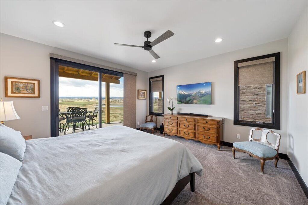 Luxurious Villa on The Bridges golf course! Spectacular views of San Juan range! Located at The Bridges Golf & Country Club, a Jack Nicklaus classic designed golf course. This new villa overlooks the 9th green with uninterrupted views of the spectacular San Juan mountain range and sits within a quiet 400 acre neighborhood, while only minutes from most restaurants and services in the City of Montrose. A well-appointed 3 bedroom and 3 1/2 bath villa sleeps 6 persons comfortably with two master king bed suites and a twin bedroom, each with their own bathroom plus a separate powder room.The large back patio provides convenient direct access to the golf course and a beautiful setting anytime for casual gatherings. AMENITIES INCLUDE:• Newly constructed single-home villa conveniently located within walking distance to club house and Remington’s restaurant• Fully Furnished kitchen and outdoor grill• Two-car garage, includes table tennis equipment• WiFi. 77 inch Smart TV in living room and smart TV in each master suite• Outdoor patios furnished with seating and dining table• Fully supplied bathrooms with one 6-foot deep bathtub• Bath towels, linens, shampoo, conditioner, body wash and hair dryers providedNOTICE: Trailers or RV’s are not allowed to be parked on the street or in the driveway during stay**This property is intended for the sole purpose of lodging and is not intended to be utilized as a residence**
