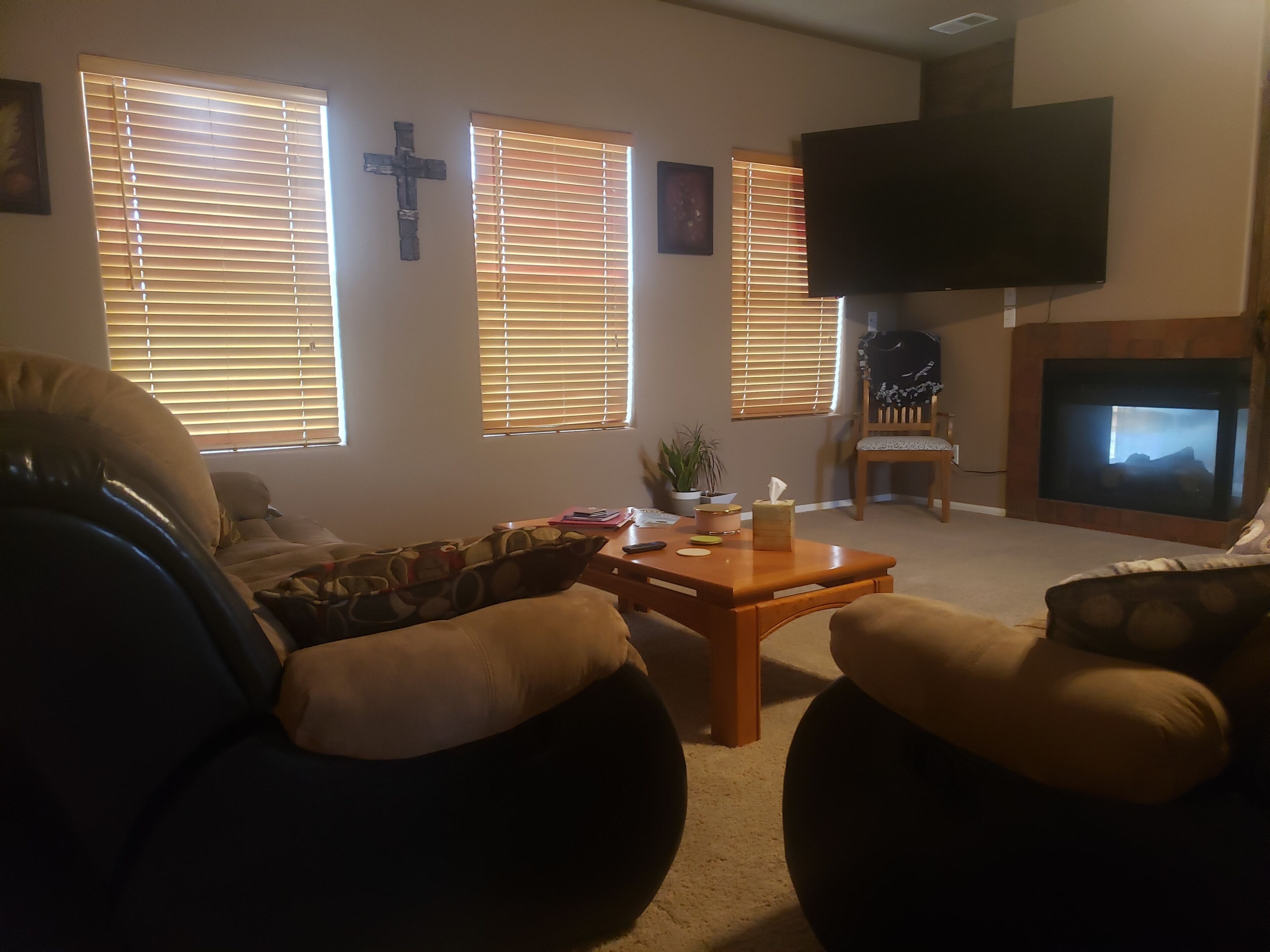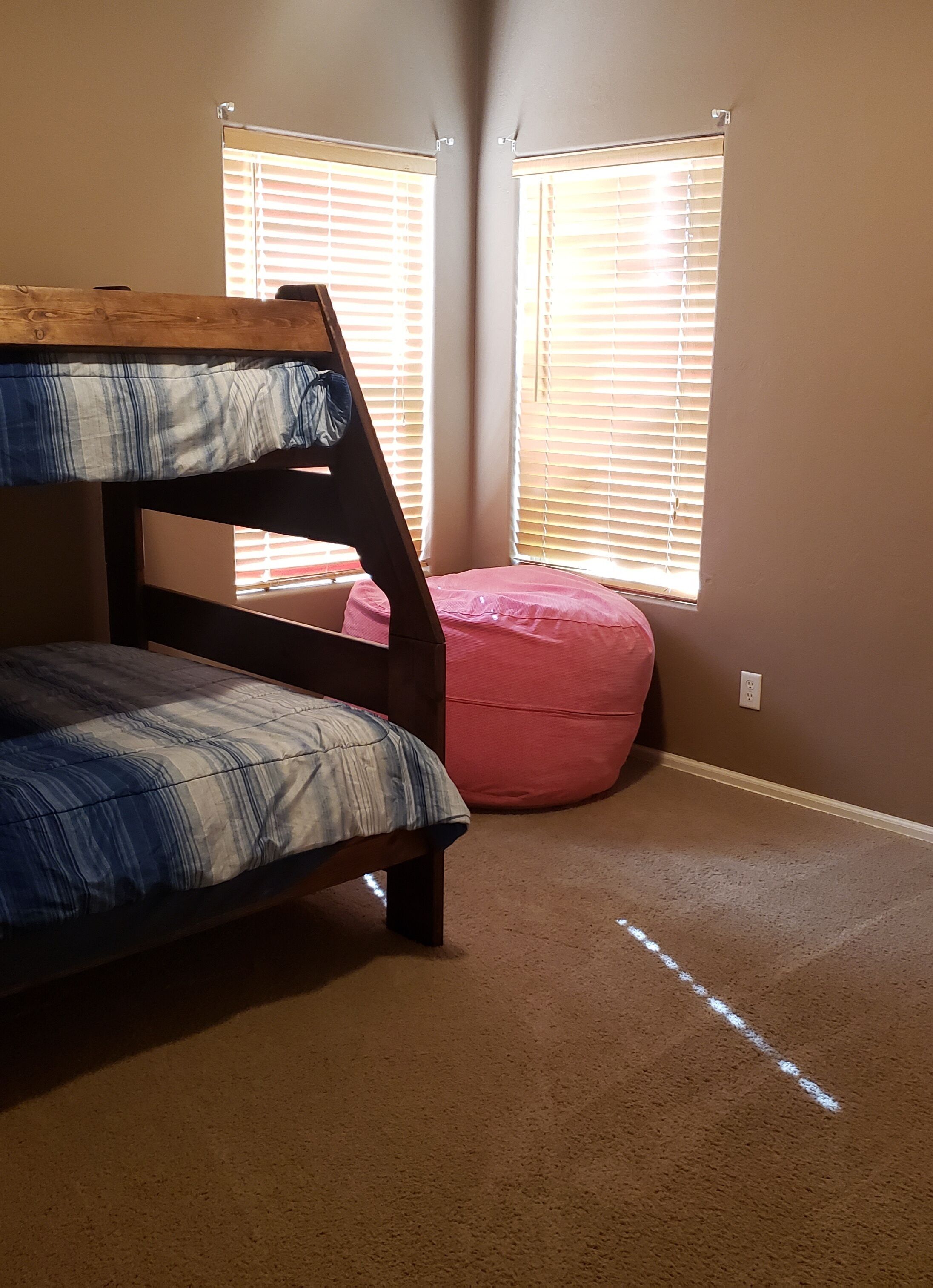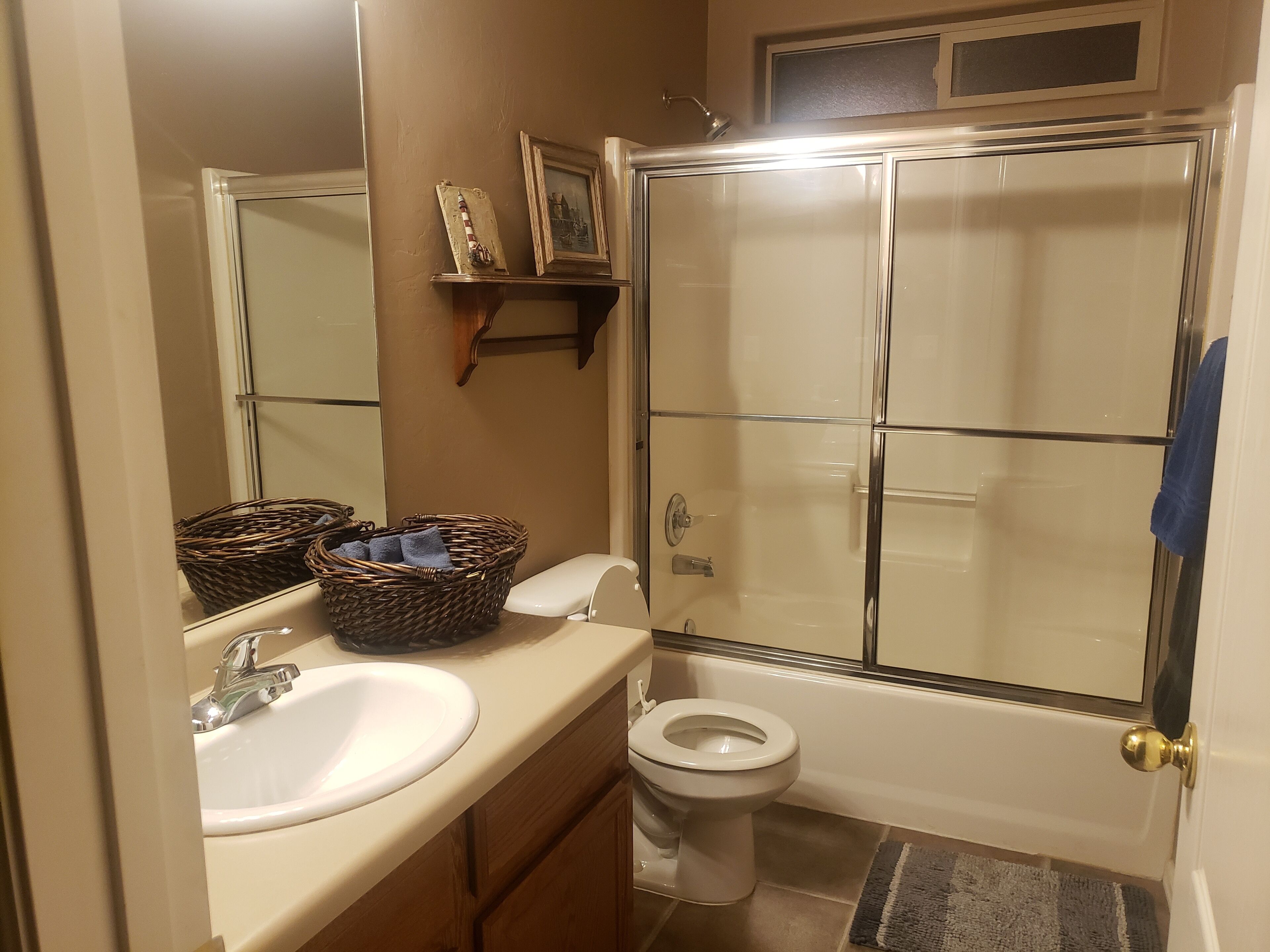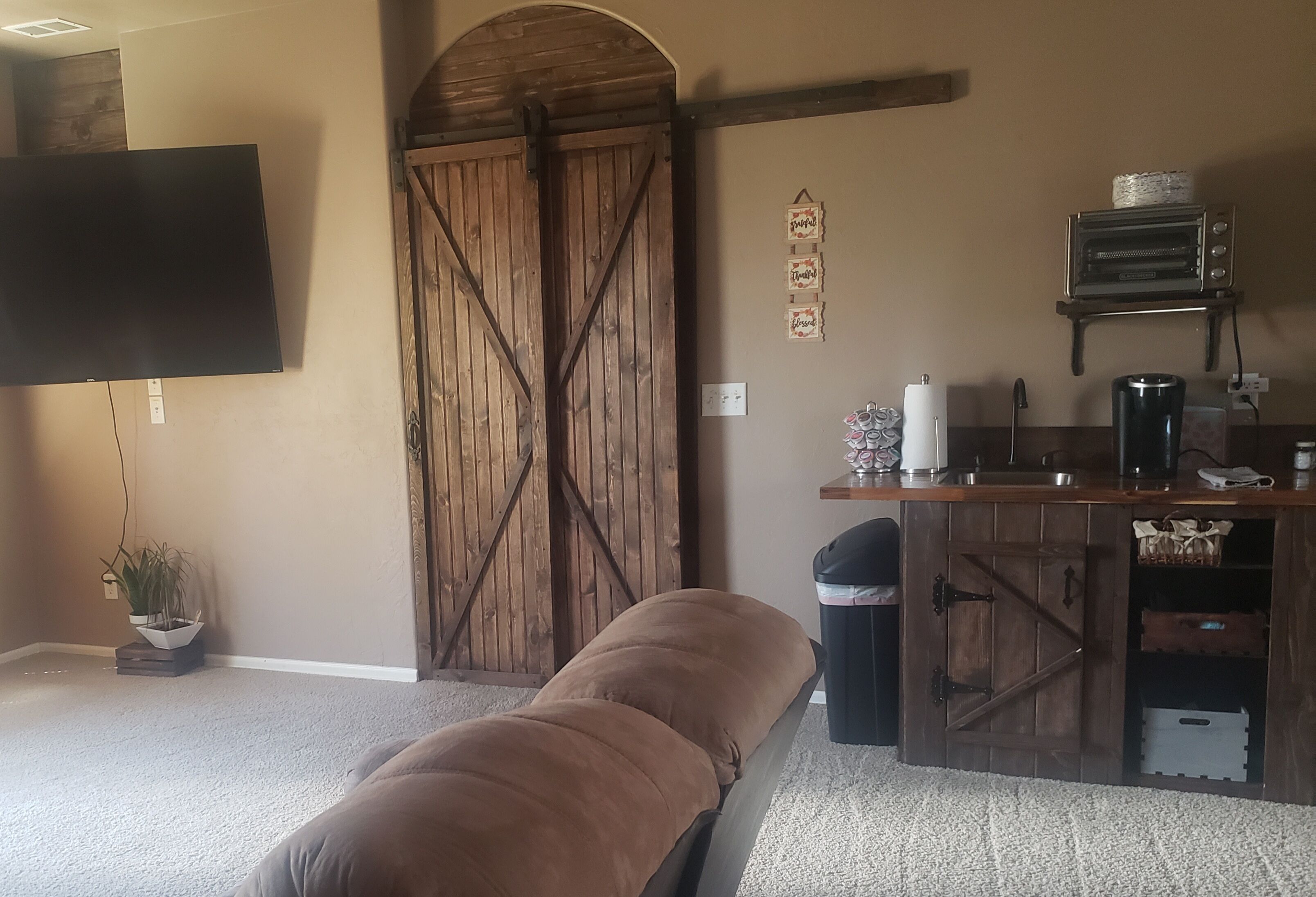 COMFY 2 bedroom 1 bath, living room, mini kitchen with 70" smart TV & Grill This Comfy place is in the heart of Montrose,, CO which is an awesome base for the surrounding area. We are so close to the Black Canyon Monument. As well as other popular places like Ridgway, Ouray and Telluride for hotsprings, hiking or skiing.This home is a split floor plan with 2 bedrooms, one bath the livingroom And kitchen ALL PRIVATELY... One bed room has a king bed and the other room has a Full bed on bottom and twin bed on top. All beds are memory foam mattresses. (Additional memory foam mattress inside the bean bag ***just unzip it)I have added a pack-n-play as well as a high chair.Additionally there is a front patio with seating and a grill for your use. The front lawn is kept up and in the summer you will find vegetables you may take what you will use just be gentle with the plants.Your group will not be sharing that space with anyone. There is a barn door that separates the two sides as well as a secure wall behind that barn door.Owners travel a lot but sometimes they live on site and will be available if you need things otherwise the housekeeper will assist you.