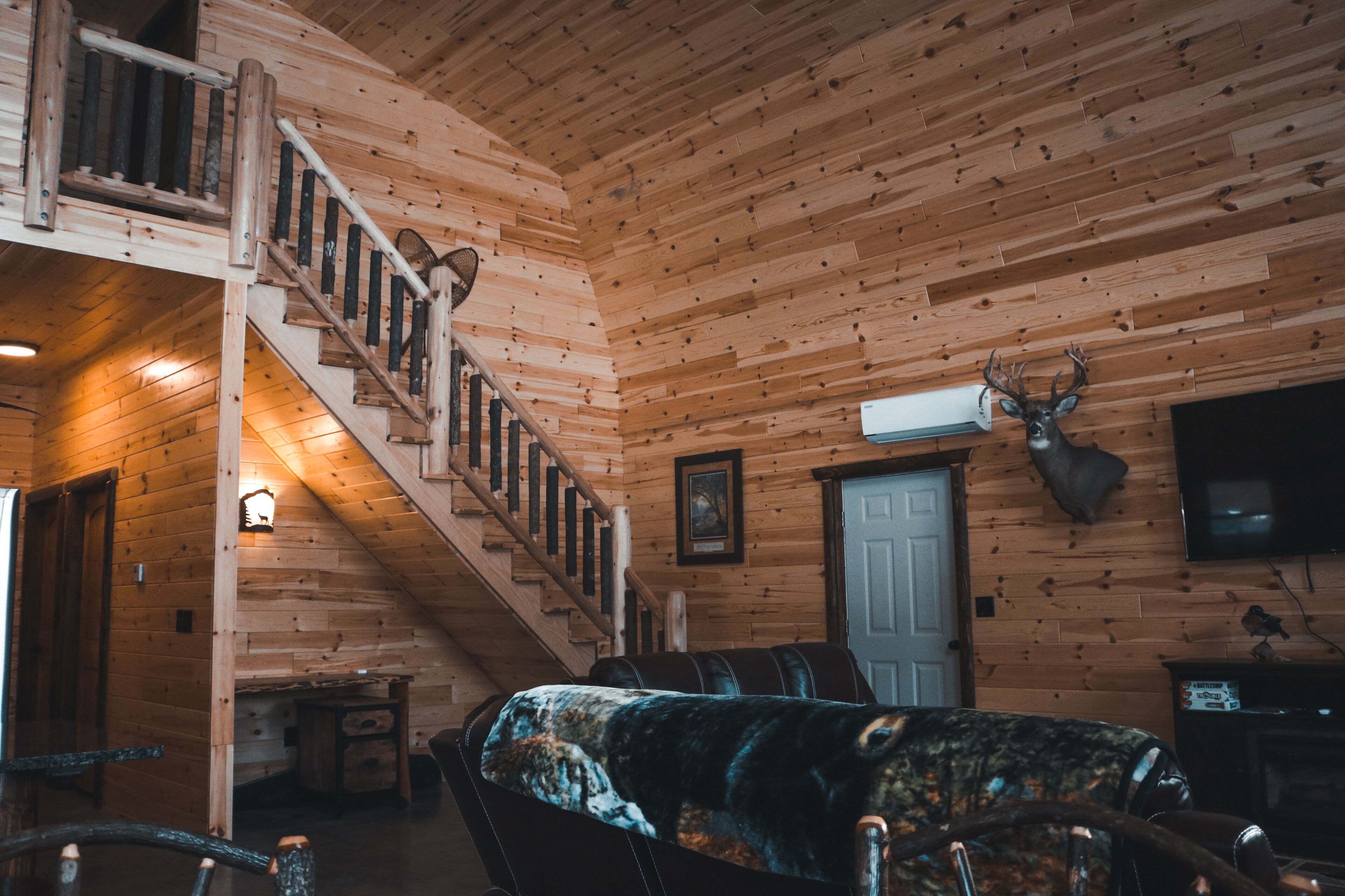 Extraordinary Private 4 Bedroom 2 Bath Lodge Our lodge is a beautiful 4 bedroom, 2 bath private estate! There are 2 bedrooms and a bathroom on the main level and 2 additional bedrooms as well as a full bath on the second floor. The 2000 square foot lodge was built in 2018, encompasses handcrafted excellence throughout, offering both elegance and comfort. The facility is very family friendly but at the same time a great place for a couples weekend, bachelorette party, kayak, 3-D shooting range, target shooting and other types of retreats. The river is a short walk from the lodge! This is a great place to launch your kayak, fish or just relax! Each room has an HD television with satellite service, as well as a large HD television and granite counter top bar in the living area. There is a full service kitchen, stainless steel appliances and a laundry area. The lodge sets on a 300 acre estate with river access for fishing, private hiking trails, mountain bike riding, canoeing, kayaking, cross country skiing and wildlife viewing. The property is a gorgeous place to take a morning walk, get some exercise on your mountain bike or just enjoy the outdoors.This location is a beautiful private setting. There is an outdoor fire pit, covered porch, gas grill and Blackstone flat top grill for cooking. This is an excellent place for a weekend away, a great alternative to a large commercial hotel chain if your in town for a family event or a place to bring your group and have a great time. We can easily accommodate 16 people, as there are 6 Queen beds, 2 Double bunk beds and 2 single bunks. Your stay will be completely private, totally secure, clean and comfortable!