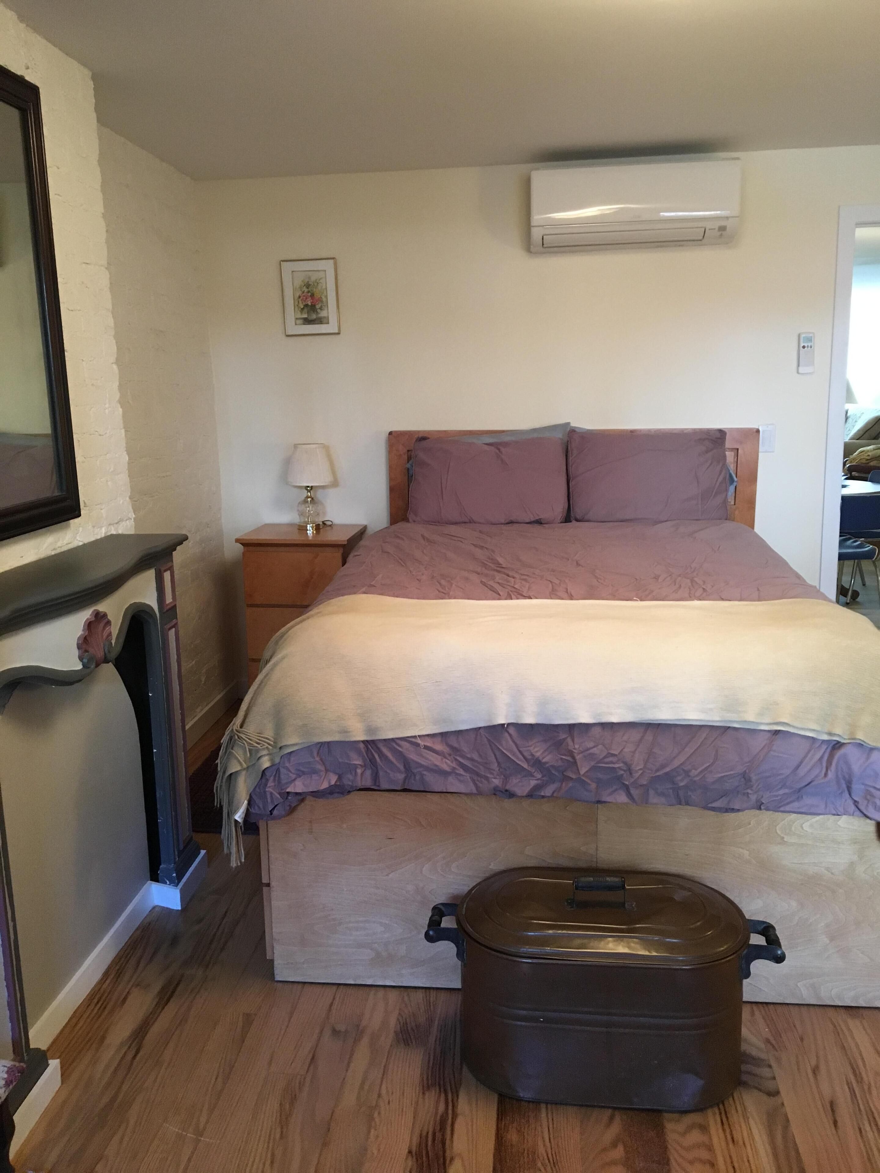 Urban Oasis Junior: beautiful 1 bedroom apartment Fully furnished and beautiful! This generous 1-bedroom garden apartment has just been recently gut renovated and is in pristine condition. It has central AC and the bathroom has radiant floor heat as well as a towel-warming radiator. The bedroom features a fireplace mantel with a chalkboard front, ready for your amazing artwork. The back door...