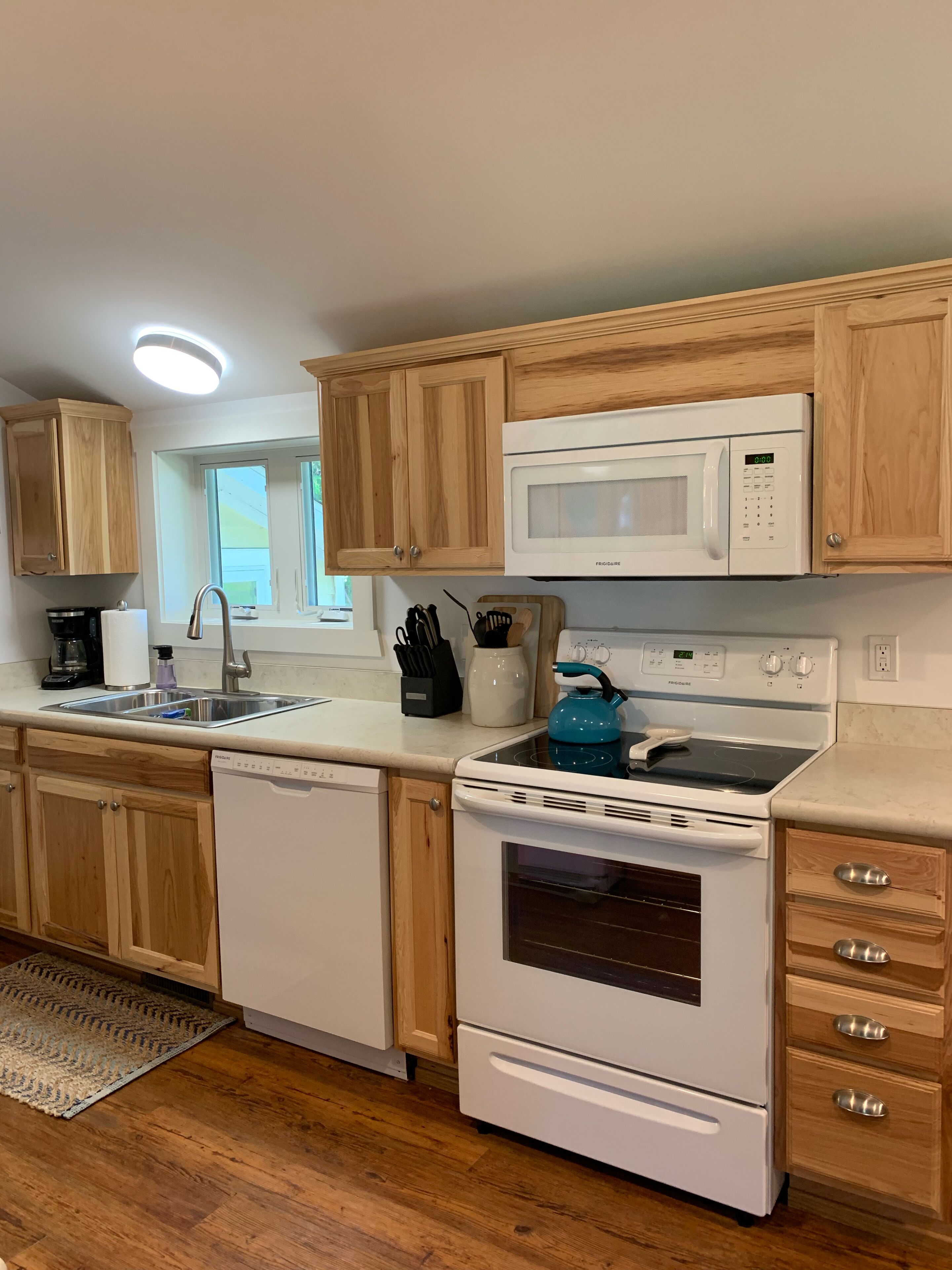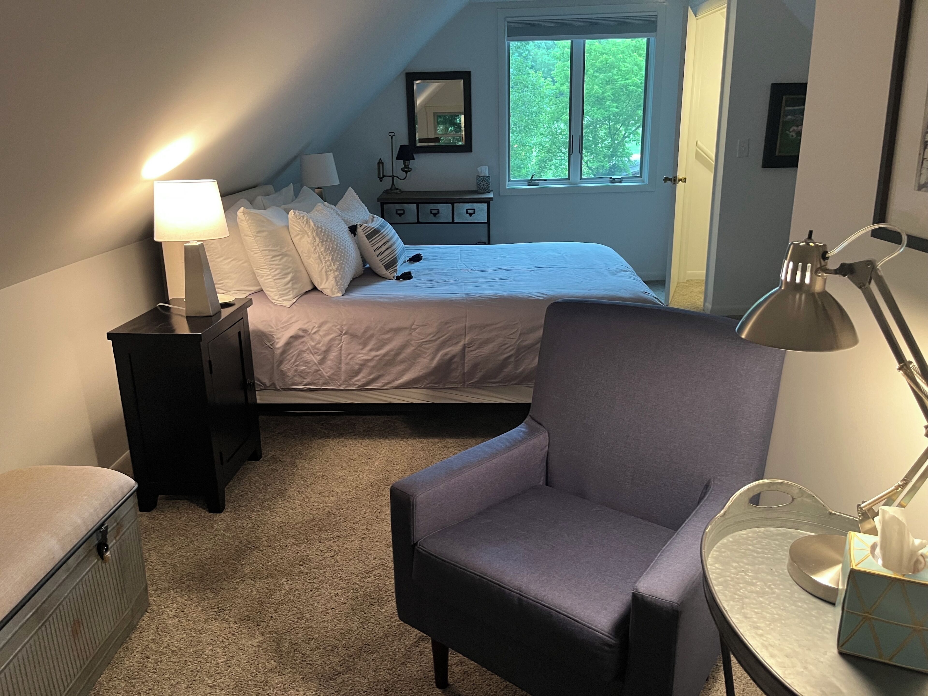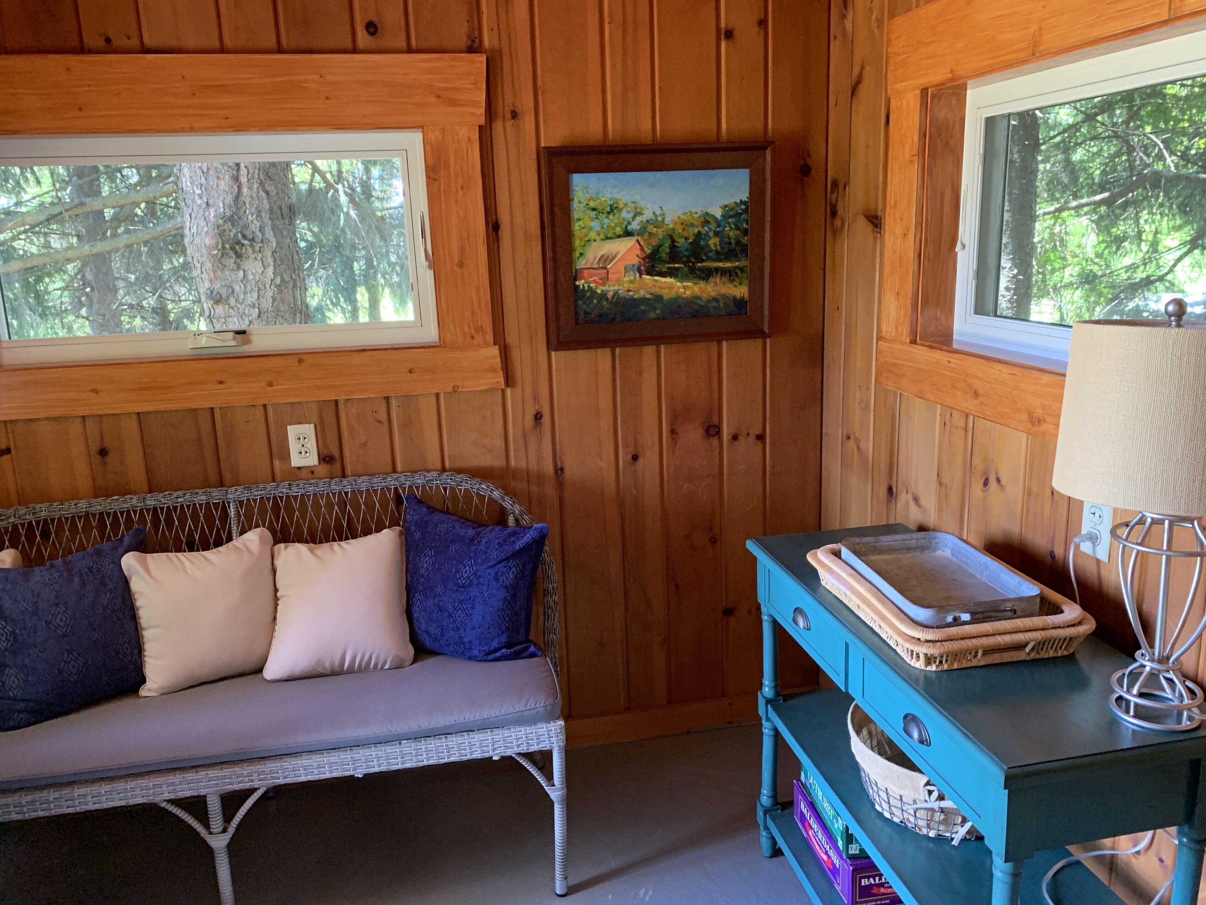 Stonegable: Perfect couples retreat;quiet, private, modern, close to everything! Stonegable is a modern farmhouse nestled among pines and 150 acres of walking trails located just outside of Empire Village (2 miles) right in the middle of Leelanau farm country. You'll find yourself surrounded by cherry and apple orchards, hops farms and fields of sweet smelling hay. Fresh eggs can be purchased just down the driveway. Stonegable has a new generator (2023) for storms. Runs everything but stove and microwave ( grill on site) . So you will have water, lights, shot water heater for howers, refrigerator. and heat in the event of a storm. that results in loss of power. Very few rental properties in Empire or northern Michigan have a generator back up plan which can save a vacation.The home sports a gallery of original oil paintings of the property by a local artist which are all available for purchase. It’s a perfect property for a couples retreat , artists, writers, photographers,conservationists, bird watchers, nature lovers,and astronomers. Unplug at Stone Gable with the quiet of crickets and the brilliance of stars. Leave the technology behind and enter into the past of simpler times before television and internet (Great Wifi available for those that need to work). You will experience a lovely farm house appointed with beautiful fresh duvets and a well stocked kitchen. The trees provide lots of cool shade and privacy. There is a fire pit for bonfires, a grill, and a deck off the kitchen for relaxing outside. The out buildings are the perfect setting for Plein Air painters and those that love the serenity of a real working farm. Lake Michigan is also just just two miles away. A basketball court, beach volley ball, playground, and Empire public beach are available for guests enjoyment. Area is perfect for hiking, biking, fishing, swimming, kayaking or just lying on the beach. There are boat launches nearby for both Lake Michigan and South Bar Lake. Only 8 miles to Glen Arbor and 25 minutes to Traverse City. Stonegable invites you to be its guest. Come enjoy a week unplugged and connecting with each other in nature while enjoying the farm house’s "Modern Country" decor and original art.