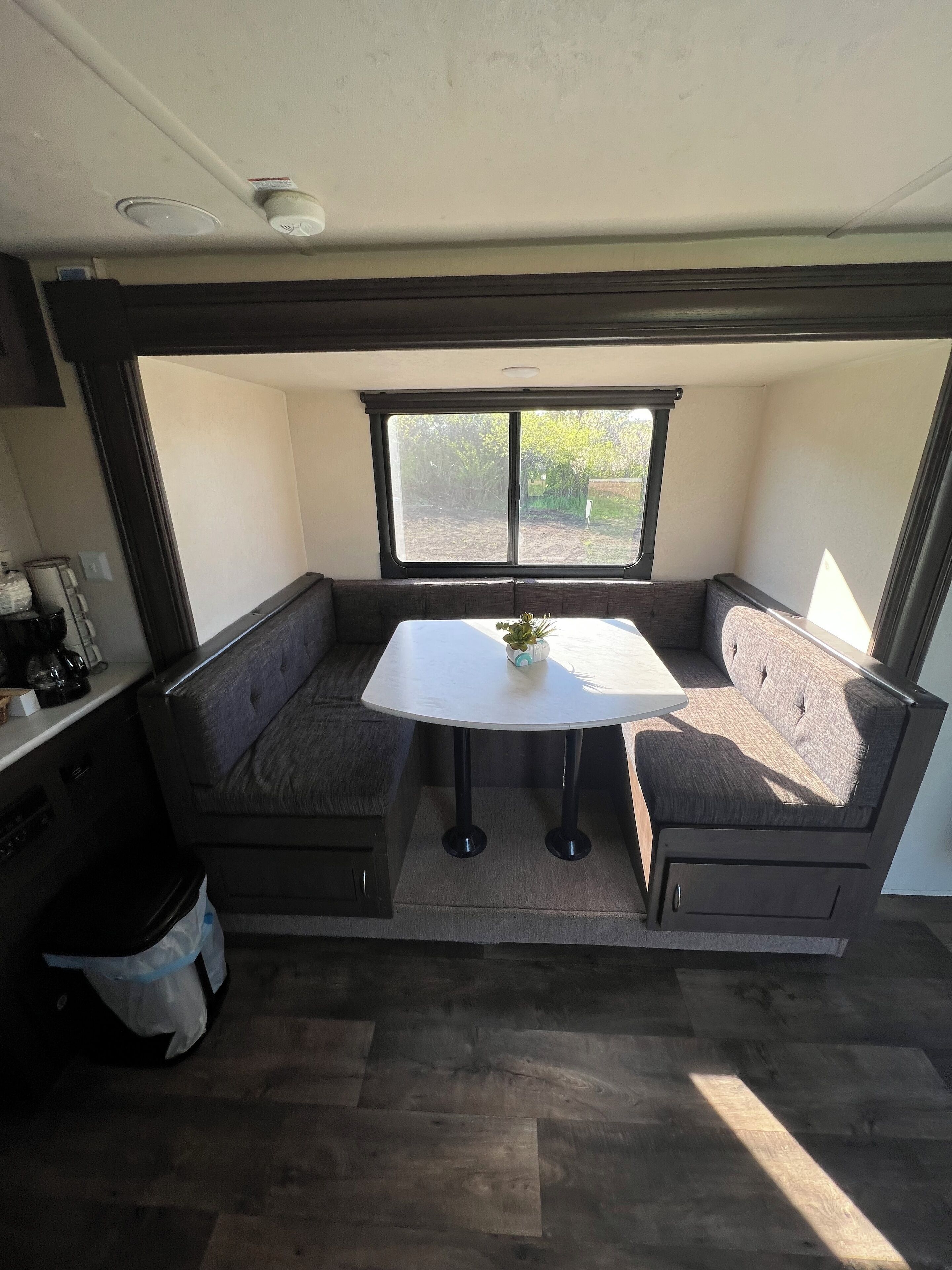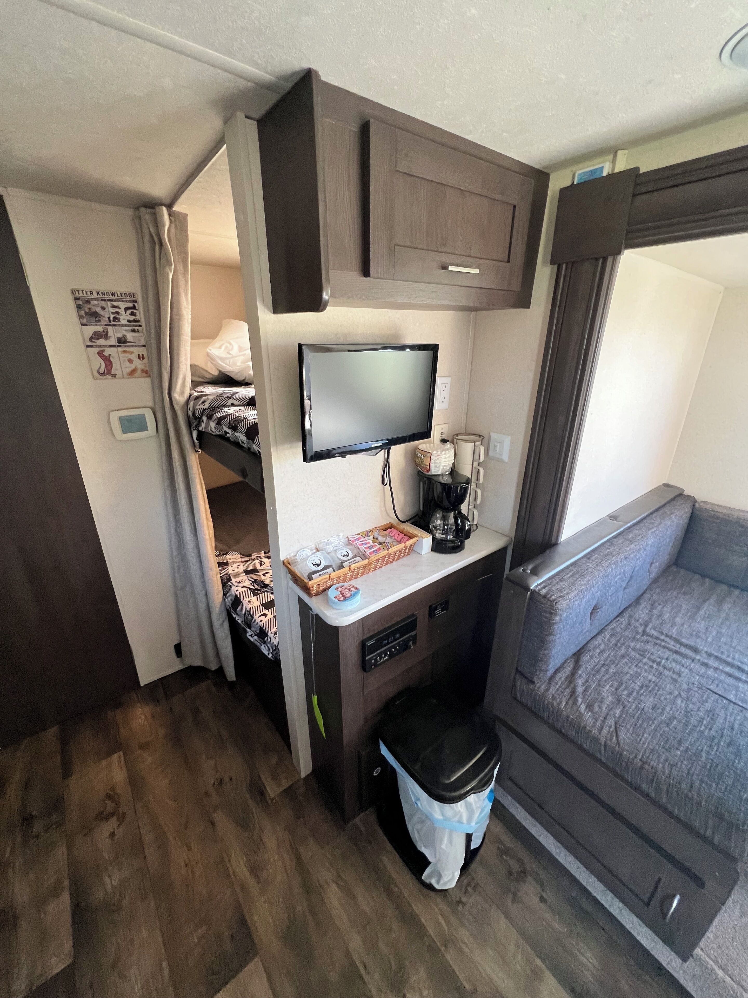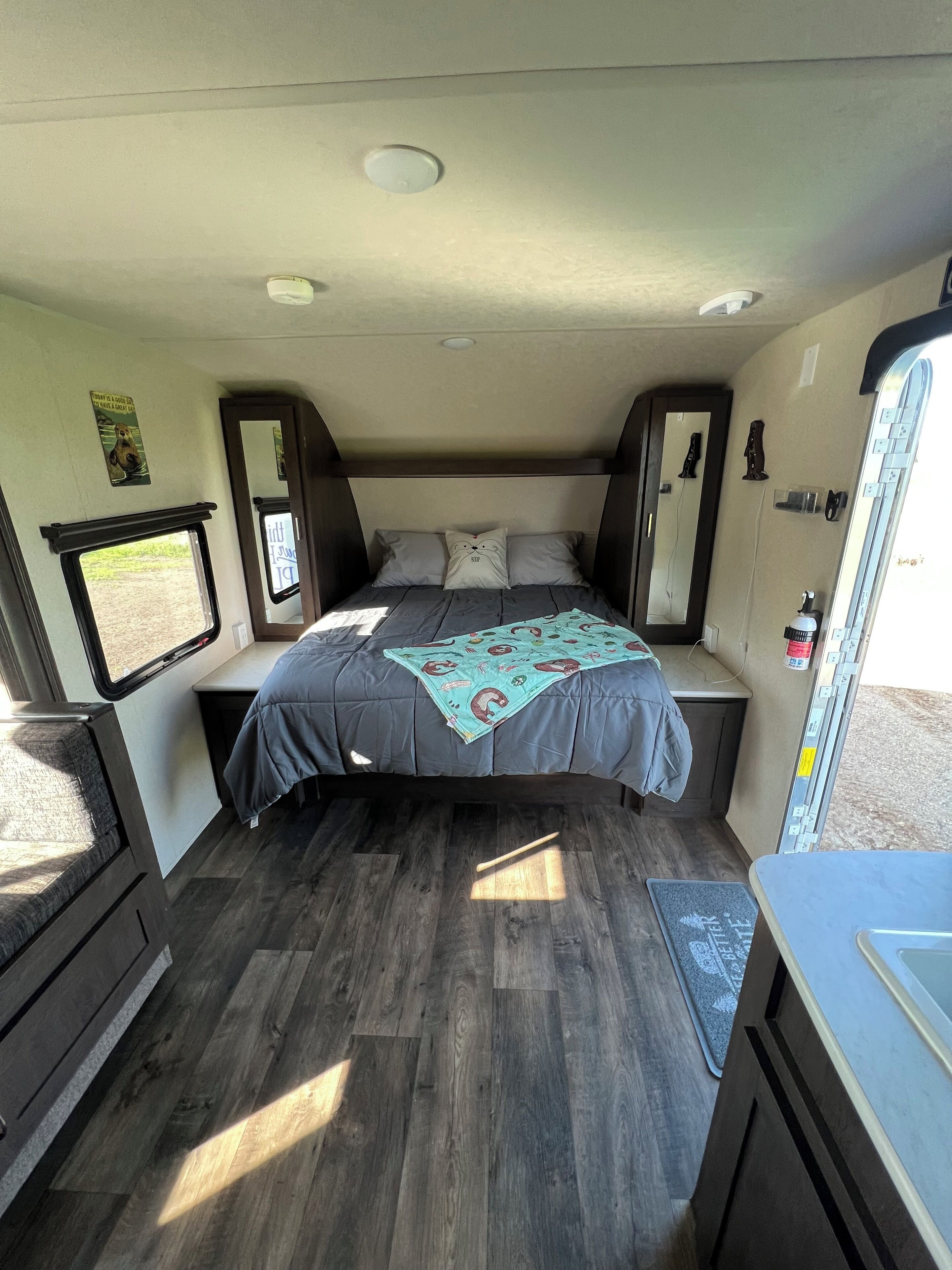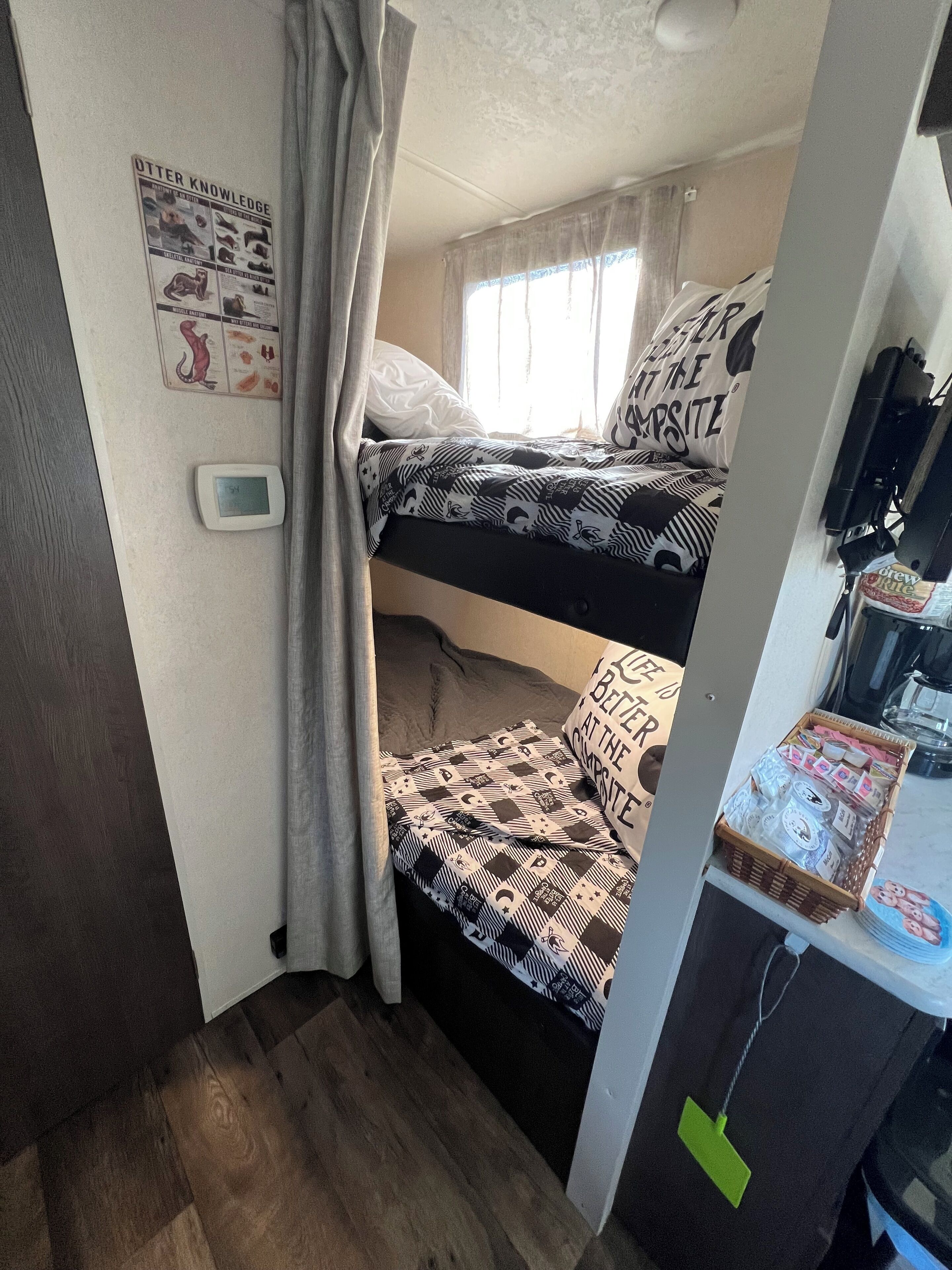 Cozy RV at Tranquility Bay with AC Enjoy camping under the stars without the hassle. Cozy up to the smokeless Solo fire pit and enjoy the views of Tranquility Bay. The Otters Den is ideally located approximately in the center of Big Stone Lake on the South Dakota side with 2 public access points nearby by. In addition, Hartford State Park is just up the road about 5 miles. The camper has 1 queen short bed, 2 twin bunk beds and additional bed can be made from the dinette. There is a Weber propane bbq grill and picnic table onsite. There is a fish cleaning table, cornhole, and yard dice at the camper. Plenty of room to park your boat, and electric to plug in the batteries.