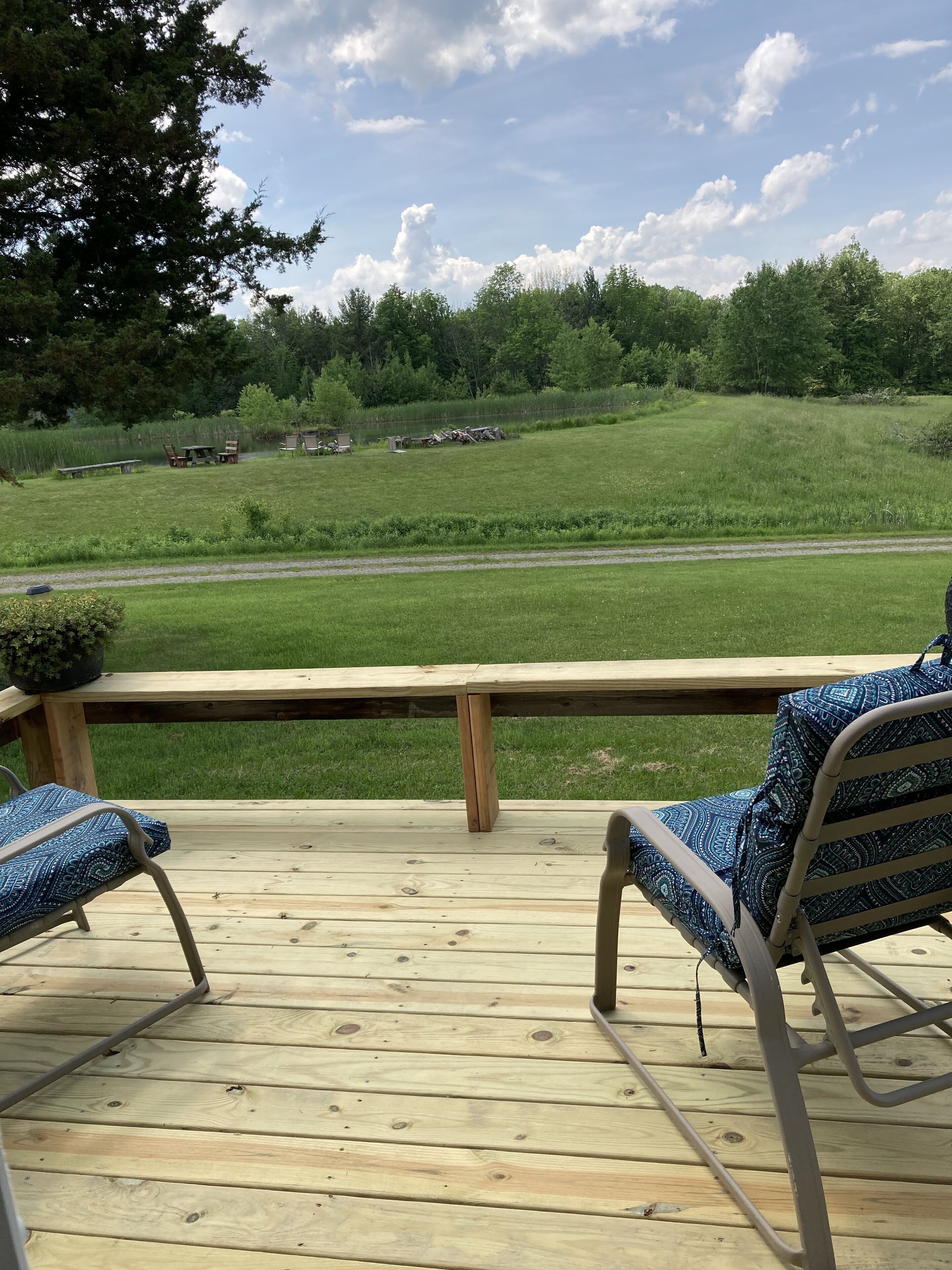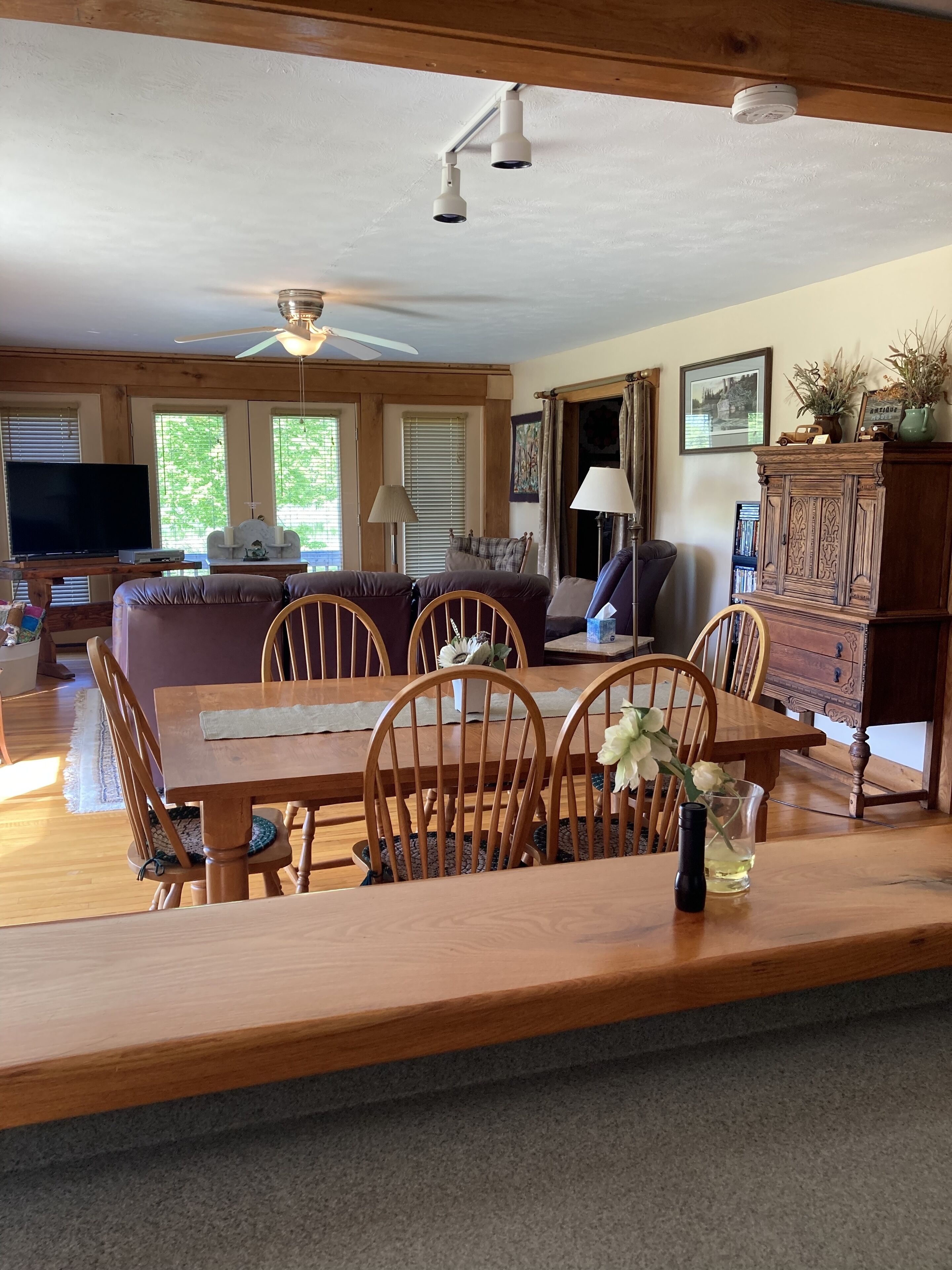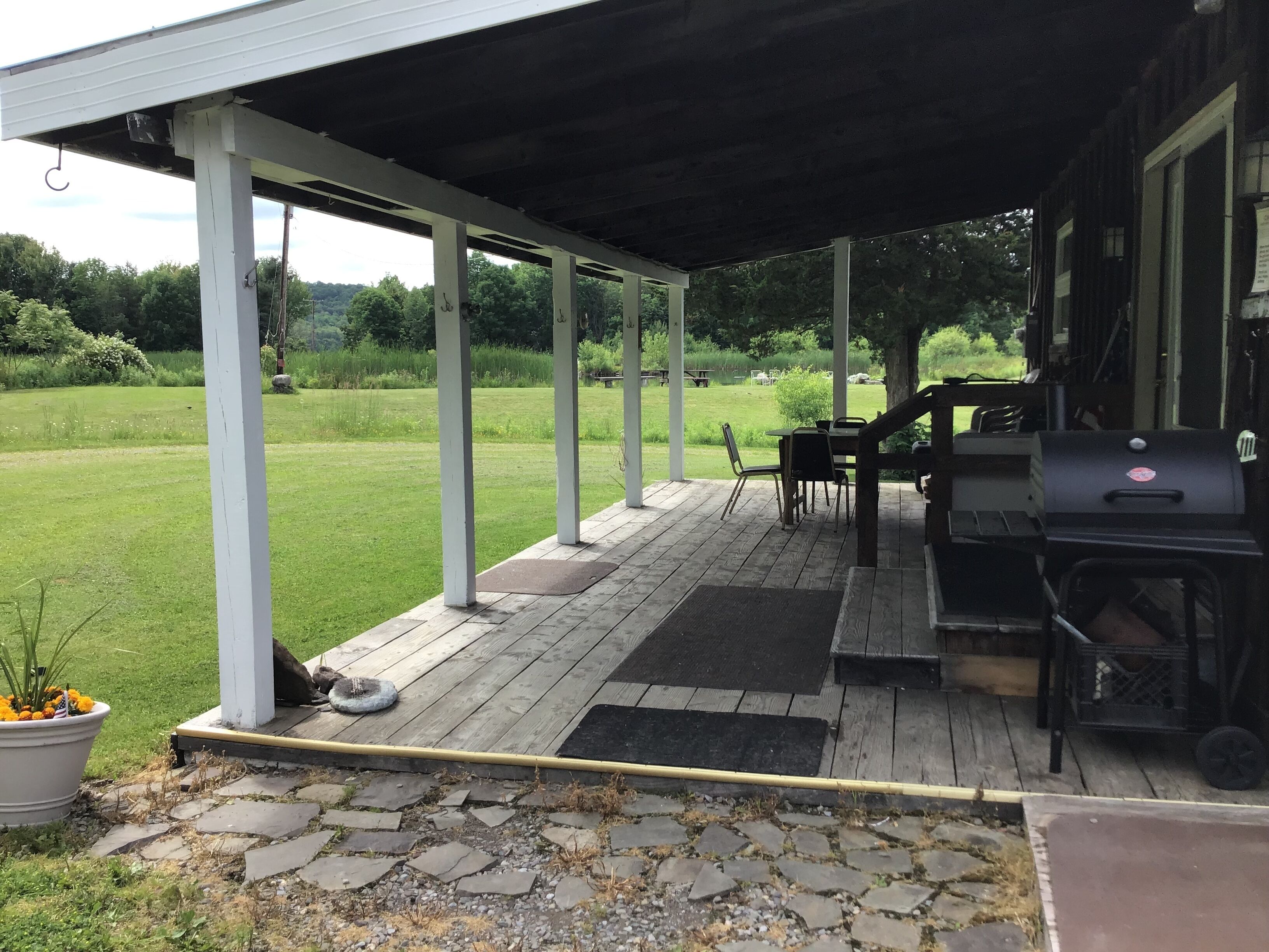 PondView Mountain Country House/Cabin on 70 acres with 5 Ponds House, 3 Bedrooms, 2 Bath, (Sleeps 6 adults MAXIMUM)We call it POND VIEW. It is a unique vacation place on 70 acres in the rolling hills of Spencer NY. It's a great place for 2-6 adults plus a few children. If you like nature and the outdoors, this is for you - very quiet, peaceful, at the end of a well-maintained 1/2 mile no-outlet road. The 3-bedroom 2-bath house is completely remodeled inside, with refinished oak flooring and woodwork harvested from Pond View's trees. There are oriental rugs, antique furnishings, and quilts throughout. The house is fully stocked with cookware, dishes, sheets, towels, etc. First floor has open floor plan; new kitchen includes breakfast bar made from a lightning-felled red oak from the top of the mountain. Large covered deck for eating, relaxing. House is surrounded by beautiful ponds (total 5, largest 1 acre), meadows and woods. House site is half-way up a mountain that rises to highest point in Tioga County (1600 feet). Over 2 miles of hiking trails. 3 ponds are stocked with bass - bring your fishing gear (catch and release). The grounds are frequently visited by wildlife (deer, turkeys, geese) and bird watching. Many attractions within easy drive: Finger Lakes wineries, state parks with waterfalls and hiking trails, Tioga Downs (harness racing, gaming), Corning Glass Museum, glider airplane rides in Elmira (soaring capital of eastern US), antique shops, etc. Spencer has a grocery store, gas station, bank, New Dollar General and most basics, along with a golf course/country club. Very comfortable country living.