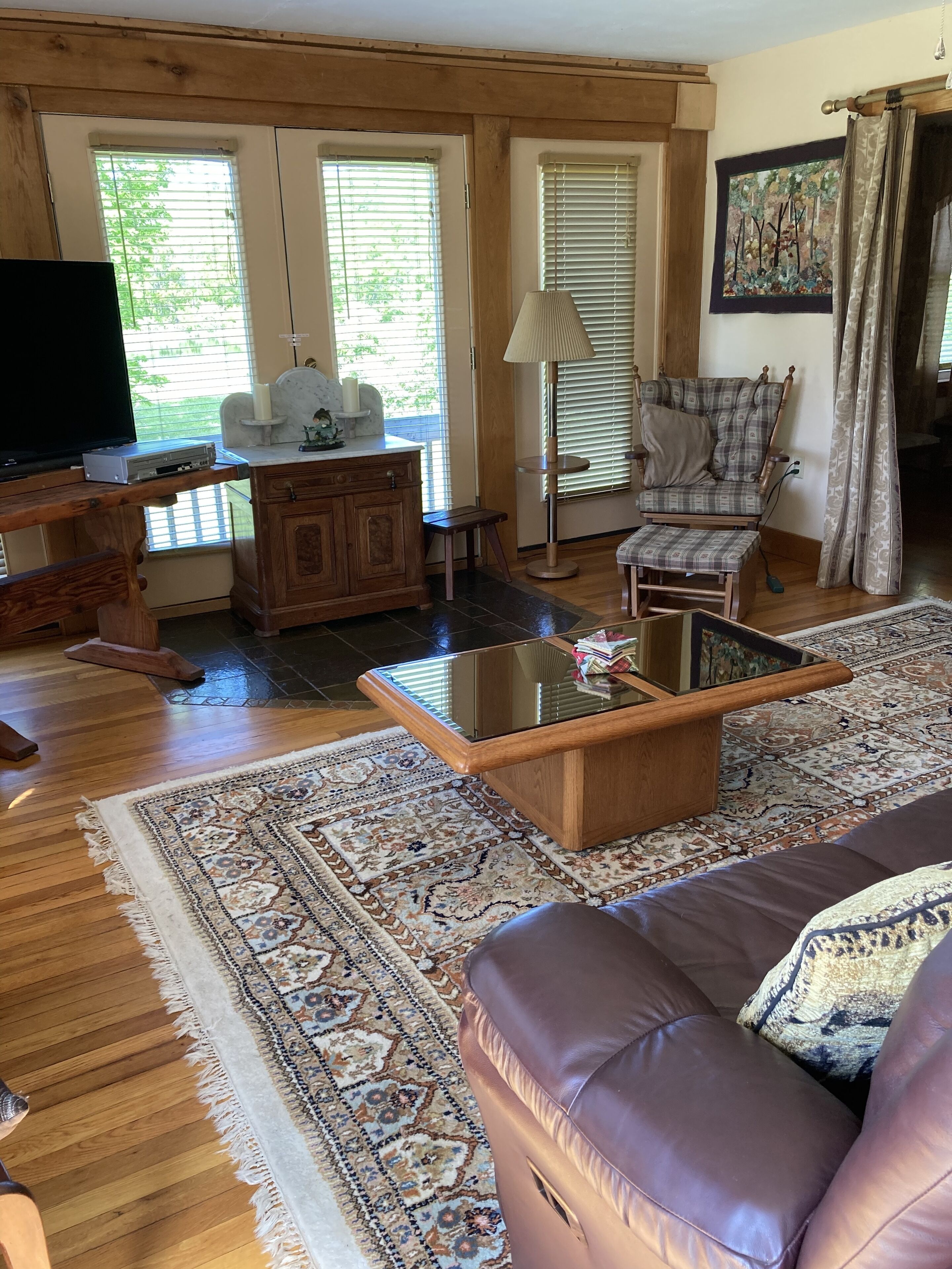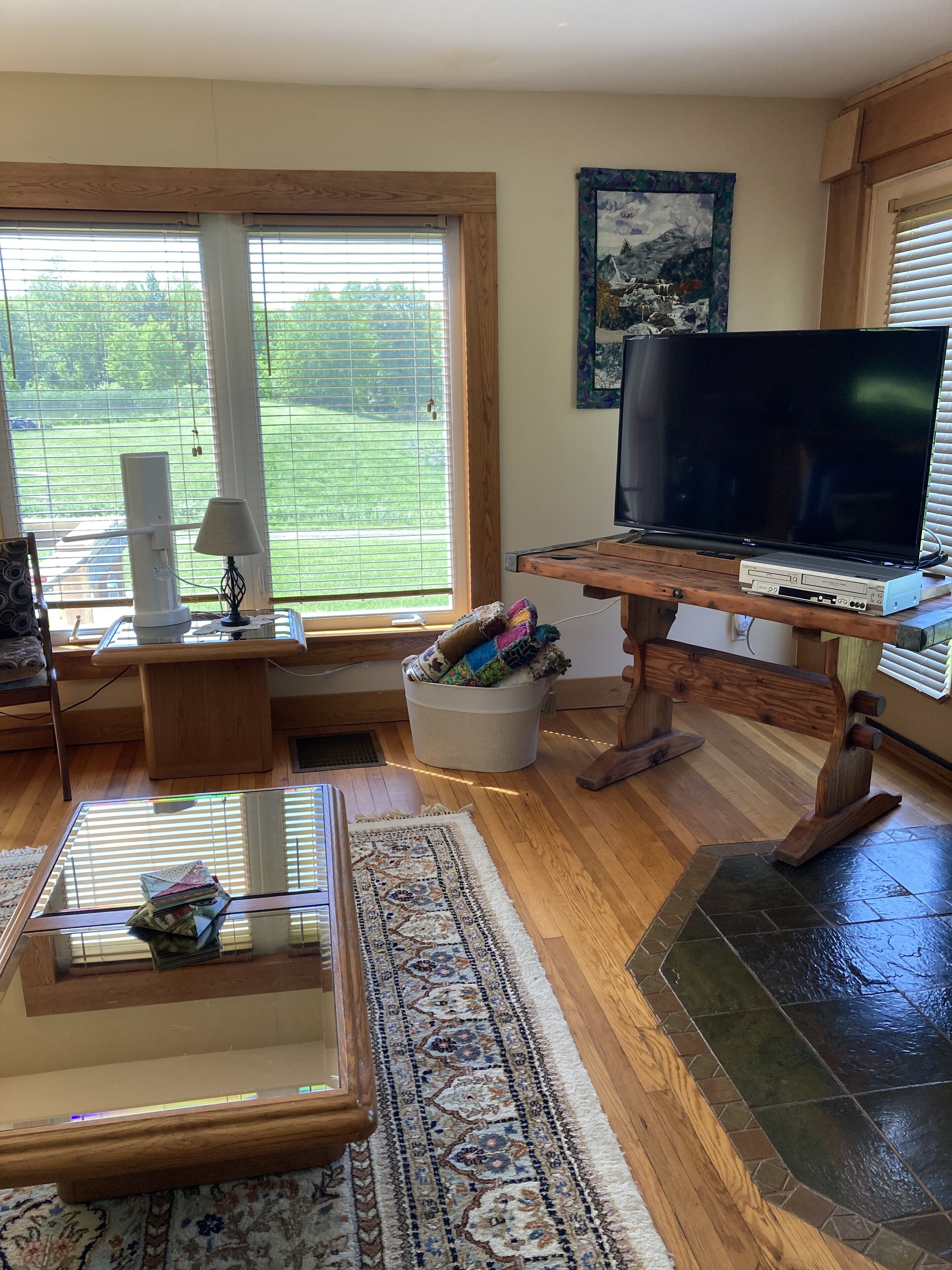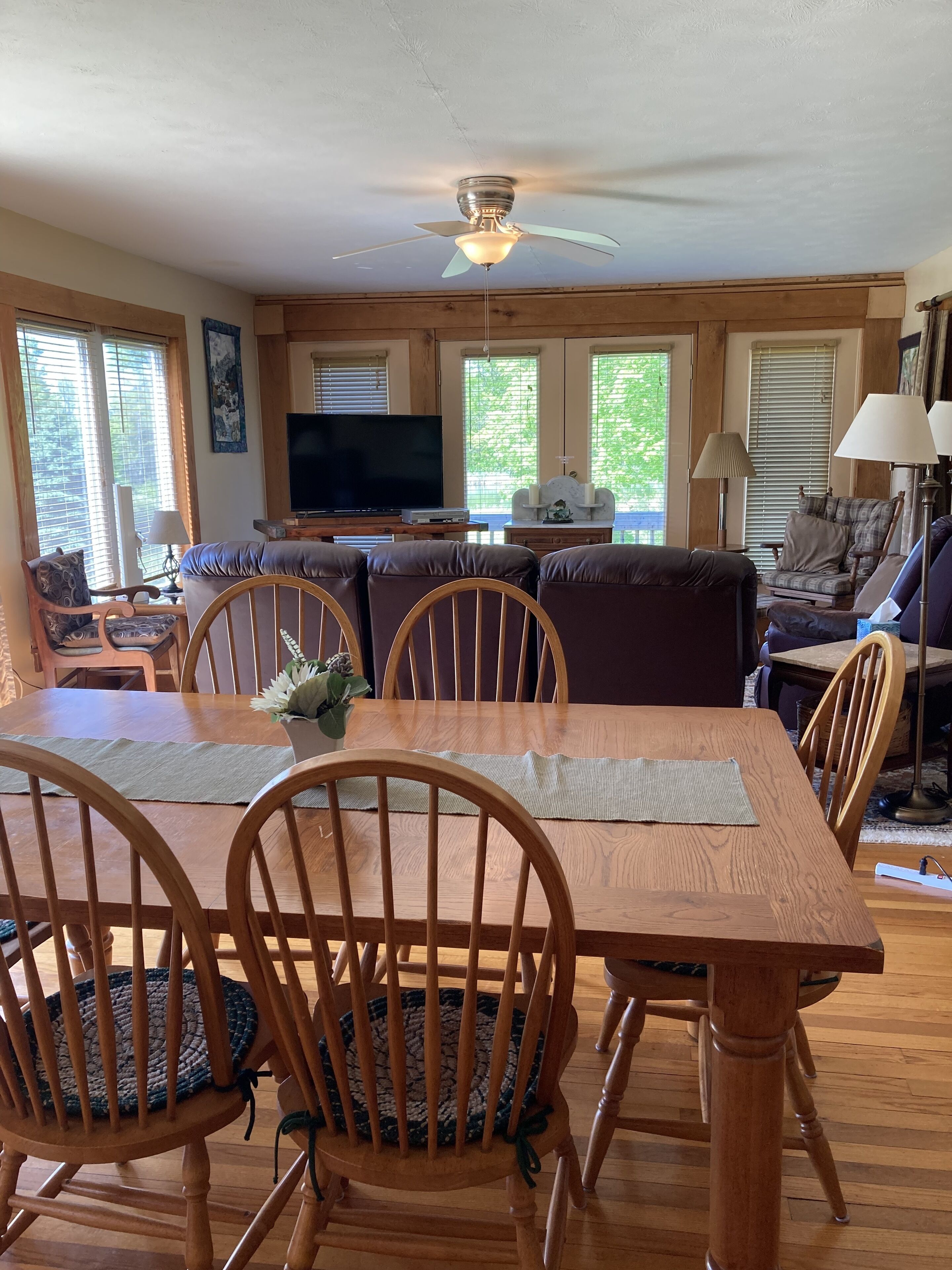 PondView Mountain Country House/Cabin on 70 acres with 5 Ponds House, 3 Bedrooms, 2 Bath, (Sleeps 6 adults MAXIMUM)We call it POND VIEW. It is a unique vacation place on 70 acres in the rolling hills of Spencer NY. It's a great place for 2-6 adults plus a few children. If you like nature and the outdoors, this is for you - very quiet, peaceful, at the end of a well-maintained 1/2 mile no-outlet road. The 3-bedroom 2-bath house is completely remodeled inside, with refinished oak flooring and woodwork harvested from Pond View's trees. There are oriental rugs, antique furnishings, and quilts throughout. The house is fully stocked with cookware, dishes, sheets, towels, etc. First floor has open floor plan; new kitchen includes breakfast bar made from a lightning-felled red oak from the top of the mountain. Large covered deck for eating, relaxing. House is surrounded by beautiful ponds (total 5, largest 1 acre), meadows and woods. House site is half-way up a mountain that rises to highest point in Tioga County (1600 feet). Over 2 miles of hiking trails. 3 ponds are stocked with bass - bring your fishing gear (catch and release). The grounds are frequently visited by wildlife (deer, turkeys, geese) and bird watching. Many attractions within easy drive: Finger Lakes wineries, state parks with waterfalls and hiking trails, Tioga Downs (harness racing, gaming), Corning Glass Museum, glider airplane rides in Elmira (soaring capital of eastern US), antique shops, etc. Spencer has a grocery store, gas station, bank, New Dollar General and most basics, along with a golf course/country club. Very comfortable country living.