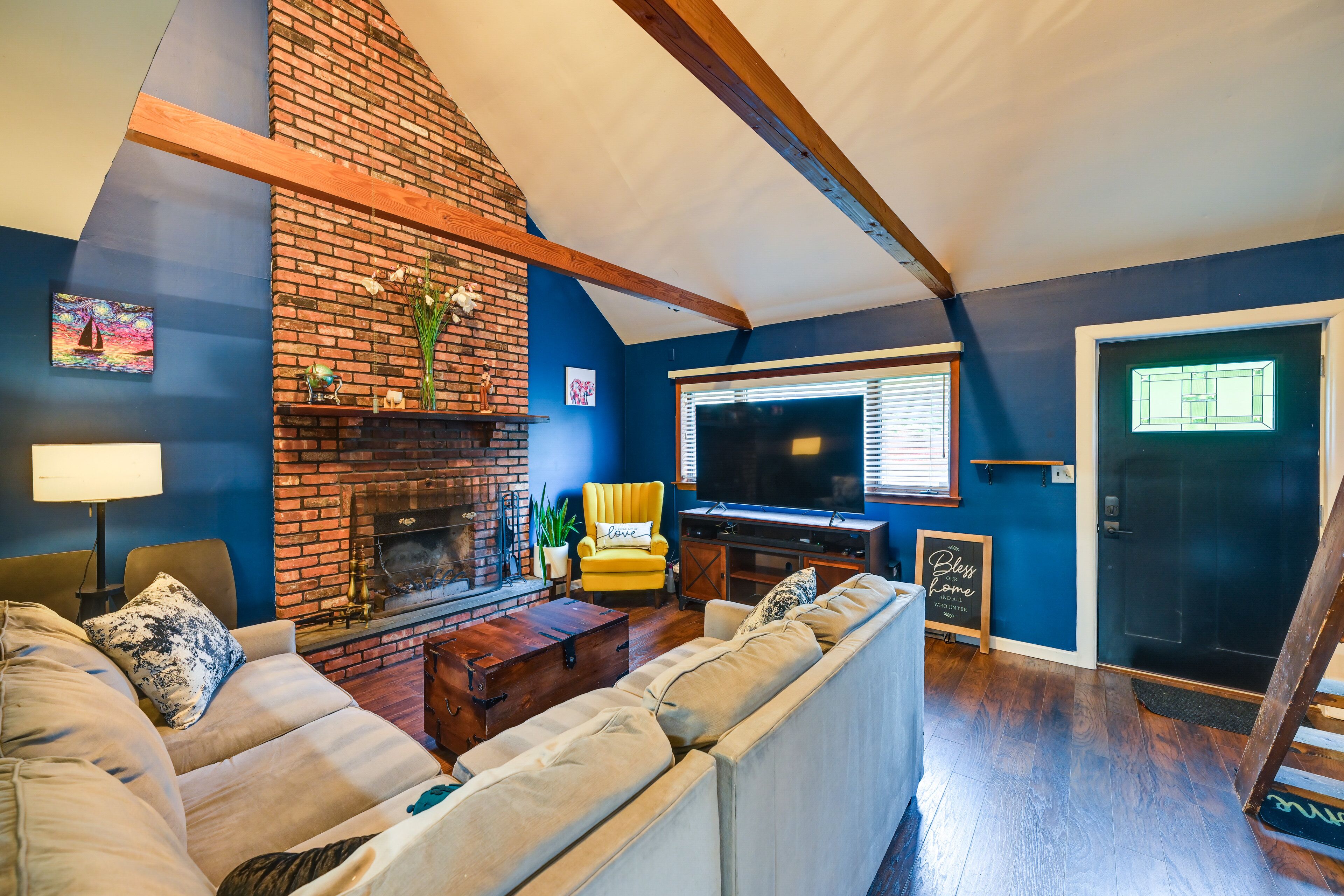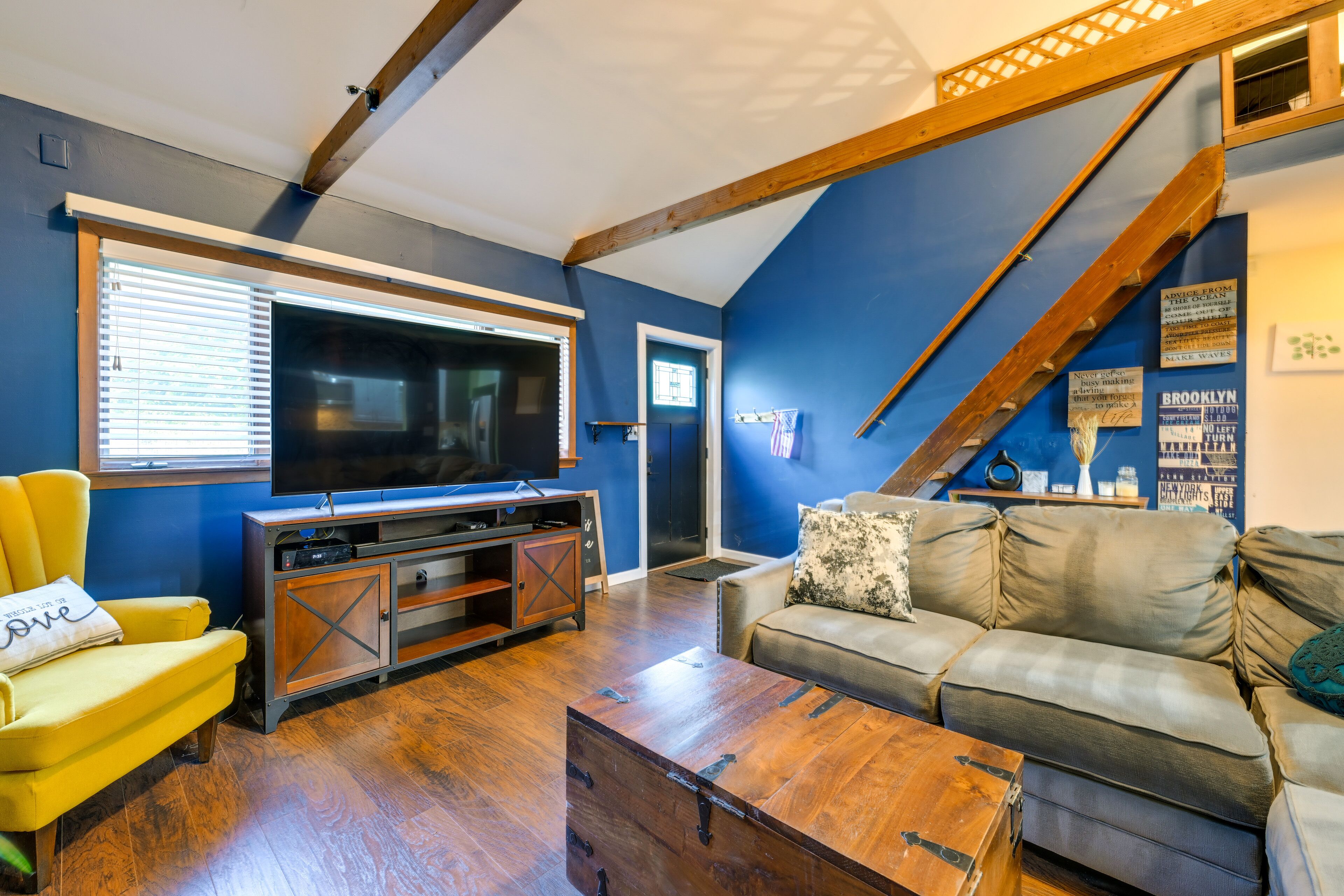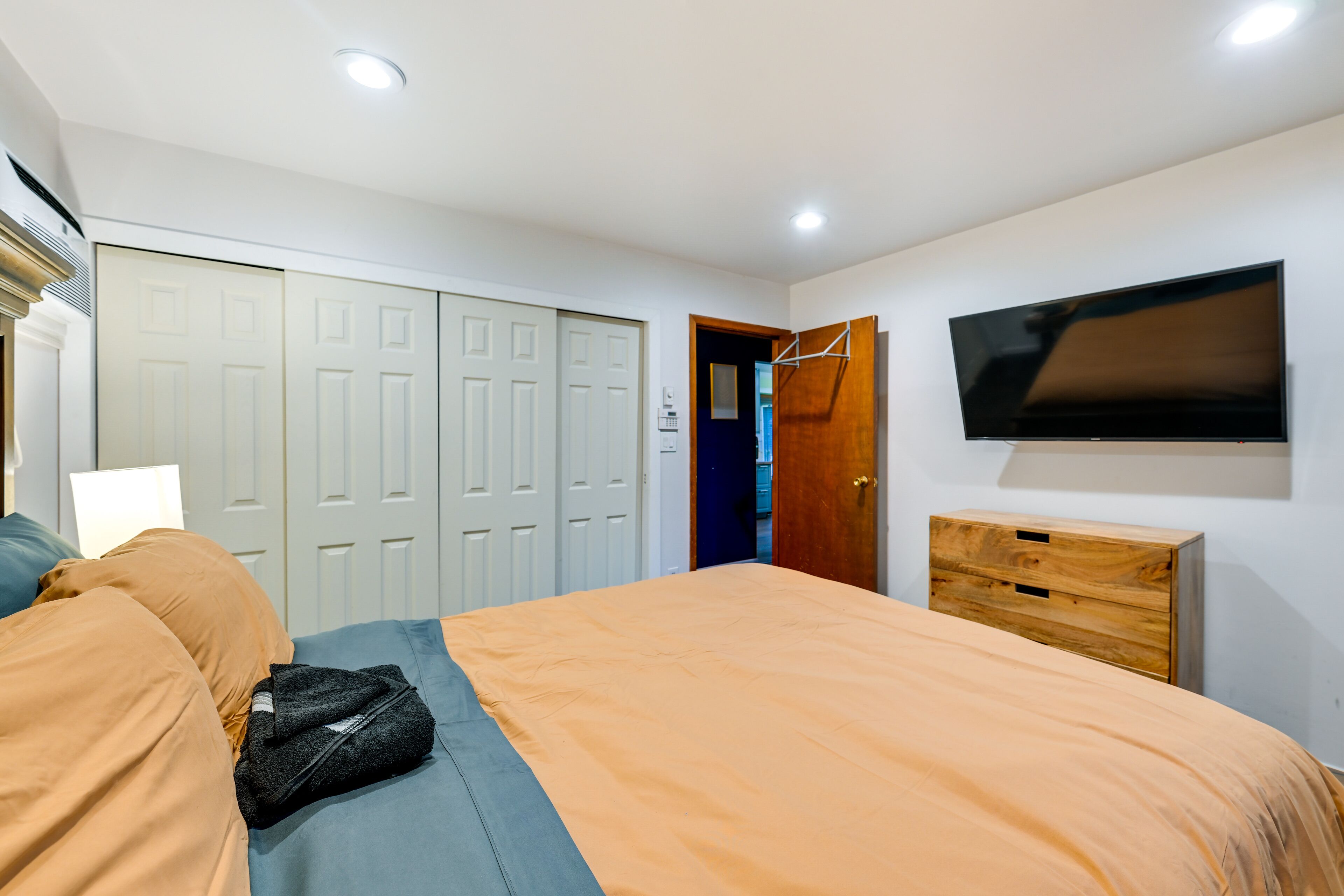 Long Island Home w/ Deck, Yard, 5 Mi to Beach! Idyllic beach days and lasting memories await at this pet-friendly vacation rental in Farmingdale, NY. Tucked away on Long Island a short drive from the shore, this 2-bedroom, 1-bath home offers a charming escape. Bask in the sun and sand at Jones Beach State Park, dive into family-friendly fun at Adventureland, or walk to Main Street for summertime events. No matter where your day takes you, feel at ease returning to a fully equipped kitchen, Smart TVs, a fireplace, a fenced-in yard, and more.-- THE PROPERTY --Free WiFi | Fire Pit (Wood Provided) | Pets Welcome w/ Fee | 1 Mi to Main Street | ~26 Mi to Queens | 5 Min Drive to Farmingdale LIRR Station (23 Min Walk)Bedroom 1: Queen Bed | Bedroom 2: Full Bed | Loft: Full FutonOUTDOOR LIVING: Fenced-in yard, deck, outdoor seatingINDOOR LIVING: 3 Smart TVs, fireplace, sectional sofa, dining nook, walk-in showerLOFT: Desk w/ printer, exercise equipmentKITCHEN: Stove/oven, refrigerator, dishwasher, microwave, coffee maker, blender, toaster, cooking basicsGENERAL: Electric heating, A/C units, washer/dryer, linens/towels, iron/board, hangers, trash bags/paper towelsFAQ: Step-free entry, bedrooms & bathroom on 1st floor, stairs to access loft, pet fee (paid pre-trip)PARKING: Driveway (2 vehicles), free street parking-- THE LOCATION --BEACH DAYS: Amityville Beach (5 miles), Copiague Beach (6 miles), Jones Beach State Park (12 miles), Tobay Beach (18 miles), Cedar Beach (20 miles)SEE & DO: Main Street (1 mile), Adventureland (2 miles), RPM Raceway (2 miles), Farmingdale State College (2 miles), American Airpower Museum (2 miles), White Post Farms of Melville (5 miles), Venetian Shores Park (6 miles), Eisenhower Park (12 miles), Manhattan (36 miles)OUTDOOR FUN: Bethpage State Park & Black Course (2 miles), The Adventure Park at Long Island (5 miles), Belmont Lake State Park (6 miles), Edgewood Oak Brush Plains Preserve (9 miles)AIRPORTS: Long Island MacArthur Airport (21 miles), John F. Kennedy International Airport (23 miles), LaGuardia Airport (30 miles)-- REST EASY WITH US --Evolve makes it easy to find and book properties you’ll never want to leave. You can relax knowing that our properties will always be ready for you and that we’ll answer the phone 24/7. Even better, if anything is off about your stay, we’ll make it right. You can count on our homes and our people to make you feel welcome--because we know what vacation means to you.-- POLICIES --- No smoking- Pet friendly w/ $50 fee (+ fees & taxes)- No events, parties, or large gatherings- Must be at least 25 years old to book- Additional fees and taxes may apply- Photo ID may be required upon check-in- NOTE: While this property has step-free entry and bedrooms on the 1st floor, there are stairs required to access the loft