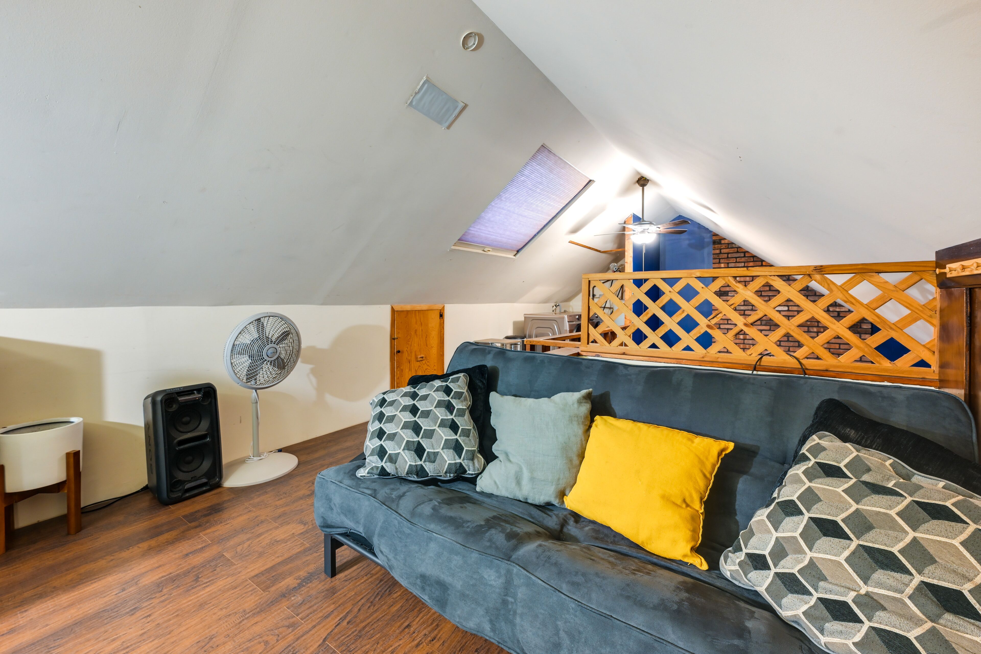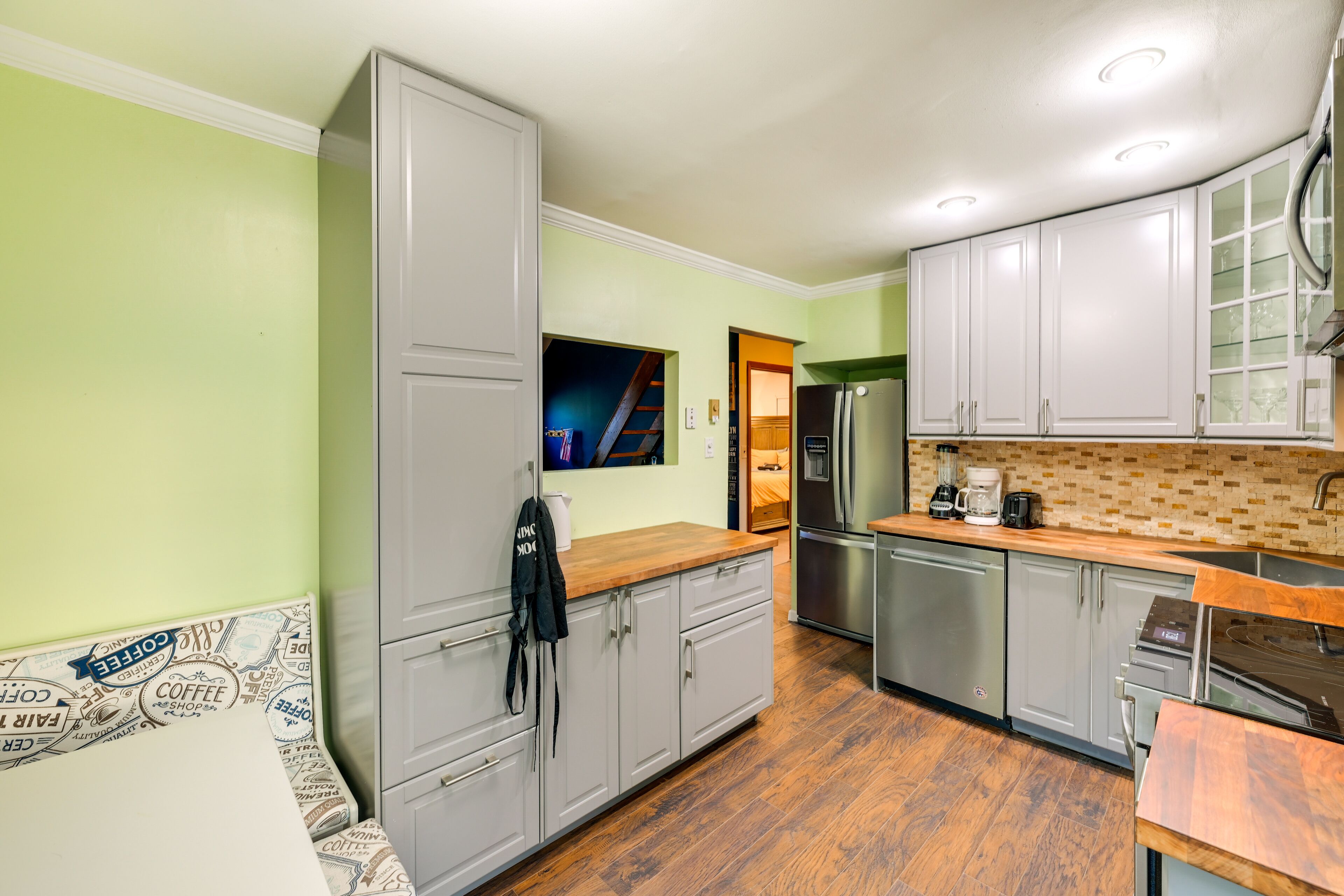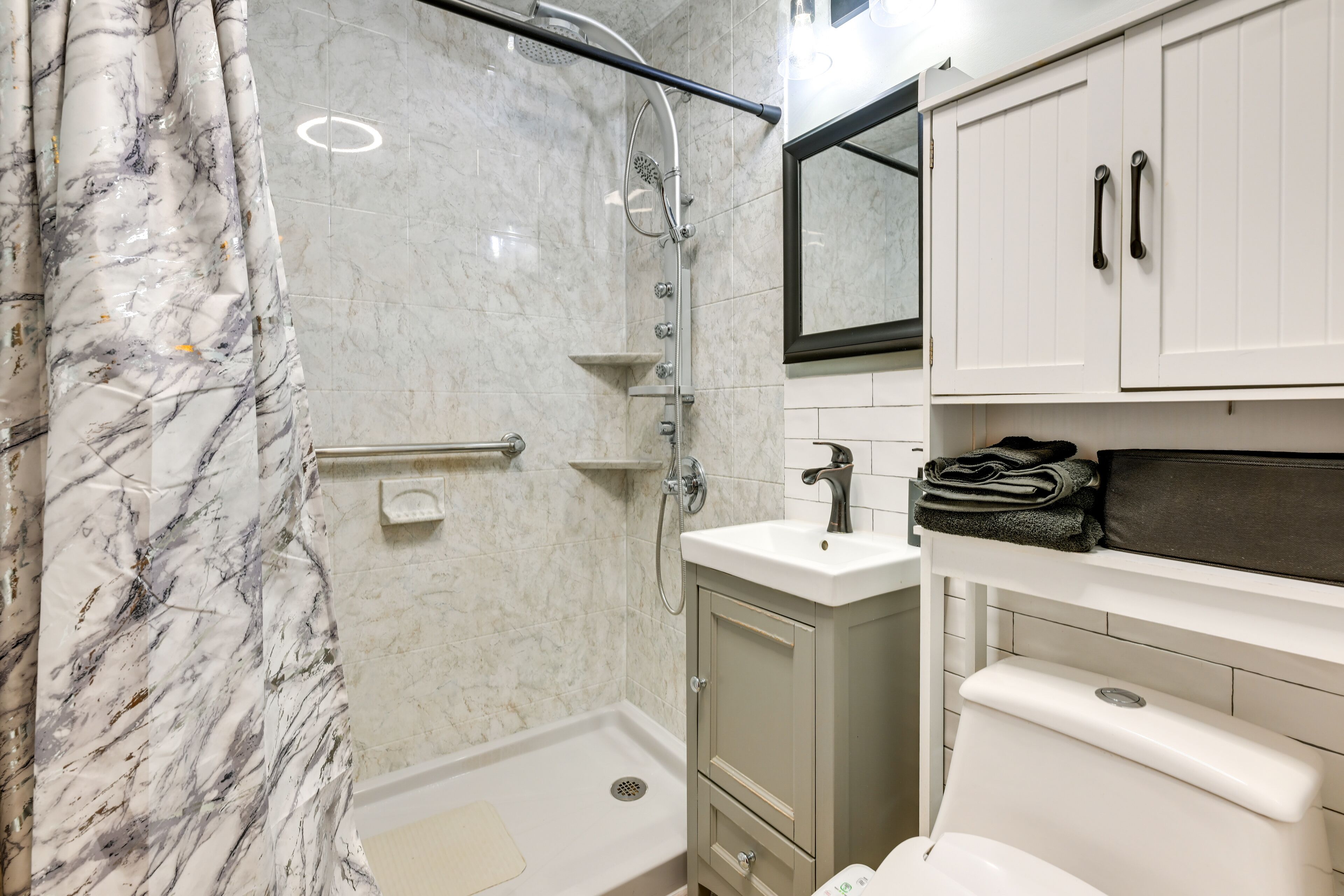 Long Island Home w/ Deck, Yard, 5 Mi to Beach! Idyllic beach days and lasting memories await at this pet-friendly vacation rental in Farmingdale, NY. Tucked away on Long Island a short drive from the shore, this 2-bedroom, 1-bath home offers a charming escape. Bask in the sun and sand at Jones Beach State Park, dive into family-friendly fun at Adventureland, or walk to Main Street for summertime events. No matter where your day takes you, feel at ease returning to a fully equipped kitchen, Smart TVs, a fireplace, a fenced-in yard, and more.-- THE PROPERTY --Free WiFi | Fire Pit (Wood Provided) | Pets Welcome w/ Fee | 1 Mi to Main Street | ~26 Mi to Queens | 5 Min Drive to Farmingdale LIRR Station (23 Min Walk)Bedroom 1: Queen Bed | Bedroom 2: Full Bed | Loft: Full FutonOUTDOOR LIVING: Fenced-in yard, deck, outdoor seatingINDOOR LIVING: 3 Smart TVs, fireplace, sectional sofa, dining nook, walk-in showerLOFT: Desk w/ printer, exercise equipmentKITCHEN: Stove/oven, refrigerator, dishwasher, microwave, coffee maker, blender, toaster, cooking basicsGENERAL: Electric heating, A/C units, washer/dryer, linens/towels, iron/board, hangers, trash bags/paper towelsFAQ: Step-free entry, bedrooms & bathroom on 1st floor, stairs to access loft, pet fee (paid pre-trip)PARKING: Driveway (2 vehicles), free street parking-- THE LOCATION --BEACH DAYS: Amityville Beach (5 miles), Copiague Beach (6 miles), Jones Beach State Park (12 miles), Tobay Beach (18 miles), Cedar Beach (20 miles)SEE & DO: Main Street (1 mile), Adventureland (2 miles), RPM Raceway (2 miles), Farmingdale State College (2 miles), American Airpower Museum (2 miles), White Post Farms of Melville (5 miles), Venetian Shores Park (6 miles), Eisenhower Park (12 miles), Manhattan (36 miles)OUTDOOR FUN: Bethpage State Park & Black Course (2 miles), The Adventure Park at Long Island (5 miles), Belmont Lake State Park (6 miles), Edgewood Oak Brush Plains Preserve (9 miles)AIRPORTS: Long Island MacArthur Airport (21 miles), John F. Kennedy International Airport (23 miles), LaGuardia Airport (30 miles)-- REST EASY WITH US --Evolve makes it easy to find and book properties you’ll never want to leave. You can relax knowing that our properties will always be ready for you and that we’ll answer the phone 24/7. Even better, if anything is off about your stay, we’ll make it right. You can count on our homes and our people to make you feel welcome--because we know what vacation means to you.-- POLICIES --- No smoking- Pet friendly w/ $50 fee (+ fees & taxes)- No events, parties, or large gatherings- Must be at least 25 years old to book- Additional fees and taxes may apply- Photo ID may be required upon check-in- NOTE: While this property has step-free entry and bedrooms on the 1st floor, there are stairs required to access the loft