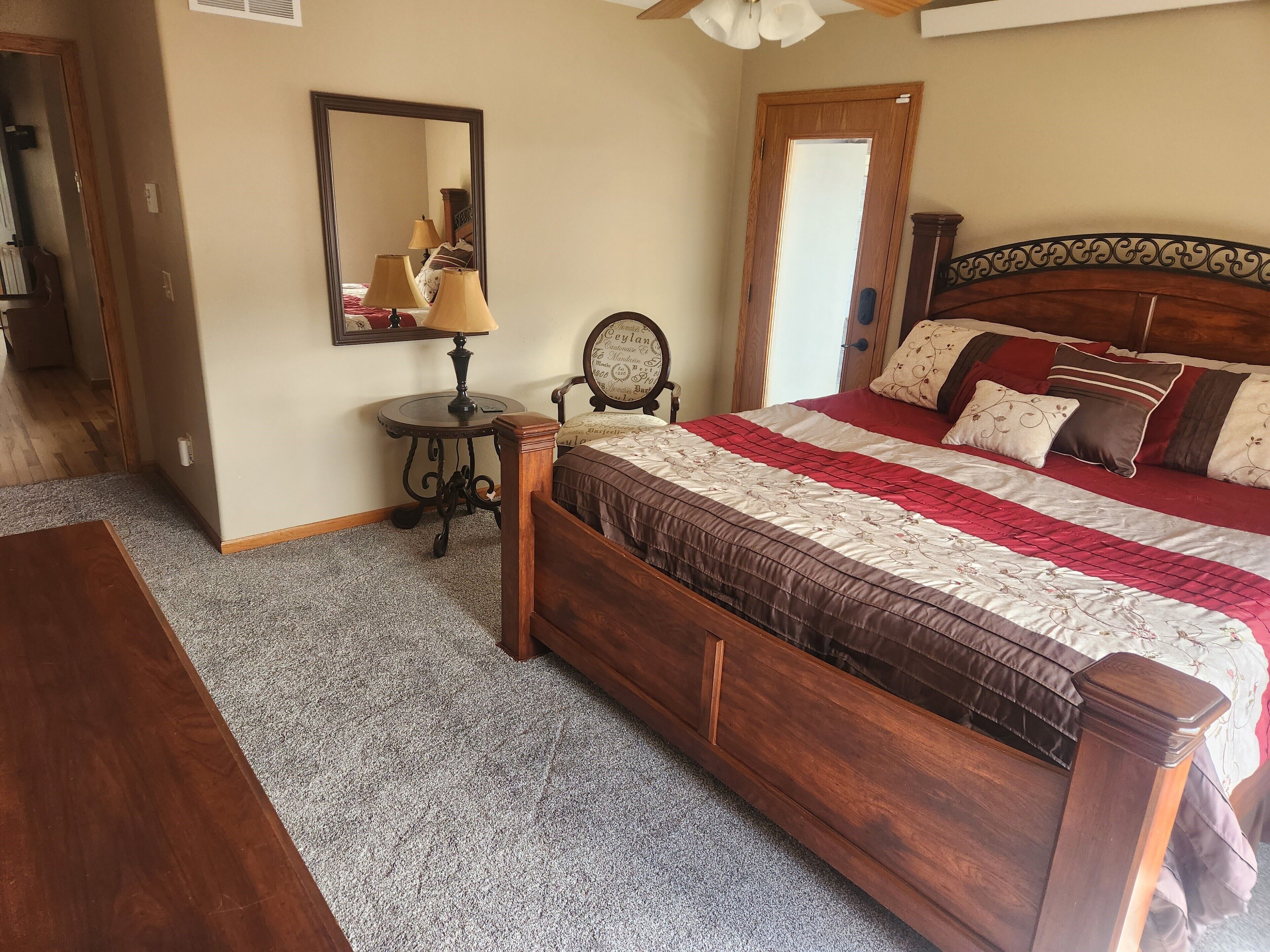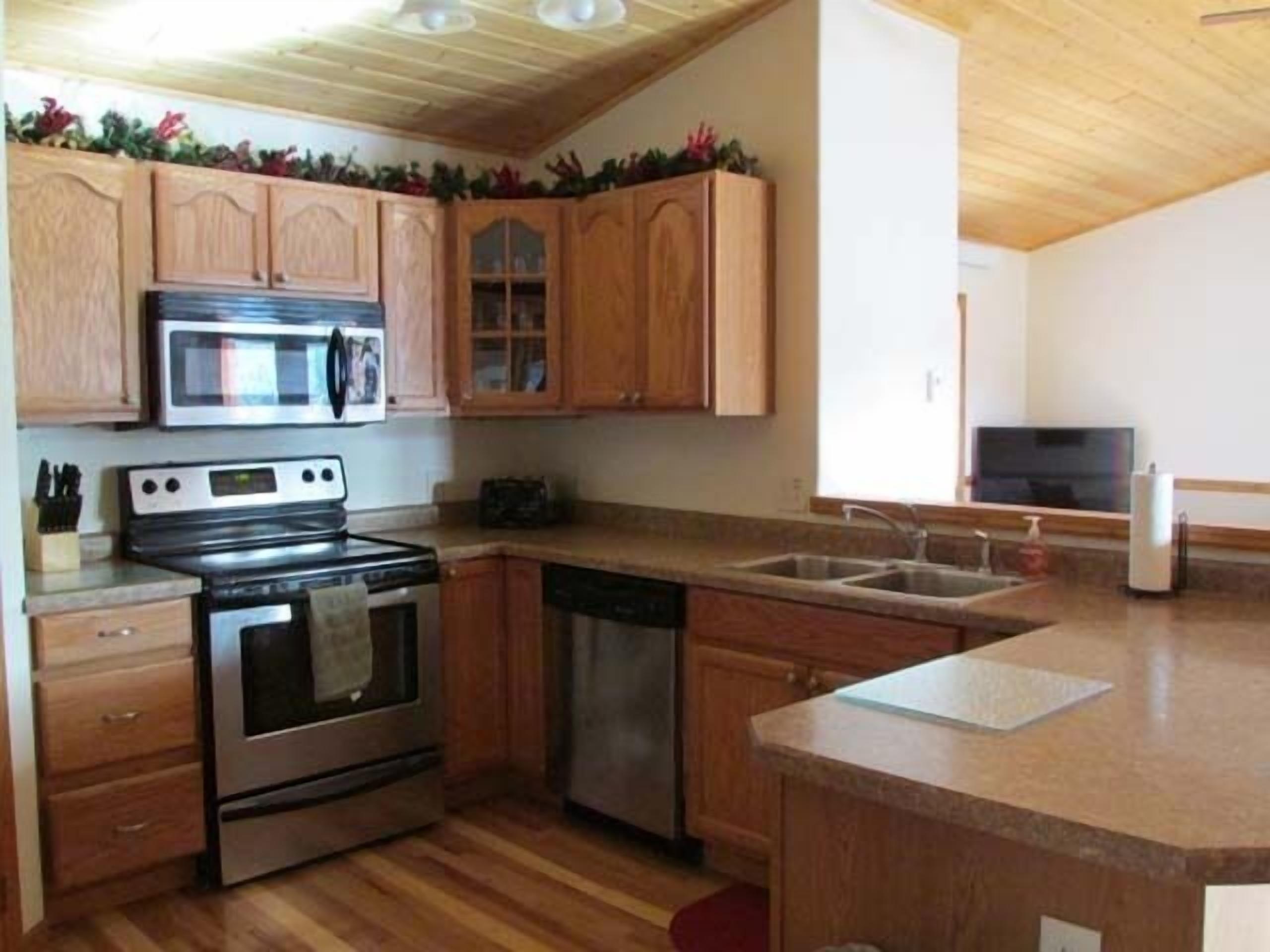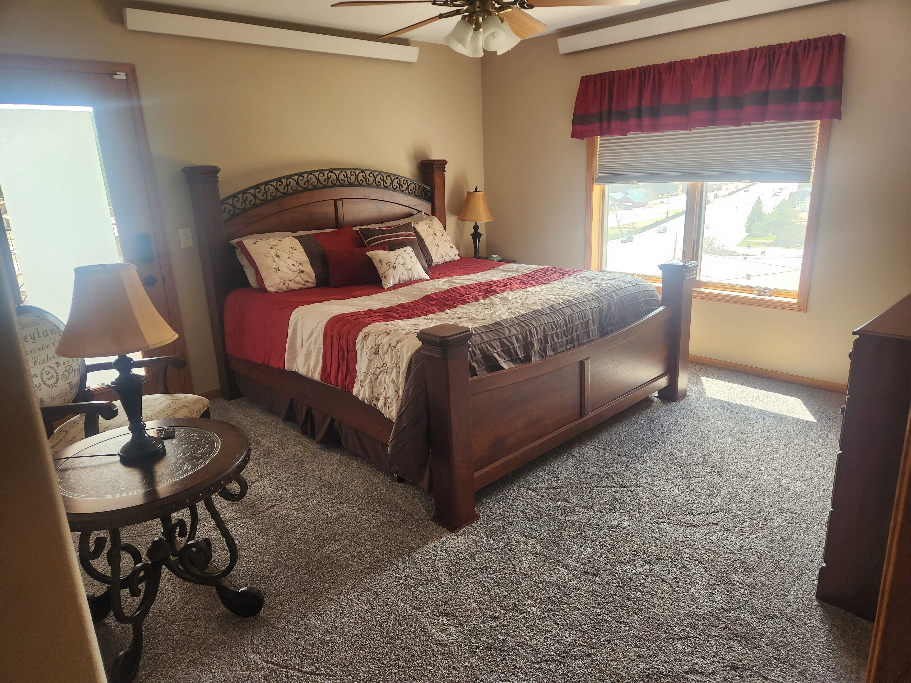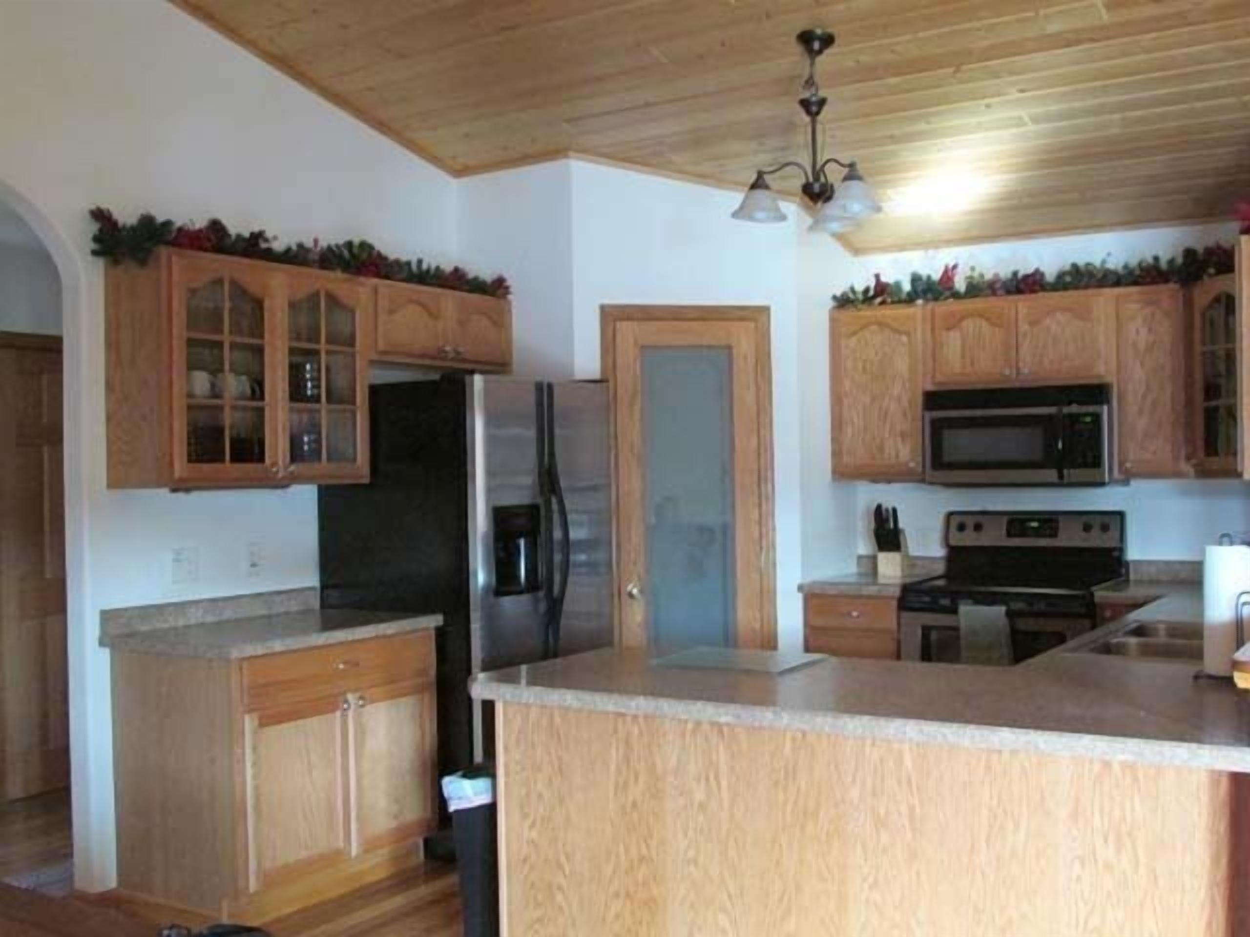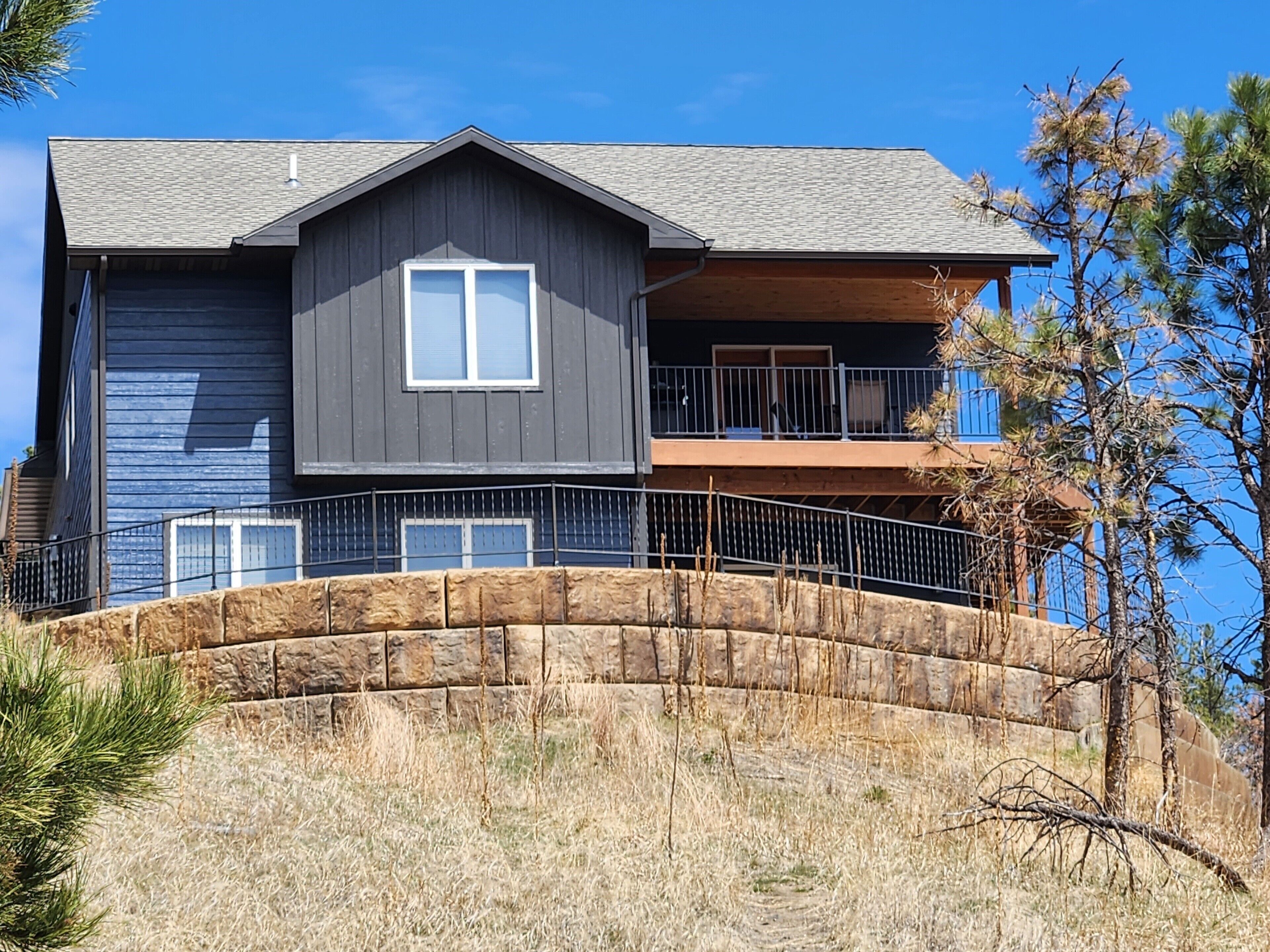 GREAT VIEWS FROM THE DECK. Accommodates 8 people. Maximum 6 adults. Sleeper sofa for children ONLY. Be sure to place an inquiry with any questions before “clicking BOOK NOW” to reserve online. We are happy to answer any questions before you commit with payments.This 3 bedroom, 2 bath home was built in 2008. it is located on Prospector Mountain on a ridge overlooking Main Street Hill City and the Black Hills Central Railroad (1880 Tourist Train). Enjoy the beautiful views of the surrounding mountains and nearby Harney Range. Paved roads lead all the way to this home with a double garage. It is just a stroll down the hill to “Major Lake” for fishing, or to access the Mickelson Hiking/Biking Trail and Hill City’s Main Street.On the main floor: Primary bedroom with king size bed and an adjoining bathroom with tub & shower. Fully furnished kitchen with side by side refrigerator and plenty of cabinets and walk-in storage for your supplies. Kitchen/dining with seating for 6 at the table and 4 at the kitchen counter. Living room with queen sleeper sofa, love seat, TV and gas log stove. The upper wrap-around deck has a table, deck chairs and gas grill.Included on the lower level with walk out to the patio: Large 26X20 family room with sofa, recliner, oversize chair with ottoman, flat screen TV and a round bar height table with chairs…perfect for playing cards or a laptop spot. The 2nd and 3rd bedrooms both with a queen bed are also on this level as well as the 2nd bathroom with tub & shower. The laundry room has a washer and dryer. The walk out patio has additional outdoor seating.Other amenities: Central air conditioning, cable TV, and wireless internet access. No pets, no smoking2200 sq feet Terms: Iron Horse and Sluice Run:Iron horse: The invention of coal and steam powered locomotives replaced horse drawn wagons to expedite the transport of goods across the plains. They were dubbed “iron horses”.Sluice run: During the Black Hills gold rush of the 1870’s miners ored the gold and washed it down gullies by the way of a water channel controlled by a gate called a sluice.