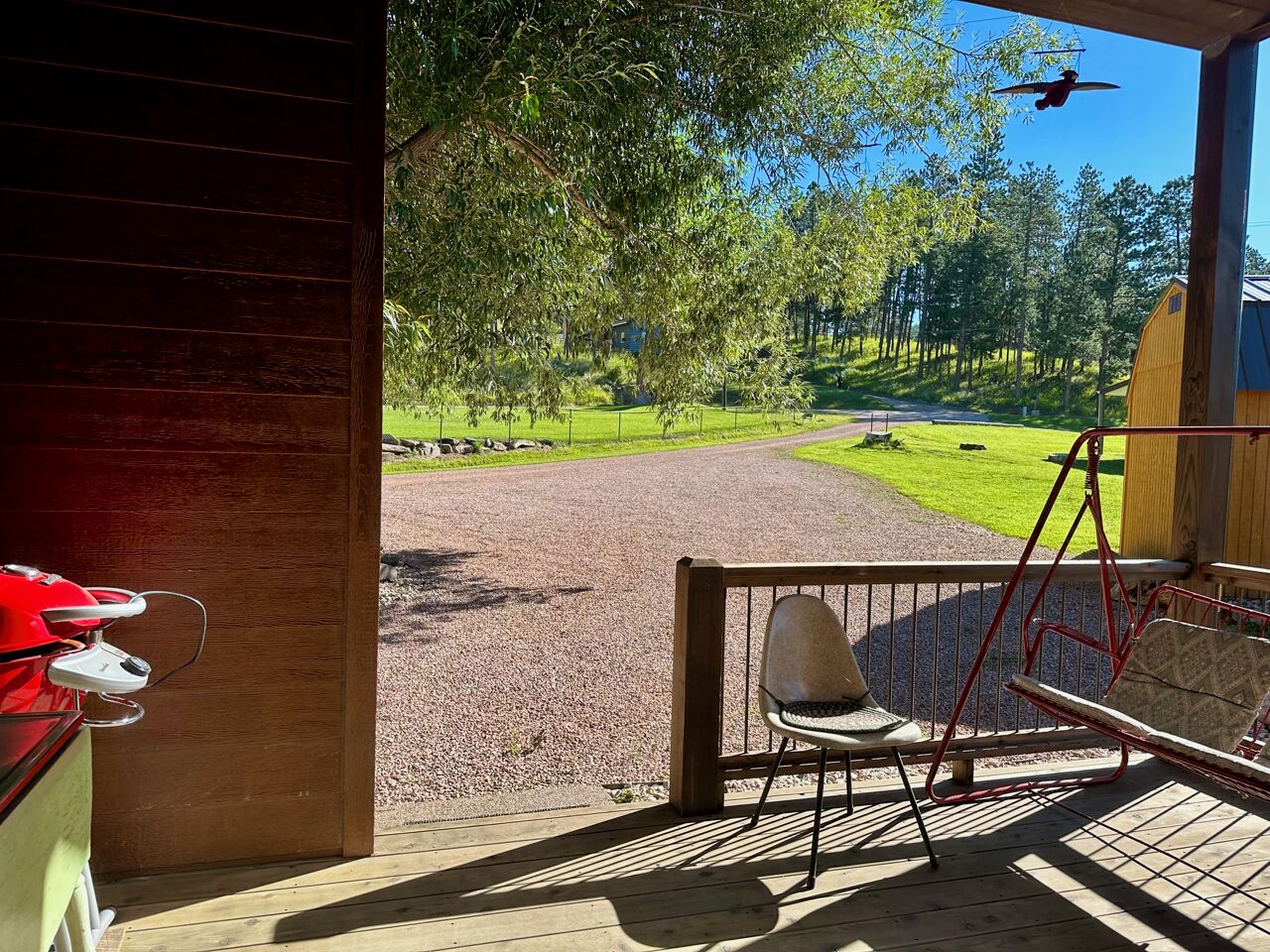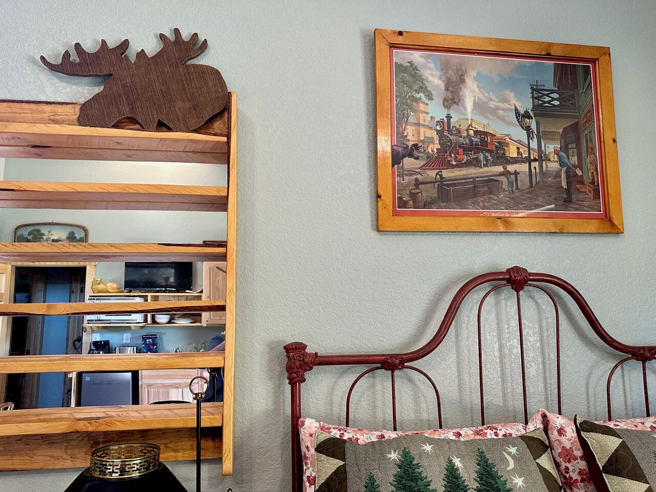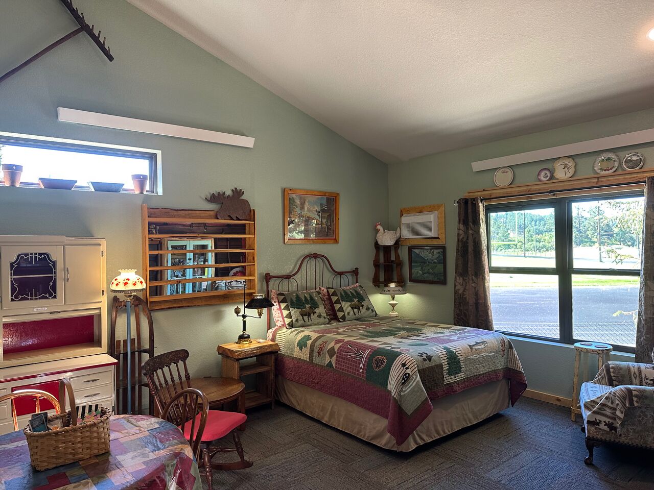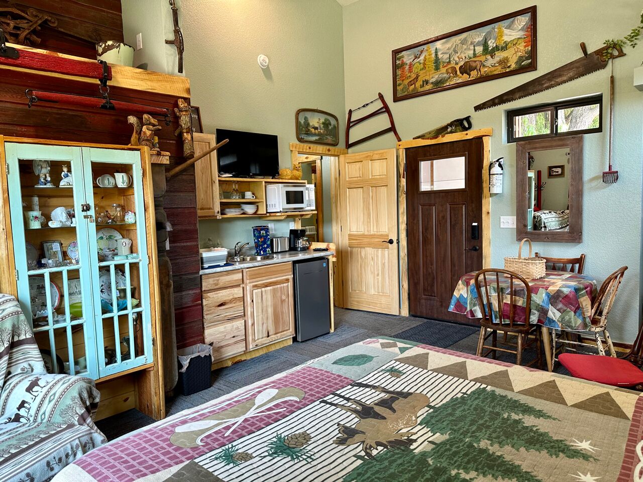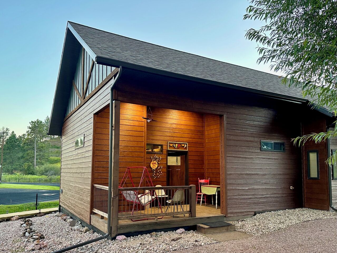 Black Hills Home Cabins—ELOOSIVE MOOSE—in Hill City, near Lake, Mickelson Trail! Black Hills Home Cabins at Chokecherry BnB, located IN Hill City (a neighborly very likable mountain town), features 2 in-home cabin style nightly vacation rentals, under the one roof of our NEW modern mountain cottage. This listing offers ELOOSIVE MOOSE, spacious, thought-out carefully for your comfort and convenience, and the rates are easy going while the benefits are exceptional! Owners Sam and Linda live in the all new hospitality residence, separately from your ‘moose farm’ (…said tongue-in-cheek, because the decor, besides faux moose sightings, includes an eclectic variety of farm artifacts, gleaned from the childhoods of your host and hostess.) The overall BnB cottage consists of three individual distinct units: owner quarters; Eloosive Moose (in-home cabin); and Chokecherry Hideout (in-home cabin Vrbo ID 3539428). Yes, you do have your own personal porch entrance, with the inviting look of a good-natured cabin!NOTE 1—Our Vrbo calendar is set for showing availability from present to six months out, and adjusts automatically to always show six months availability.NOTE 2—Please take time to read the House Rules/Policies (at bottom) provided with this listing, as well as to look at the amenities available or not available. It is IMPORTANT to do so before sending a Reservation Request. For instance, we are firm on renting to NON-SMOKERS only [people who do NOT smoke]. Under no circumstances can we accommodate people who smoke, even if off-property. (If this policy is relevant to you, please read About Our Non-Smokers Only Policy at bottom of this description page.) Again, please read the rules and policies, and check the amenities shown elsewhere in this listing. Thank you.CHECKIN window between 4:00-6:00 p.m.—The checkin window is to let you know that we are not ready to receive guests before 4:00, so that isn’t an option; however, after 6:00 we usually have more flexibility. (The morning of your arrival date we will email to ask if you must be later than 6:00, and approximately what time to anticipate your arrival.) CHECKOUT by 11:00 a.m.—Necessary particularly when we have guests arriving later the same day as your checkout.A suggestion—if you are three or four adults traveling together, you may check to see if Chokecherry Hideout is also available and, if so, you could rent both in-home cabins! We have accommodated guests who did just that. The benefits include two full bathrooms, privacy between the in-home cabins, two places to spend time together, a picnic table, two grills (one electric and one charcoal), and probably you could think of other benefits as well. Please inquire if you have questions.2006-2021 (Vrbo since 2013) — With the experience of 15 years as host and hostess in our first owner-occupied BnB, we have acquired a strong sense of what works for and appeals to travelers. Our stack of guest books, filled with happy satisfied expressions from former thousands of guests, attests to our earnest desire to extend hospitality that shows you are on our minds. As we look forward cheerfully to meeting all our future vacationers who will be visiting the beautiful Black Hills and choose to book here, we are reminded of our gratitude for those past wonderful years which we were blessed to enjoy, and for all the new friends we made because they chose to stay with us, some of whom followed us forward!Let’s explore a variety of benefits you may expect from Black Hills Home Cabins. ~ First of all, and importantly, we are near Mt. Rushmore, in the Central Black Hills, which is ideal for adventurous day-trips into unparalleled diverse scenic vistas everywhere in the length and breadth of the Black Hills. ~ No less advantageous, the in-town location of Black Hills Home Cabins provides easy access, even on foot, to everything Hill City has to offer. ~ Black Hills Home Cabins is in near proximity to the George S. Mickelson Trail, for exercise, or bird and wildlife viewing out in nature. The ever-popular trail strides through town along Railroad Avenue. We are situated across the football field from Major Lake, where there is access to the trail from the lake (and a fishing/resting pier!) ~ Don't miss the iconic tourist attraction, Black Hills Central Railroad's 1880 Train, stationed along the trail. ~ Bike rentals are locally available as well. ~ For your grocery needs, Hill City's full service Krull's Market is only a few blocks away. ~ There are two laundromats in town. ~ And several churches grace this small community. ~ Probably you will devote some leisurely time to historic downtown Hill City. That's where you will find everything from a hair salon to filet mignon to dreamy ice cream and homemade fudge to a world class dinosaur museum, and Dahl’s Chainsaw Art. Many local artists make their offerings available for purchase at Art Forms downtown! Savor the choices of cafes, grills and restaurants for breakfast, lunch and dinner. Track down fine gifts, as well as trinkets, t-shirts and antiques. ~ Also available for purchase are antiques displayed in a special log cabinet in your cabin, direct from our former retail shop Smiling Bear Antiques. ~ And our Smiling Bear-verage menu will be provided to you, reminiscent of Smiling Bear’s Espresso Bar, highlighting our exclusive and popular Wild Chokecherry Latte and other original tasty creations of Smiling Bear’s. ~ When time permits, Smiling Bear also may whip up some award winning jams and jellies, sold as Black Hills Wild Fruit.Please review all the PHOTOS provided with this listing, and we recommend that you indulge in reading the informative captions. You will see your private full bath, with a 5’ curved tub with a shower having 6 handy shelves; and an assortment of amenities throughout—linens and towels are provided, as well as shampoo, conditioner, body wash, hand soap, dish soap. The bed is a queen-size pillowtop.