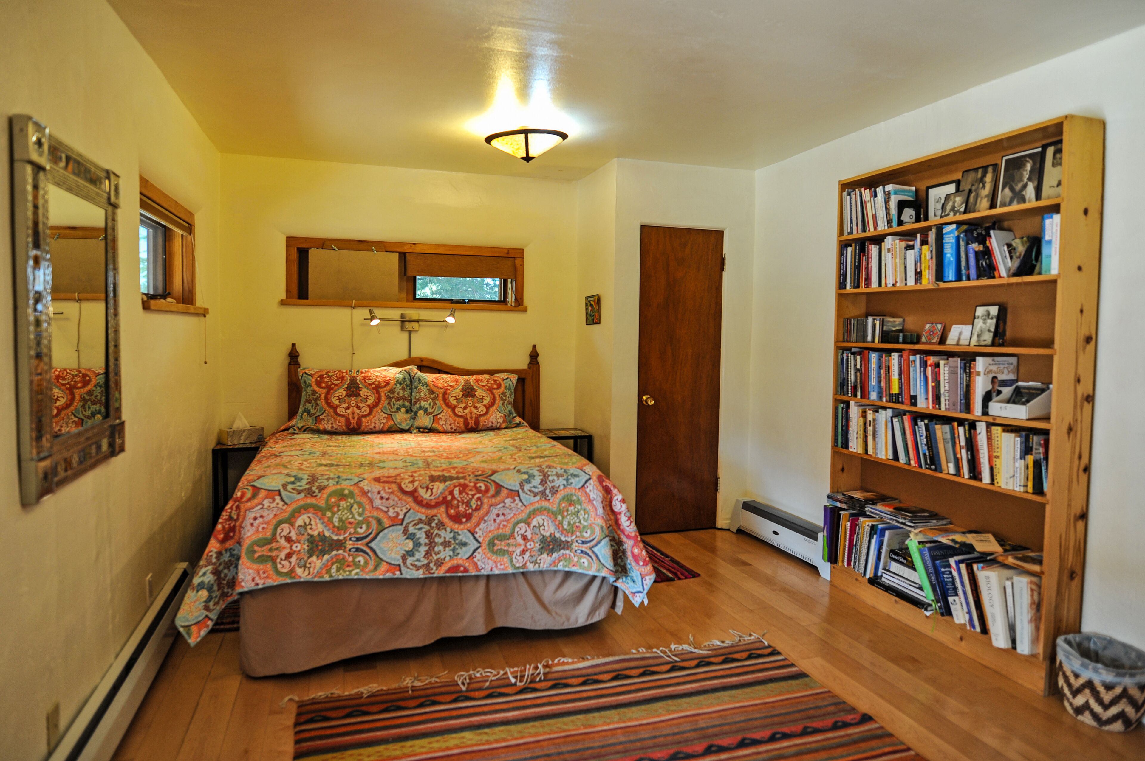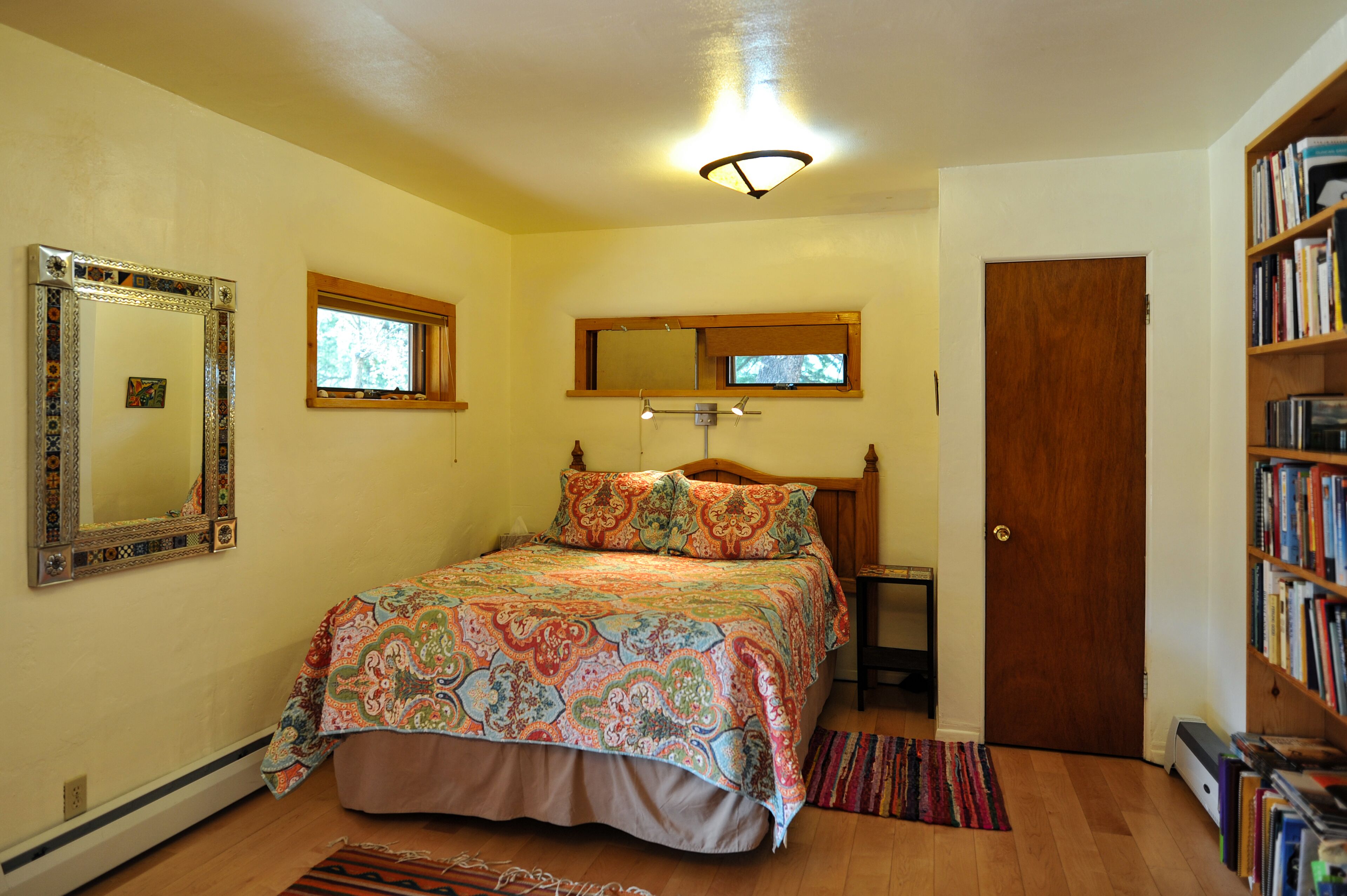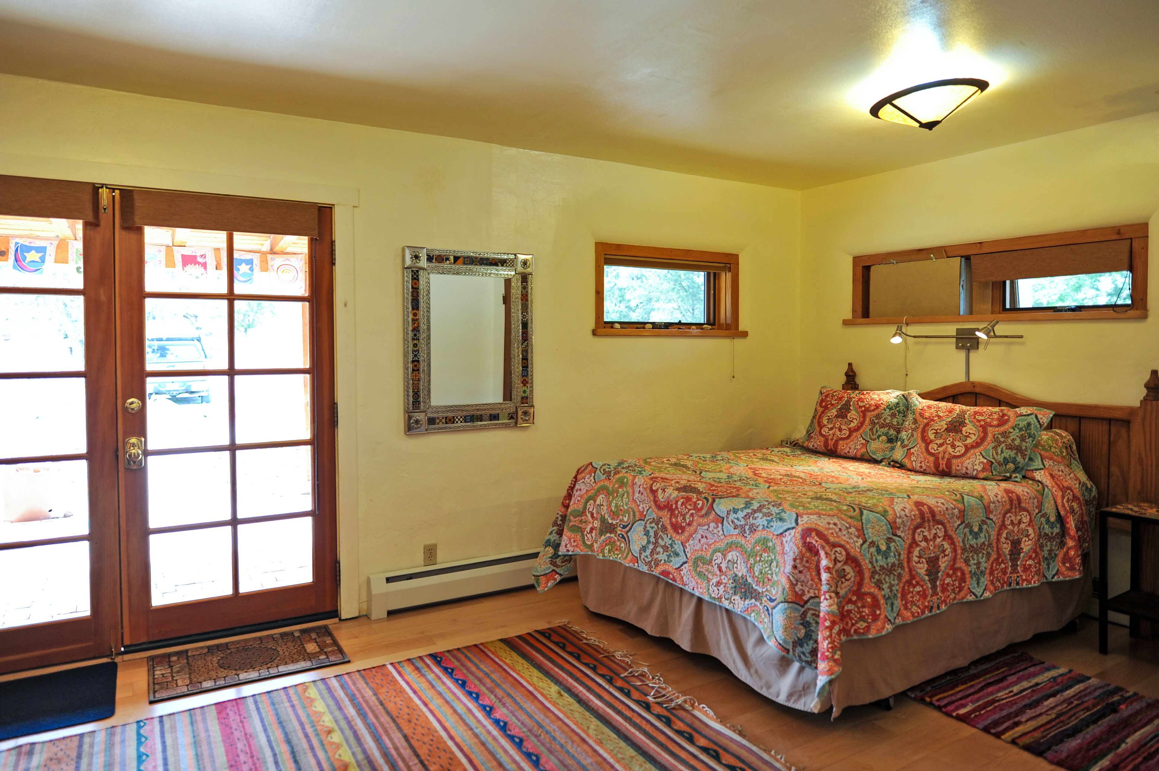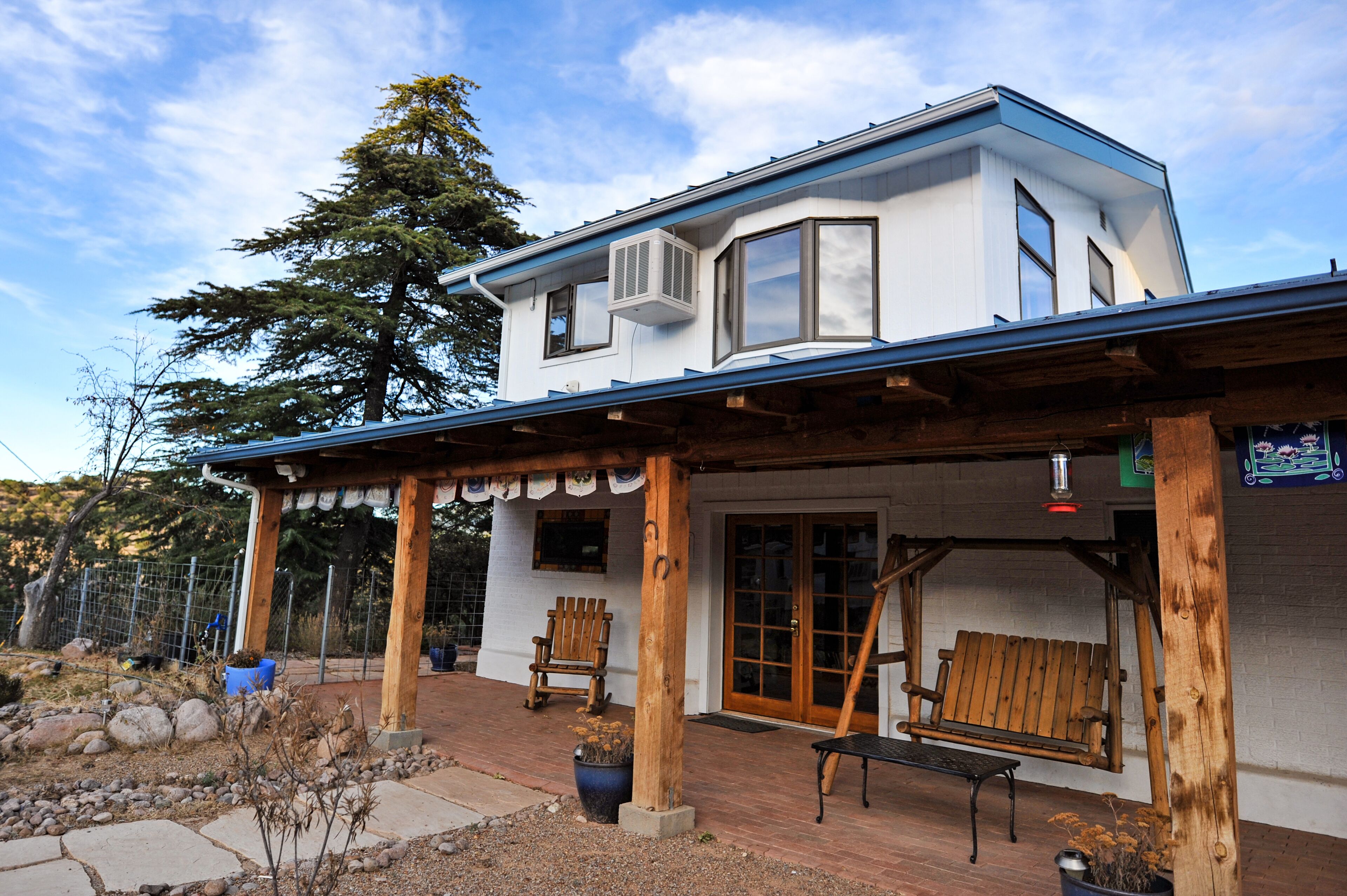 Enjoy Wildlife from Your Rocking Chair and Swinging Bench on Front Porch This is one out of three rentable units under the same roof. This downstairs unit comes with a kitchenette, dining room, large bathroom, bedroom with Mexican rugs, Mexican mirror, desk, chair, queen-sized bed, book case, and two closets. The bedroom opens onto the front porch, where you are likely to be visited by deer, hummingbirds, jackrabbits, cottontails and a variety of birds. The kitchenette includes a small refrigerator, toaster oven, microwave, and two-burner electric hot plate. You will have use of the laundry room and hot tub. The dining room has seating for four with mountain views through the picture windows.The property is a ten-minute drive from the Continental Divide Trail and other great walks, but you can hike and bike straight out of the house as well. The house is five minutes from the highway, and ten minutes from downtown Silver City. The property is so serene, people come for meditation retreats. Weddings can be held here as well.