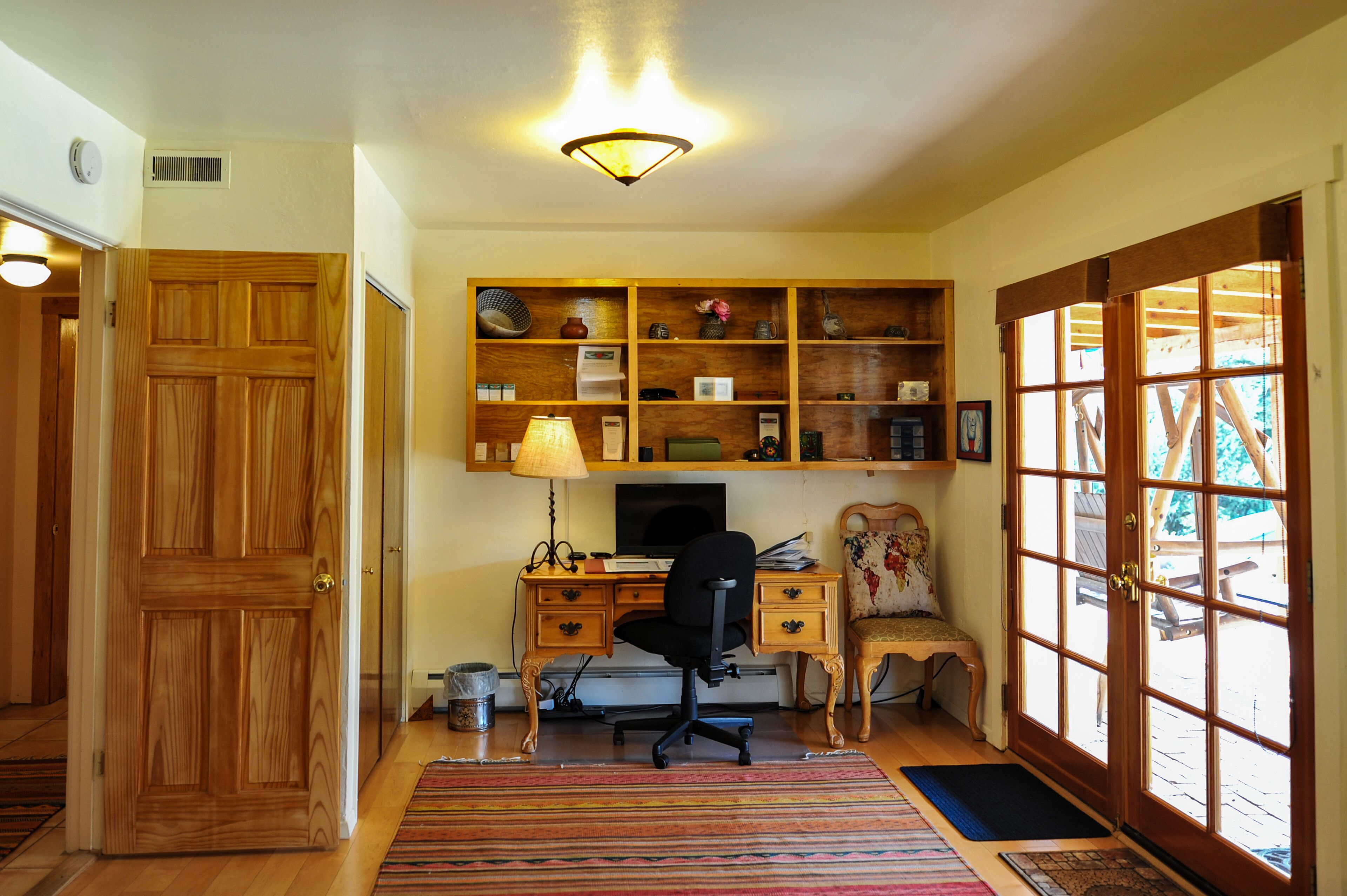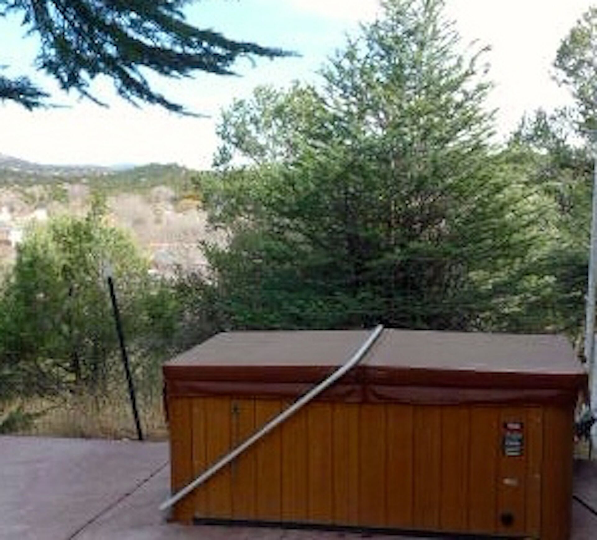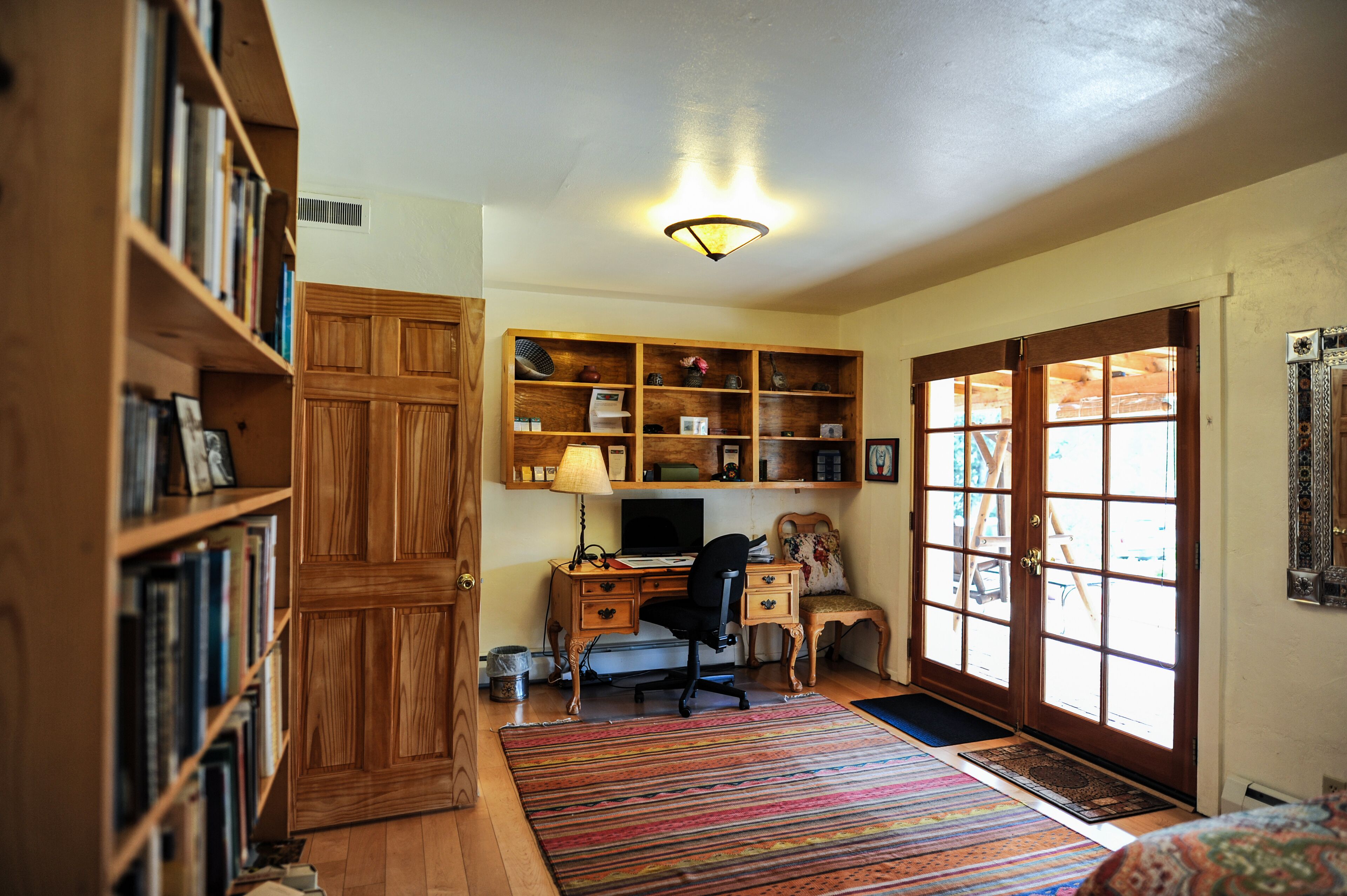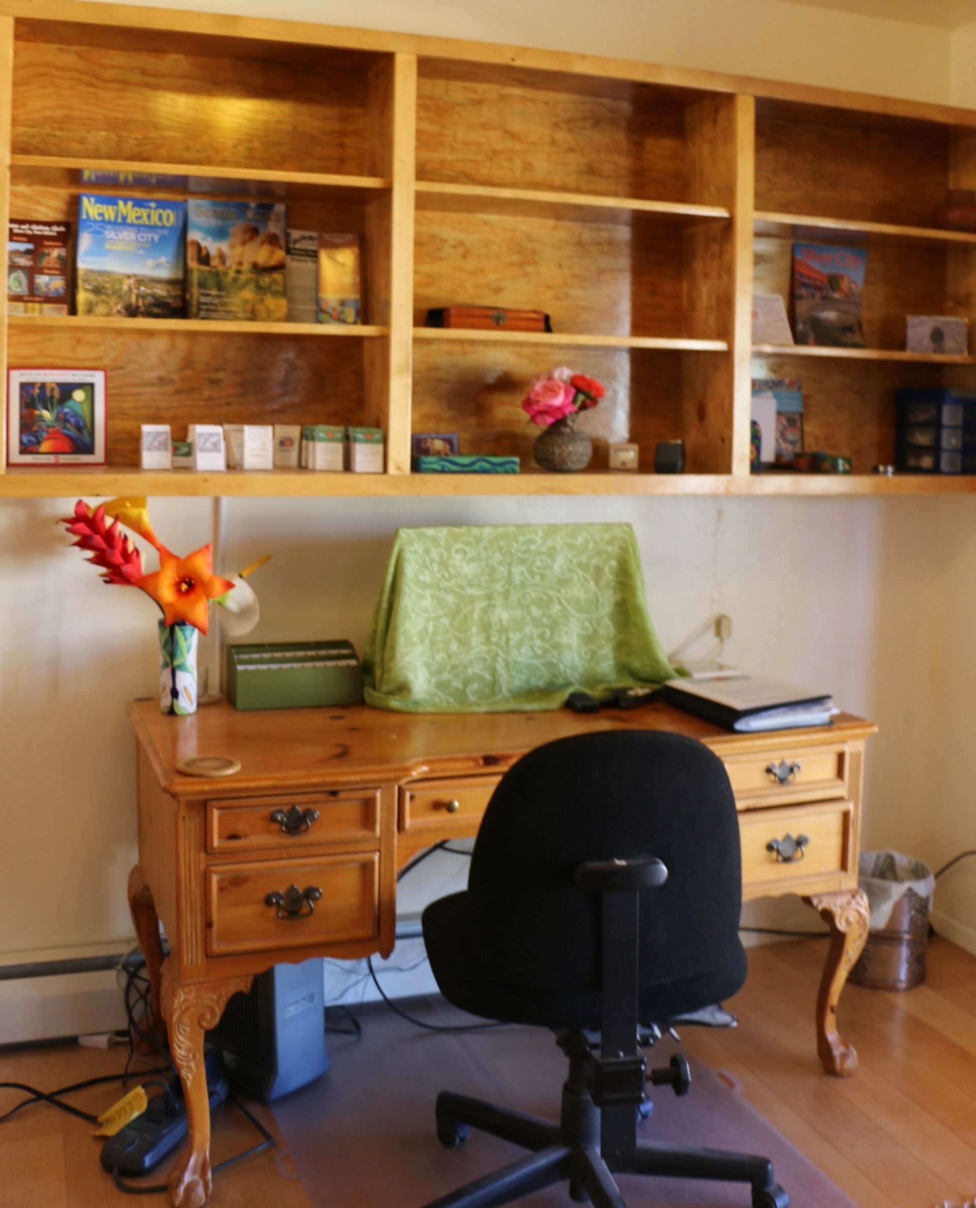 Enjoy Wildlife from Your Rocking Chair and Swinging Bench on Front Porch This is one out of three rentable units under the same roof. This downstairs unit comes with a kitchenette, dining room, large bathroom, bedroom with Mexican rugs, Mexican mirror, desk, chair, queen-sized bed, book case, and two closets. The bedroom opens onto the front porch, where you are likely to be visited by deer, hummingbirds, jackrabbits, cottontails and a variety of birds. The kitchenette includes a small refrigerator, toaster oven, microwave, and two-burner electric hot plate. You will have use of the laundry room and hot tub. The dining room has seating for four with mountain views through the picture windows.The property is a ten-minute drive from the Continental Divide Trail and other great walks, but you can hike and bike straight out of the house as well. The house is five minutes from the highway, and ten minutes from downtown Silver City. The property is so serene, people come for meditation retreats. Weddings can be held here as well.