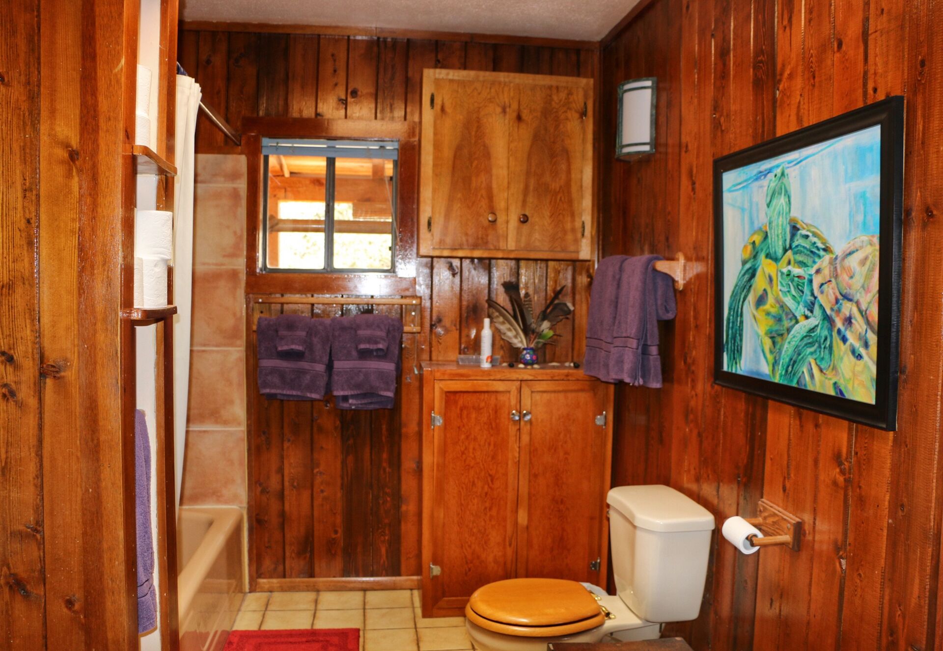 Enjoy Wildlife from Your Rocking Chair and Swinging Bench on Front Porch This is one out of three rentable units under the same roof. This downstairs unit comes with a kitchenette, dining room, large bathroom, bedroom with Mexican rugs, Mexican mirror, desk, chair, queen-sized bed, book case, and two closets. The bedroom opens onto the front porch, where you are likely to be visited by deer, hummi...