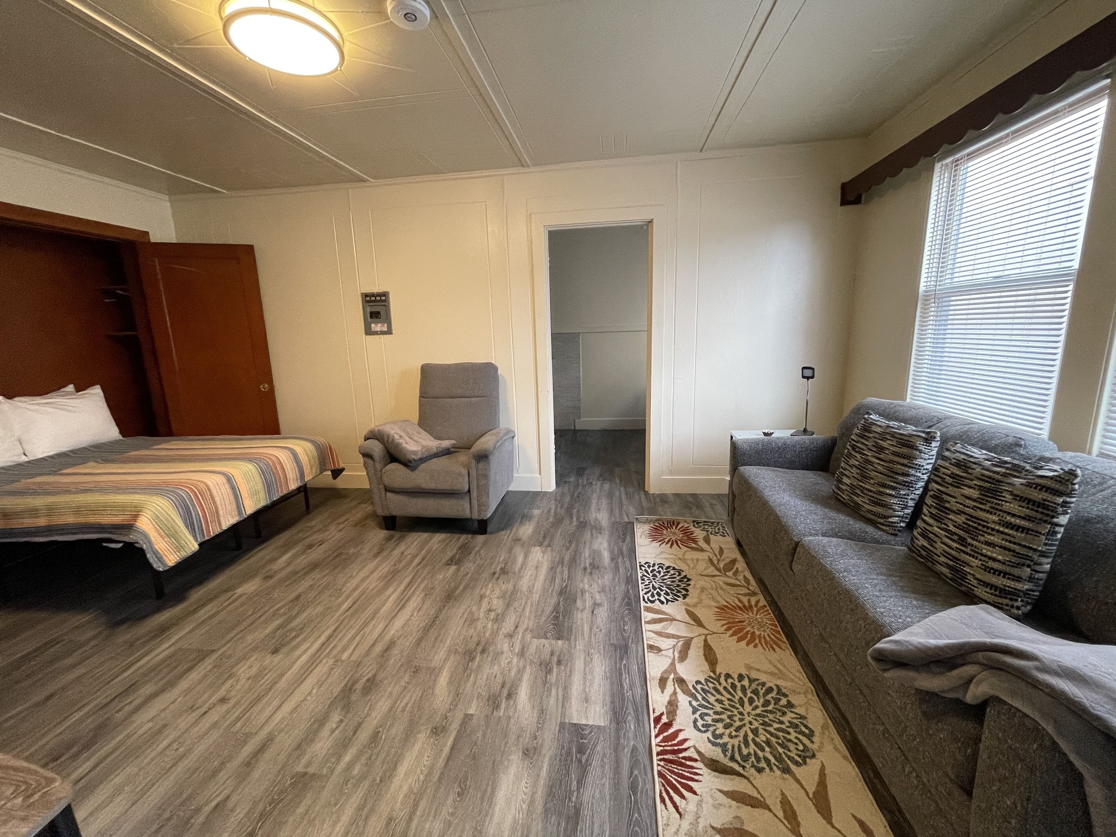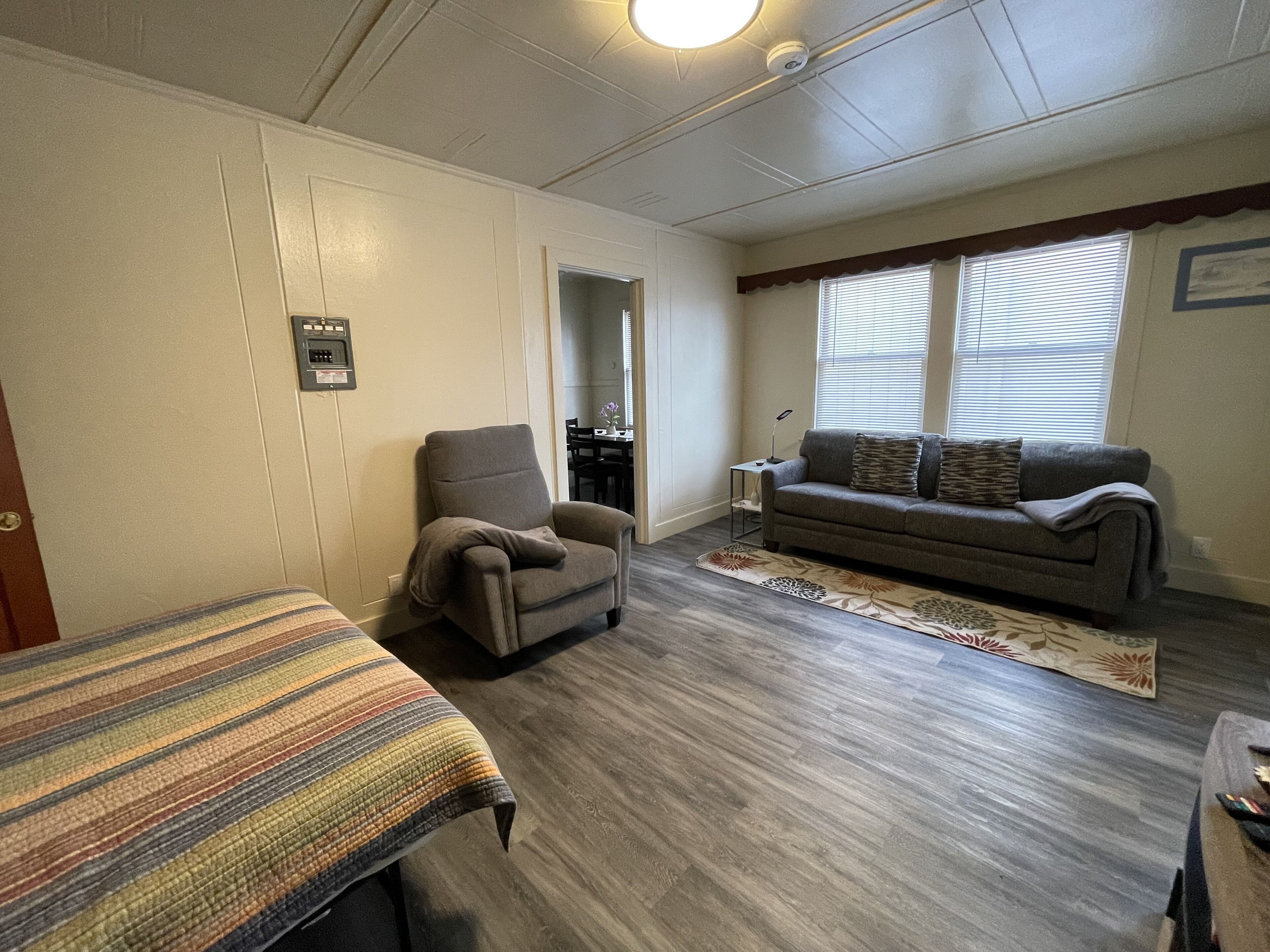 Downtown Studio, One Bathroom Rental Located right downtown within easy walking distance to shopping, restaurants, and docks, 321 Downtown Unit 2 is perfect for one or two people, for short term or extended stays. SEARCH Mt. Edgecumbe Hospital is just over the bridge, about a mile away, and SEARHC Long-Term Care Facility is about a mile north. Minutes away is the Sitka Public Library, as well as the Centennial Building that hosts the Sitka Summer Music Fest, and the Sitka Fine Arts Camp is just down the road. Totem Park is about ten minutes away and the list goes on. If you're looking for a central place to stay that allows all of this to be within walking distance, this is the place.