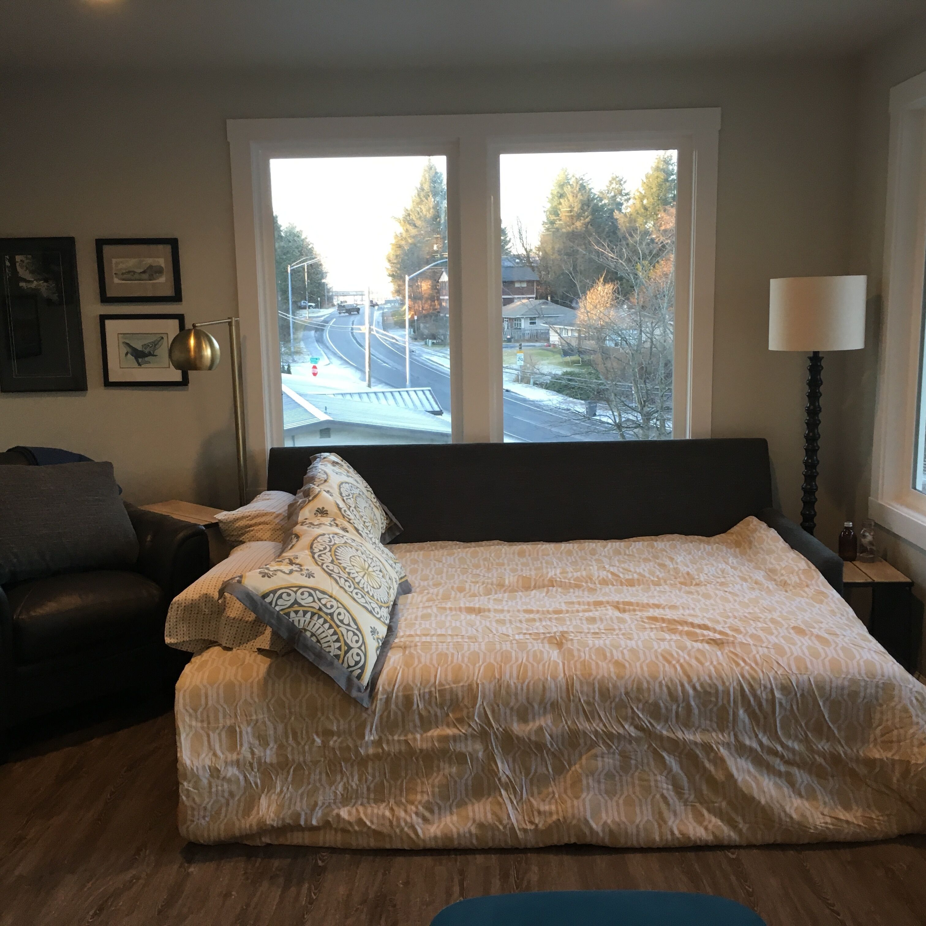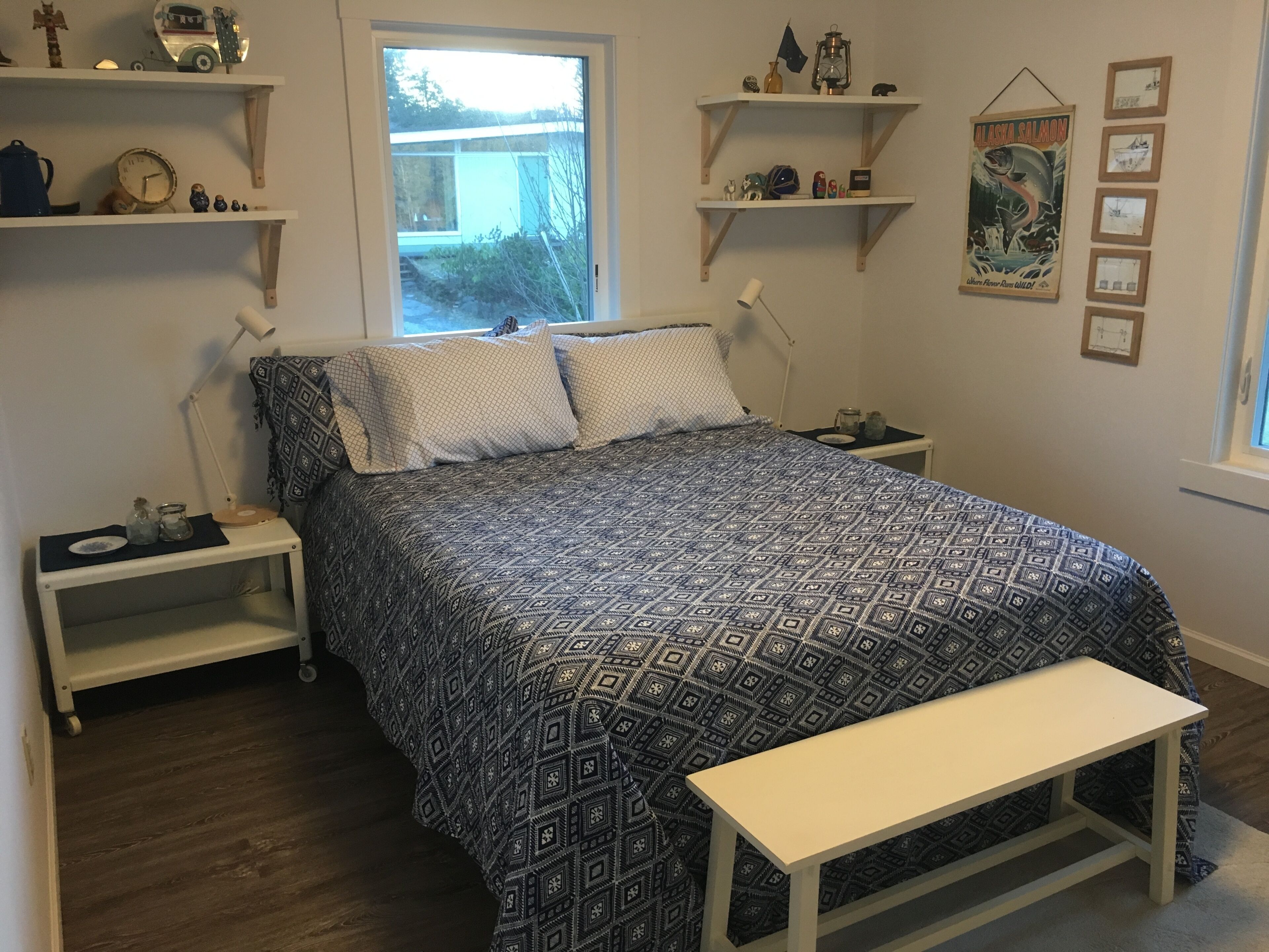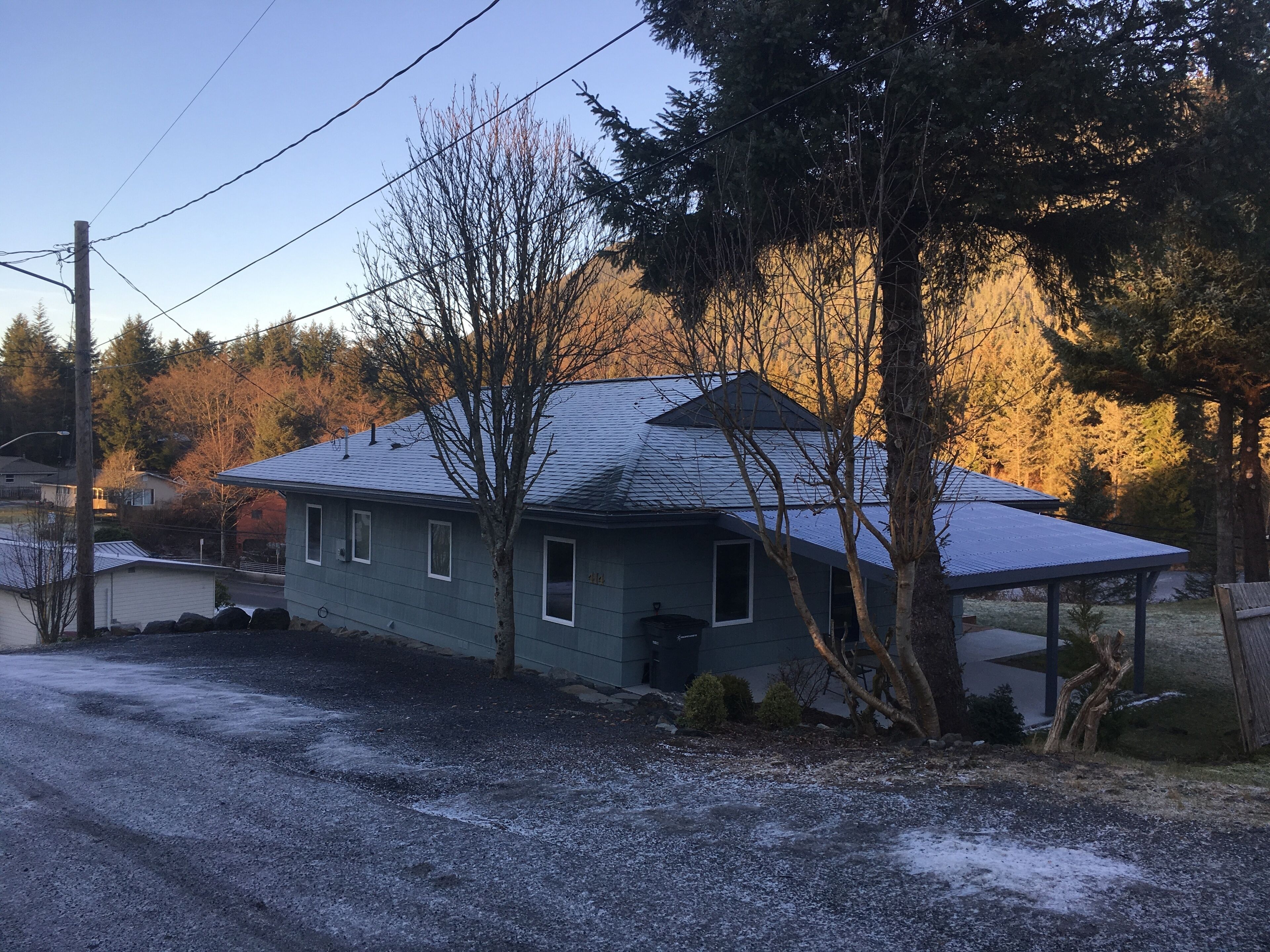 Hemlock House - Beautiful Home with the best location in town! The Hemlock House is a newly remodeled home with beautiful views overlooking Swan Lake with the pristine Sister's Mountains in the background. The house sits on a large lot giving visitors privacy, while still having room to enjoy all the outdoor time you want! The Hemlock House is centrally located in town with restaurants, grocery stores, shopping, activities and more located within walking distance. The location is so ideal that many will find it easy to get around without renting a car. The single story home has two bedrooms both with queen size beds. The spacious living room also has a trundle couch, allowing for two twins or one queen size sleeping setup. There are two large bathrooms as well as a washer and dryer in the hallway. The kitchen is fully stocked and the outdoor patio has a BBQ a seating area for six.