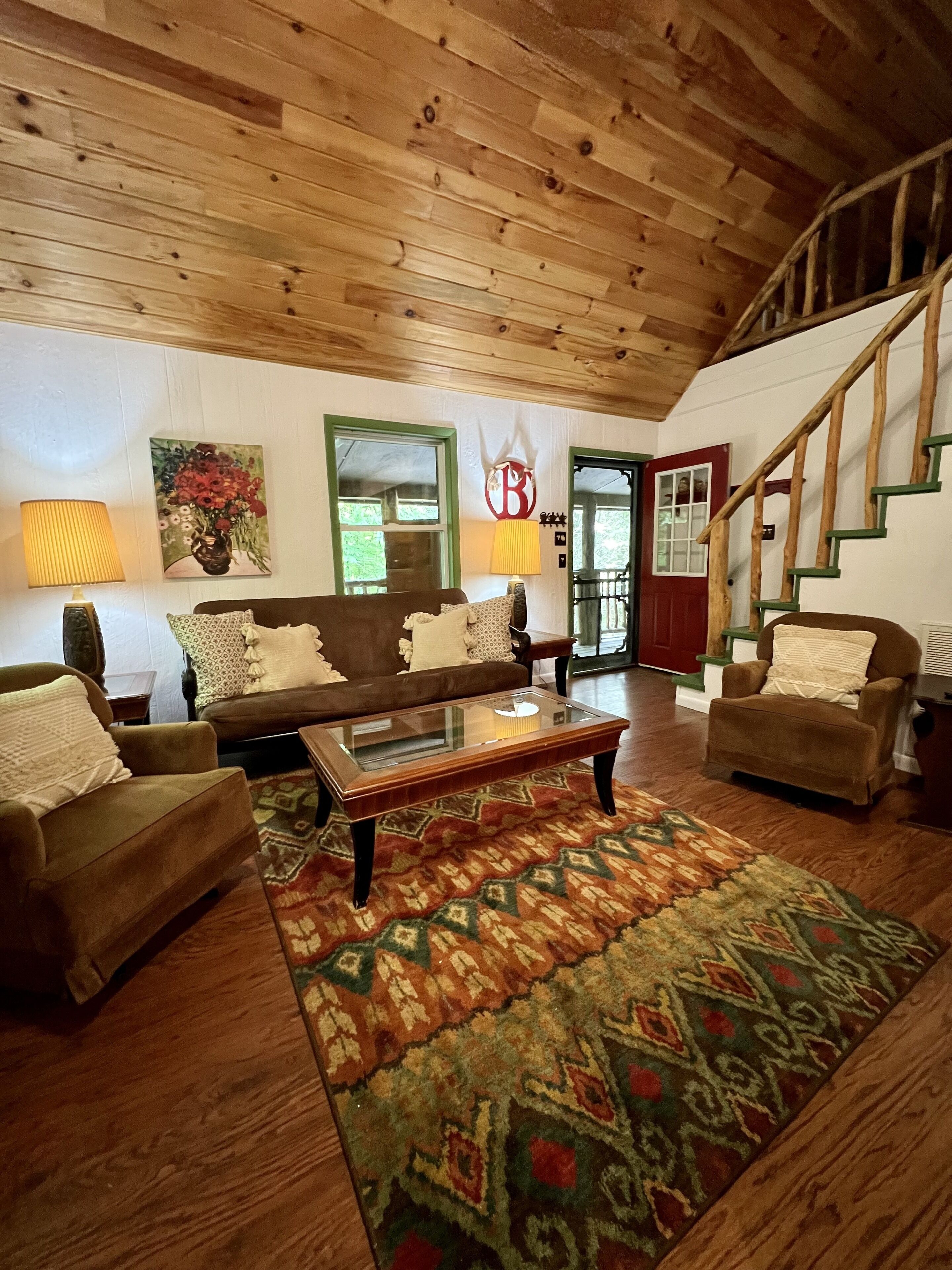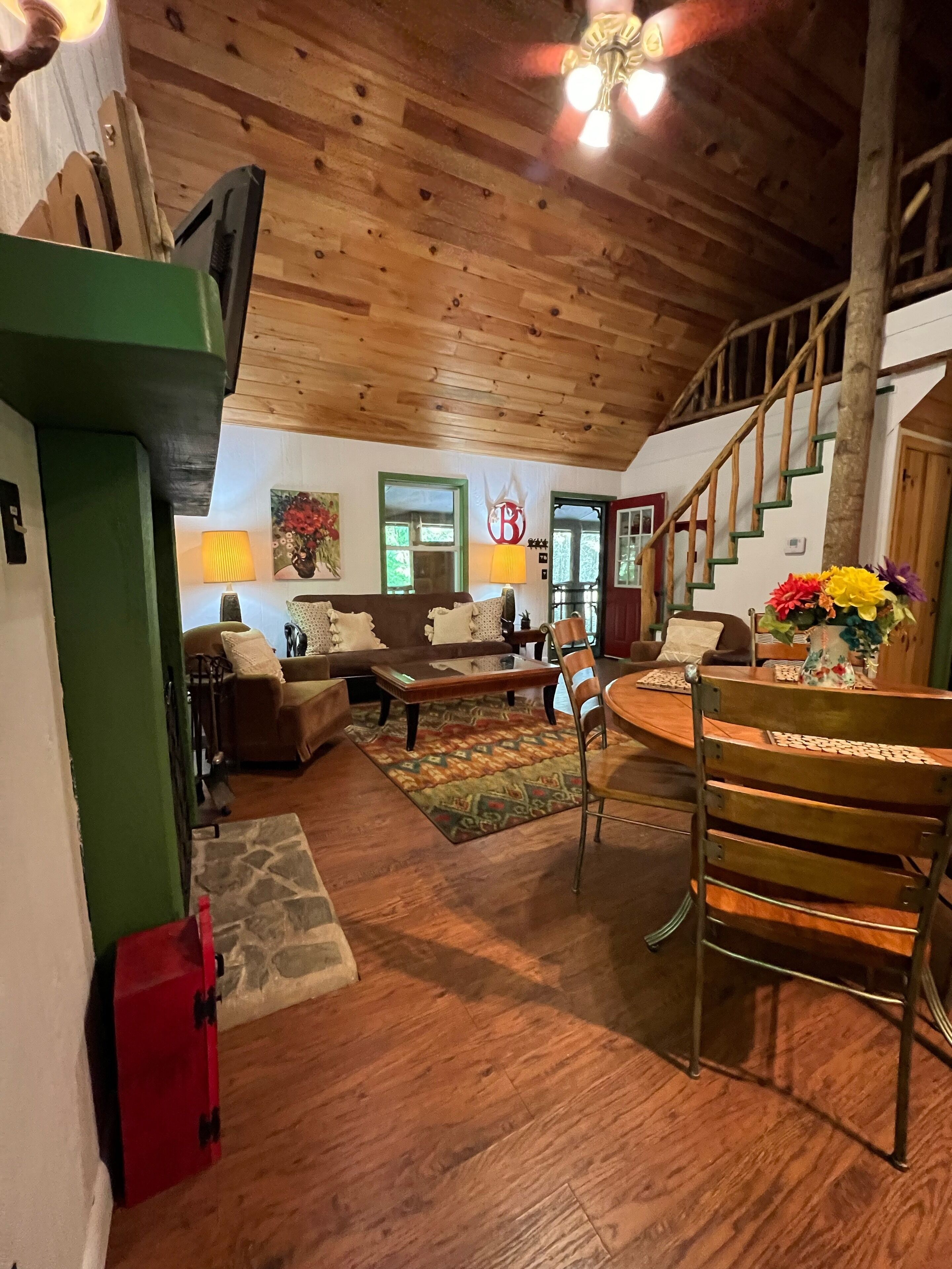 Roan Mountain Charming Cabin Hot Tub Close to Hiking Dogs Welcome Bear Cabin is one of two quaint, rustic cabins located at Misty Hollow Roan Mountain Retreat. Both cabins are tucked away to ensure privacy. Please read the entire listing for detailed information on the space, area and instructions for your stay.Bear Cabin is approximately 925 square feet featuring a master bedroom suite with a soaking tub plus an open, yet semi-private loft bedroom. There is a second full bath on the main level with stand-up shower. As you enter the property, Bear Cabin is located at the top of the long gravel driveway. There is a hot tub, outdoor shower (seasonal), fire pit, plenty of seating, a hammock, grill, games, and more!There is a queen bed in the main bedroom as well as a full size bed in the semi-private loft. Bear Cabin sleeps 3-4 comfortably. There is also a futon couch located in the living room area. You will need to bring bedding if you wish to use it.The lower level has central heat and air. However, the loft has a window unit. Cell Service: If you have Verizon, you will have great service, even without WiFi. If you have AT&T, you will need to connect to WiFi in order to have service. Departure instructions will be left on site, inside the guest book. We have made things extra simple to allow for an easy and relaxing checkout. Please make sure to properly dispose of trash upon departure. All trash should be inside a bag. Please no loose trash left inside the outside can as my husband and I have to personally dig it out and that’s not very fun. Even poopy bags needs to be tied up inside a trash bag. Please and thank you!!This cabin is in a rural setting, surrounded by woods , so in spite of our best efforts, critters can be seen at times - ants, squirrels, mice , bears. It is important to not leave food laying around as it will cause an issue with these animals. Please makes sure to dispose of all trash accordingly and do not leave food out on the counters.