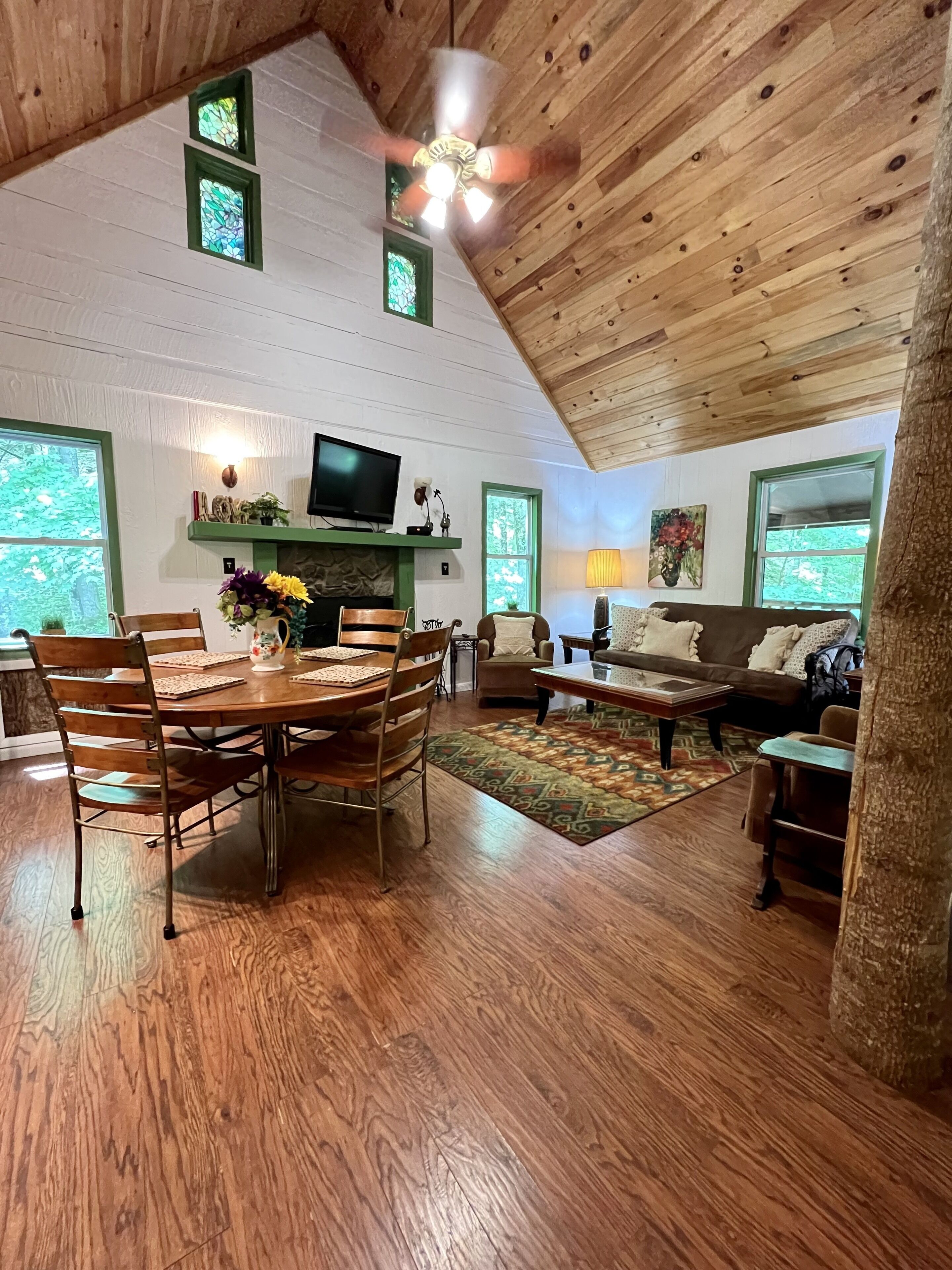 Roan Mountain Charming Cabin Hot Tub Close to Hiking Dogs Welcome Bear Cabin is one of two quaint, rustic cabins located at Misty Hollow Roan Mountain Retreat. Both cabins are tucked away to ensure privacy. Please read the entire listing for detailed information on the space, area and instructions for your stay.Bear Cabin is approximately 925 square feet featuring a master bedroom suite with a so...