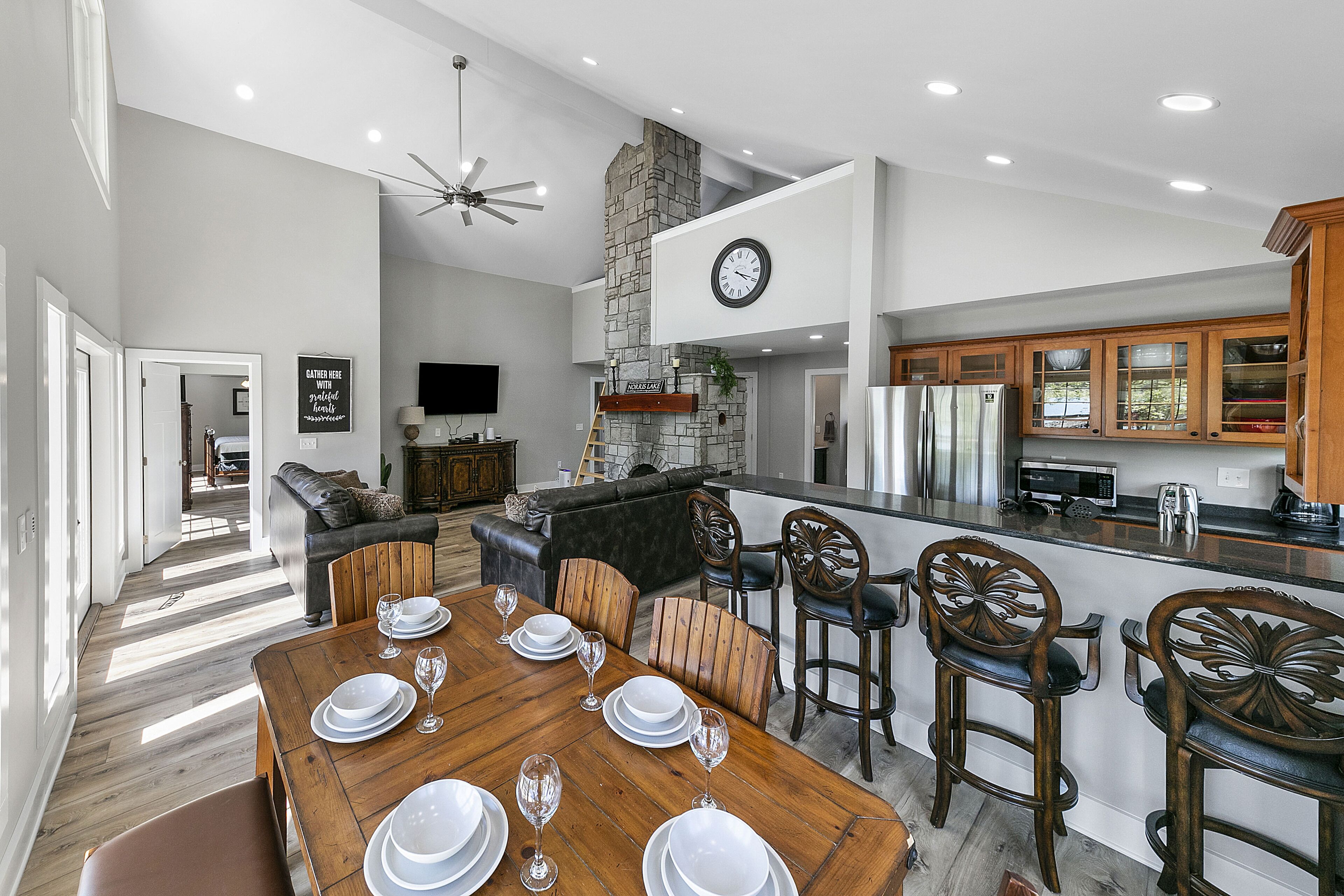 Lakefront Escape at Summer Breeze w/ Private Dock w/ Kayaks Listing Description:Beautiful located in a quiet country setting on pristine Norris Lake. This property has everything: a great floor plan, outdoor living and the perfect location on Norris Lake. Conveniently located 10-15 minutes to Maynardville, TN and only 40 minutes to downtown Knoxville. Bubba Brews & Beach Island Marina are roughly 10-15 minutes away. The home is located in a quiet country setting in the back of the cove behind Straight Creek Boat dock in a no wake zone & the property has its own private dock for all your boating needs! Please note that our pontoon rental may be on the outside of the dock. The Space:-We have several pontoon rentals available upon request & we deliver them to the house. Please note prior to check in, you will receive a message asking if you are bringing a boat since oftentimes our guests rent boats & they may already be at the dock. You must have a valid boaters license or be born before 1989 to operate.Rates are as follows:90 HP - $275 per day plus taxes & $50 insurance115 HP - $300 per day plus taxes & $50 insurance115 HP - 16 passenger pontoon - $325 per day plus taxes & $50 insurance-There are also kayaks included with the rental close to the dock. Please note that we do not provide life jackets. Please be sure to return to the kayak rack at the property once finished!-The home is located on Summer Breeze on a peaceful cove right behind Straight Creek Boat Dock in a long no wake zone that takes roughly 15-20 minutes to get out of to the main channel of the lake. Jimmy's place & Bubba Brews is about 15 minutes away by land & roughly 20-30 minutes away by water.-The home is equipped with a spacious kitchen equipped with a standard coffee maker, dishwasher, large fridge, stove, over the range microwave, & a large kitchen table! The home also includes a hot tub, weber gas grill with propane on site that we provide, Fiber WIFI, & Samsung smart tv's throughout the entire house as well as a beautiful patio area!-There is a private dock for use w/ a swim ladder & jetski port! Your trailer can be left at the property (just please note the road is tight in areas) & you can put in at Straight creek boat dock! The dock does not have power currently-Please note, this part of the lake is considered seasonal water and although you'll have normal lake levels from May to mid to late August, the lake levels are lowered by the TVA in the Fall and raised again in the Spring & can fluctuate year to year. Guest Access:The entire house is available & no more than 3 cars allowed at the property.Other Things to Note:-Check in is at 5 & Check out is at 10 & you must be 25 to rent-House includes All Linens, bath towels, pots, pans, utensils, baking sheets, etc.-A STARTER supply of dish soap, dishwasher pods, paper towels, a roll of toilet paper per bathroom, & trash bags (indoor & outdoor)-Recommended items to bring: Extra trash bags, paper products, soaps, detergents, toilet paper, beach towels for hot tubs or lake, & all personal soaps, shampoo, & conditioners.-3 Car max limit-No smoking or parties allowed anywhere on the property. -We provide all firewood & propane tanks.-There are outdoor security cameras for protection since this is a year round rental.-Check in and out times are firm unless approved in advance.-Indoor Fireplace is for owners use only-Nearest grocery store is Ingles which is 10-15 minutes away.-No pets are allowed at our properties-WIFI is Fiber-There is another property beside this one if you need larger groups. The blue house sleeps 6.-We also often rent these houses in the off season month to month. Please contact us if interested!