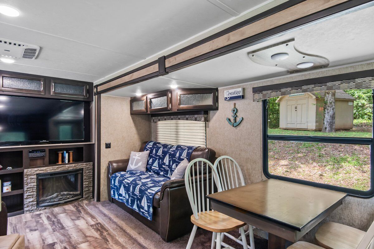Holiday Haven has Water Access with Private Boat Launch on Lake Guntersville! Serenity and Fishing! Enjoy the beauty of Lake Guntersville. Sit in your private treed lot and relax or hit the water at the private neighborhood boat launch / fishing pier. Enjoy walking, fishing, and swimming close by at the lake. Large screen tv in living room with fire place , couch and recliner. Relax in the king bed at the end of the day. Additional sleeping with the sofa bed in living room. Prepare your meals in the full size kitchen with dishes, and cooking utensils. Keurig Coffee maker to relax with the cup and watch morning sunrises and sunsets. Washer and dryer are located on the property. Covered area under carport to sit and relax. Bring your boat!! There is a long driveway. Come rest and relax with us!