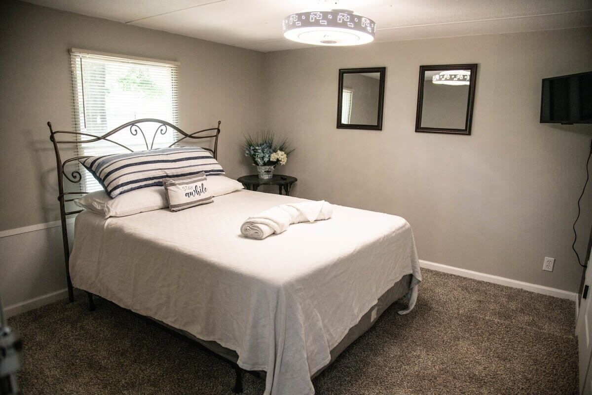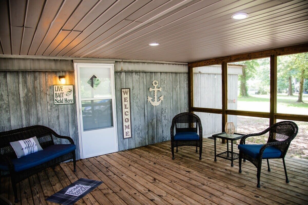 Fisherman's Countryside Escape! Summary:Fisherman's Countryside Escape!The Space:Welcome to Fisherman's Countryside Escape!Message us to learn about our 7+ day stay discounts!Fisherman's Countryside Escape offers some of the best amenities in Scottsboro, AL for your fishing trip, family vacation, or friends trip! On the property, you will find a propane grill, great outdoor space with a fire pit and seating, a covered and screened-in front porch for year around enjoyment, two private bedrooms, plush and comfortable furnishings in every room, and a covered boat garage with hook-ups!Each bedroom has two queen beds and there is an additional roll-away bed to sleep a total of 5 guests during your stay. The main living space consists of a cozy living area, kitchen (refrigerator, microwave, stove, toaster, coffee maker, and dishwasher), two private bathrooms, dining space, and in-unit laundry. Every bed featured high-quality sheets and pillows for your and your guest's comfort during your stay.Top amenities of The Fisherman's Countryside Escape*Private gas grill & Fire-pit*Stunning private and screened deck*You are surrounded by multiple lake access points*Private boat shed with hook-ups*Ideal location to visit top amenities in Scottsboro, ALAs a hosting family, we strongly believe in making memories wherever you are. That is why we have provided local suggestions so you can enjoy the experience of fully immersing yourself in the local culture. We are here to help with any questions or suggestions as we aim to create memories through Unique Stays!Local Attractions*Jackson County Park*Unclaimed Baggage*Cathedral Caverns State Park*Payne's Sandwich Shop and Soda Fountain*Sauta Cave National Wildlife Refuge*Lake GuntersvillePlease Note:Just so you know – the guest count you provide must be accurate since there can be additional guest fees. Notify us if you need to adjust the guest count before arrival. A fine of $25 per night will be applied for each undeclared guest.Reminder: If a guest misses the checkout time, additional fees will be added. If more than 2 hours past checkout, we will charge for an additional day.If you would like to use the fire pit or grill during your stay please bring wood and a fire starter.There are cameras on property