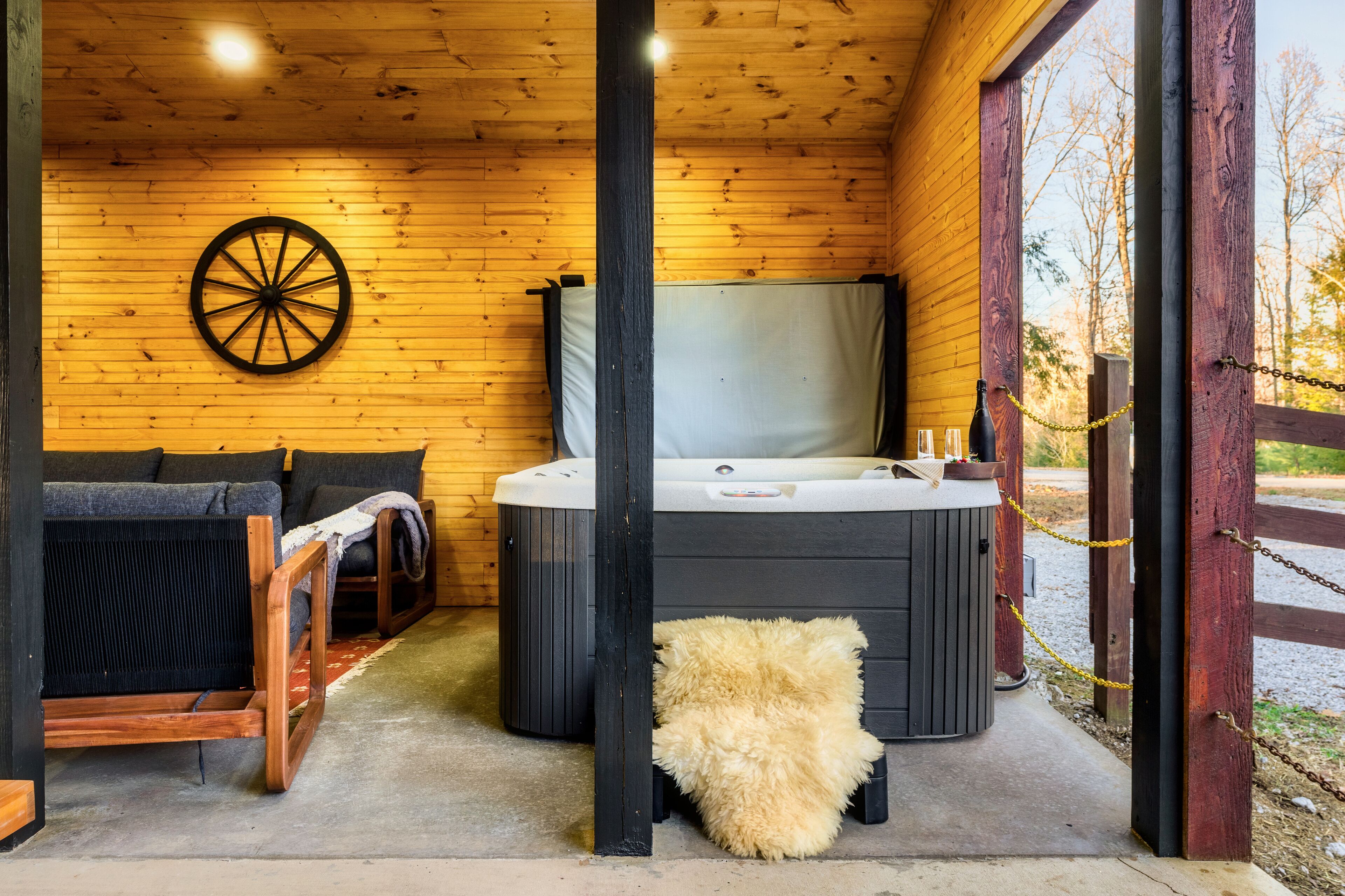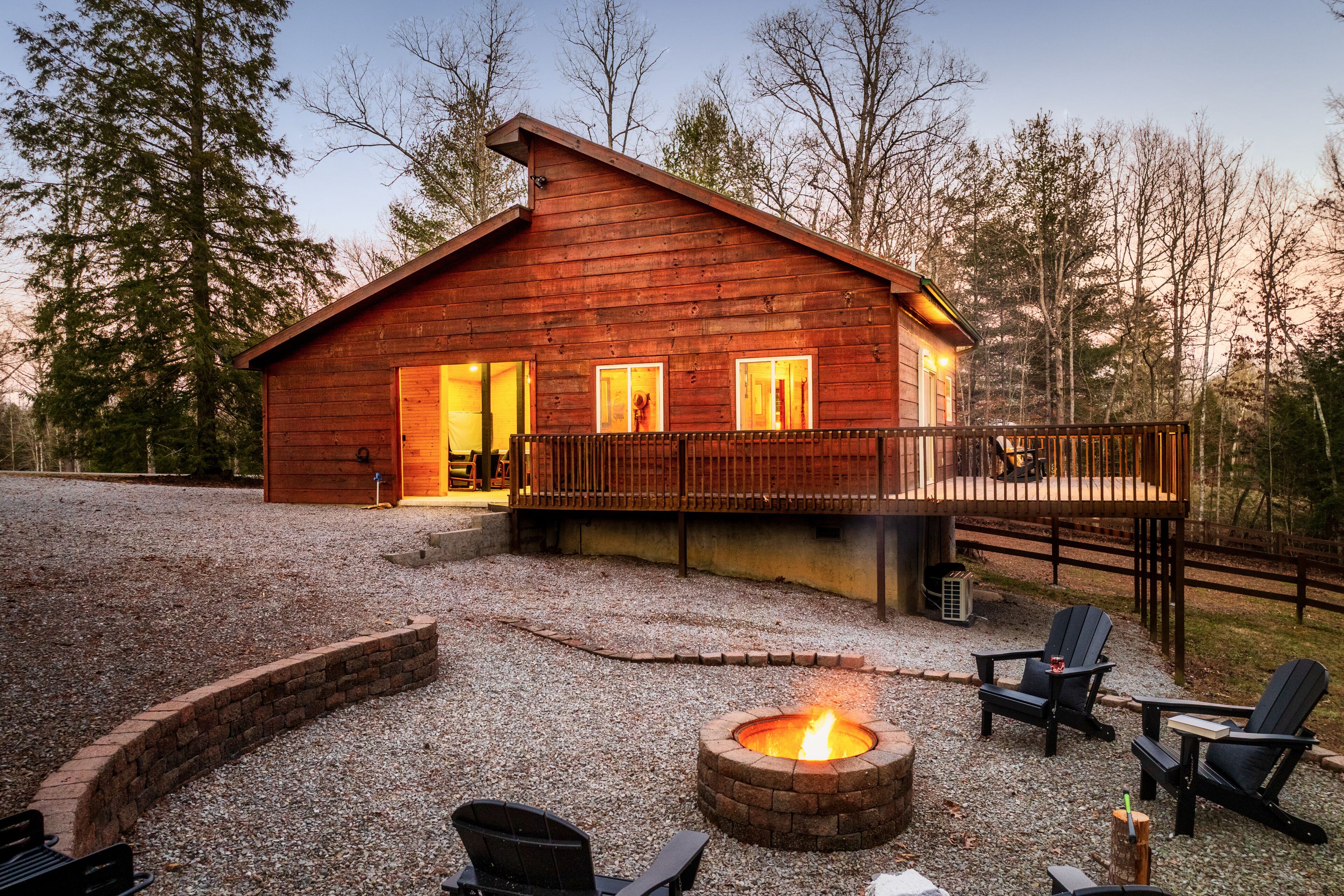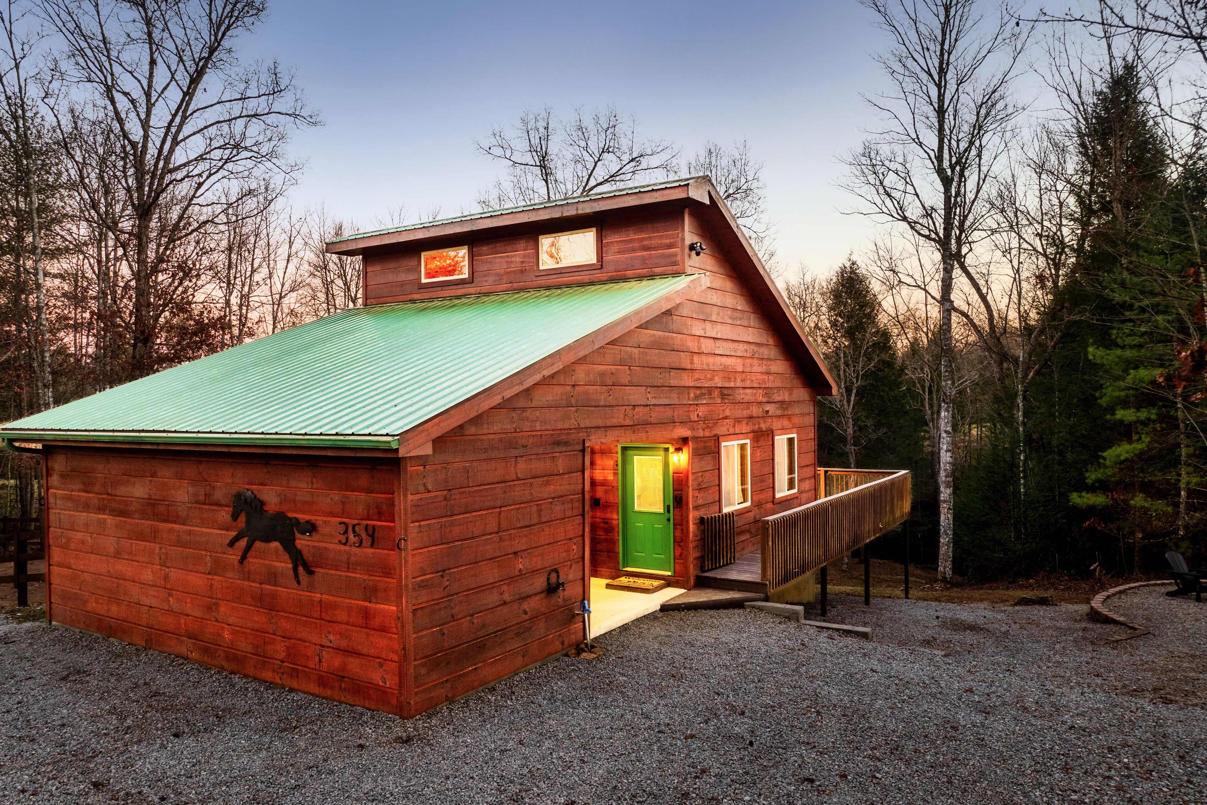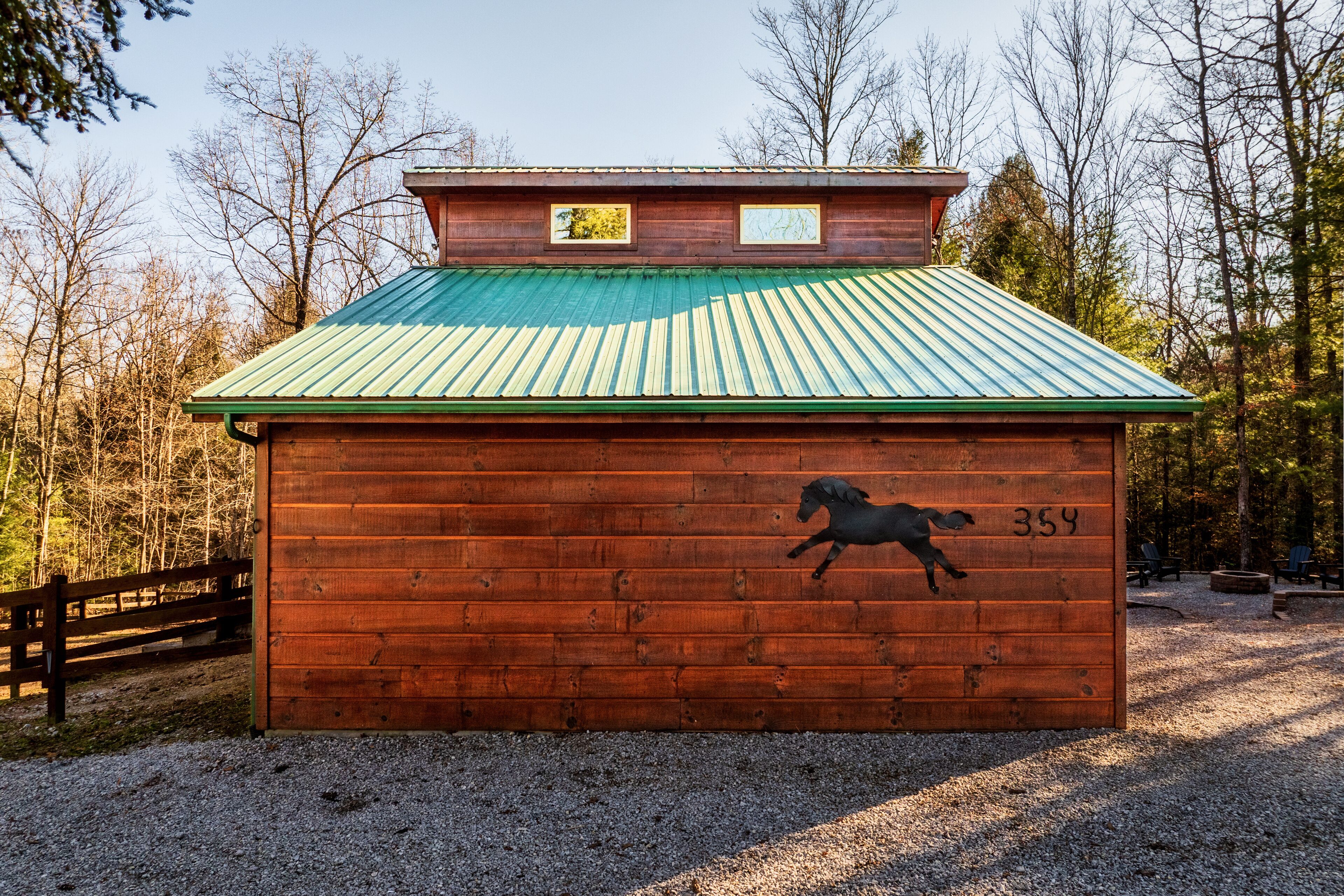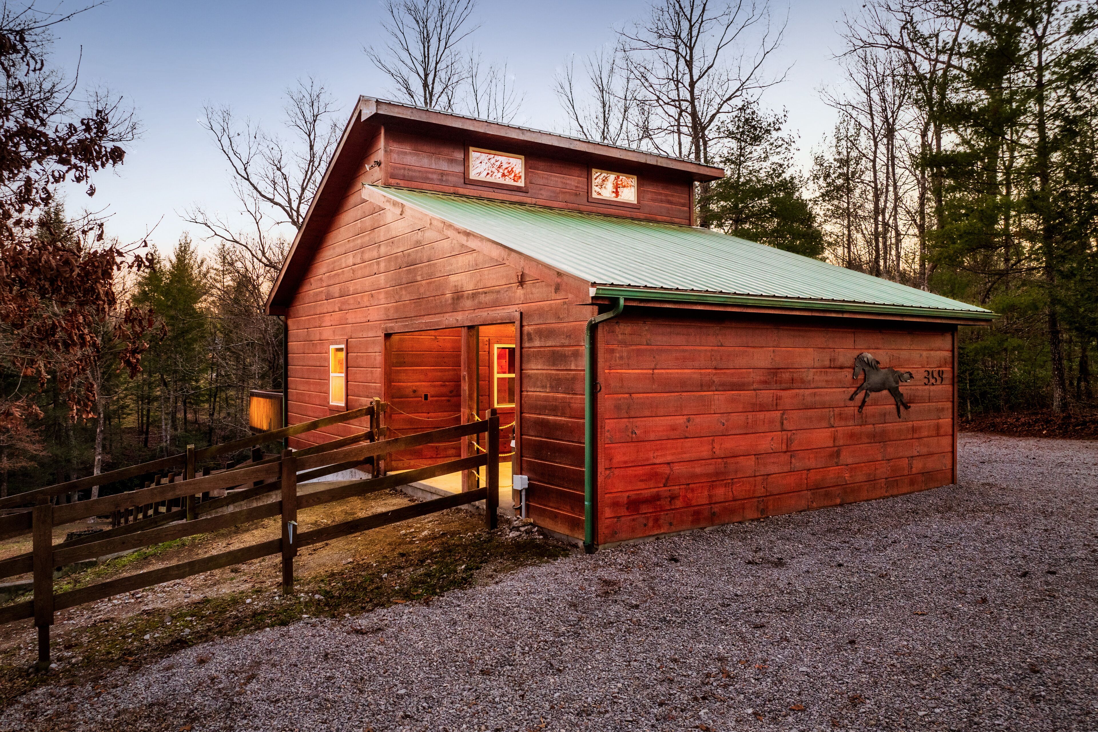 Romantic Cabarn w/ HotTub Lounge - Located on BSF! Welcome to your new vacation! - Located in the Big South Fork White Oak Horse Community - Perfect Hot Tub Lounging Area - 60" Electric Fireplace - 65" Outdoor Roku TV - Outdoor Dine/Lounge - High-speed Wi-FI - Loft with Arcade Games & Movie Section - Fire Pit with Park Style Grill - Close to Hiking This property is perfectly located for those looking to explore the Big South Fork! Learn more below!Nestled in the heart of the Big South Fork, Equestrian Grandeur is set within a vibrant house community "White Oak". Embrace the serenity of the surrounding nature while enjoying the equestrian charm of the unique getaway. Whether you're an outdoor enthusiast or simply seeking tranquility, This location offers an unforgettable experience in a picturesque setting. This home offers 680 square feet with 2 bedrooms and 1 bathroom. 1 bedroom is on the first floor and 1 bedroom is in the loft. This home offers guests a clean, calming, and inviting atmosphere to take in all that East Tennessee has to offer. The location is perfect because you are on the Big South Fork but just a short drive to town that has plenty of amenities.HOT TUB:There's a hot tub in the covered barn that's spacious enough to fit all of your guests! Enjoy the mountainous view and the warmth of the hot tub at the same time :)SLEEPING ARRANGEMENT:Two queen beds