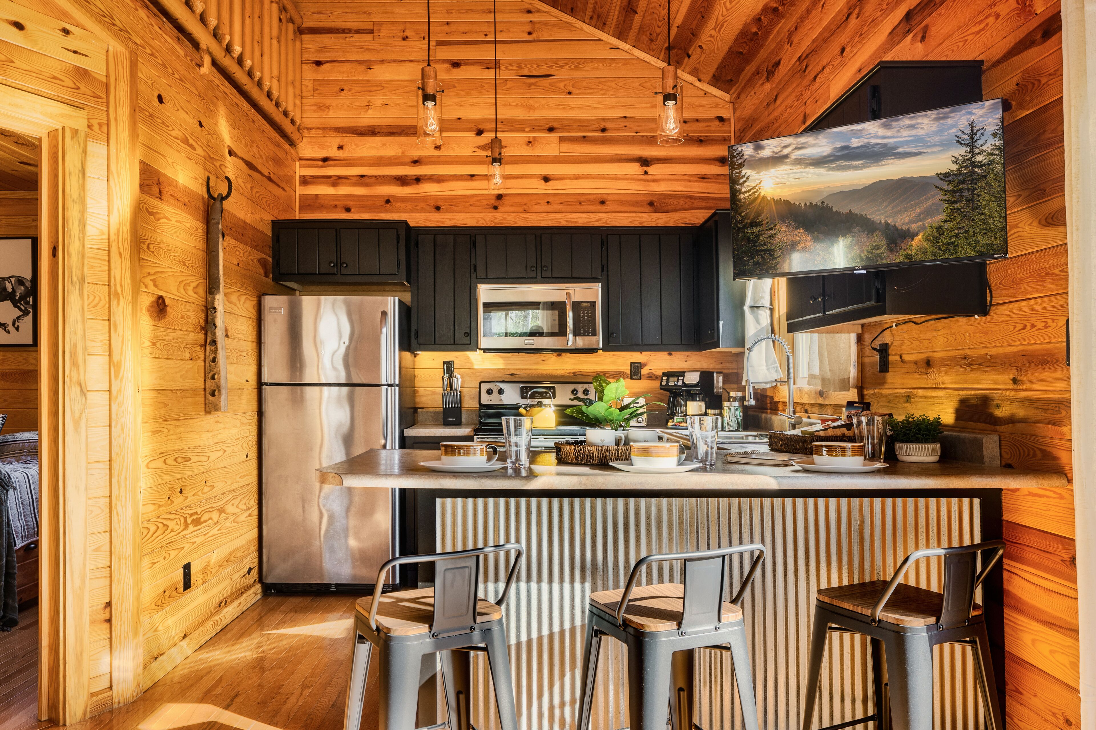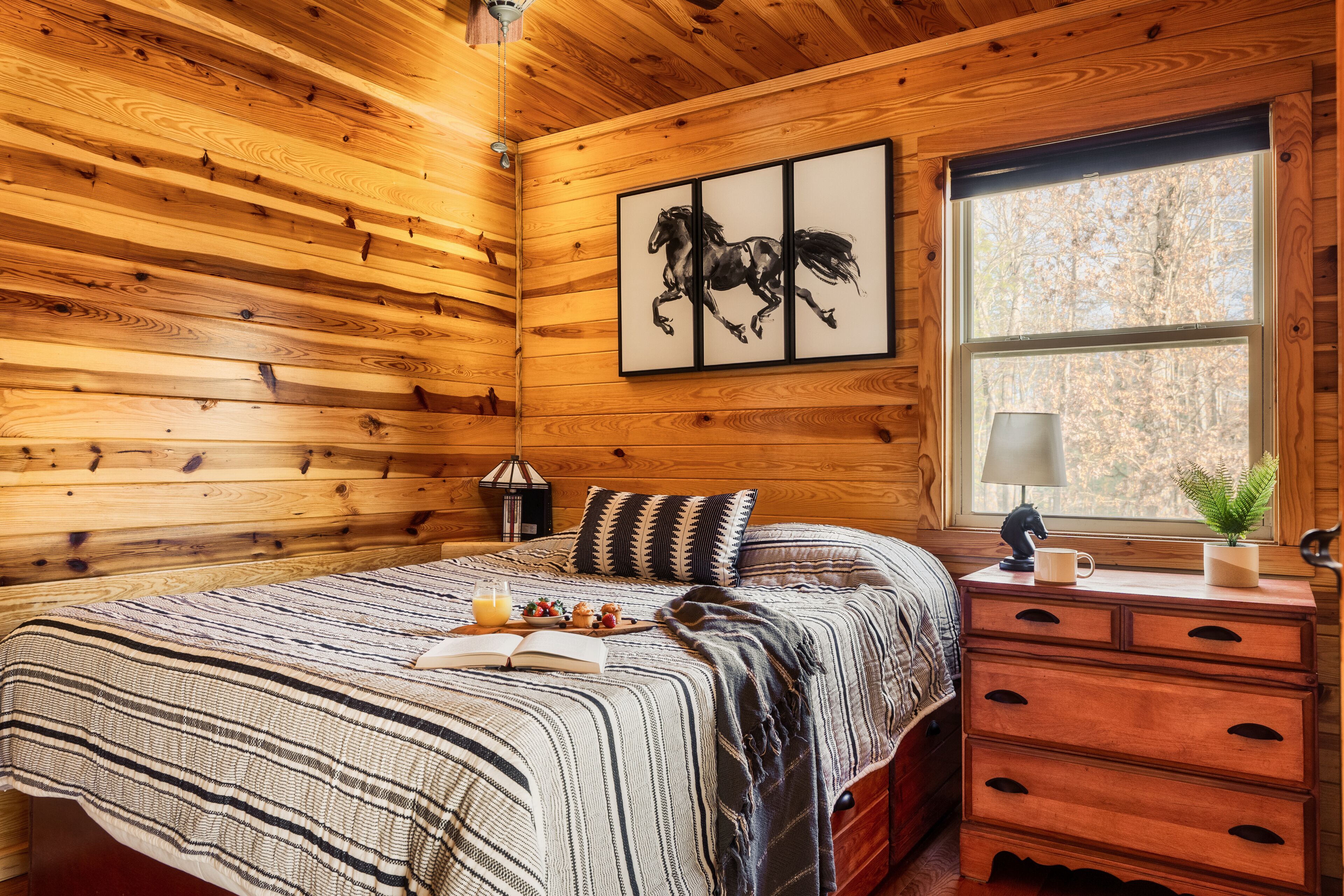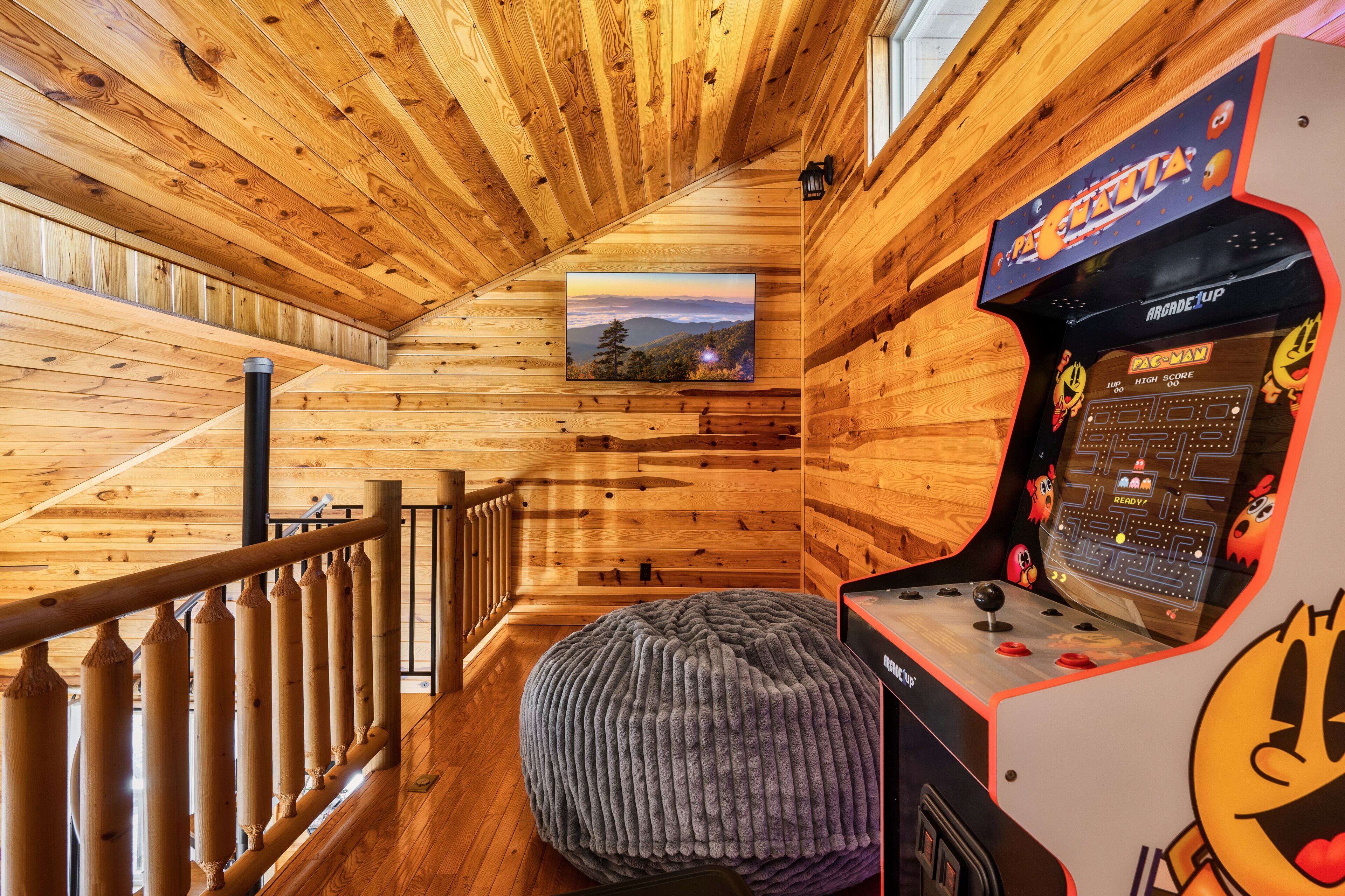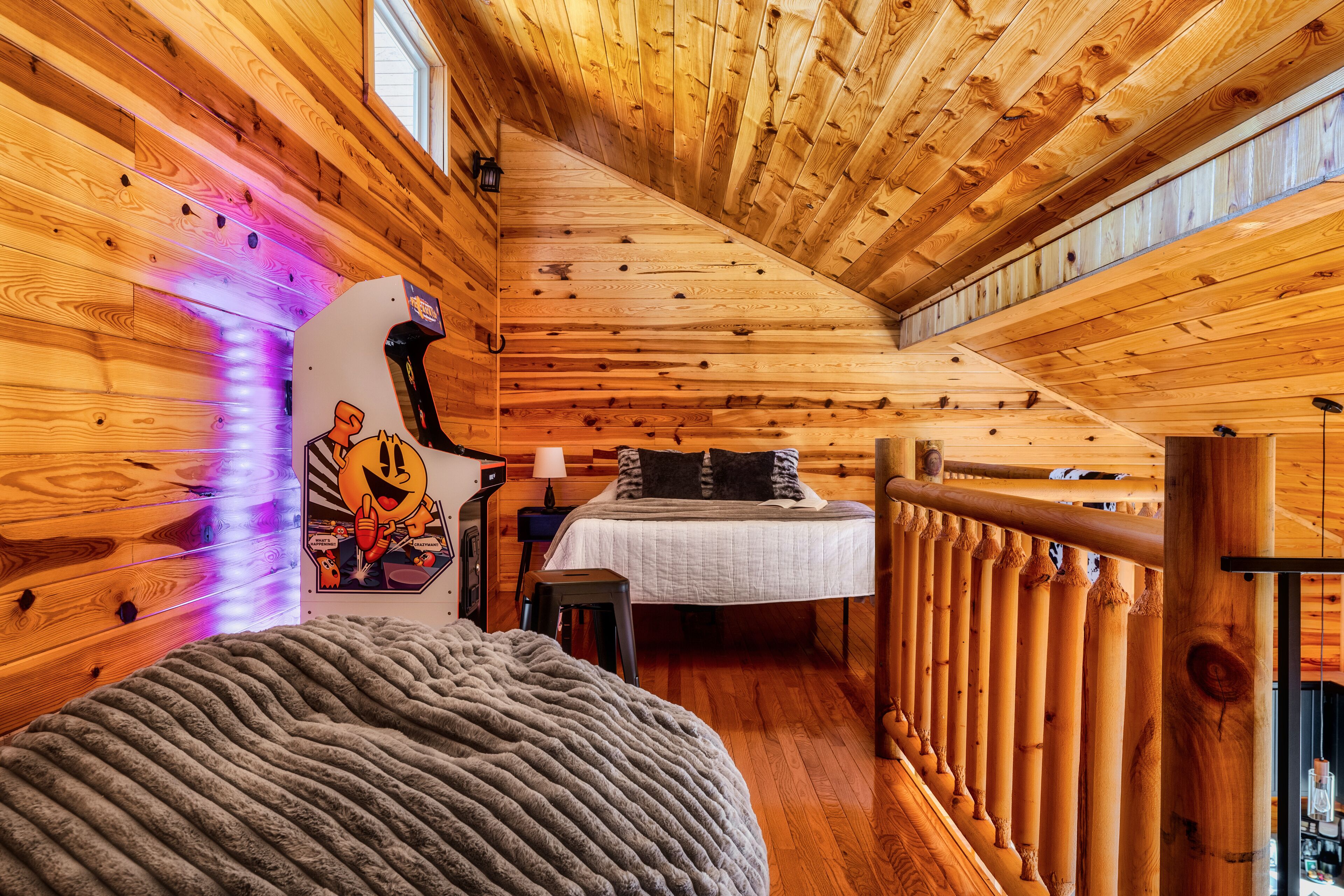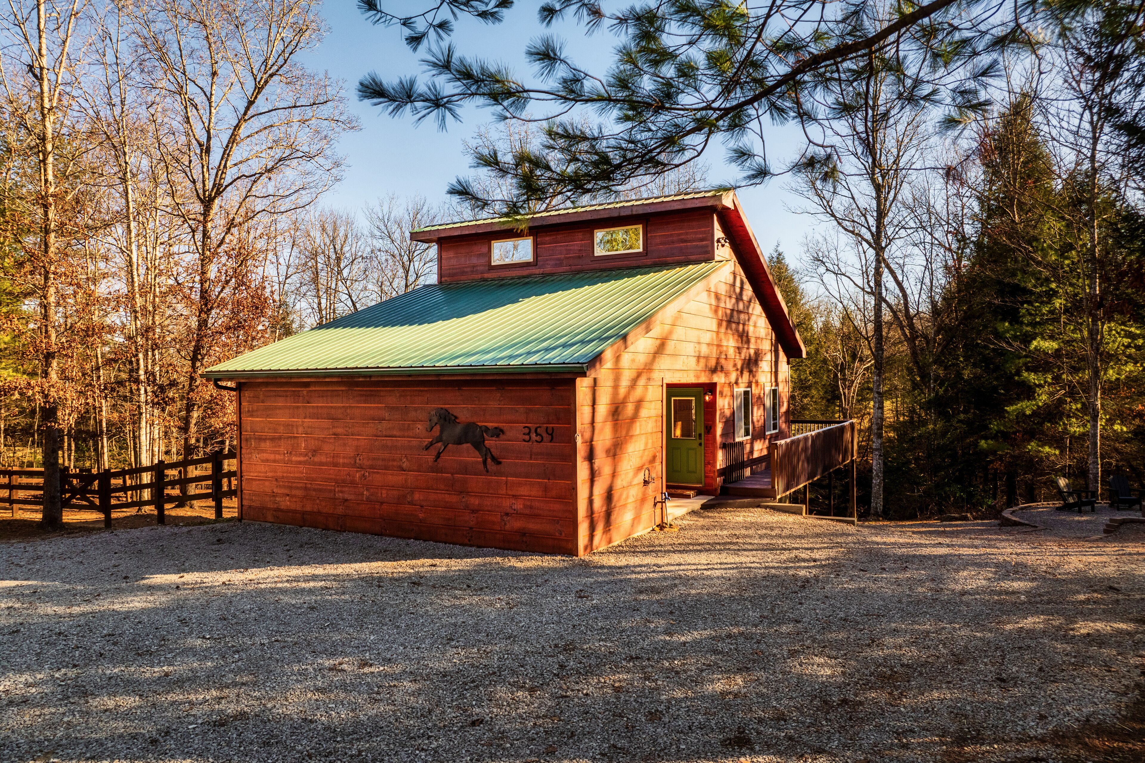Romantic Cabarn w/ HotTub Lounge - Located on BSF! Welcome to your new vacation! - Located in the Big South Fork White Oak Horse Community - Perfect Hot Tub Lounging Area - 60" Electric Fireplace - 65" Outdoor Roku TV - Outdoor Dine/Lounge - High-speed Wi-FI - Loft with Arcade Games & Movie Section - Fire Pit with Park Style Grill - Close to Hiking This property is perfectly located for those looking to explore the Big South Fork! Learn more below!Nestled in the heart of the Big South Fork, Equestrian Grandeur is set within a vibrant house community "White Oak". Embrace the serenity of the surrounding nature while enjoying the equestrian charm of the unique getaway. Whether you're an outdoor enthusiast or simply seeking tranquility, This location offers an unforgettable experience in a picturesque setting. This home offers 680 square feet with 2 bedrooms and 1 bathroom. 1 bedroom is on the first floor and 1 bedroom is in the loft. This home offers guests a clean, calming, and inviting atmosphere to take in all that East Tennessee has to offer. The location is perfect because you are on the Big South Fork but just a short drive to town that has plenty of amenities.HOT TUB:There's a hot tub in the covered barn that's spacious enough to fit all of your guests! Enjoy the mountainous view and the warmth of the hot tub at the same time :)SLEEPING ARRANGEMENT:Two queen beds