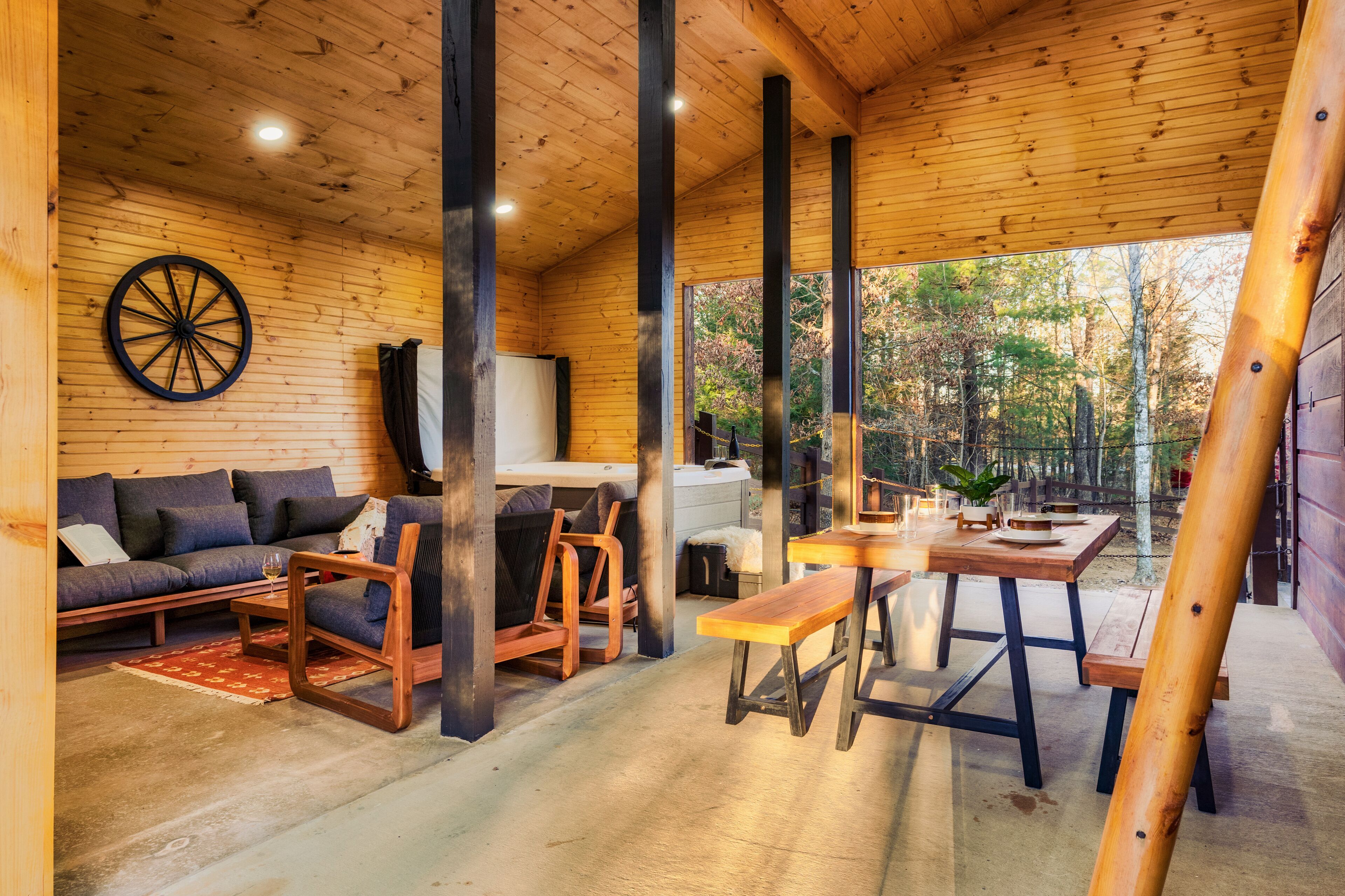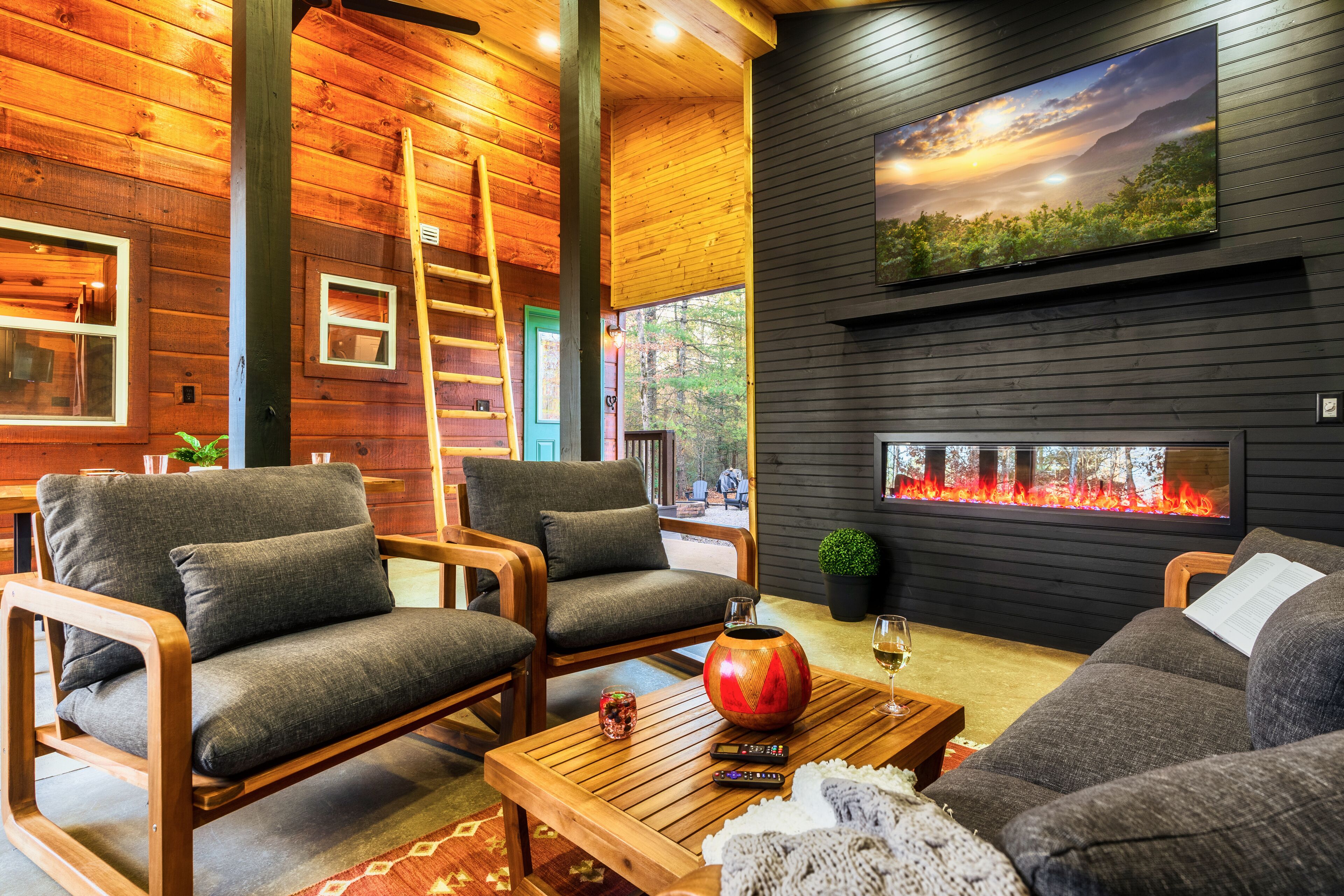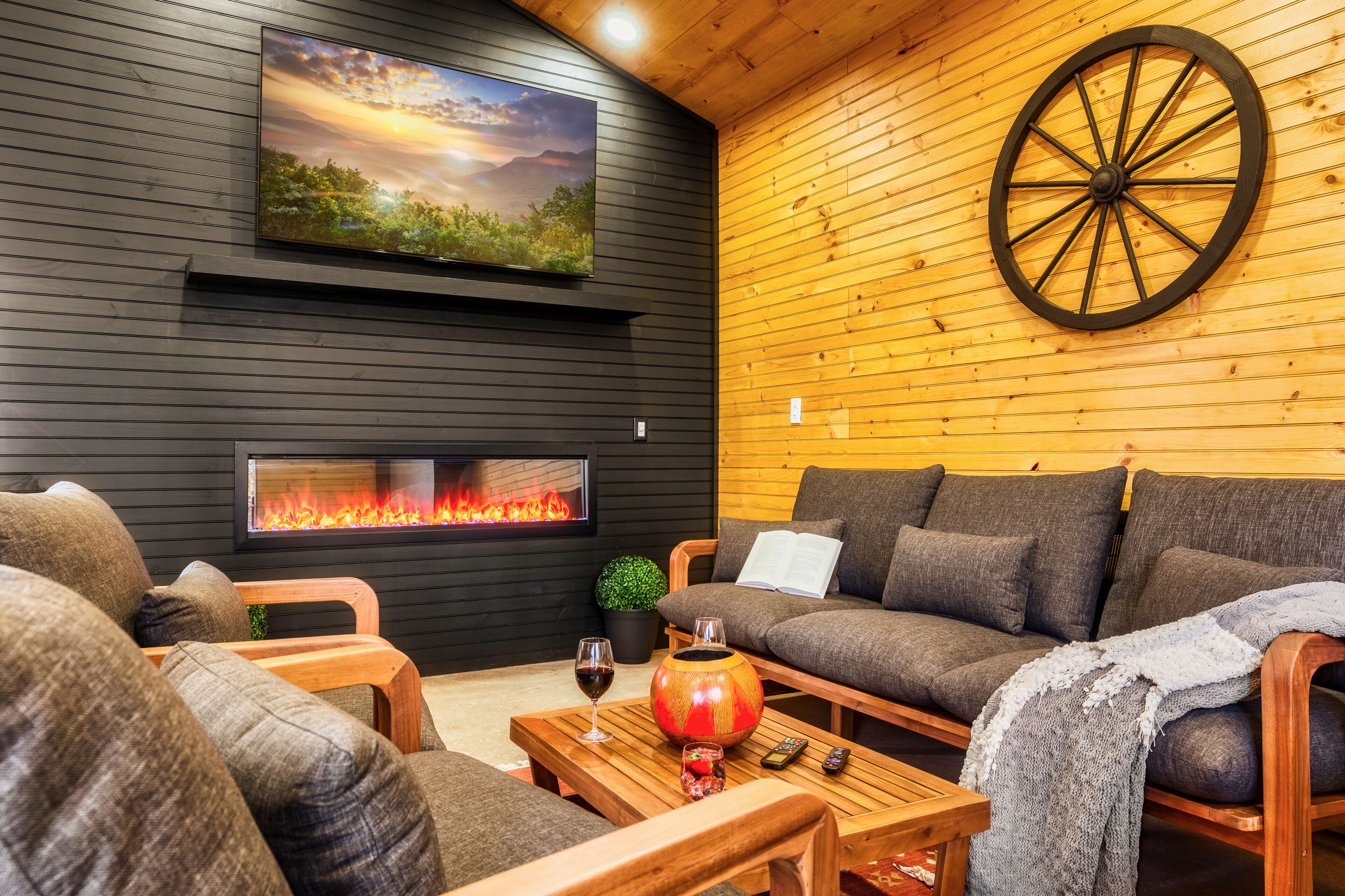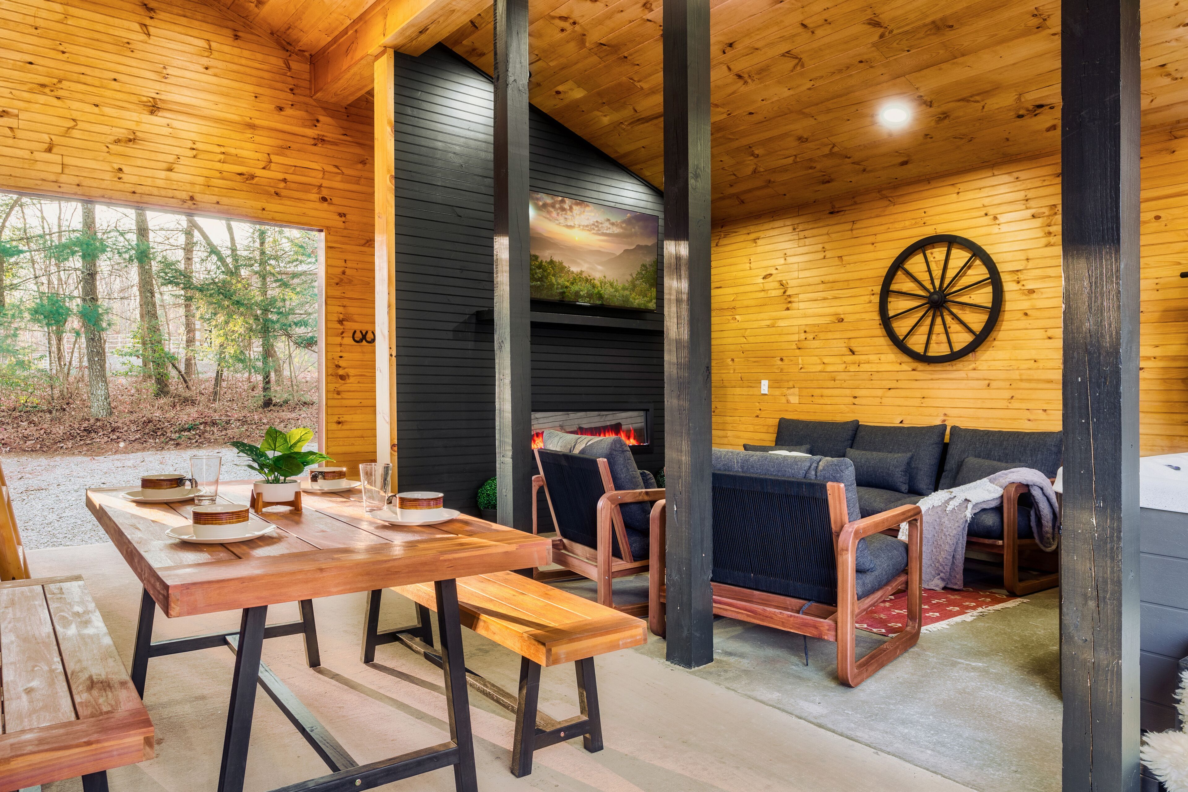 Romantic Cabarn w/ HotTub Lounge - Located on BSF! Welcome to your new vacation! - Located in the Big South Fork White Oak Horse Community - Perfect Hot Tub Lounging Area - 60" Electric Fireplace - 65" Outdoor Roku TV - Outdoor Dine/Lounge - High-speed Wi-FI - Loft with Arcade Games & Movie Section - Fire Pit with Park Style Grill - Close to Hiking This property is perfectly located for those lo...