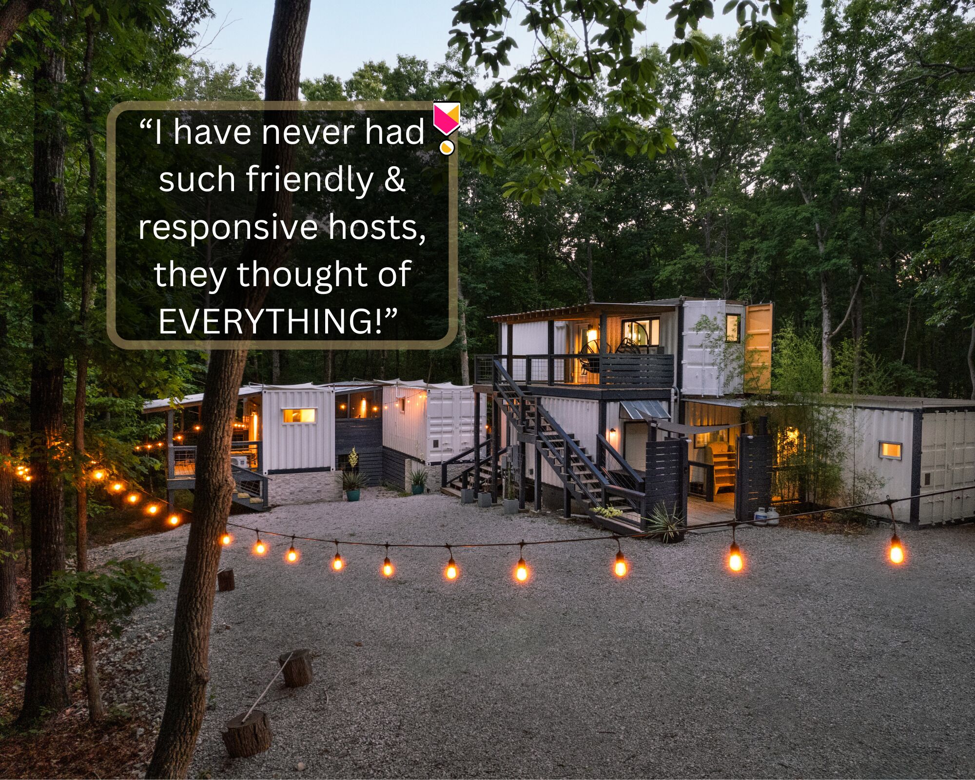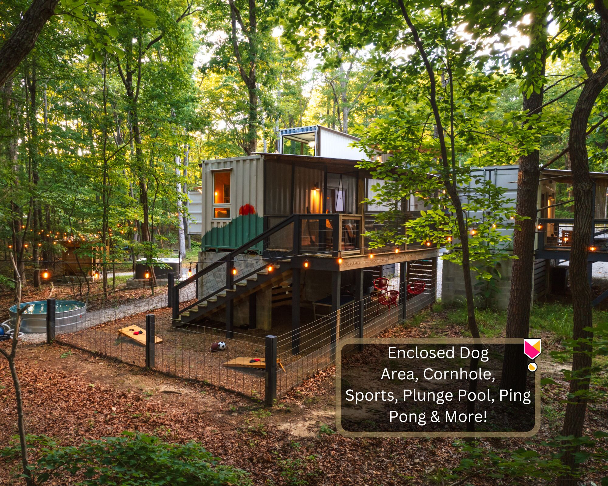 Private Multi Family Retreat on 5 Acres! Create lifelong memories at the most unique & plush nature retreat you will ever experience!Imagine watching deer stroll through forest from the plunge pool or sauna after hiking one of 30 trails within 20 min of our 5 acre oasis....Imagine watching the sunset from the hot tub with a glass of wine, while the grandkids play ping pong in earshot. If you need a retreat from the city to connect with loved ones just a short drive from Nashville, Chattanooga & Huntsville, our home is for you!Guests will not have interaction with the hosts. However, we are available whenever you need us!Walk out of our door and enjoy light hiking trails in the neighborhood or hop in the car to do more difficult hikes within 15 min! Think cute mountain town meets sophisticated artist's retreat. The liberal arts college in town, University of the South provides incredible artisan culture that can be felt throughout the town. Our neighborhood is called 'Deep Woods' for a reason. Secluded and quiet, it's almost impossible not to relax when you arrive!Guests will access the property using smart locks.PRIVACY & TOGETHERNESS: Our home is ideal for multiple families looking for a space to be together while still having privacy when needed. The home features a large open concept living/kitchen area to be together in the 'main cabin' as well as 3 additional private guest quarters for couples to escape to at the end of the night. OUTDOOR AMENITIES1. 7 Person Hot Tub 2. Steam Sauna with Forest View!3. 6 Person Plunge Pool! (Open April - October)4. Hours of Neighborhood Trails in Walking Distance5. Outdoor Shower (April-October)6. 100" Projector Screen (HDMI, Lightning & USBC Adapters provided) *Projector screen is best used at night when it's dark out because it's on our luxury screened in porch! 7. Outdoor Gel Fireplace + 2 Outdoor Heat Lamps8. Swing Set 9. Cornhole, Football & Games!10. Mid Sized Ping Pong11. Hanging Daybed12. Private Deck for 3 of 4 Master Suites13. 20+ Trails in 20 min or less!14. 5 Private Acres 15. Gas GrillBEDROOMS/SLEEPING SPACES1: Queen, Single Futon, Private Bath (Master #1)2: Twin, Private Bath3: Twin Bunk Beds4: King, Single Futon, Private Bath, Private Deck (Master #2)5: Queen, Single Futon, Private Bath, Private Deck (Master #3)6: Queen, Twin Floor Mattress, Private Bath, Private Deck (Master #4)GUEST COUNT GUIDE: Check floor plans for details. Bedrooms 4, 5 & 6 are all private studio containers with a bathroom, kitchen area and private viewing deck. Our home is comfortable for 11 people and tight for 16. If you have 16+ in your group, please note that you will be using futons & cots in addition to the beds.STEP FREE ACCESS(For Bookings with Mobility Challenged Guests)The main living and kitchen area where guests congregate can be accessed with zero steps. There are 2 bedrooms and bathrooms in this area. Both of the bathrooms have a tub/shower.FIRST TIME STAYING IN A SHIPPING CONTAINER HOME? You're not alone! We get tons of questions - Many asking, "Is this a 'normal' home?" - The answer is, yes! The outside looks extremely unique, but we imagine that once you're inside, you'll forget you're in a shipping container because of the comfortable design and luxe touches added throughout the home. Please note, all of the bedrooms are single containers and therefore, are narrow. The photos show this as the containers are the width of queen/king size beds. PET AMENITIES1. Fenced in area for the pups! 2. Paw Wiping Towels3. 'Poo Bags'4. Dog Waste Trash Cans Pet Fee: $125 for first pet, $75 dollars per additional pets. Please add your pet to the listing prior to booking. We ask for $125 for the convenience of having your fur baby on vacation and for the extra clean up of waste and fur. No breed restrictions, maximum of 4 pets. Rovers in our area are 30-40 dollars per night if you prefer to have a pet free vacation!CRITTERS: We have regular pest control for a variety of critters & regularly treat for snakes. However, you might see them anyway as we are on 5 acres of wooded forest. We do our best to prevent it, but sometimes bugs find their way inside. If this will ruin your stay, you might consider booking elsewhere.Chattanooga Airport: 50 minNashville Airport: 1 hour, 15 minHuntsville Airport: 1 hour 20 minCaverns: 23 MinGetting to the home: All roads to the home are paved and easy to navigate! LOCATION: The Caverns: 23 MinUniversity of The South: 5 minNashville Airport (BNA): 1 hour, 15 minChattanooga Airport: 50 minDowntown Nashville: 1 hour, 15 minDowntown Chattanooga: 40 minHuntsville: 1 Hour, 15 minKnoxville: 2 HoursAtlanta: 2 HoursGROCERIES*Private yet convenient!*Full Grocer/Liquor (Piggly Wiggly): 3 miles, 7 min Mooney's Market (Local produce, eggs, cooking): 5 minCVS: 11 minRESTAURANTS/COFFEE*Private yet convenient!*Stirling's: Coffee + Breakfast/Lunch: 5 MinBlue Door: Coffee + Breakfast/Lunch: 7 MinMi Casa: 8 MinMountain Top Meal Prep: Lunch/Hot Bar: 7 Min(They also have homemade frozen meals to bake at home!)Monteagle Nutrition: Shakes/Smoothies: 7 MinHigh Point Fine Dining (Al Capone's Old House!): 12 MinHIKING: Too many to list! Check out 30+ Trails on 'All Trails Website'There are hours of private neighborhood trails to enjoy within walking distance from our home that are light to moderate difficulty. Additionally, we are a short drive from these well know Middle Tennessee gems: Fiery Gizzard: 15 minFoster Falls: 20 minLost Cove: 5 minBridal Veil Falls: 8 minSavage Gulf: 35 minCumberland State Park: 15 minHEALTH: High Vibes Healing Yoga: 7 MinTenacity Gym: 18 MinPOOL:The pool is a 2 ft deep, 8 ft wide Palmingo Pools Stock Tank pool that is filtered and circulated just like a normal pool. It fits 6 adults (the size of a hot tub) and is perfect for 'hanging out' or for the kids to play! It is open Mid April-Oct depending on weather. Hot tub & Sauna open 24/7/365! EARLY/LATE CHECK IN: We schedule our cleaning team & pre arrival inspection team immedia