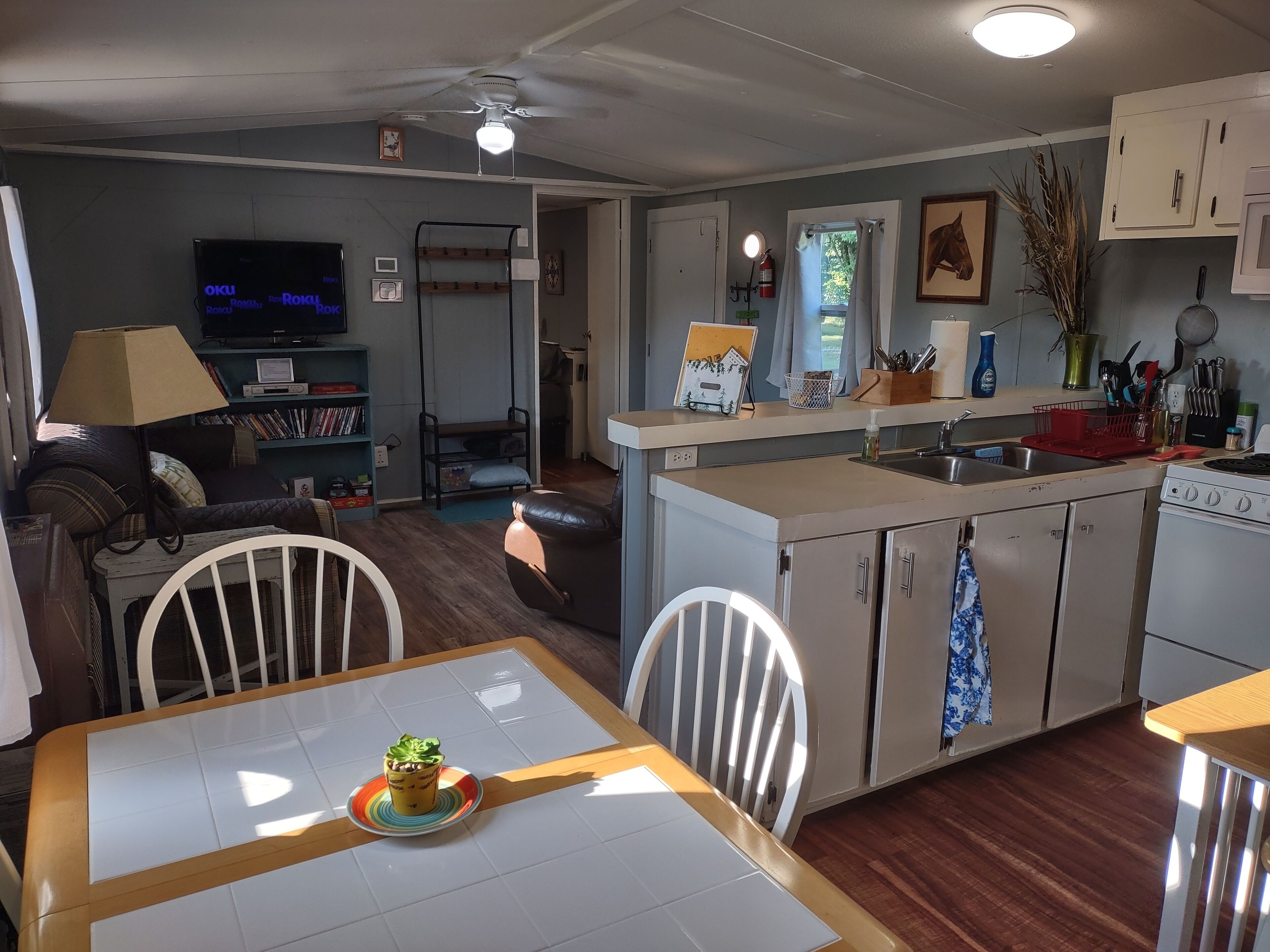 Pet Friendly - Near the University of the South, hiking & biking trails. Come enjoy a cozy getaway in Sewanee! Please note we are doing some light remodeling in between guest stays (repainting, landscaping, etc).You’ll love this space because of the location, amenities, and cleanliness. This home is best suited for couples, small families and those traveling with pets.This mobile home has an open layout. It’s 700 square feet and sits near the woods, off a back road, surrounded by grass and trees. It has a spacious fenced in backyard. Located 5 minutes off I-24.The space:You will be renting the entire home, two bedrooms, 1 bathroom. Full kitchen and access to a full size washer and dryer included. There is only one bathroom and this is a smaller home, so we don't recommend more than four guests, however on a case-by-case basis we can provide an air mattress to accommodate two additional guests - this makes the living room quite crowded though. Please message before booking to see if this is an option.LOCATION: We are five minutes off of I24 (Monteagle exit) and also 5 minutes from Sewanee University. 25 minutes from The Caverns and Manchester/Kimball/Winchester. The Mountain Goat Trail is a short 3 minute drive, which is a long paved trail for walking or biking. Greeter falls, South Cumberland State Park, Franklin Forest, Natural Bridge, Stone Door, Savage Gulf, and many more are all less than an hour drive.Some features are:*high speed wifi*Reclining love seats* Flat screen TV with an assortment of DVD’s (HDMI cable available) with ROKU* Both bedrooms have their own TV with ROKU*Board games and cards* Basic kitchen utensils (pots, pans, utensils,) for stove and oven use* French press coffee maker, drip coffee maker, hot teas, sweeteners, to-go cups* Queen sized beds in bedrooms* Nightstand lamps, with power strips that include USB* Washer & dryer* Space to hang and store folded clothing* Fenced in yard (approx ¼ of an acre)*Verizon cell service is spotty inside the home, but works great outside and in the surrounding areas, AT&T service is fine*Summertime won't allow the A/C to keep the temp below about 78* degrees in the middle of the day*Our house (a few hundred feet away) does have security cameras that look across the yard towards the home you are renting *Bookings over 8 days in length will have a weekly cleaning/linen change (no extra fee).PETS: The space is dog friendly (other pets allowed on a case-by-case basis). Three dogs is the maximum, and it is strongly recommended that they be supervised when outside and crated if left alone inside. We encourage closing the driveway gate closed when your dog/s are outside (our neighbors have dogs that roam). We provide one large dog crate. All dogs must be up to date on their rabies vaccine, toe nails clipped and recently groomed and on flea/tick prevention. There is no dog fee, however we do ask that you let us know in advance. Please pick up after them in the yard, and while we prefer they stay off the furniture, we do provide blankets for that purpose.We have two horses, two dogs, three cats, and occasionally foster puppies/dogs. These animals generally stay on our side of the fence. The fenced in yard surrounding the home is your space to use. All gates, except the driveway gate must remain closed at all times. Do not feed our animals or try to pet them without our supervision.If you would like to spend time with our animals, let us know and we'll do our best to arrange a meeting.This is rural TN, and there are woods all around. If doors or windows are left open you may find unplanned visitors such as bugs or a nosy cat. If animals distress you, we suggest booking elsewhere.We live a few hundred feet from the space, and will be available if needed but will otherwise let you enjoy your time in Sewanee alone.Same-day bookings are welcome, outside of normal sleeping hours we usually respond very quickly to requests.We hope you enjoy your stay with us!-Kevin & Emily
