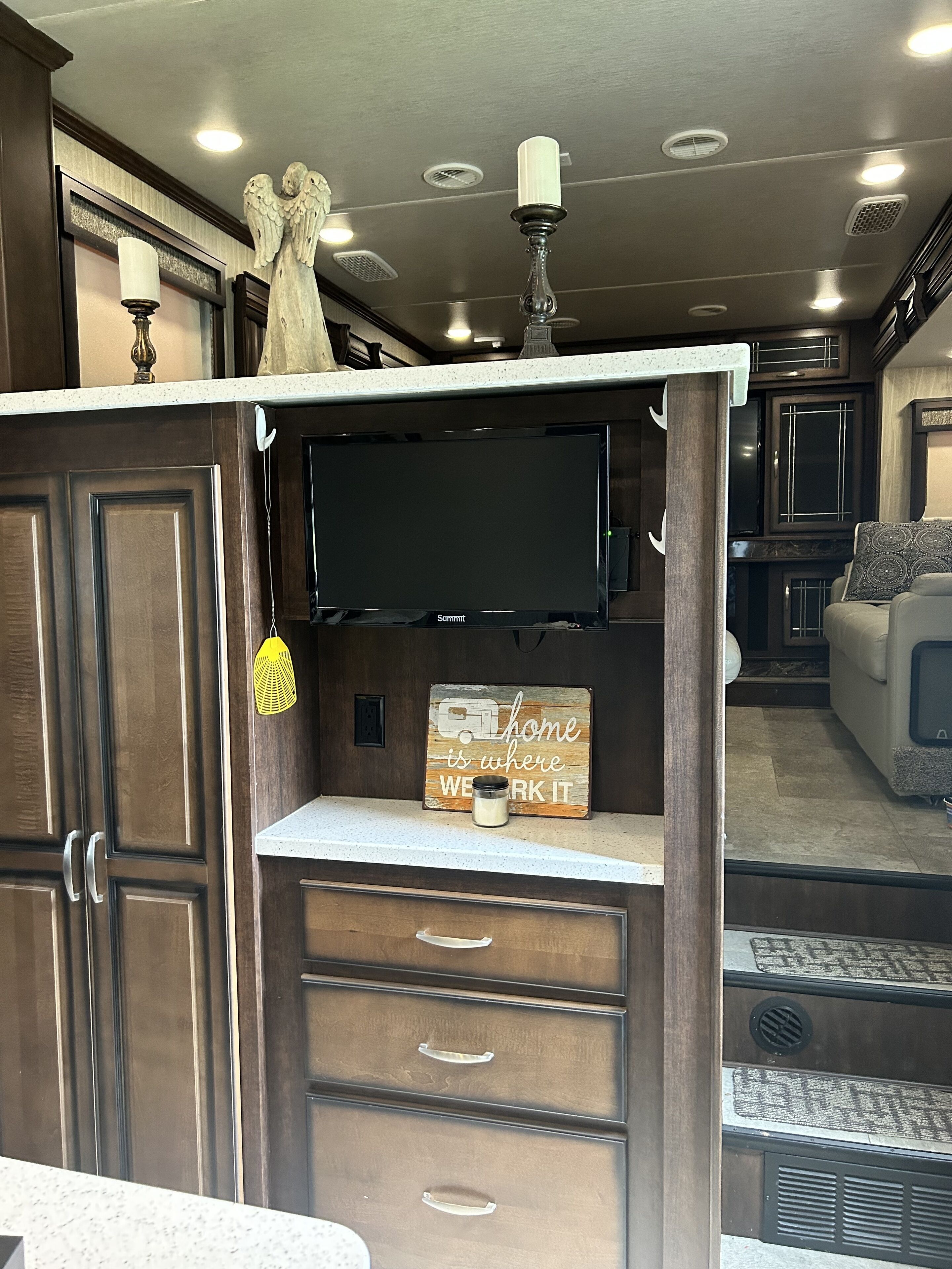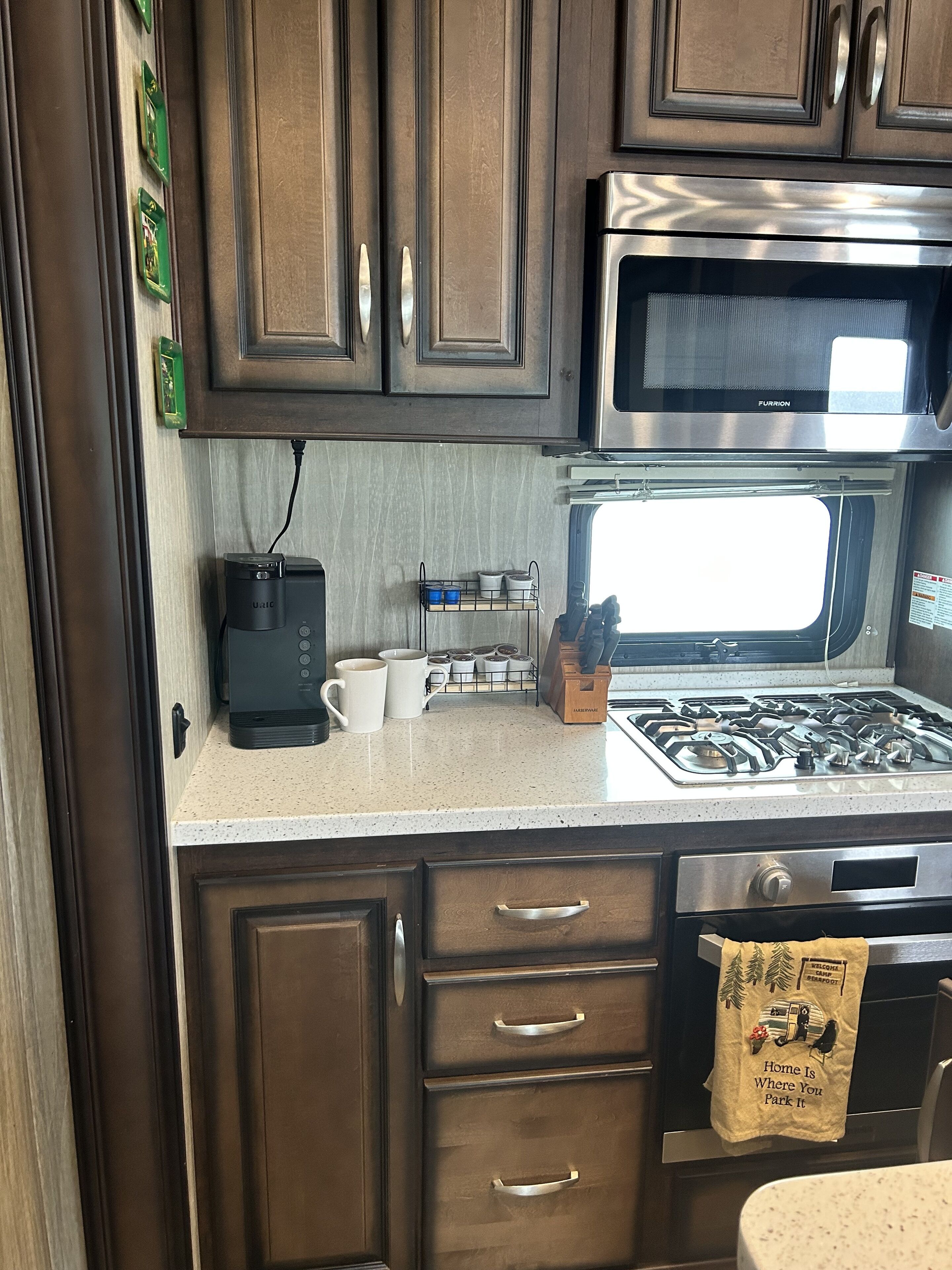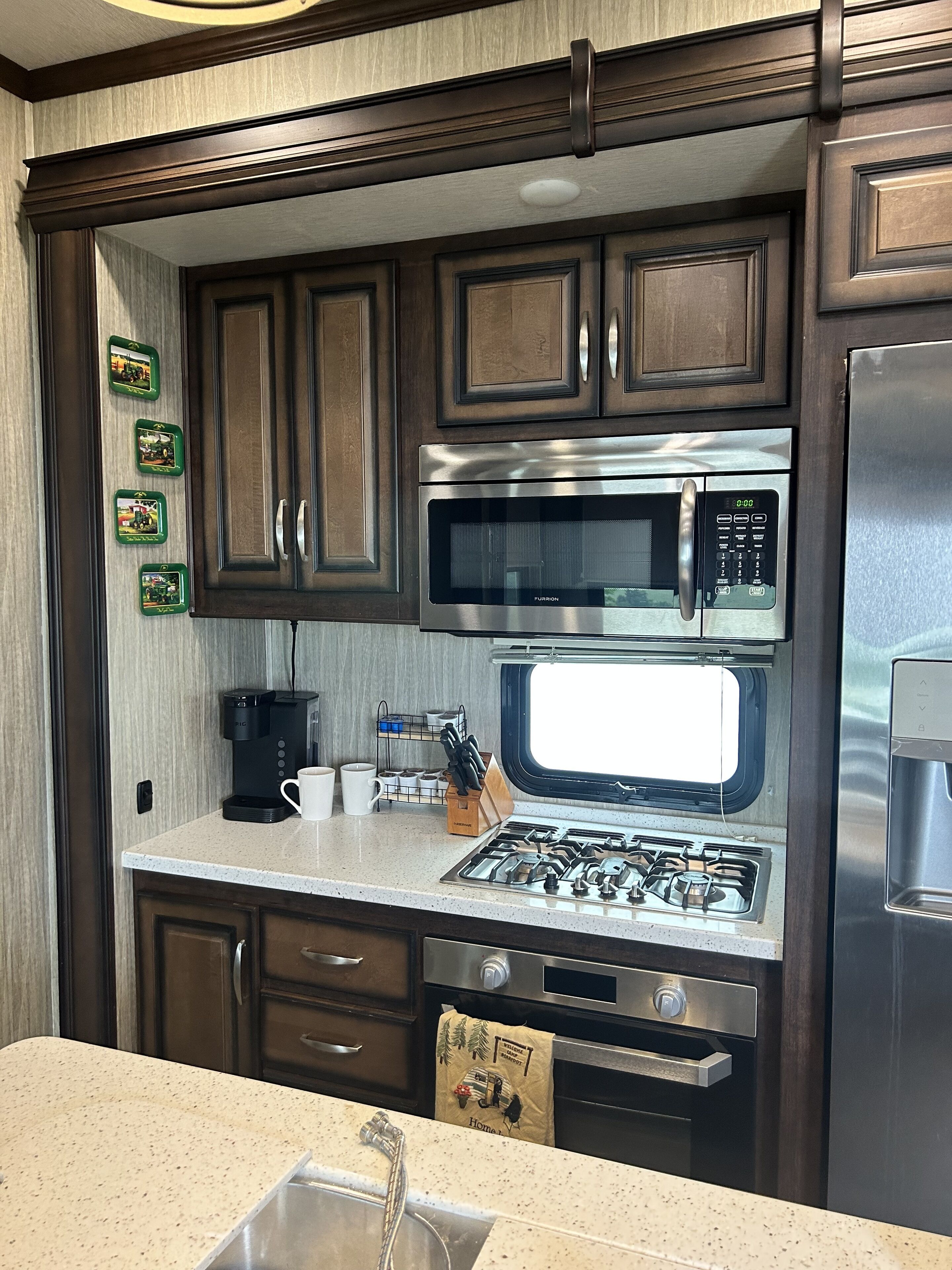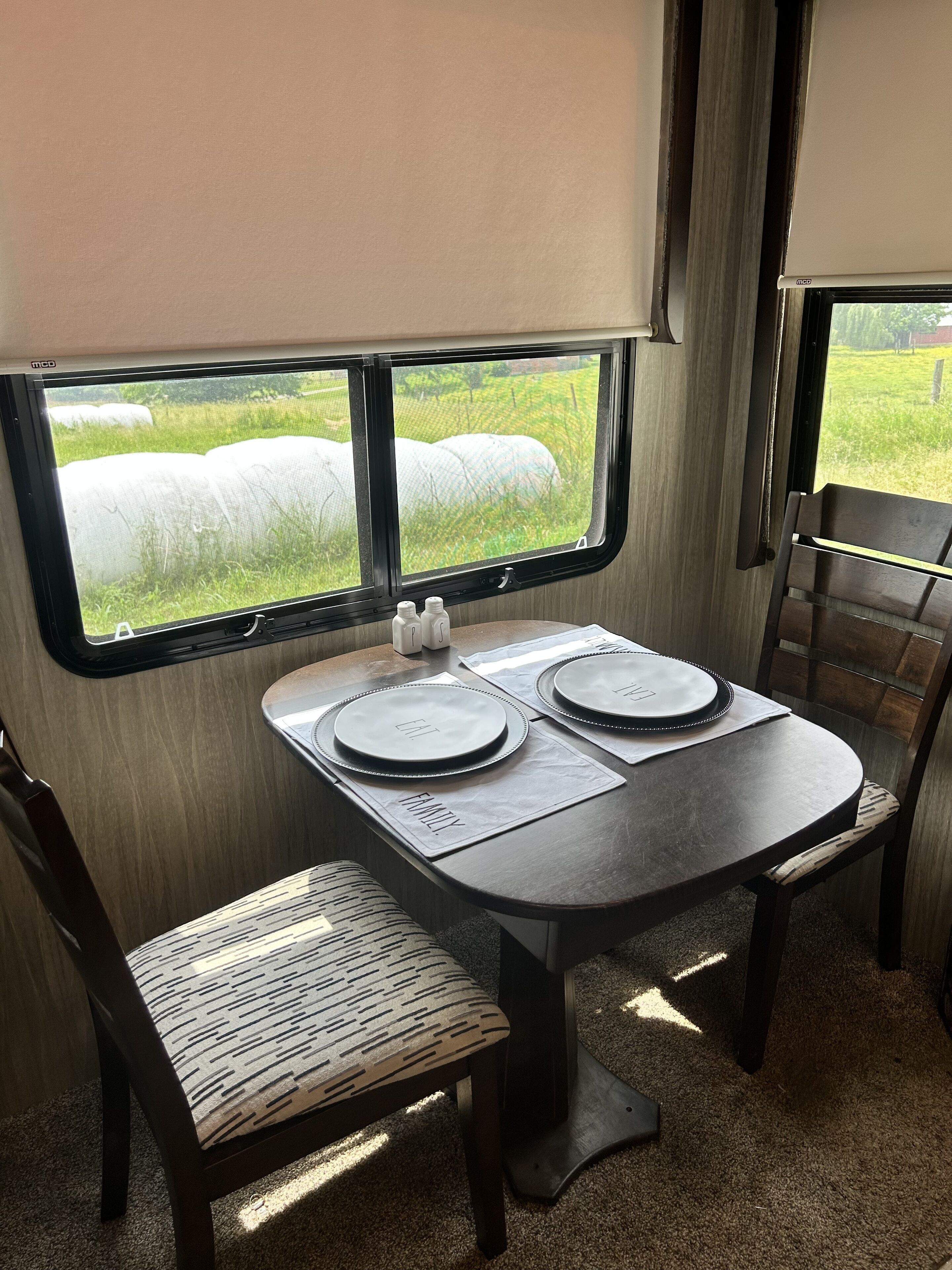 A&A Retreat Listing descriptionReconnect with nature at this unforgettable escape.Our Rv sleeps 6 sits on private property. 5 miles from Green River Lake. 2 miles from River, WiFi, full kitchen, one and half bathrooms, indoor fireplace, 3 TVs, charcoal grill, fire pit, lawn chairs, with outdoor eating area with great views!!! Perfect for families, Friends or couple get away! King size bed with full bath in master bedroom. Two queen size pull outs in livingroom. Full kitchen with dining area and full size refrigerator.