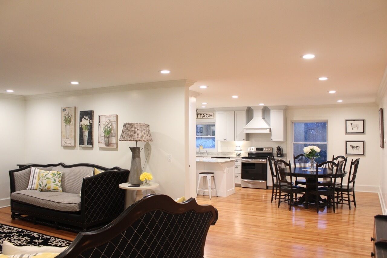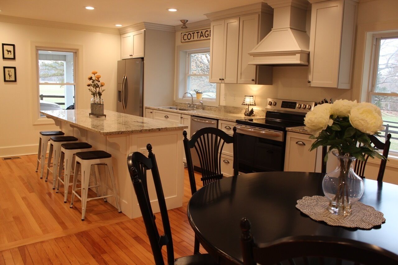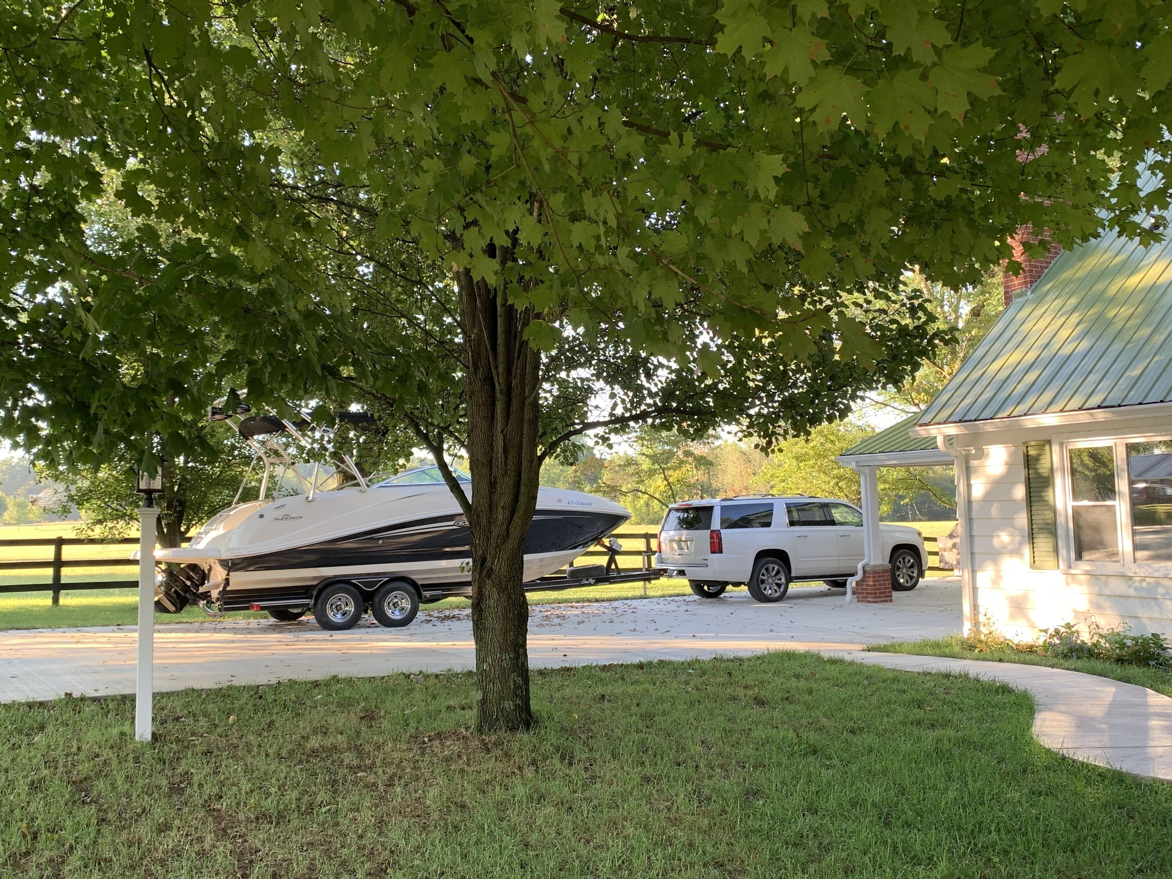 The Cottage At The Lake•Green River Lake•Campbellsville University•Kentucky Completely remodeled 1950's cottage in great location for boaters. After a long day of fun and sun on the lake, come spend the night in comfort. Air-conditioned home with internet and cable offers relaxation in beautiful outdoor surroundings. Bright white paint and solid wood flooring give the cottage a fresh clean atmosphere. Lovely family room with gas fireplace and new kitchen with ample counter space and seating for 10. Main floor hosts 2 bedrooms, one with a king bed and another with 2 twins. Full bathroom nestled between the bedrooms. The private master retreat occupies the entire 2nd floor with a king bed, TV, sitting area, with gorgeous built-in cabinetry, full master bath, and laundry. Cottage contains all new kitchen appliances and washer/dryer. Come wind down from your fun-filled day under the shade of large mature trees on the spacious patio as you enjoy your backyard BBQ on the outdoor furniture and dining table. Great parking on site that accommodates large boats and several vehicles. The cottage is situated on the edge of a beautiful 50-acre farm with open fields that boast ample wildlife to view along with amazing sunsets as well as chickens that roam the yard, providing the most natural form of pest control. This cottage truly offers the best of both worlds. Only 0.9 miles from Smith Ridge boat ramp, 1.7 miles from Emerald Isle Marina and beach, and 4 miles to city center and Campbellsville University with access to restaurants and grocery.Receive your own personal access code for entry to the main door by using the keyless entry system. This allows your arrival to be convenient and contactless any time of day or night. Ask about our Watersport rentals; Kayaks, paddle boards, and our 26 foot Sea Ray Sundeck with driver and all the toys so that you and your guests can relax and enjoy the water!**Taylor County Tourist Commission requires a 3% Transient Room Tax to be added to each night stay. You will see this listed as a property fee charged/included in your overall bill.