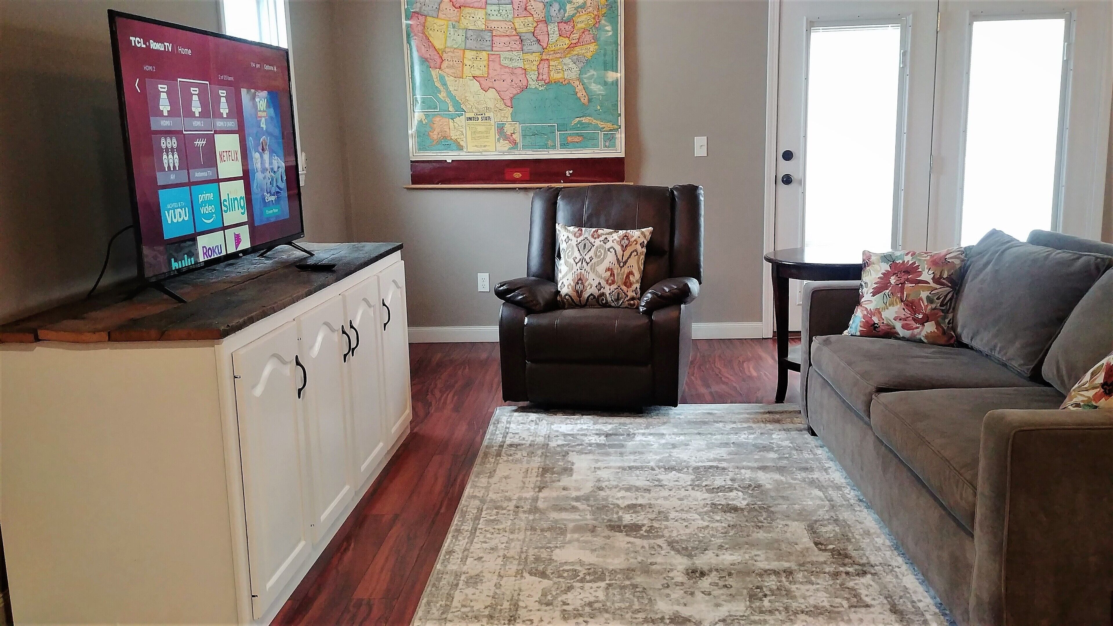 The Grand Escape - Central Kentucky Green River Vacation Stay Great open floor plan on this 1,200 + square foot loft apartment with all the amenities you need for a relaxing stay. Only minutes from Green River Lake State Park, Campbellsville University, Lindsey Wilson College, Historic Downtown Campbellsville and much more that Central Kentucky has to offer. Keyless entry, Wi-Fi & Smart TVs, equipped kitchen, laundry room, and plenty of space to spread out. Great for weekend getaways, family visits, wedding events, fishing or canoe trips, & college visits.This is a loft apartment located on a side street directly off Hwy 55 (New Columbia Road) outside of Campbellsville KY. It is a spacious living space located above a retail shop that used to be a piano sales building - Now the Grand Escape Vacation Home. Sorry no pianos anymore but we love antiques and unique items so the space is decorated with many vintage and interesting things. You will have to be able to navigate stairs to stay here but the apartment has been newly renovated with all the amenities necessary for an excellent and relaxing stay. Parking area in front of the building allows enough room for boat / trailer parking.