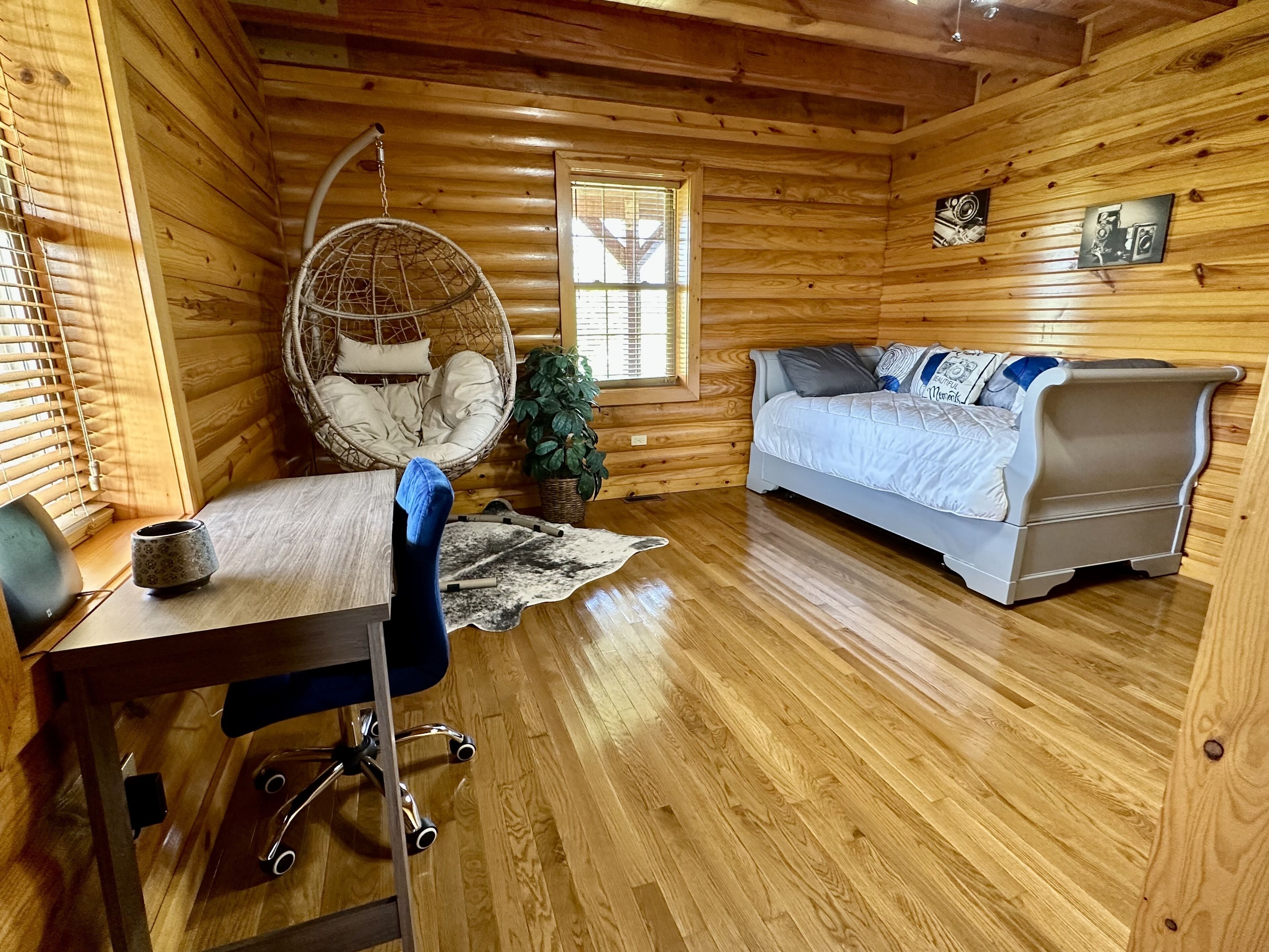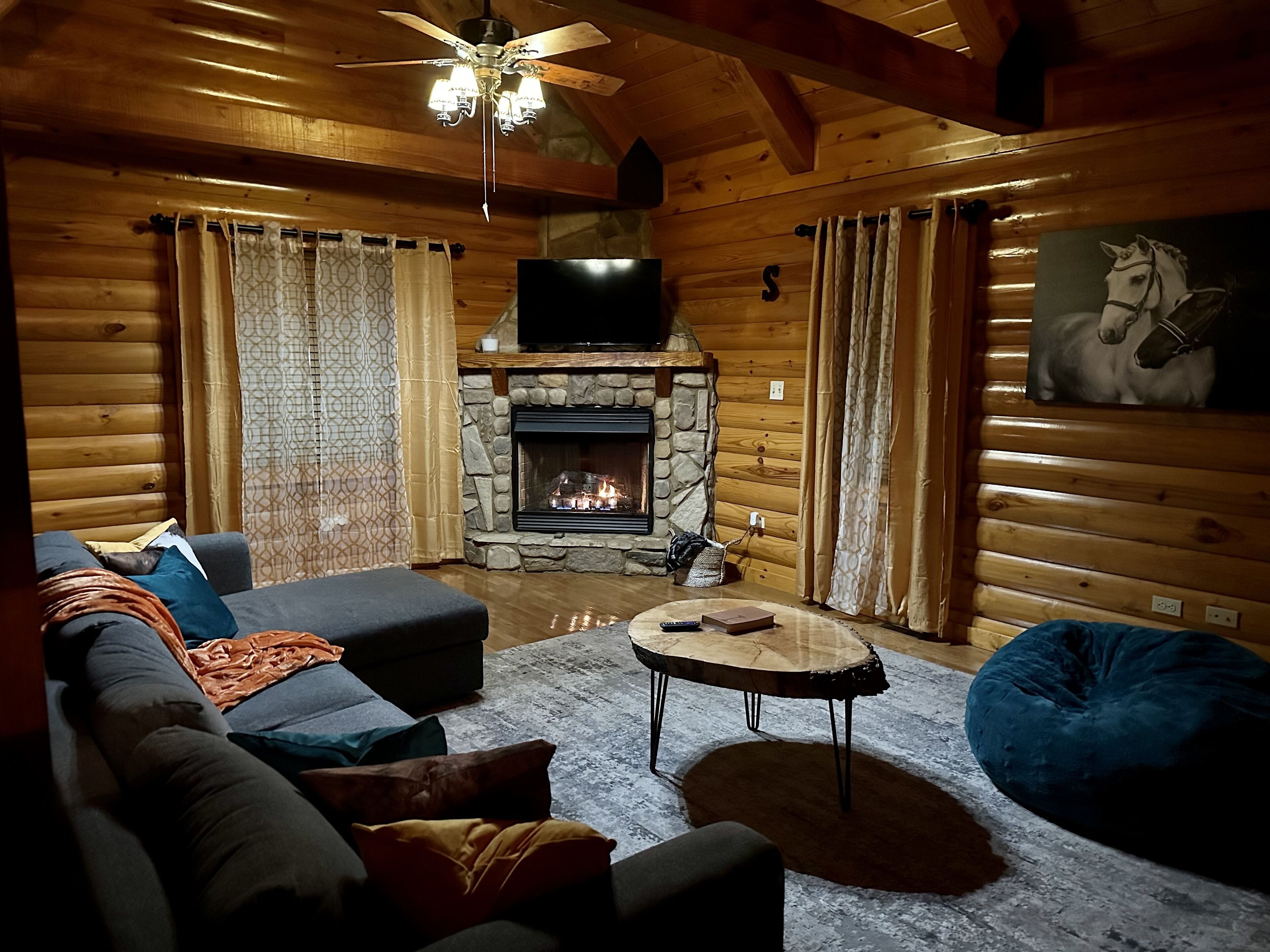 Cabin Retreat Take it easy at this unique and tranquil getaway. Complete wrap around porch for beautiful view of sunrise and sunset. Cabin sits on 10 acres of peaceful land, including a stocked pond. Located just 10 minutes from local Walmart and 15 minutes from Green rive National Park. Perfect location for a quiet getaway.
