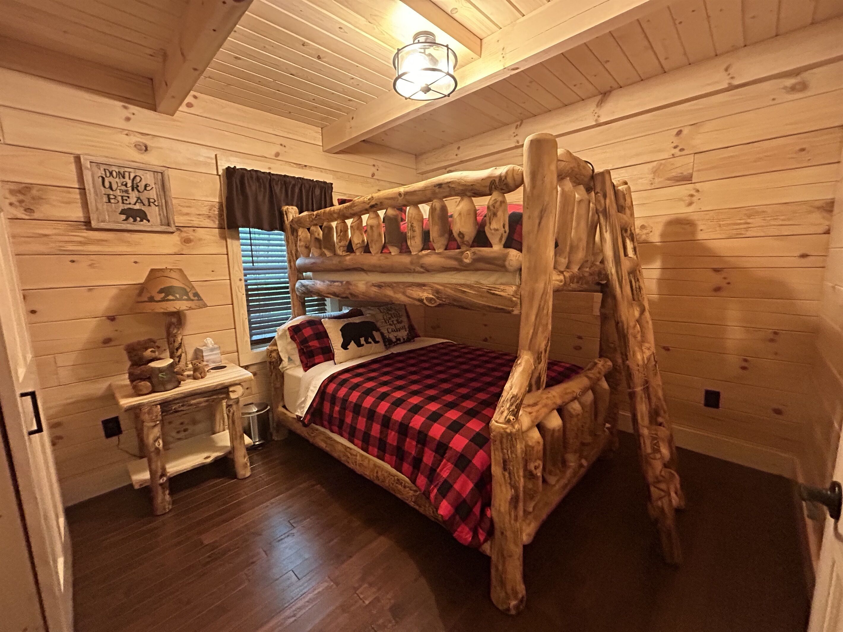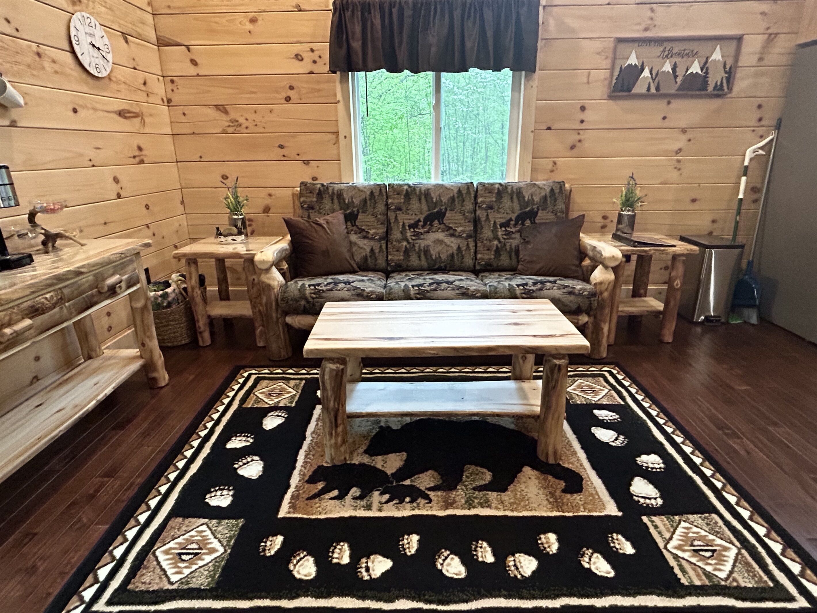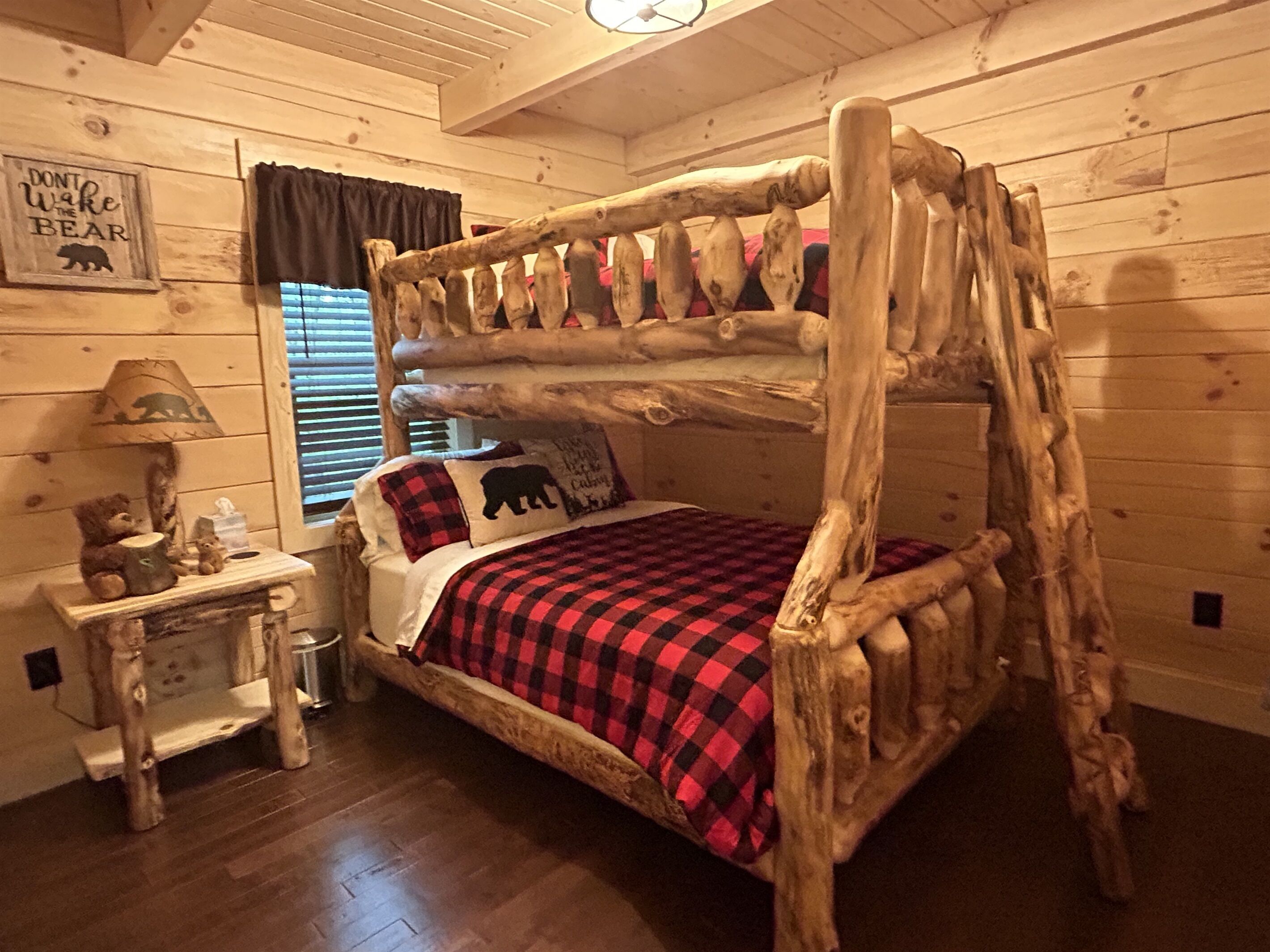 Bear Tracks Getaway Cabin Enjoy the comforts of a rustic family getaway cabin, only minutes from downtown Campbellsville and Green River Lake. This gorgeous 2 bedroom 1 bathroom cabin has a full kitchen and living area with a fireplace. The gorgeous half loft has a futon that makes into a full size bed.Enjoy a lovely view on the back deck with a hot tub. The fire pit is the perfect place to make wonderful family memories!