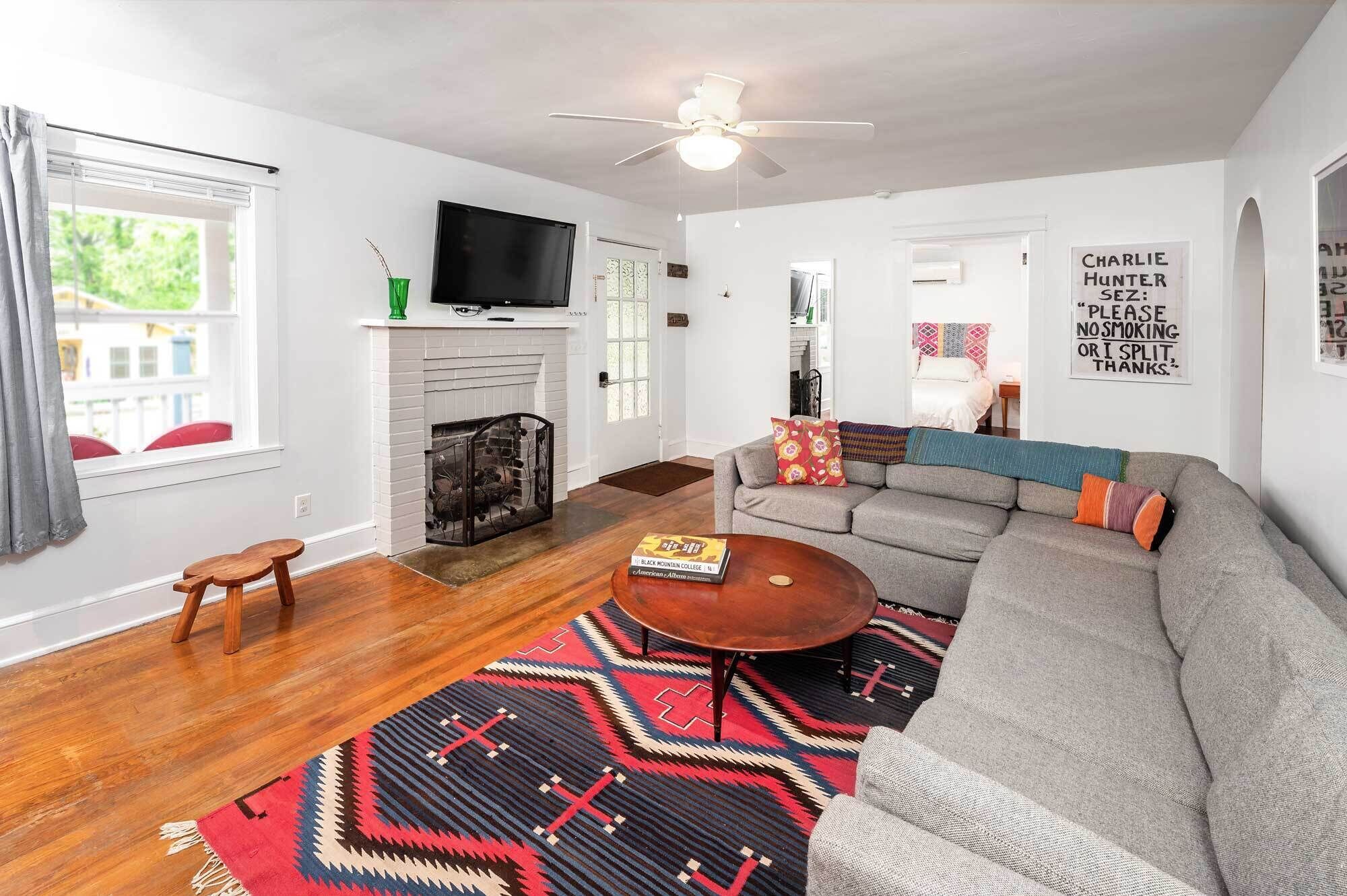 Artisan Gem - 2BR - walk to river, coffee, food + EV Charger Get cozy this winter in the Blue Ridge Mountains!You'll feel inspired at the Blue Walnut House, a freshly updated home nestled in "the gem of the mountains". Relax, spin some vinyl & enjoy proximity to local attractions.This well-appointed cottage is perfect for a mountain getaway and just steps from downtown Spruce Pine and the North Toe River. Take a short stroll to our best coffee shops, restaurants, brewery, nature, and outdoor recreation. We are a 5-minute walk to a local coffee shop with homemade pastries, a 10-minute walk to downtown shops, restaurants, antiques, and brewery. We are 1 mile away from Ingles supermarket and 9-minute drive to Blue Ridge Parkway entrance. Take a scenic drive to Penland School of Craft or a 10-minute walk to North Toe River, Riverside Park, playground, and splash pad. You're never far from nature here!We have an EV Charger, a spacious living room with plenty of seating and a gas fireplace. We know coffee is essential and have a dual coffee maker, and regular coffee. and a gas range/oven in our fully stocked kitchen for those chef types. We have smart TV's in the living room and one bedroom. There is of course free wifi and a dedicated workspace/desk. There is an on-site washer and dryer for your convenience. Bathroom safety and cleanliness is a top priority. There are accessibility-friendly grab bars next to the toilet and shower and an anti-slip bathtub basin. Parking is free and available in the driveway and on the street. The carport has an EV charger available for guests with electric vehicles. Please let us know if you plan to use this. A smartlock keypad is located on the front door for simple keyless entry and self-check-in. The code will be provided to you prior to your check-in time. The code is different for each guest.