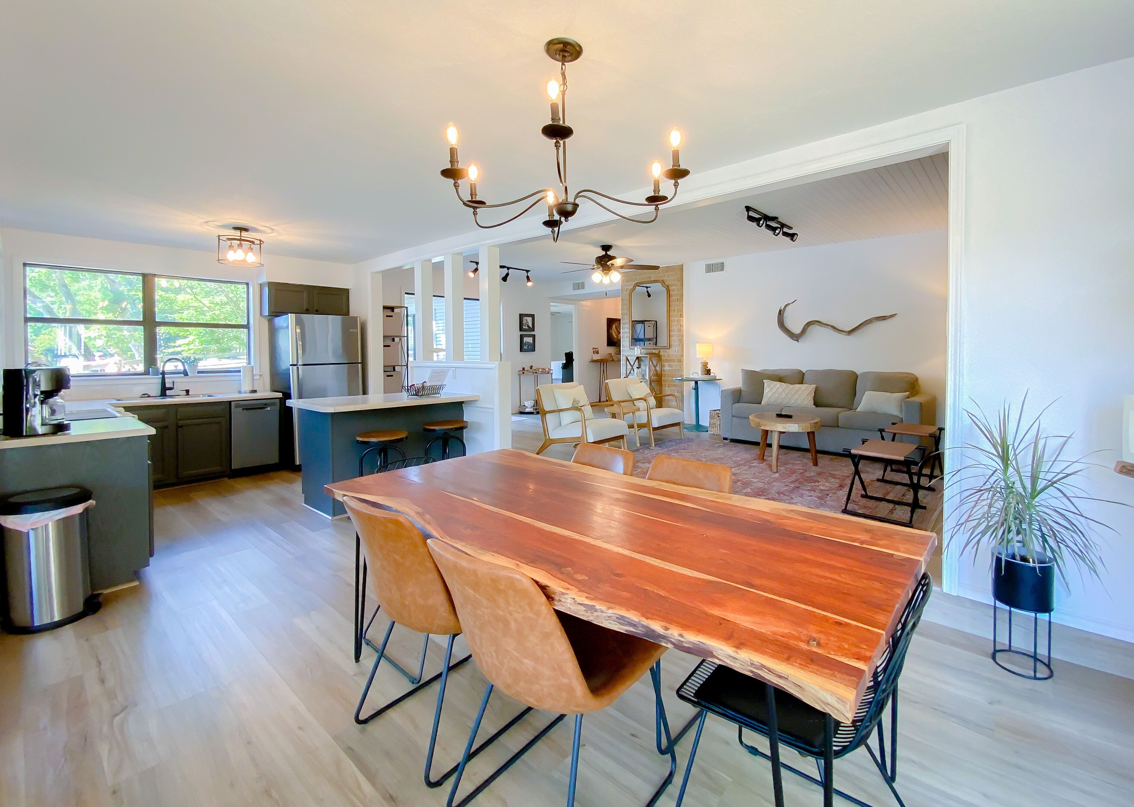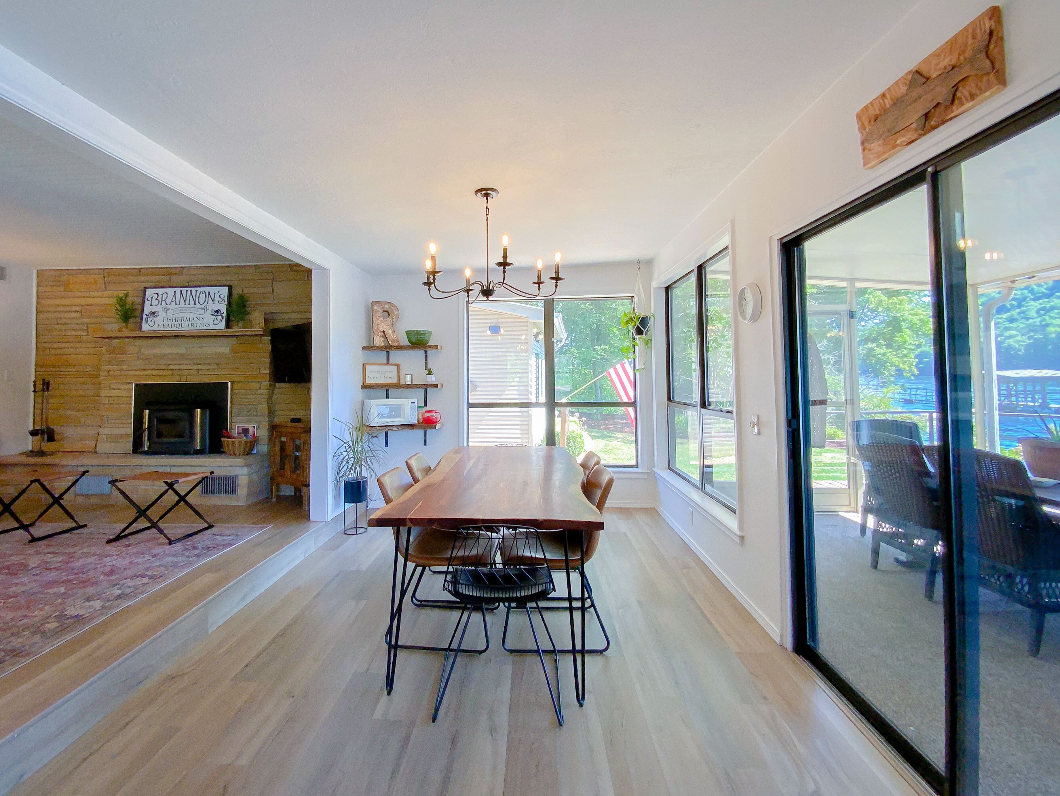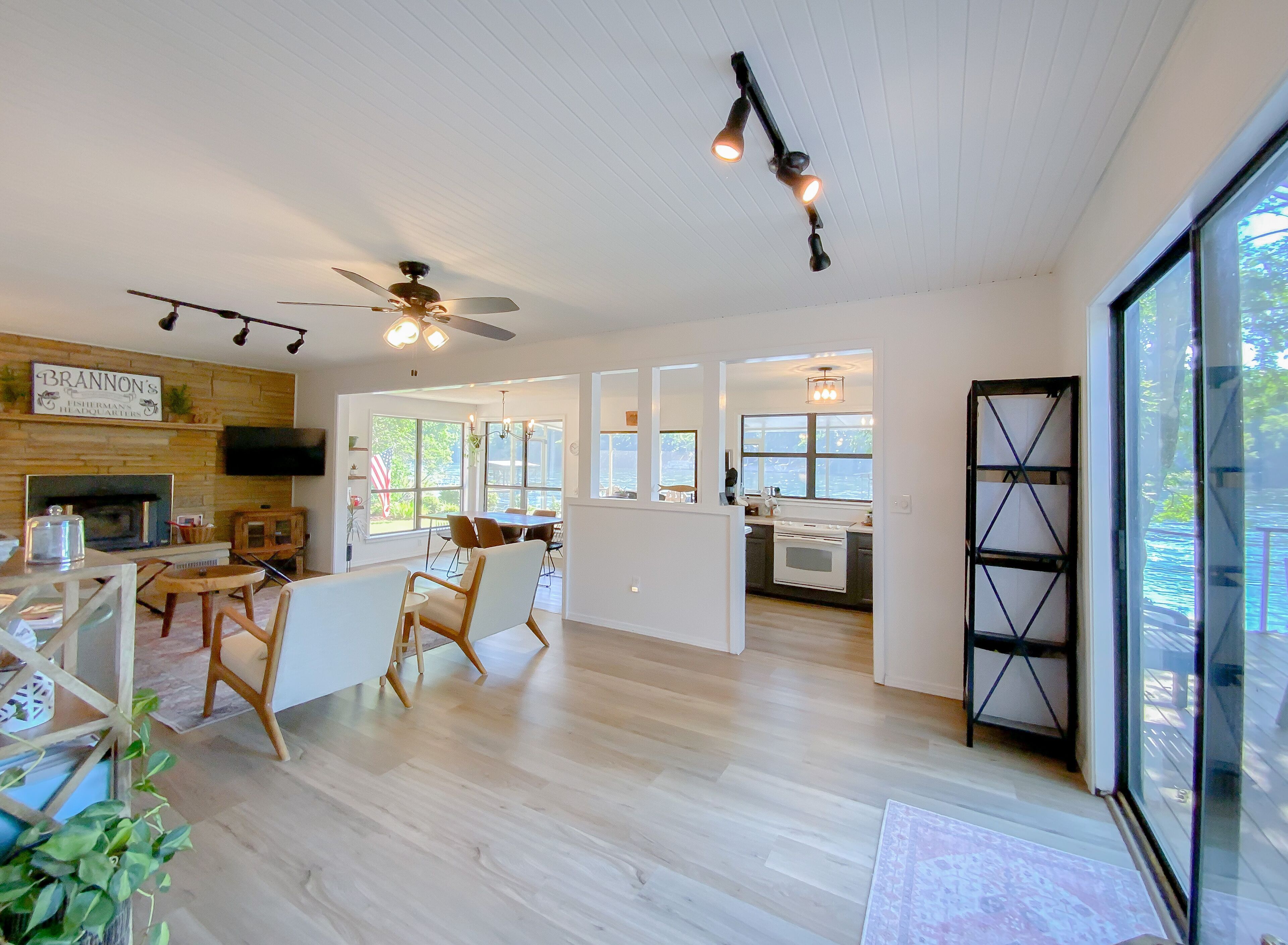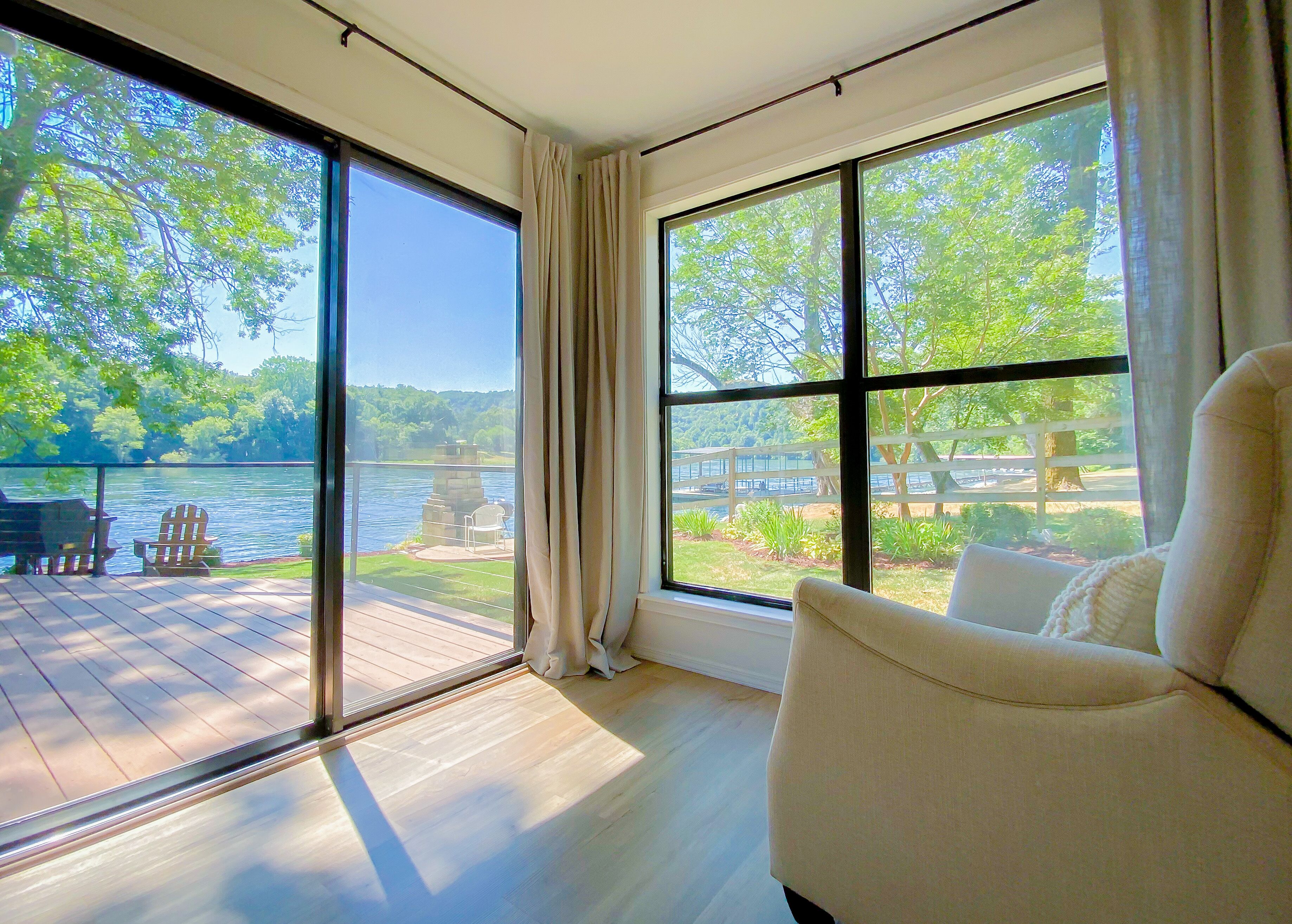 As close to the water as you can get! Updated and relaxing! Check out this private + recently renovated river home in Flippin, Arkansas. Known for some of the best fishing in the world, our cabin in nestled in a private neighborhood, near Wildcat Shoals. Our boat dock allows for convenient pick up and drop off for fishing guides. You are able to dock up for lunch, or to swap out who is fishing. World Class fly fishing up and down the beautiful White River! Bull Shoals Lake offers excellent fishing and boating only 8 miles away. Boats available for rental on the river and lake. The dock is shared with one other family in the area. Our property has been upgraded with bank stabilization - the rock bank allow guests to walk down to the water, and depending on water levels, wade and bank fishing can be easily accessible. Views of the beautiful White River can be seen from almost every room in the house. Offering an open floor plan, guests can enjoy a fully stocked kitchen with extra small appliances for convenience (including a fish fryer, crockpot, blender, and more), a large screened-in porch with lounge chairs to drink coffee and an outdoor dining table for dinners, a beautiful outdoor fireplace to roast s'mores, and a charcoal grill available. Charcoal and firewood available upon request. Rooms are all furnished with luxury linens and and we offer accommodations for kids and babies (crib, high-chair, and toys are available, if needed). Bedroom 1 - king bed (crib available) Bedroom 2 - queen bedBedroom 3 - (2) twin beds - walk thru from Bedroom 2. Offering fiber-optic, high speed wireless internet, and YouTube TV. Wal-Mart in Flippin is a convenient 3 miles away with grocery pick-up available.Fly fishing guides are available upon request, as well as recommendations for restaurants. We are sorry, but no pets allowed, unless first approved by owner.